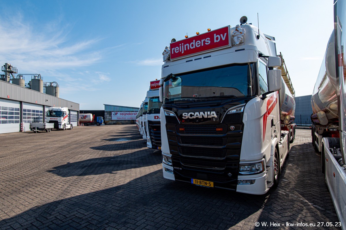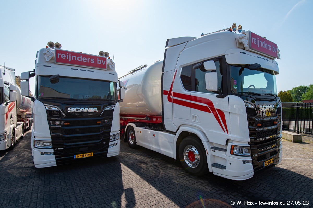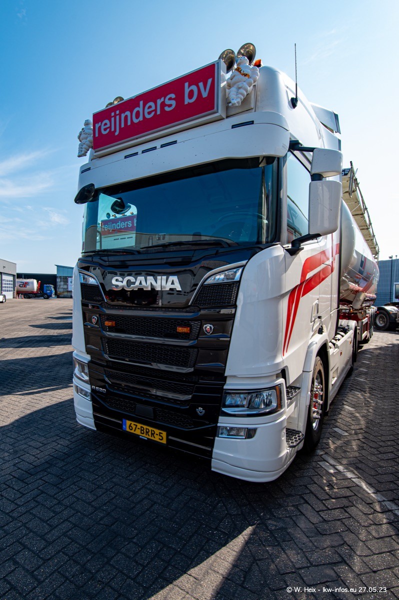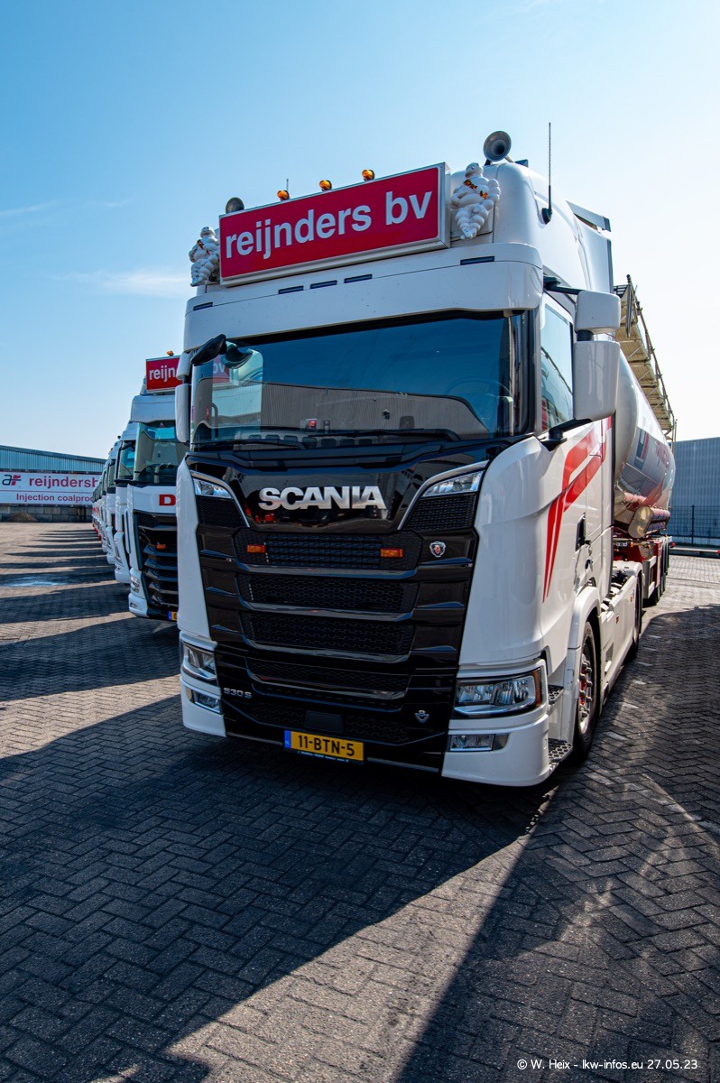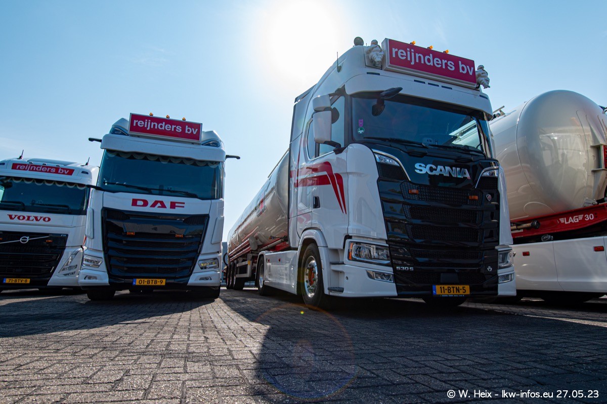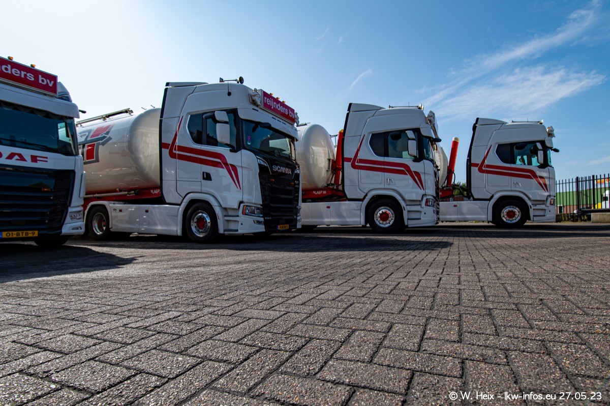 Vor zwei Wochen ist ein besonderer VOLVO FH 5 dazu gekommen. Der ist ohne Hochdach und mit einigem an Zubehör ausgestattet. Ein Fahrer wurde damit zu seinem 25-jährigen Jubiläum überrascht/belohnt. Der erste von drei Renault T Evo ist da, aber noch nicht fertig. Ein paar Bilder habe ich schon gemacht. Der Rest der Fahrzeuge ist bekannt. Es dauert übrigens nicht mehr lange, bis alle VOLVO FH 4 ausgemustert sind. Dann wird der fast komplette Fuhrpark im neuen Design unterwegs sein ....