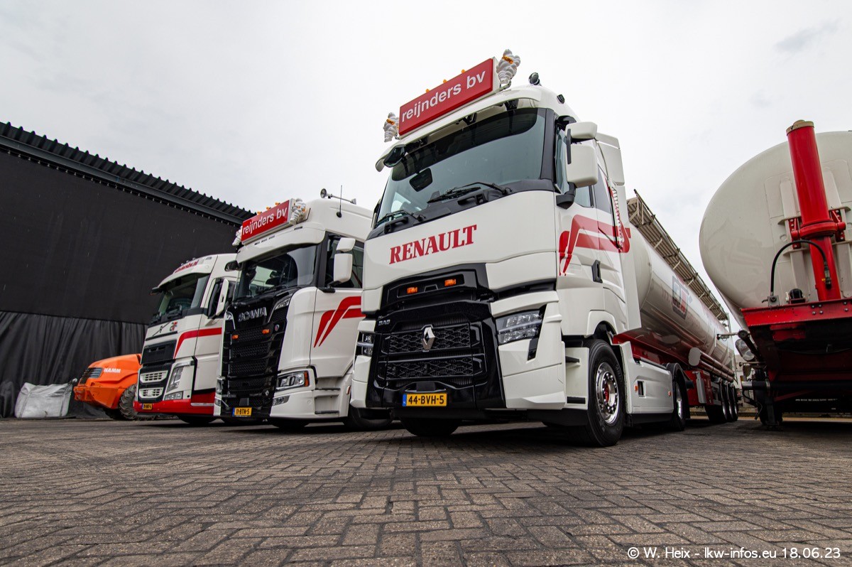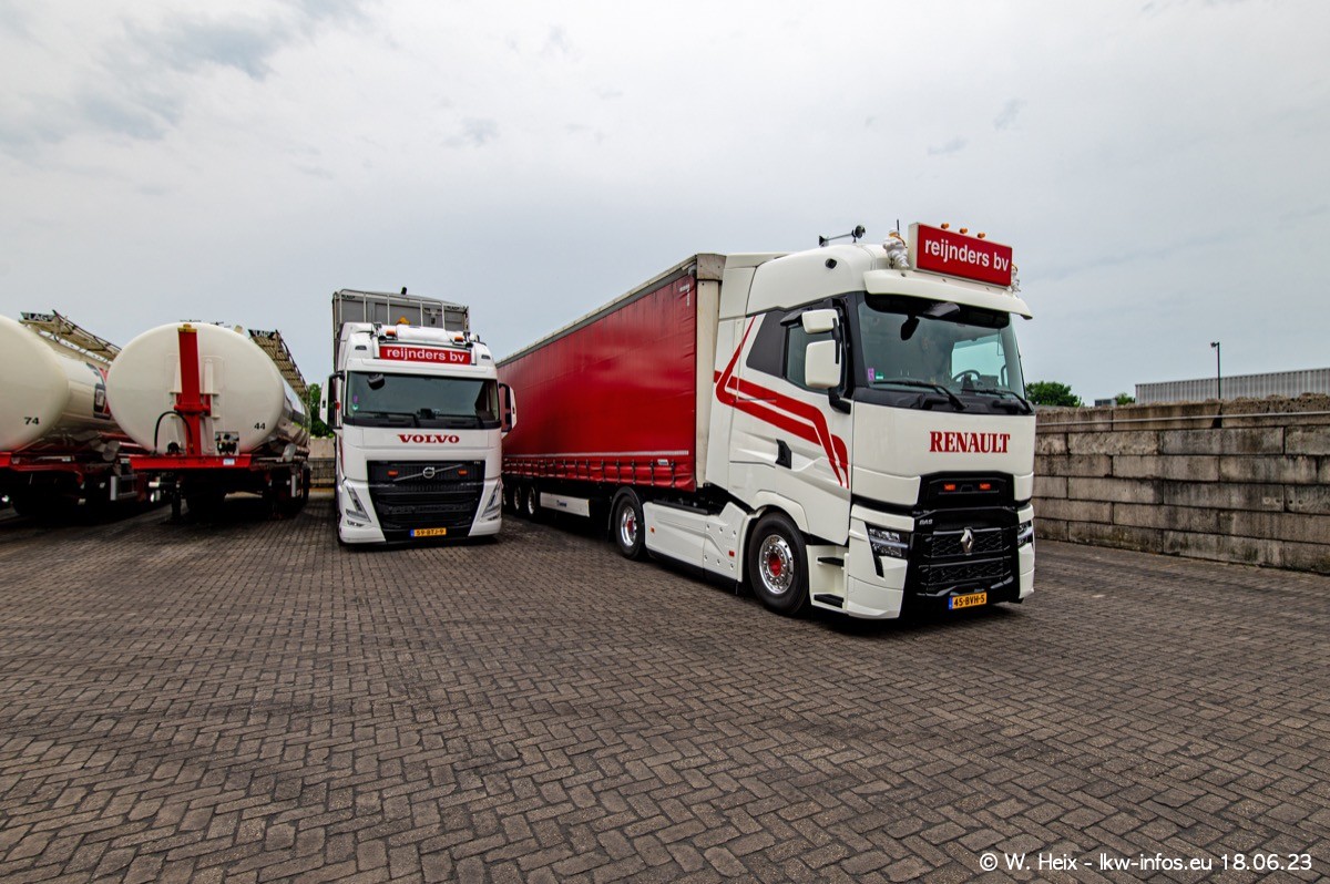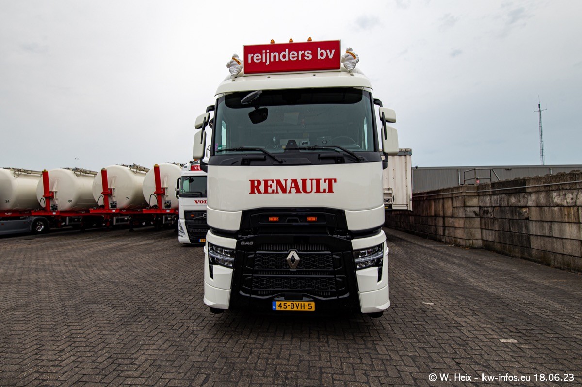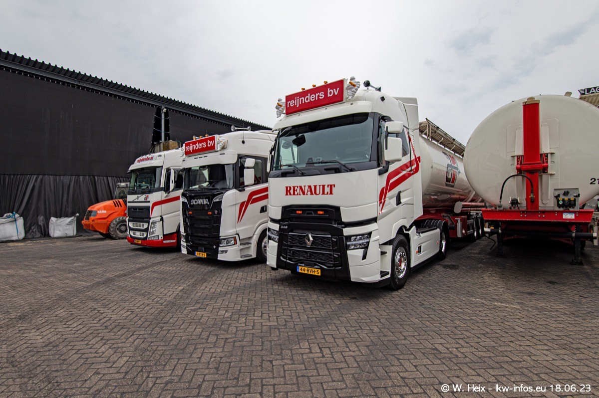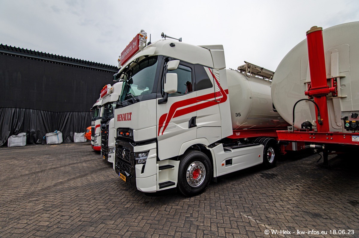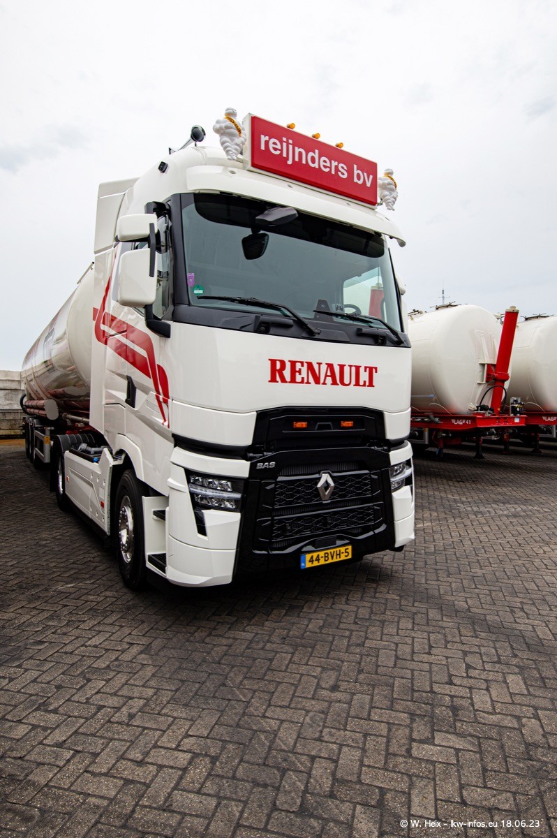 Inzwischen sind zwei der drei bestellten Renault T Evo fertig und im Einsatz. Wegen einer großen Baustelle auf dem Gelände stehen die LKW auf dem freien Platz verteilt und nicht in einer Reihe wie sonst. Das war für mich gut, so konnte ich ein paar schöne Fotos machen.
