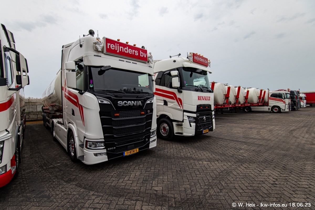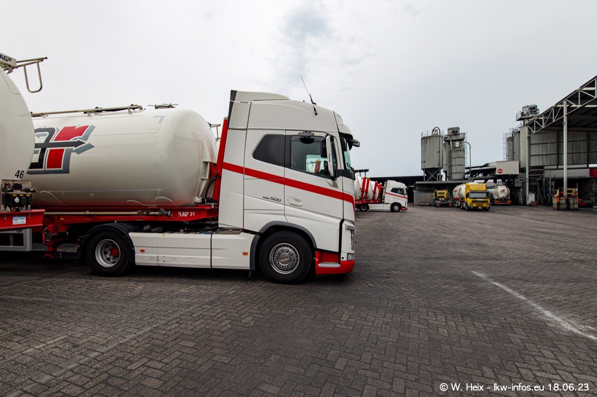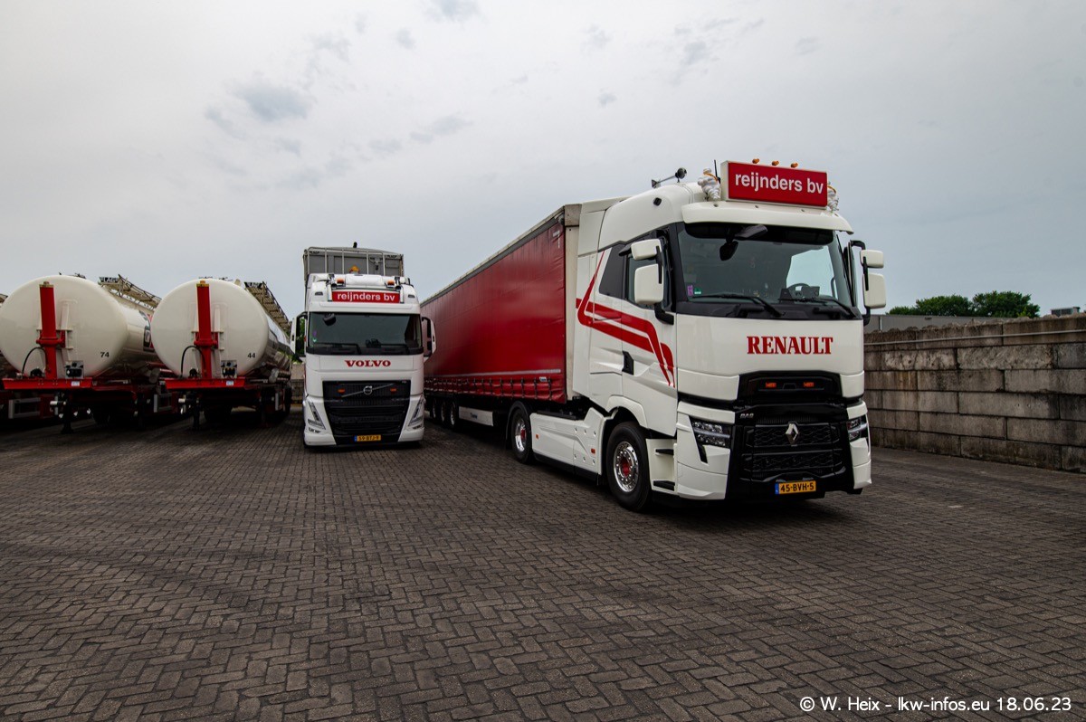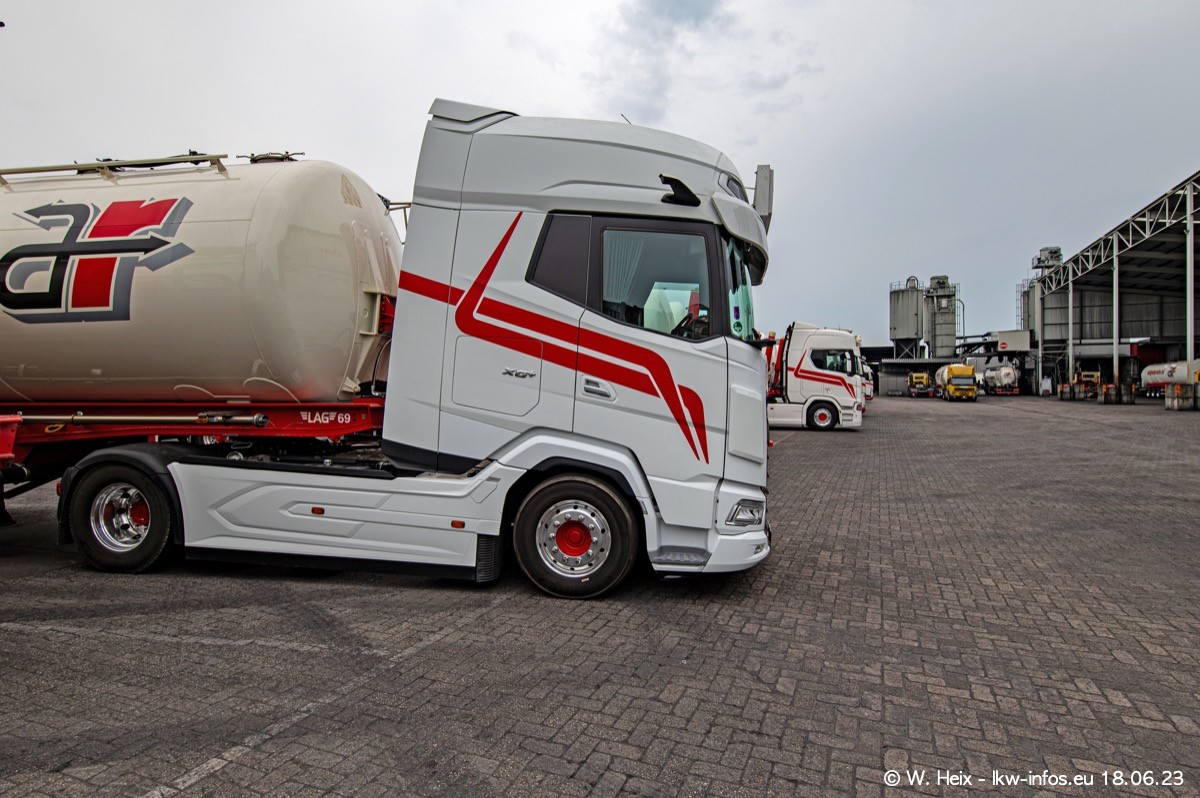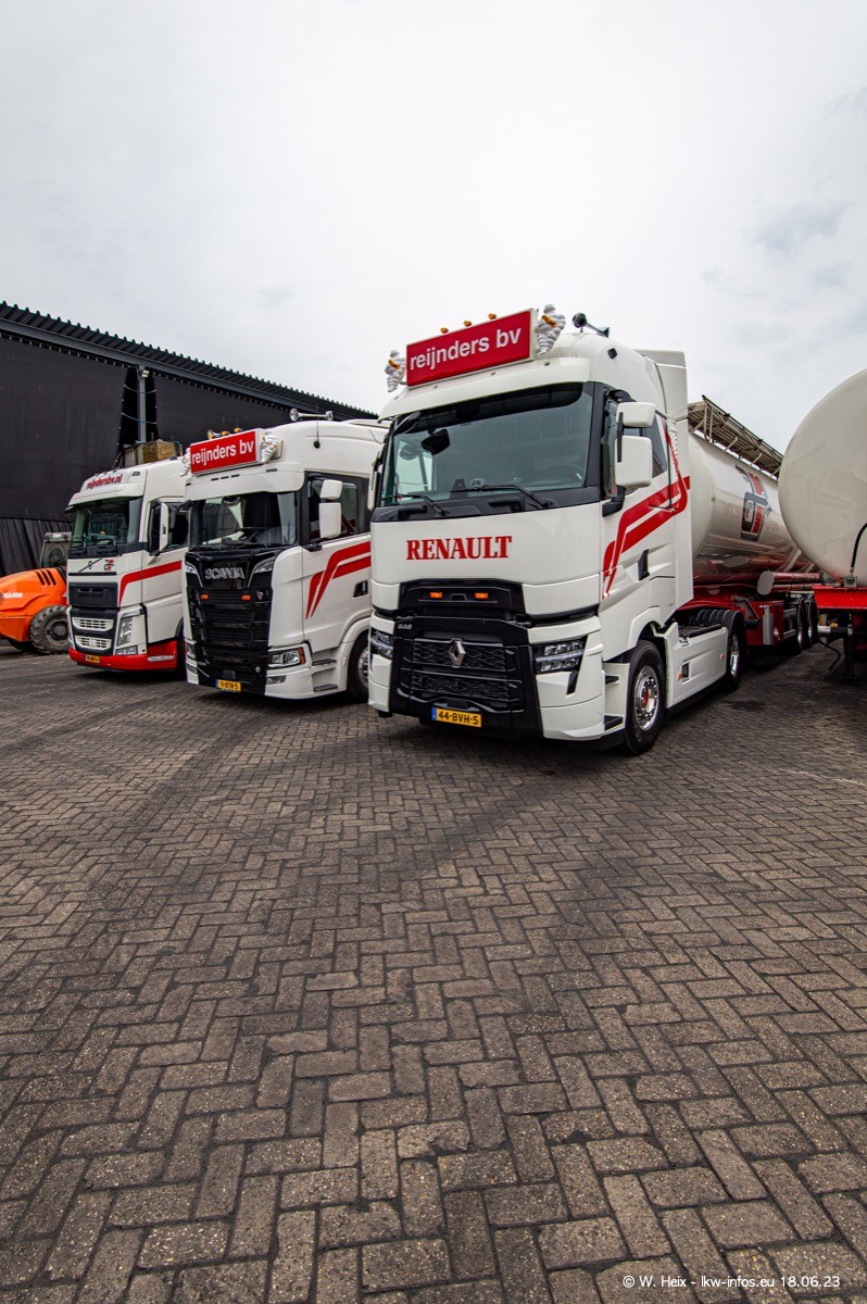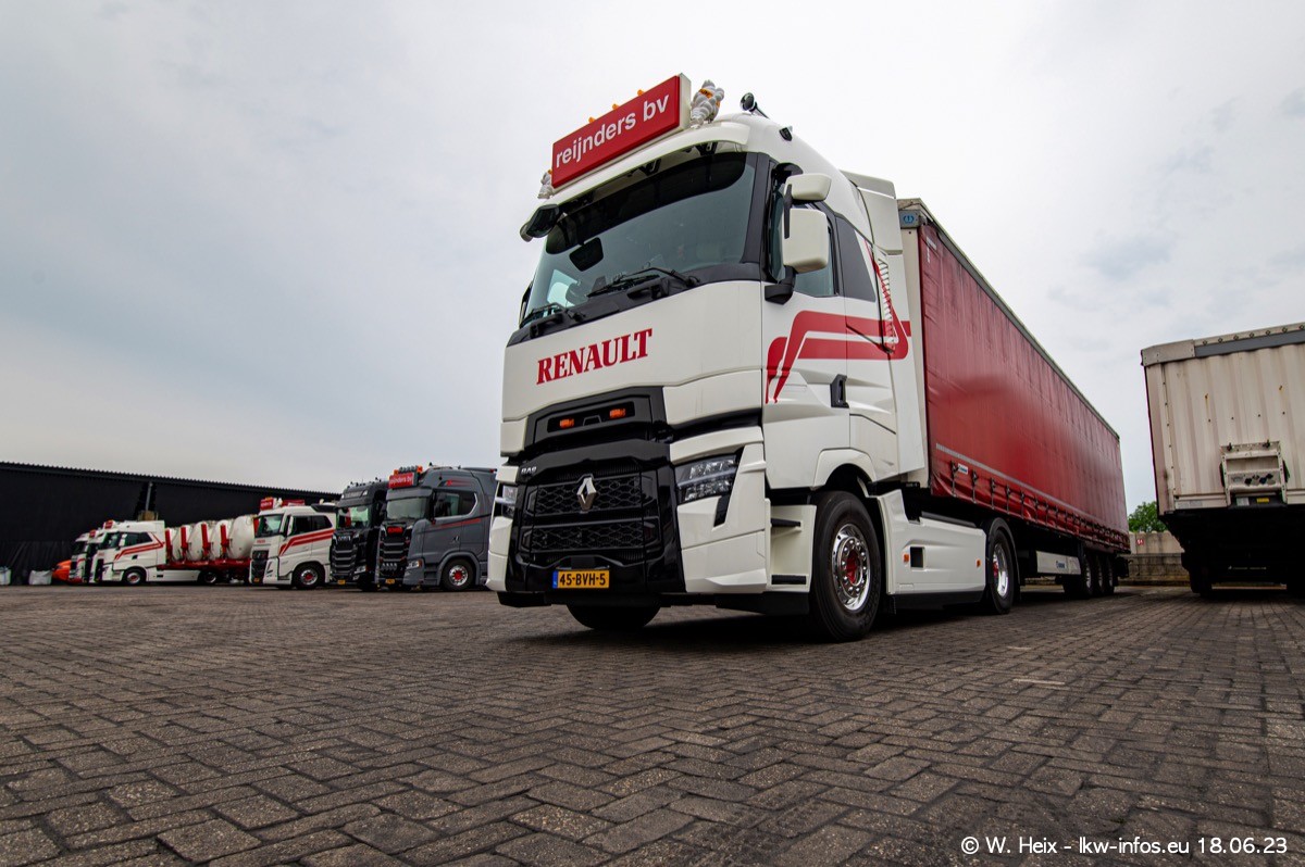 Inzwischen sind zwei der drei bestellten Renault T Evo fertig und im Einsatz. Wegen einer großen Baustelle auf dem Gelände stehen die LKW auf dem freien Platz verteilt und nicht in einer Reihe wie sonst. Das war für mich gut, so konnte ich ein paar schöne Fotos machen.