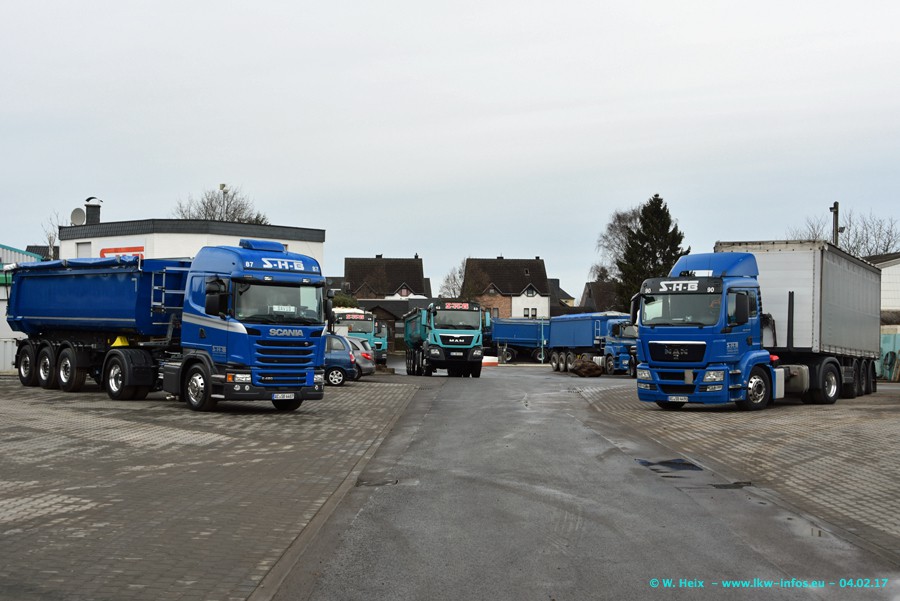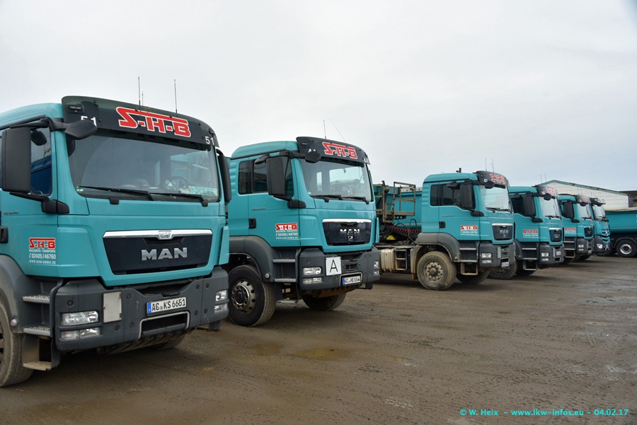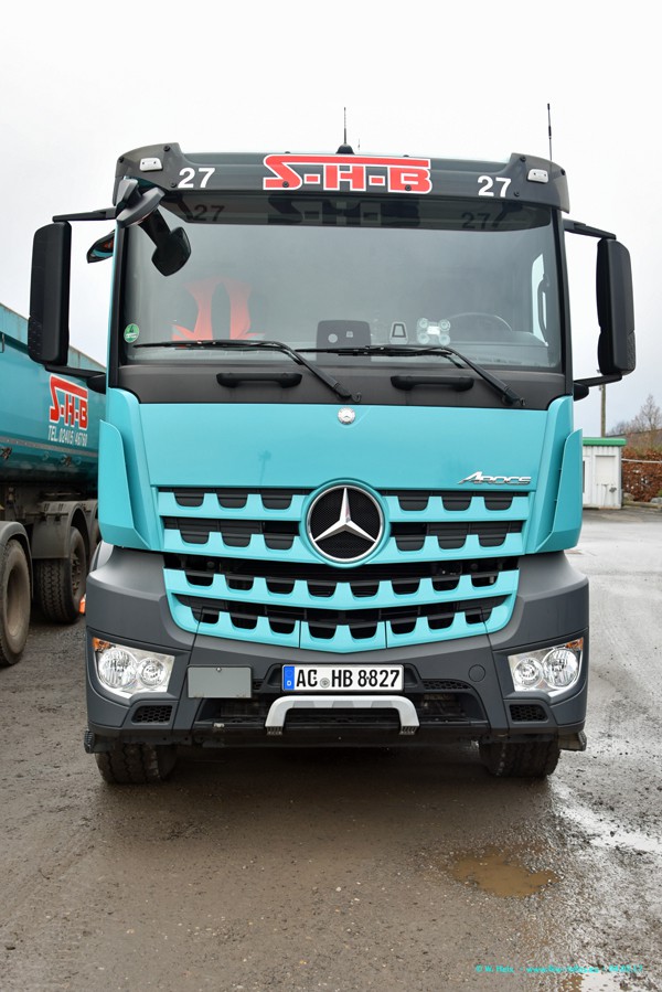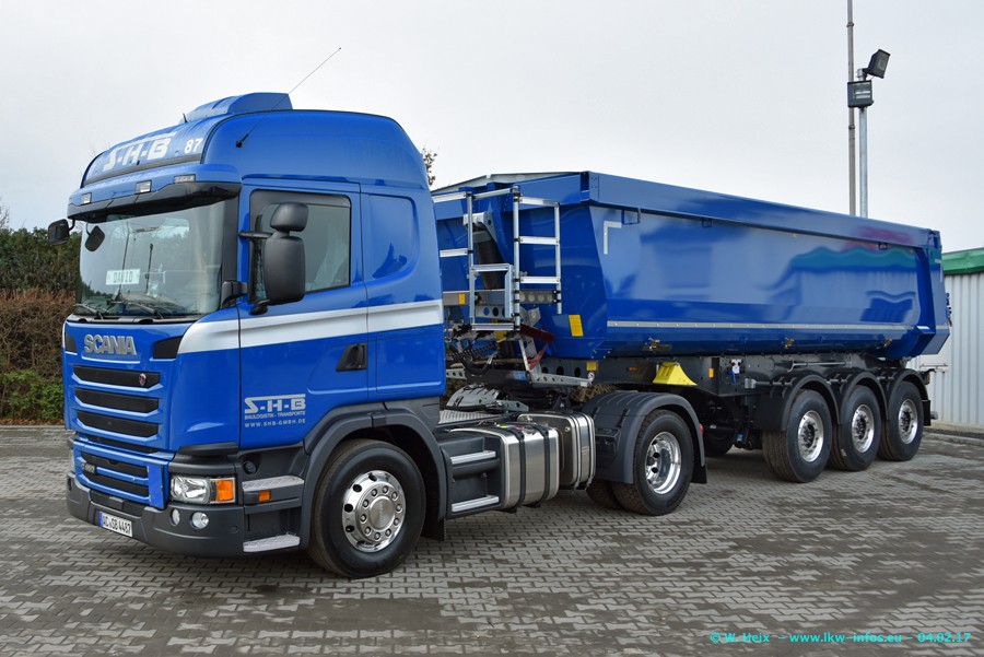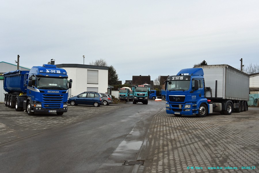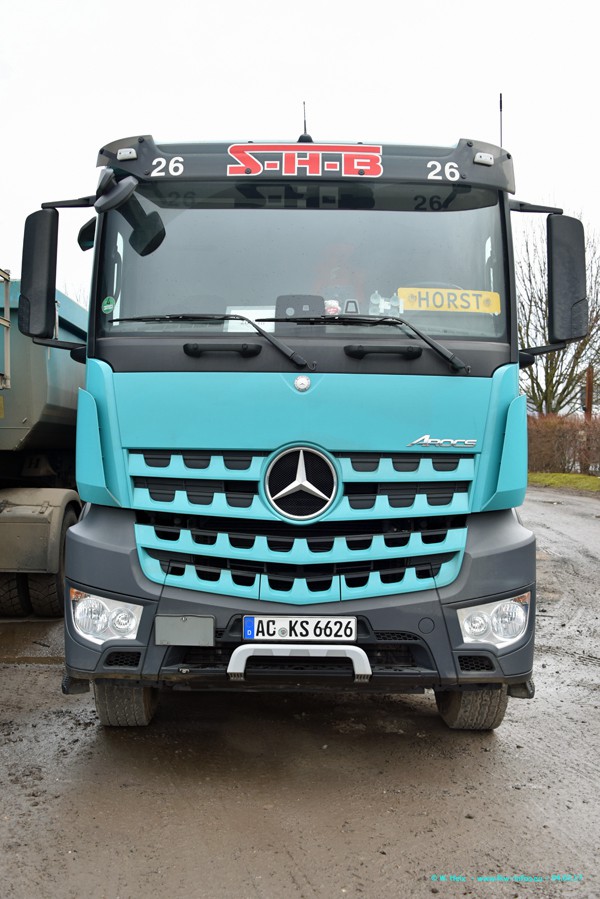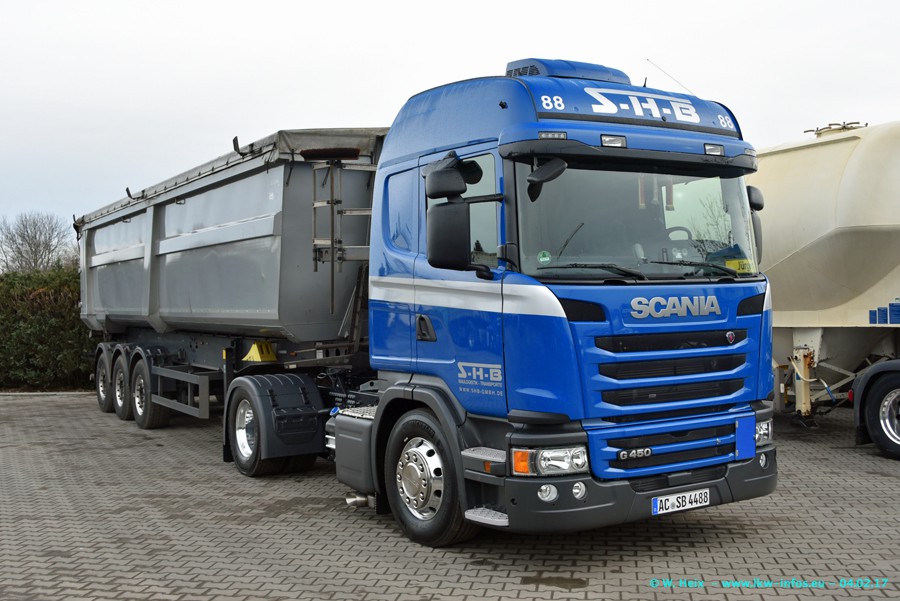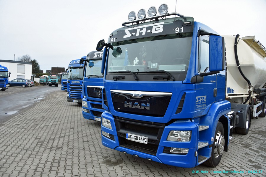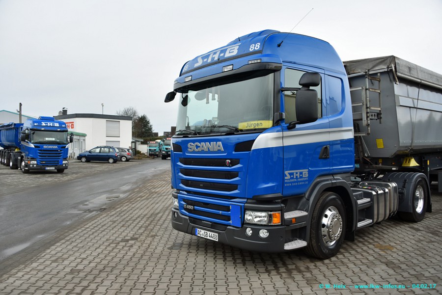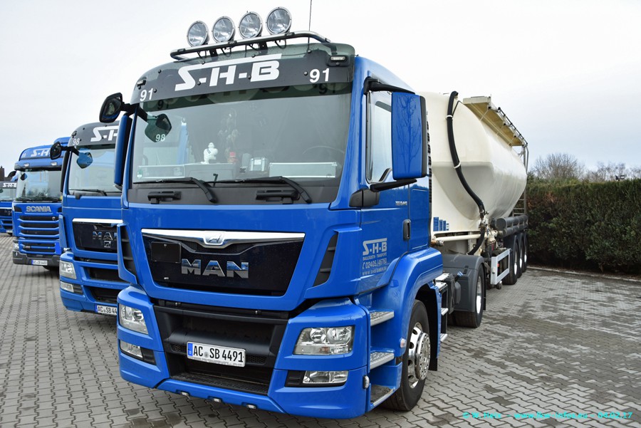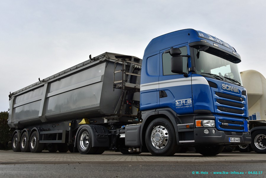 Nach 1,5 Jahren Pause habe ich die Firma S-H-B wieder besucht. Im vergangenen Jahr wurde der Fuhrpark mit zwei Mercedes-Benz Arocs-Zugmaschinen modernisiert. Und gestern wurden von Scania die ersten von insegsamt sechs Scania G 450 Streamline ausgeliefert. Diese sind auf den ersten Bildern zu sehen Der Rest des Fuhrparks ist bekannt. Bedingt durch das winterliche Wetter und den Baustelleneinsatz sind viele der Kipper nicht sauber, was bei Baufahrzeugen oft nicht so ist.