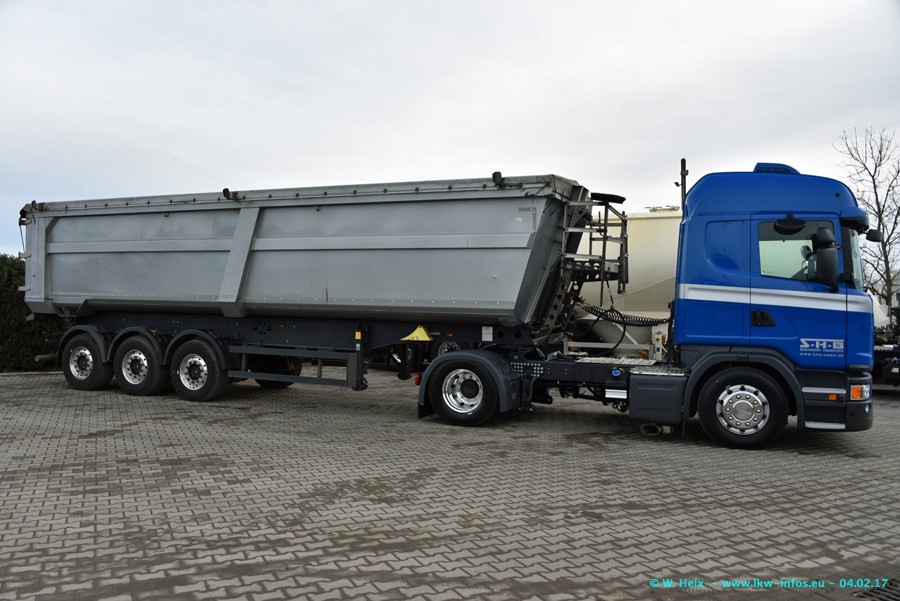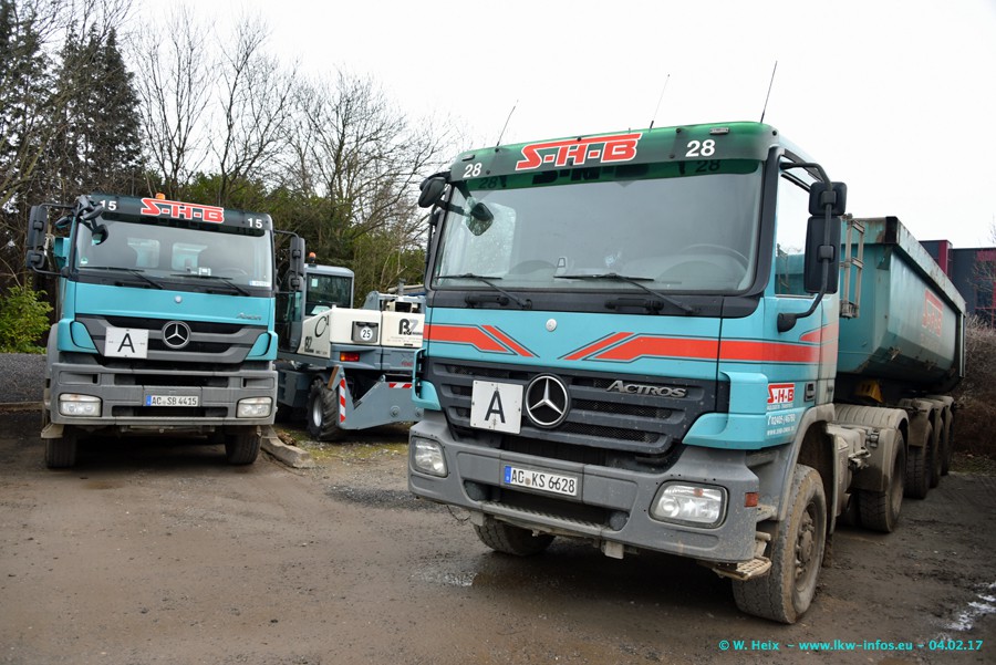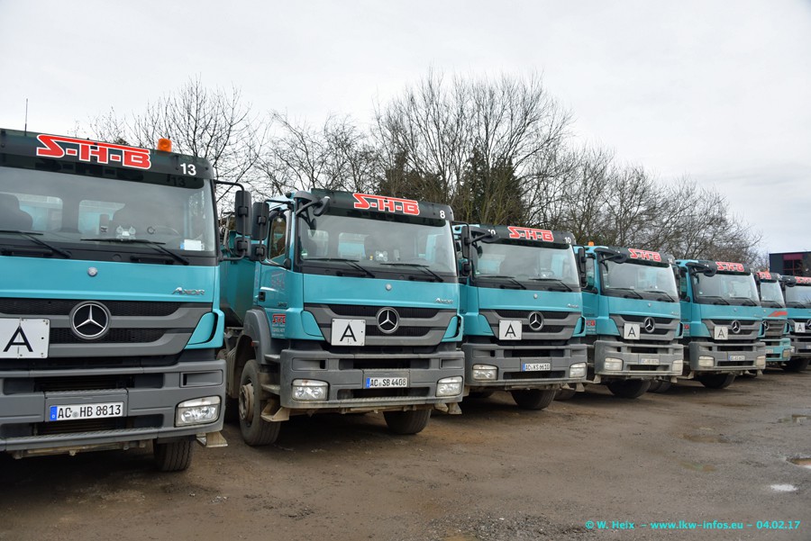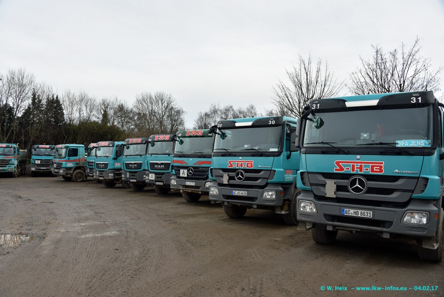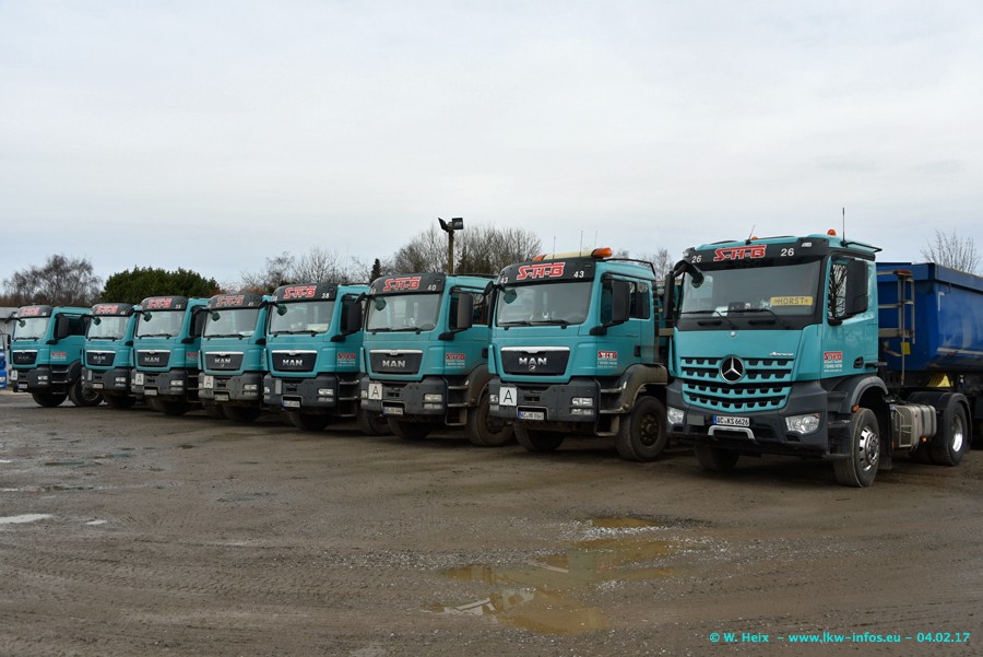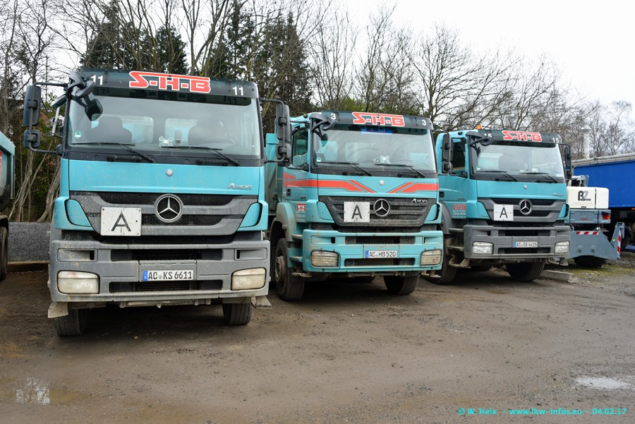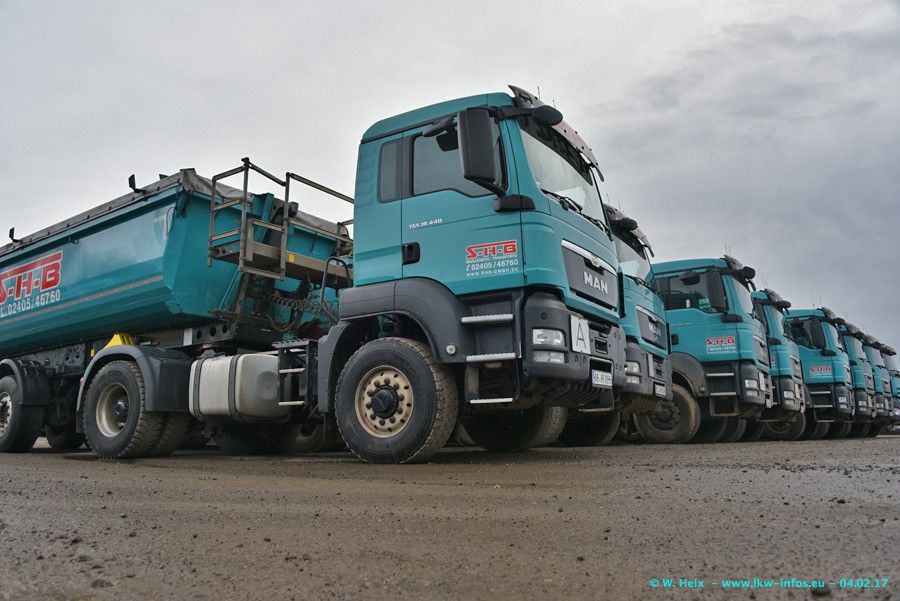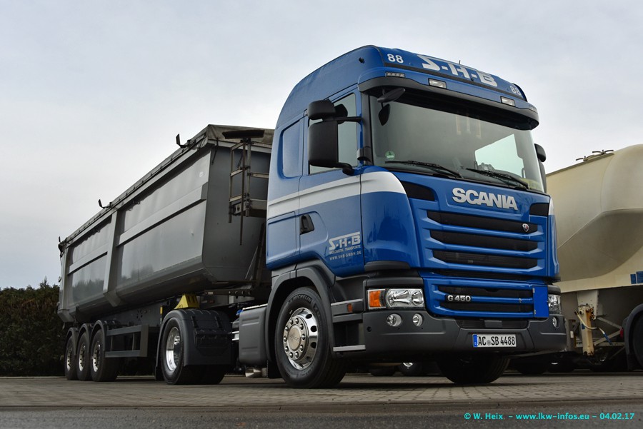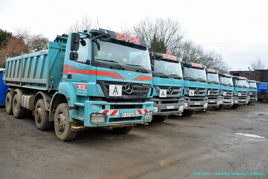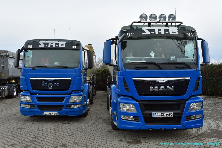Nach 1,5 Jahren Pause habe ich die Firma S-H-B wieder besucht. Im vergangenen Jahr wurde der Fuhrpark mit zwei Mercedes-Benz Arocs-Zugmaschinen modernisiert. Und gestern wurden von Scania die ersten von insegsamt sechs Scania G 450 Streamline ausgeliefert. Diese sind auf den ersten Bildern zu sehen Der Rest des Fuhrparks ist bekannt. Bedingt durch das winterliche Wetter und den Baustelleneinsatz sind viele der Kipper nicht sauber, was bei Baufahrzeugen oft nicht so ist.