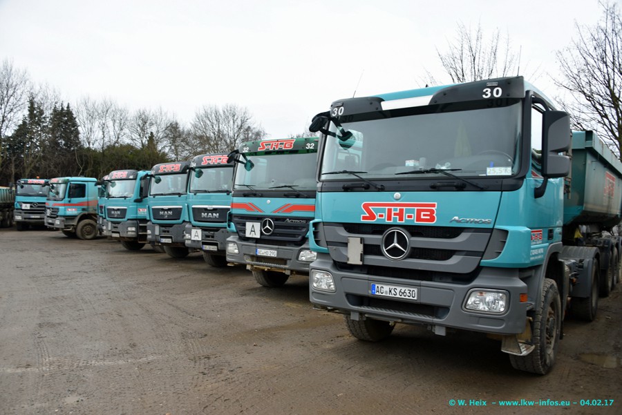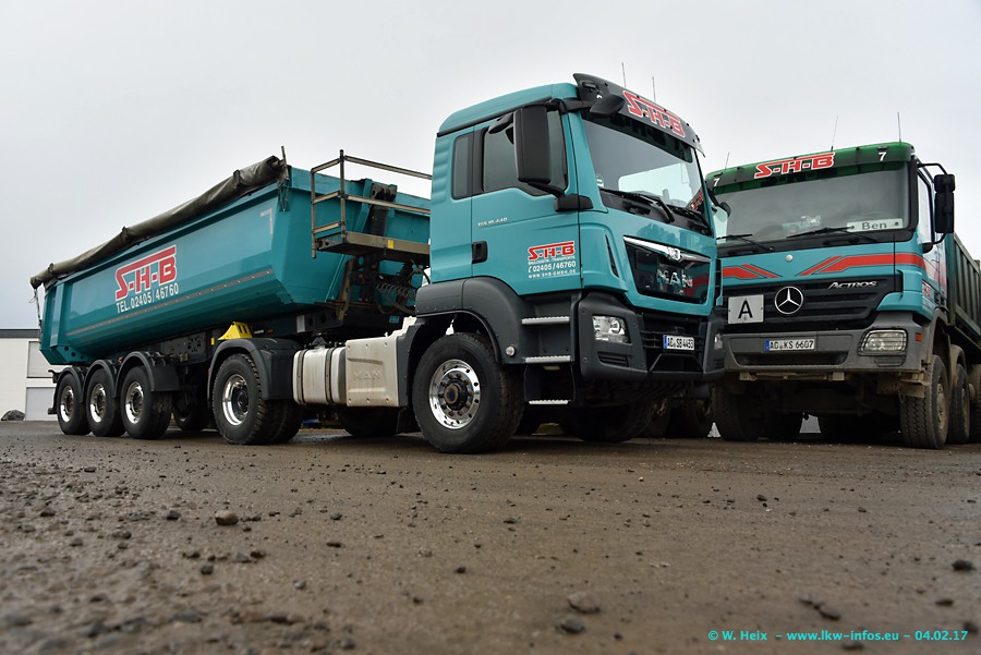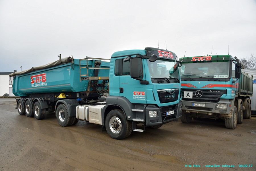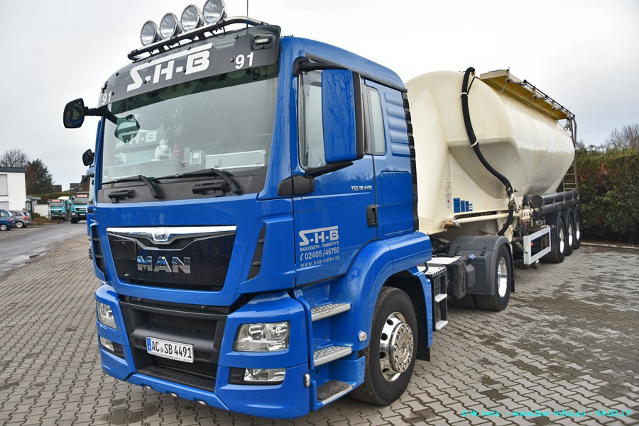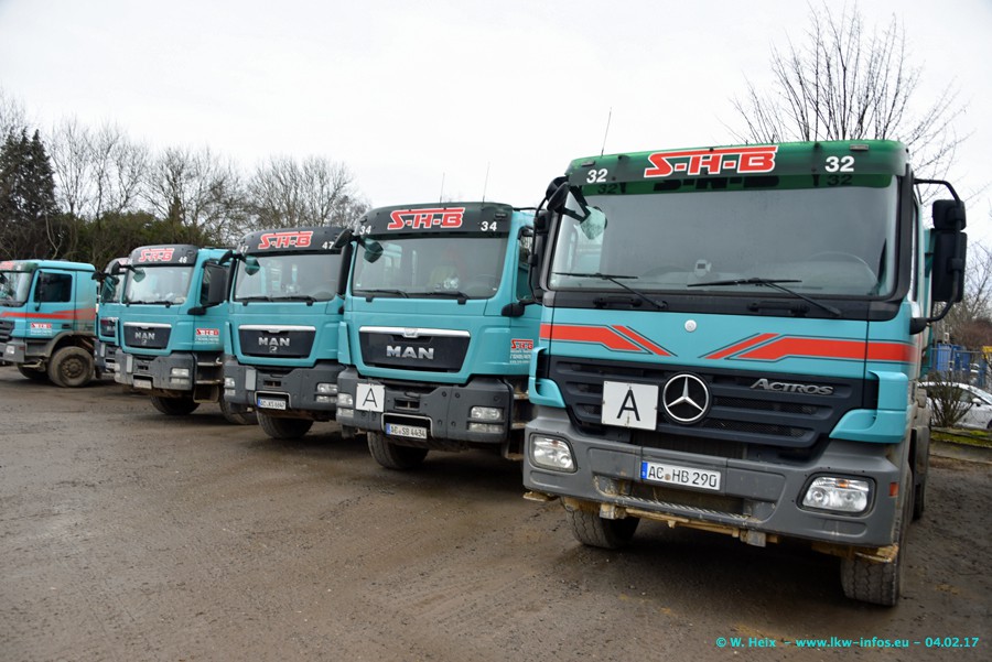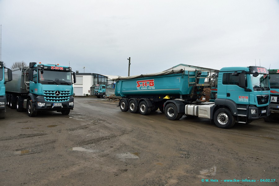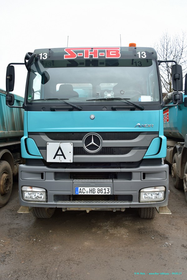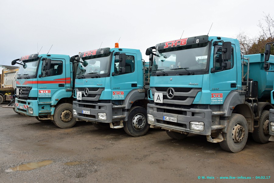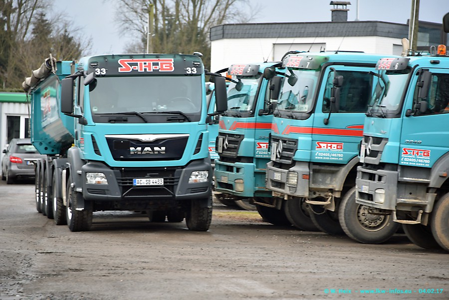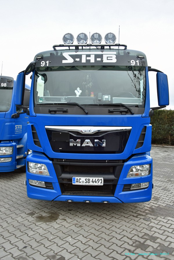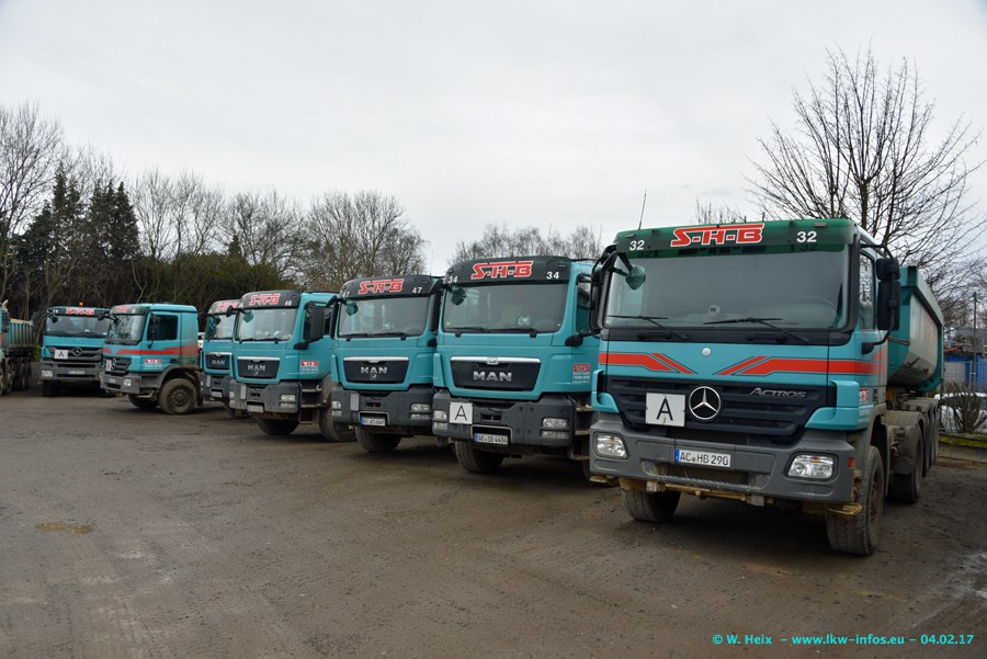 Nach 1,5 Jahren Pause habe ich die Firma S-H-B wieder besucht. Im vergangenen Jahr wurde der Fuhrpark mit zwei Mercedes-Benz Arocs-Zugmaschinen modernisiert. Und gestern wurden von Scania die ersten von insegsamt sechs Scania G 450 Streamline ausgeliefert. Diese sind auf den ersten Bildern zu sehen Der Rest des Fuhrparks ist bekannt. Bedingt durch das winterliche Wetter und den Baustelleneinsatz sind viele der Kipper nicht sauber, was bei Baufahrzeugen oft nicht so ist.