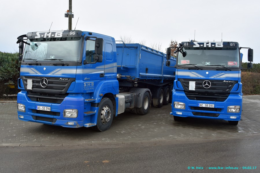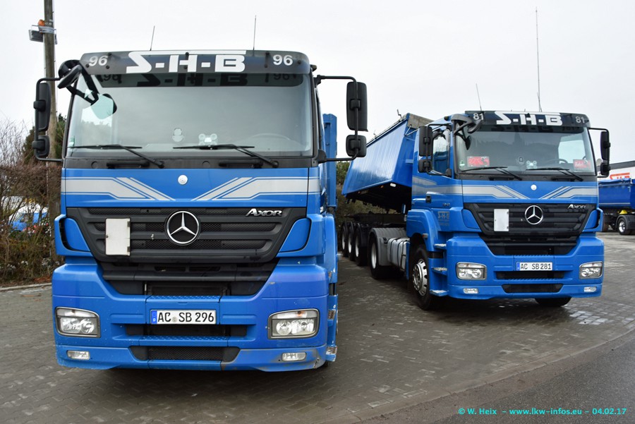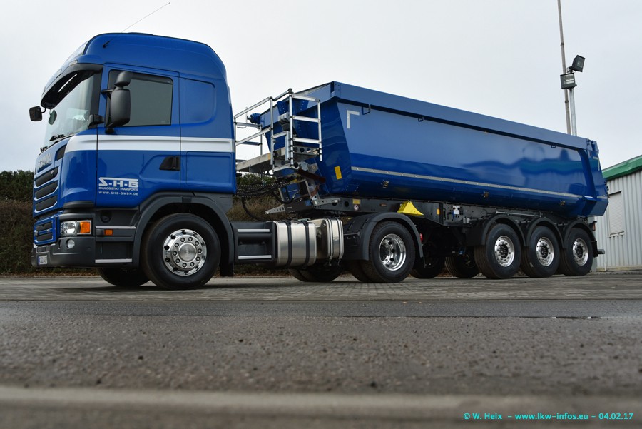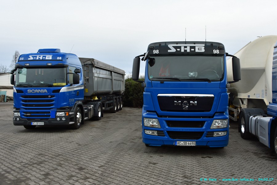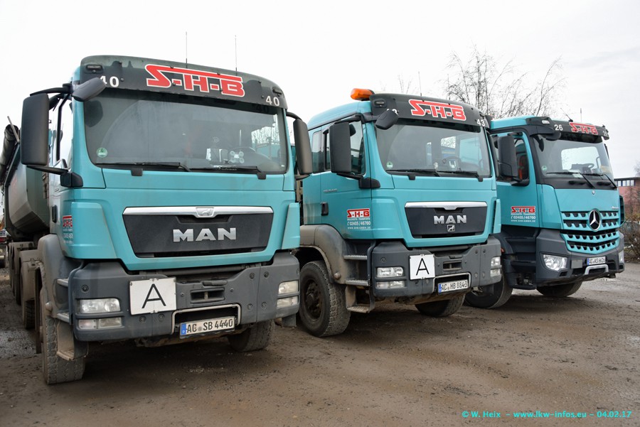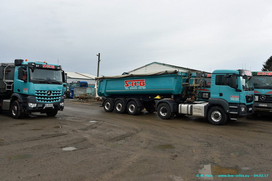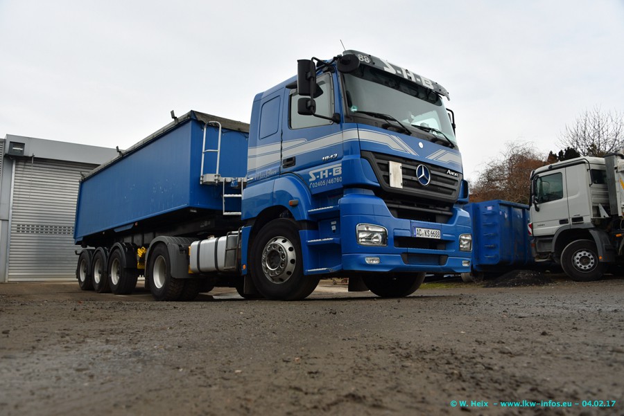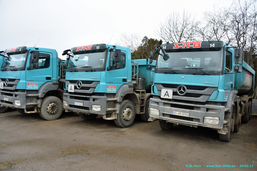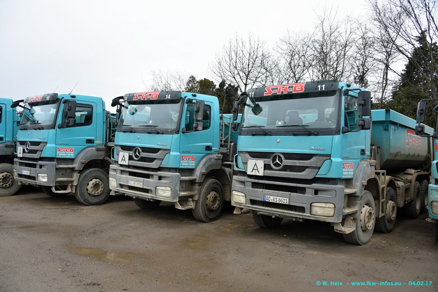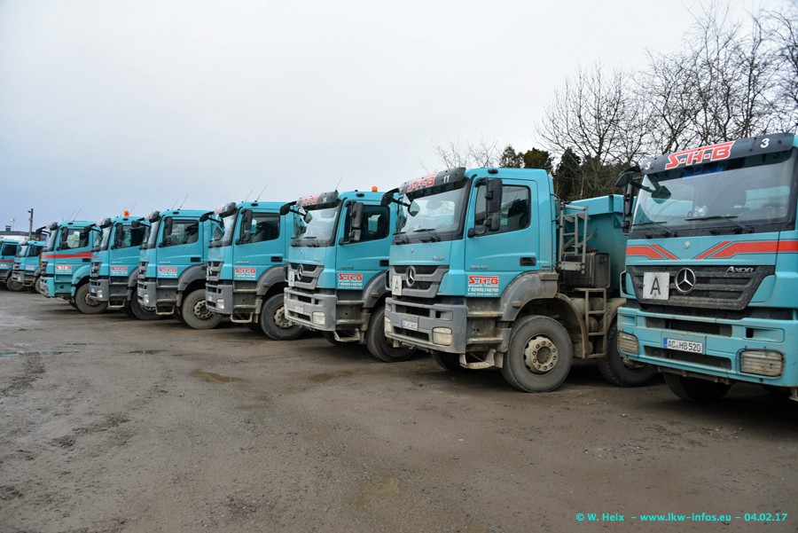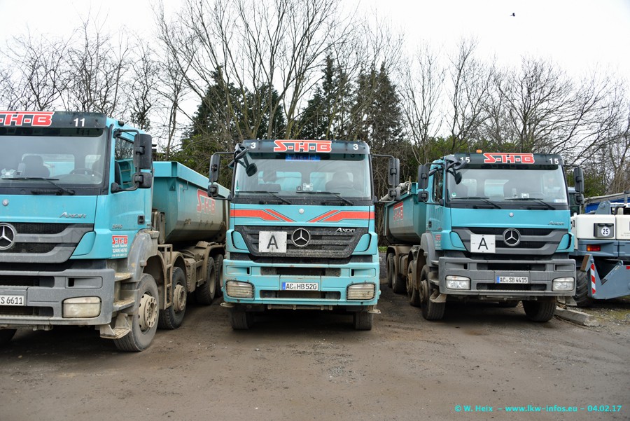 Nach 1,5 Jahren Pause habe ich die Firma S-H-B wieder besucht. Im vergangenen Jahr wurde der Fuhrpark mit zwei Mercedes-Benz Arocs-Zugmaschinen modernisiert. Und gestern wurden von Scania die ersten von insegsamt sechs Scania G 450 Streamline ausgeliefert. Diese sind auf den ersten Bildern zu sehen Der Rest des Fuhrparks ist bekannt. Bedingt durch das winterliche Wetter und den Baustelleneinsatz sind viele der Kipper nicht sauber, was bei Baufahrzeugen oft nicht so ist.