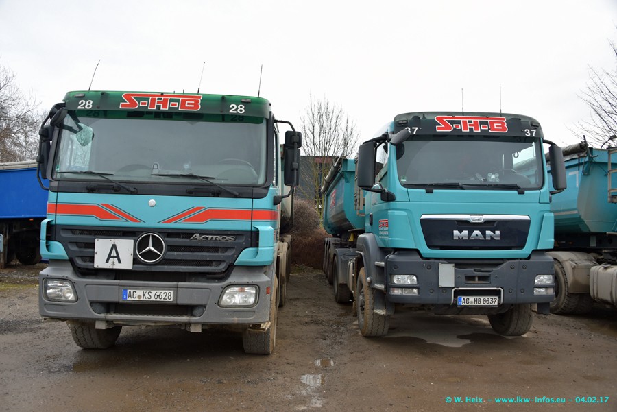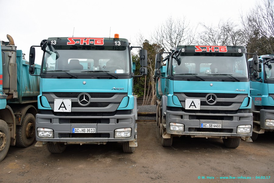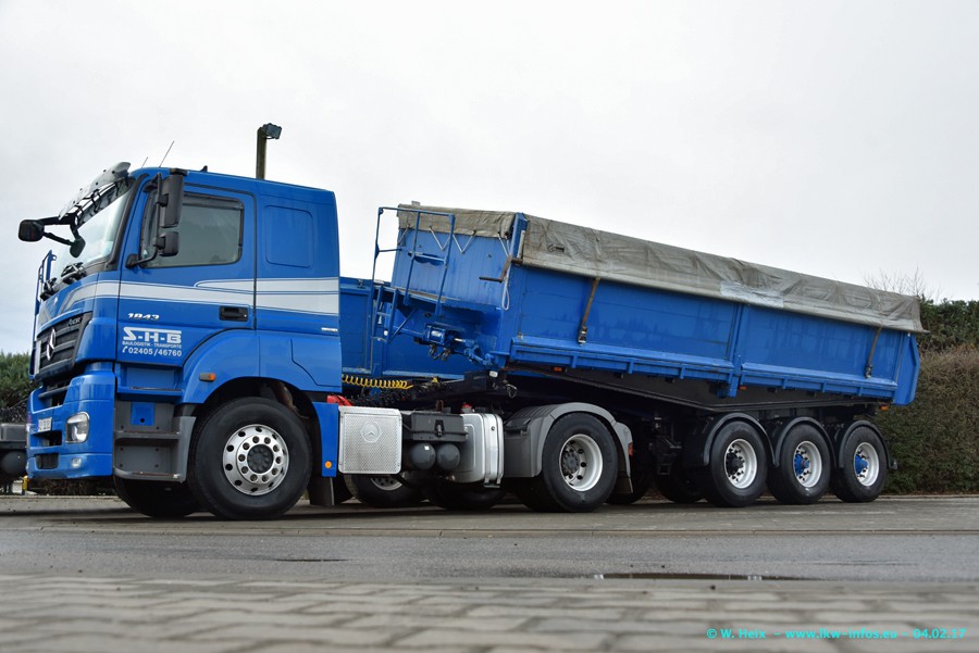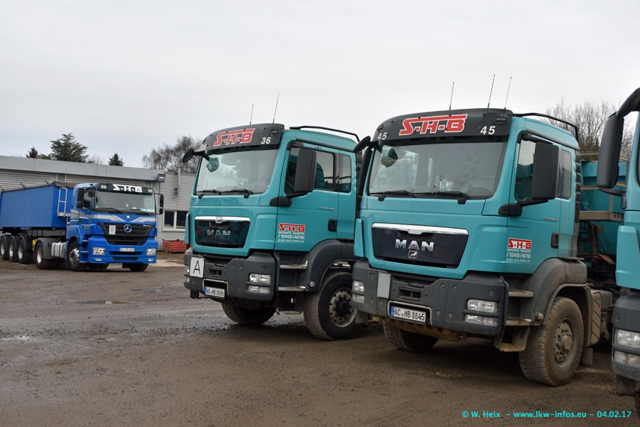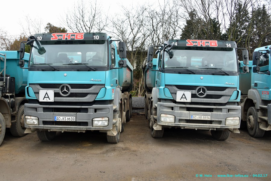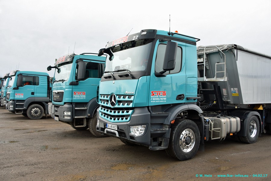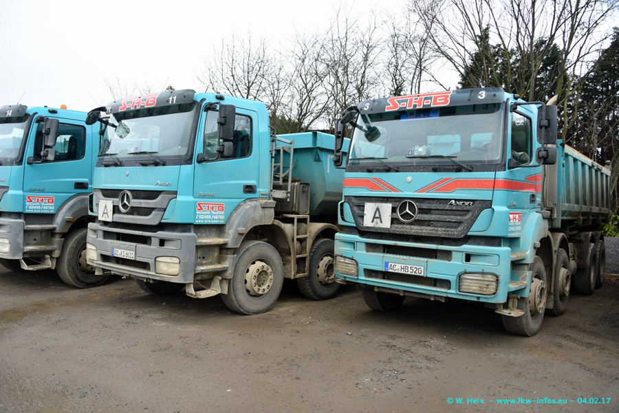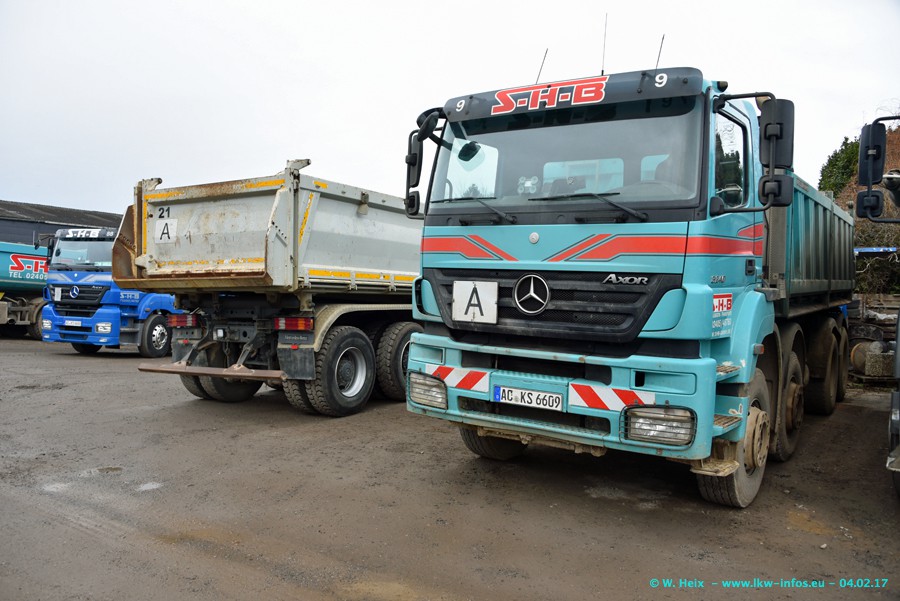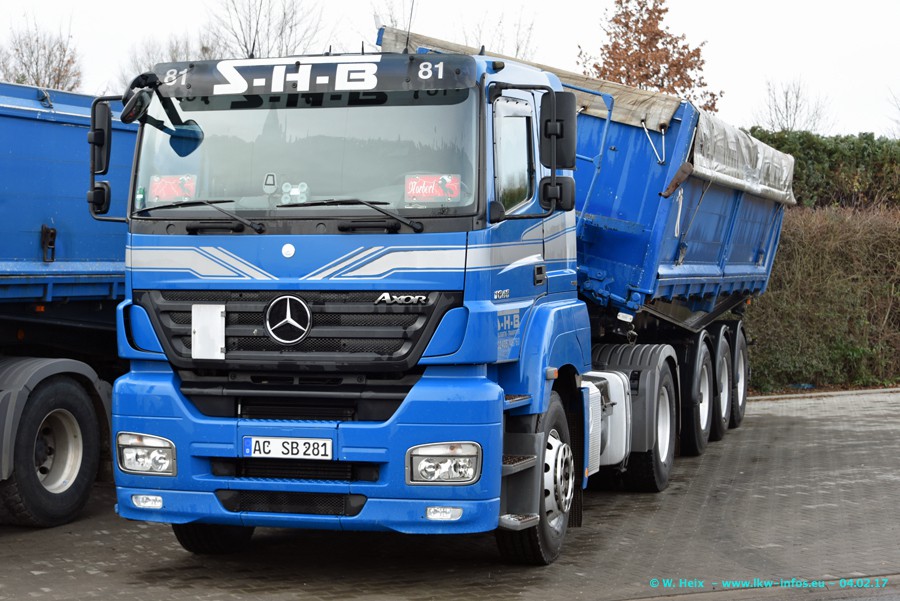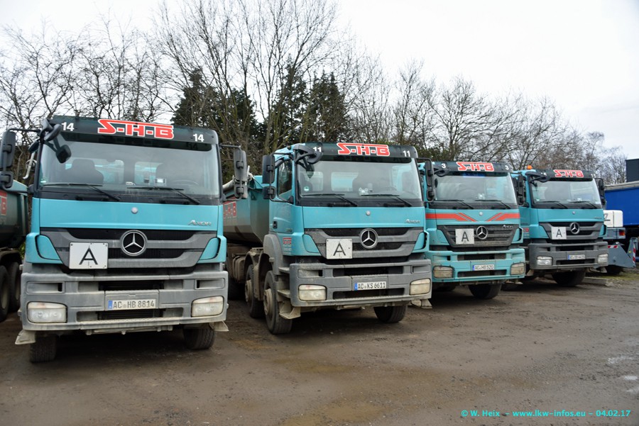 Nach 1,5 Jahren Pause habe ich die Firma S-H-B wieder besucht. Im vergangenen Jahr wurde der Fuhrpark mit zwei Mercedes-Benz Arocs-Zugmaschinen modernisiert. Und gestern wurden von Scania die ersten von insegsamt sechs Scania G 450 Streamline ausgeliefert. Diese sind auf den ersten Bildern zu sehen Der Rest des Fuhrparks ist bekannt. Bedingt durch das winterliche Wetter und den Baustelleneinsatz sind viele der Kipper nicht sauber, was bei Baufahrzeugen oft nicht so ist.
