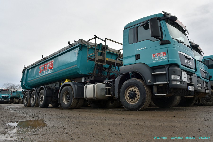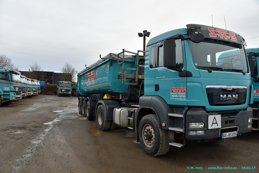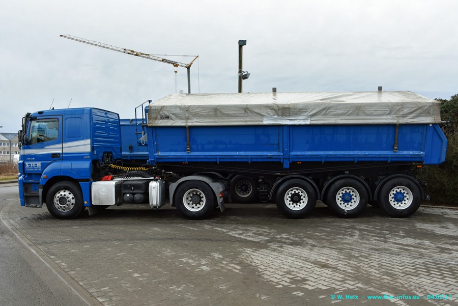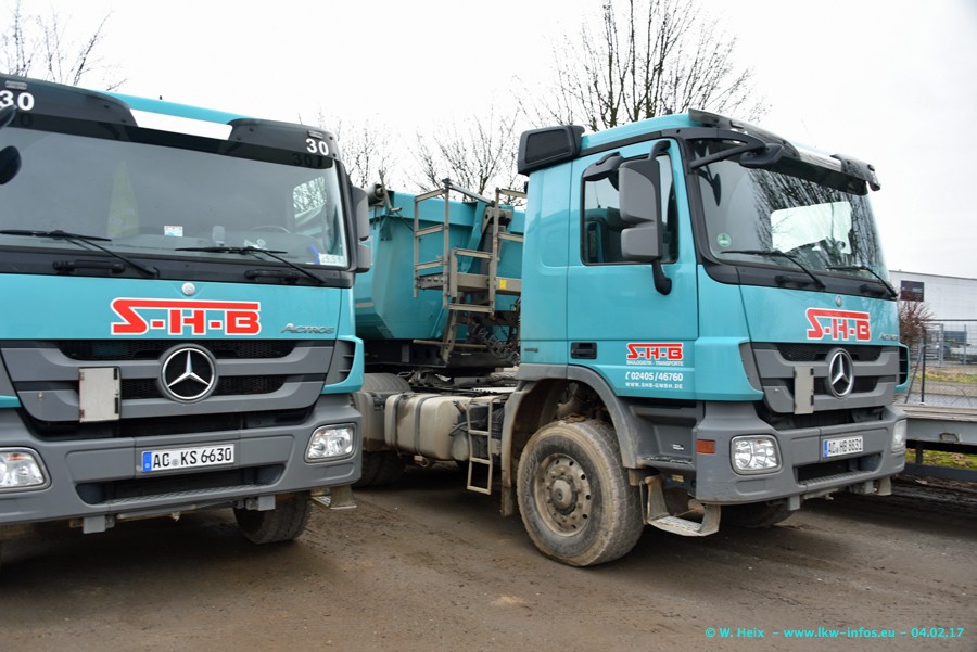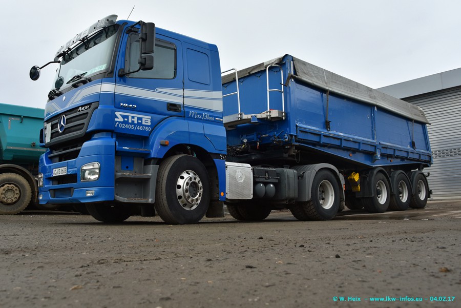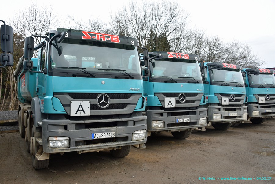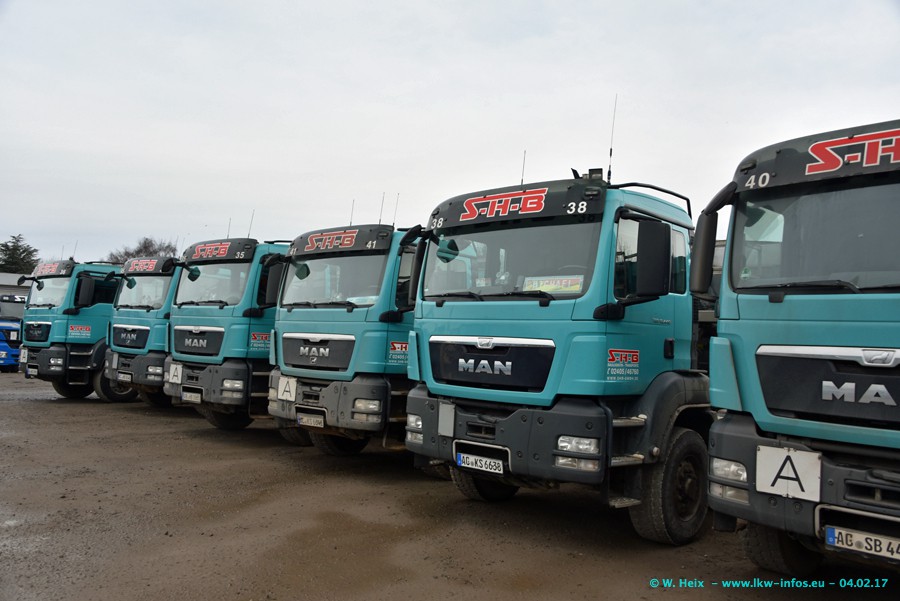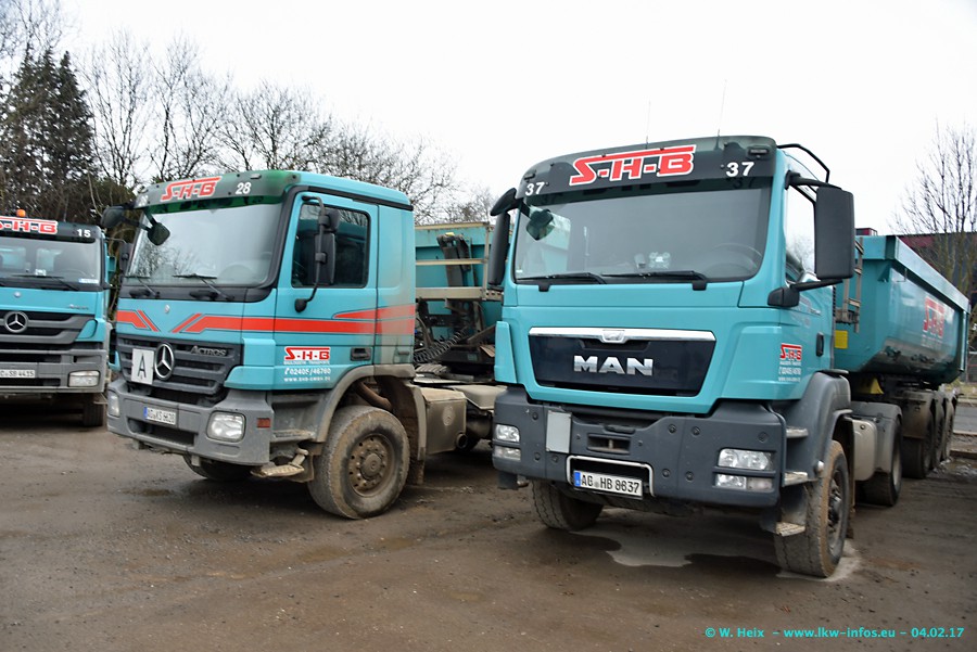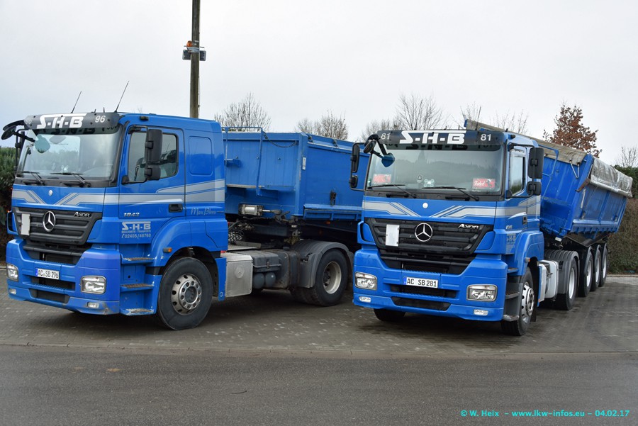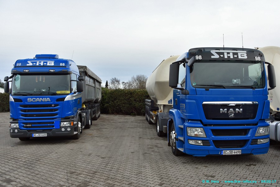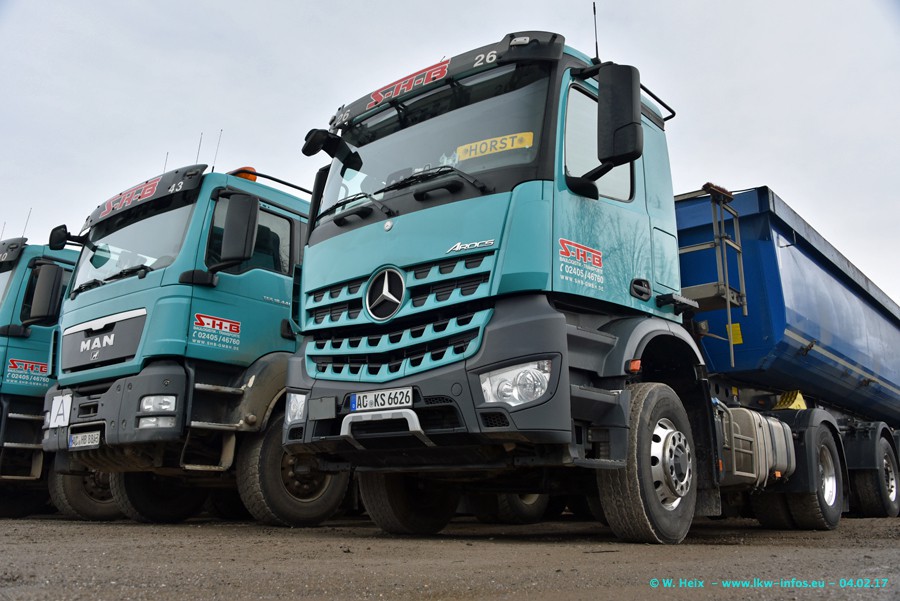 Nach 1,5 Jahren Pause habe ich die Firma S-H-B wieder besucht. Im vergangenen Jahr wurde der Fuhrpark mit zwei Mercedes-Benz Arocs-Zugmaschinen modernisiert. Und gestern wurden von Scania die ersten von insegsamt sechs Scania G 450 Streamline ausgeliefert. Diese sind auf den ersten Bildern zu sehen Der Rest des Fuhrparks ist bekannt. Bedingt durch das winterliche Wetter und den Baustelleneinsatz sind viele der Kipper nicht sauber, was bei Baufahrzeugen oft nicht so ist.