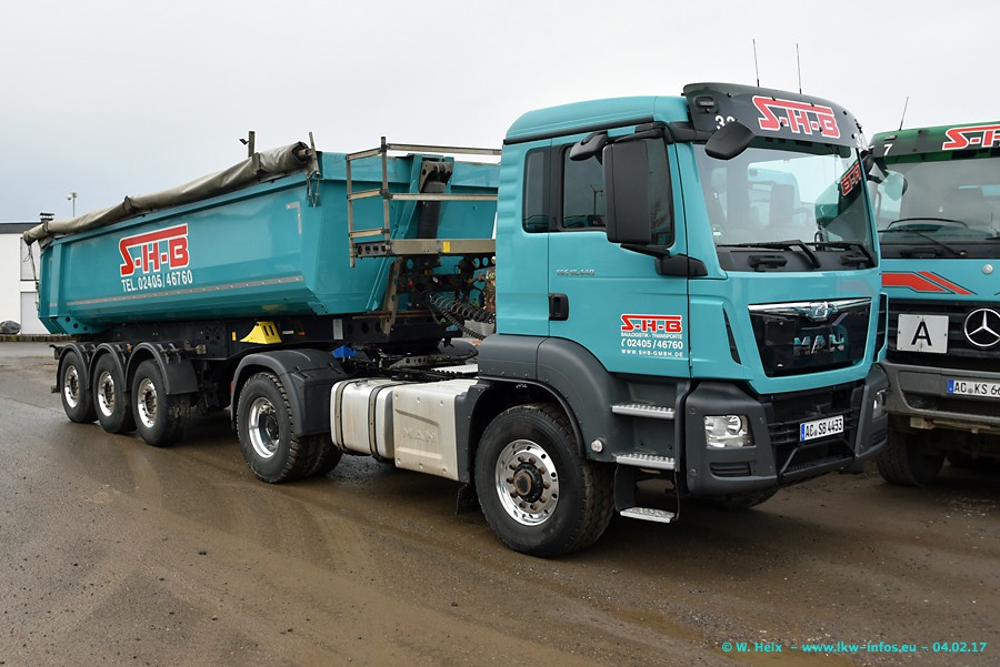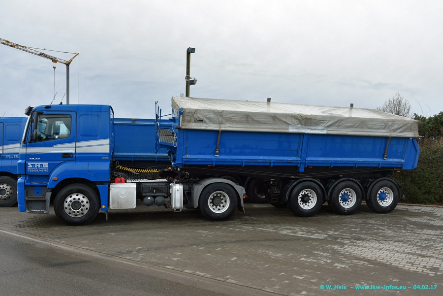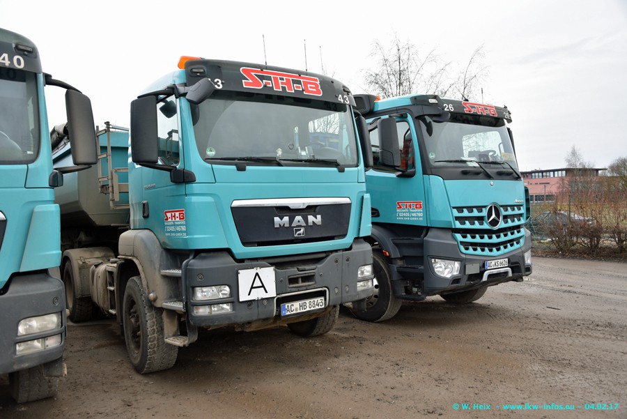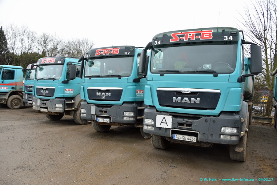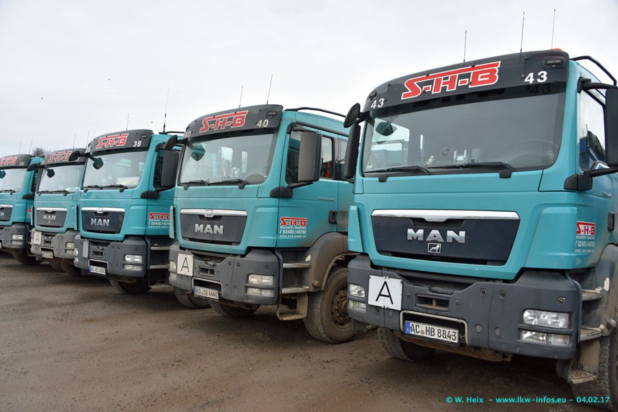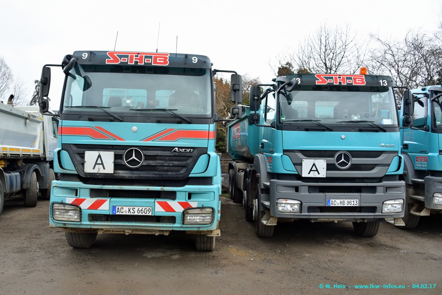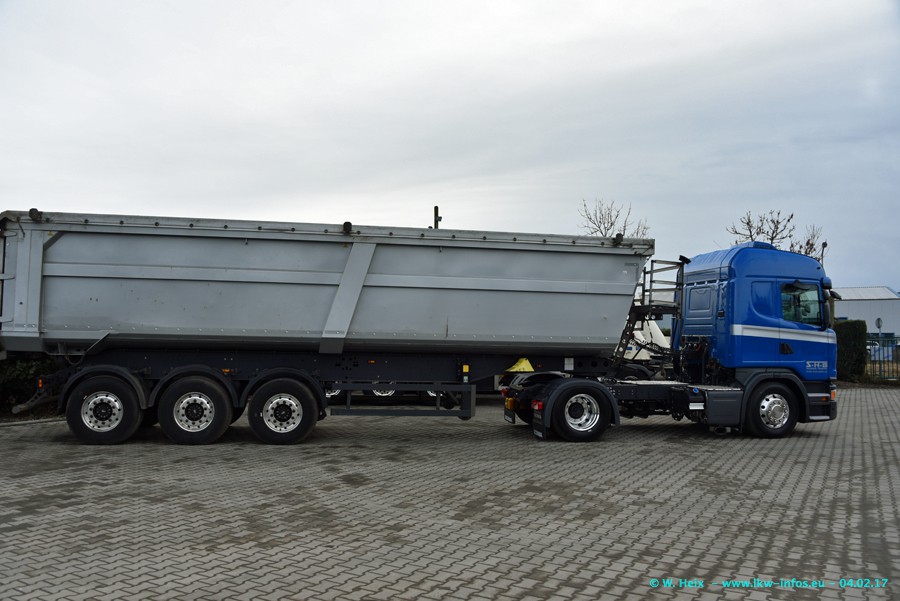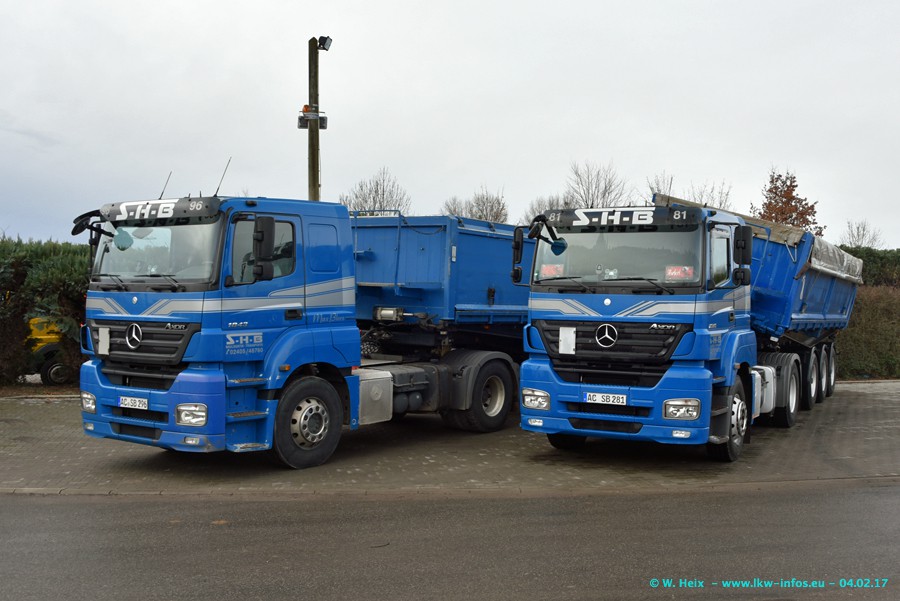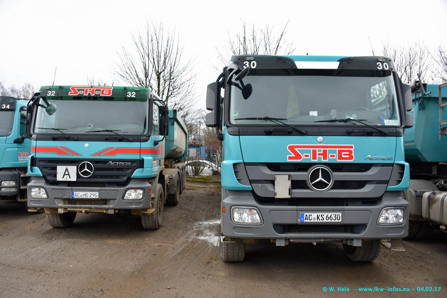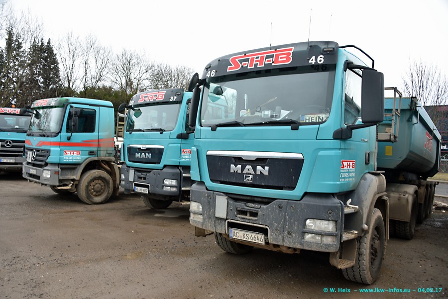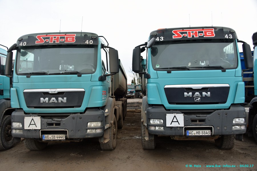 Nach 1,5 Jahren Pause habe ich die Firma S-H-B wieder besucht. Im vergangenen Jahr wurde der Fuhrpark mit zwei Mercedes-Benz Arocs-Zugmaschinen modernisiert. Und gestern wurden von Scania die ersten von insegsamt sechs Scania G 450 Streamline ausgeliefert. Diese sind auf den ersten Bildern zu sehen Der Rest des Fuhrparks ist bekannt. Bedingt durch das winterliche Wetter und den Baustelleneinsatz sind viele der Kipper nicht sauber, was bei Baufahrzeugen oft nicht so ist.
