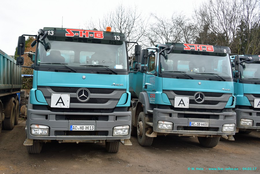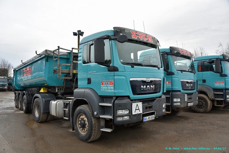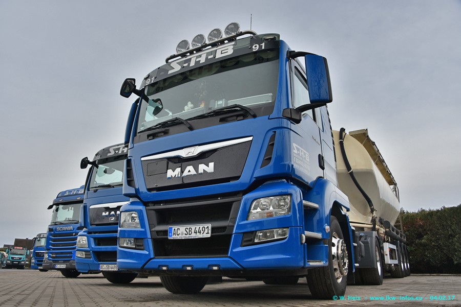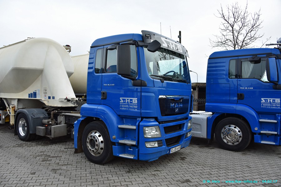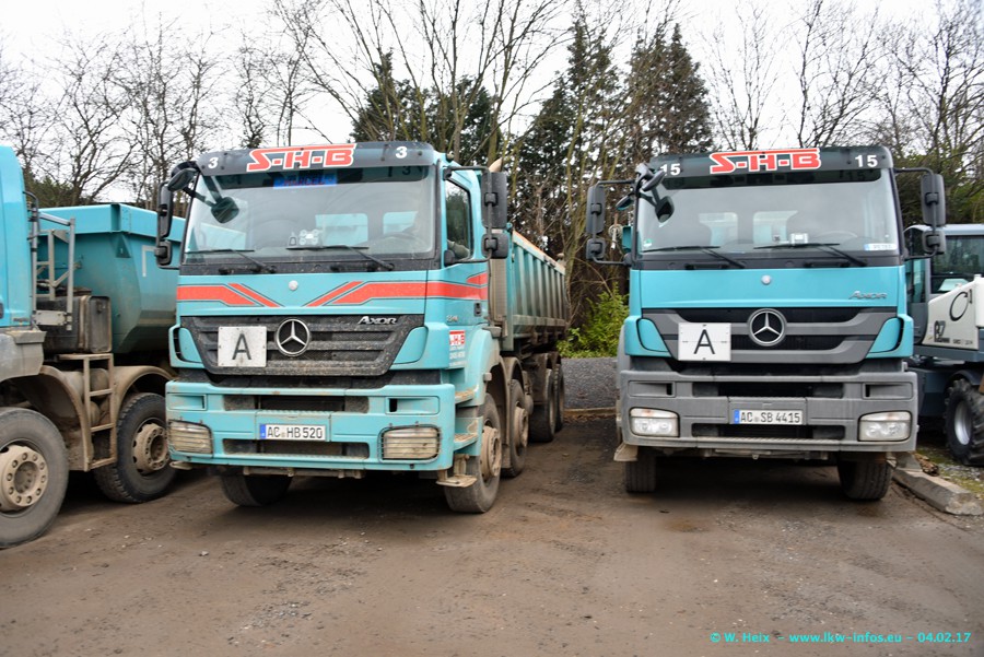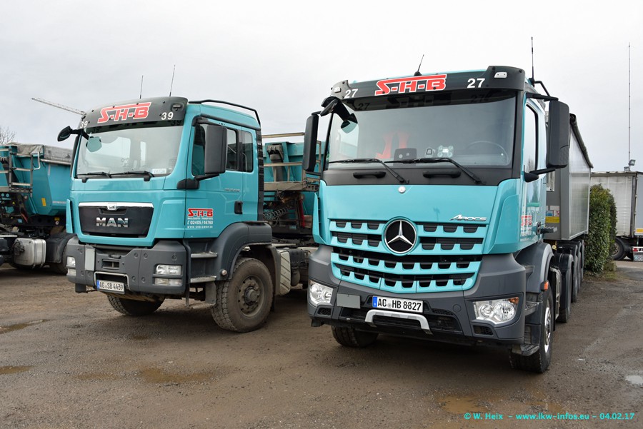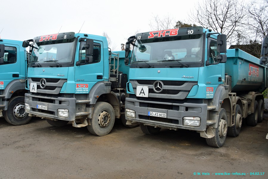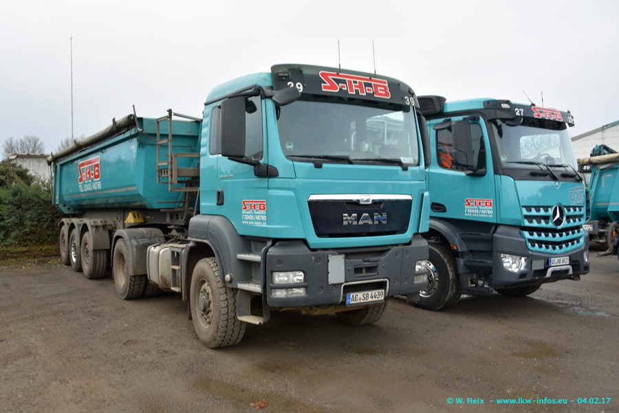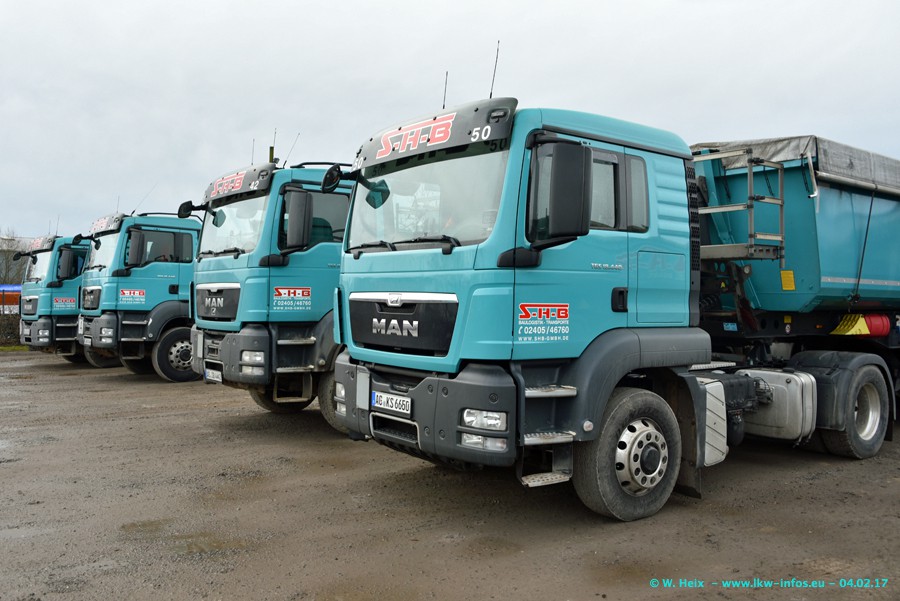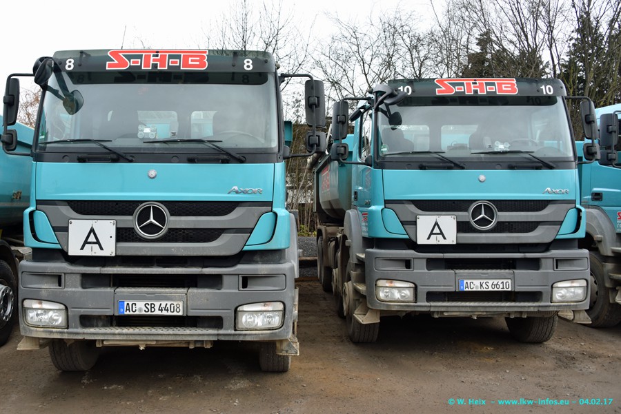 Nach 1,5 Jahren Pause habe ich die Firma S-H-B wieder besucht. Im vergangenen Jahr wurde der Fuhrpark mit zwei Mercedes-Benz Arocs-Zugmaschinen modernisiert. Und gestern wurden von Scania die ersten von insegsamt sechs Scania G 450 Streamline ausgeliefert. Diese sind auf den ersten Bildern zu sehen Der Rest des Fuhrparks ist bekannt. Bedingt durch das winterliche Wetter und den Baustelleneinsatz sind viele der Kipper nicht sauber, was bei Baufahrzeugen oft nicht so ist.