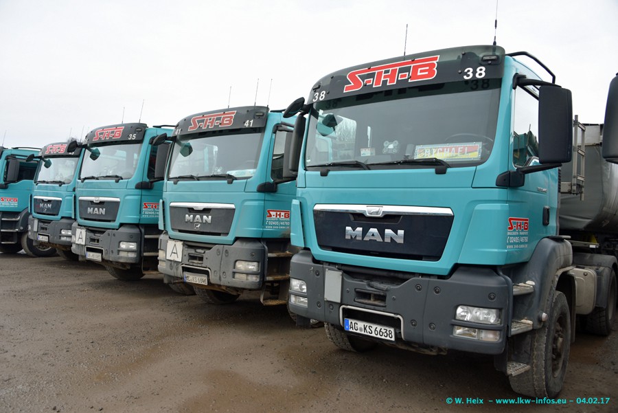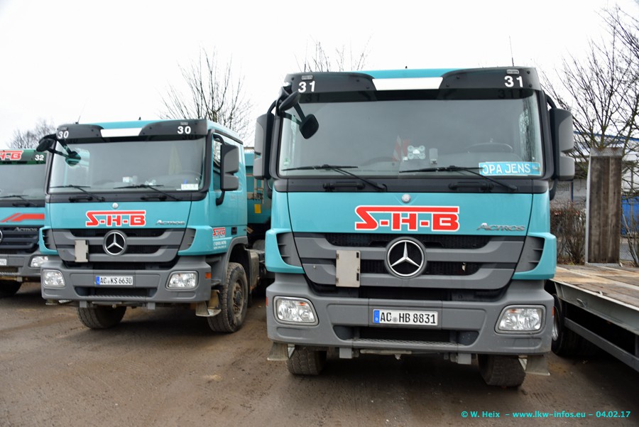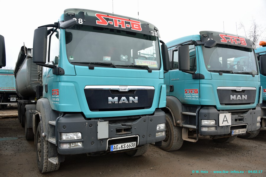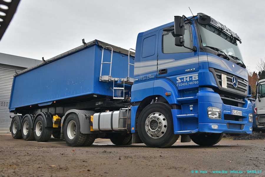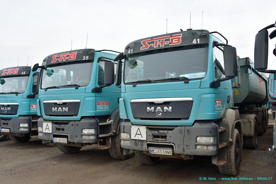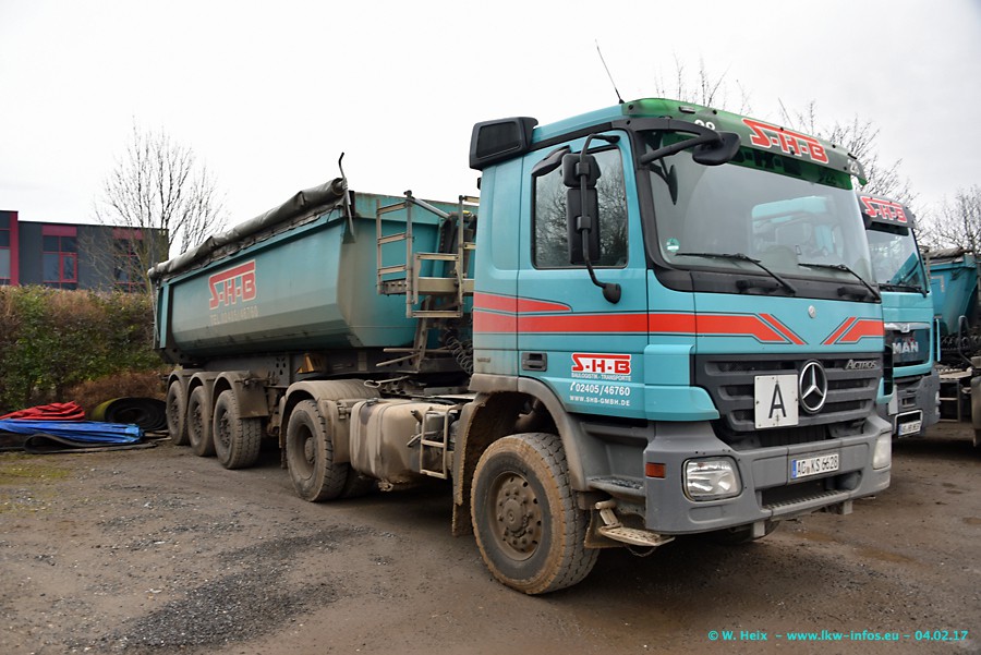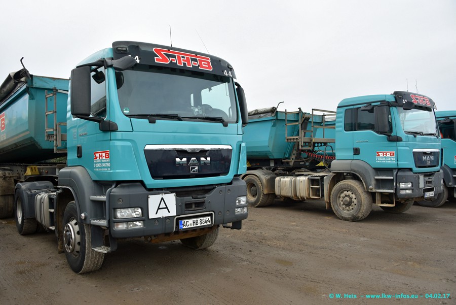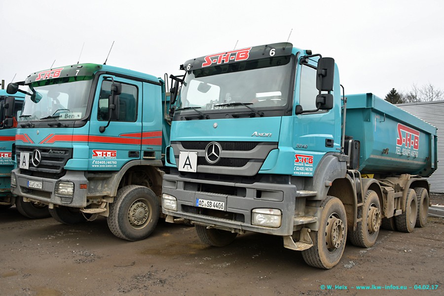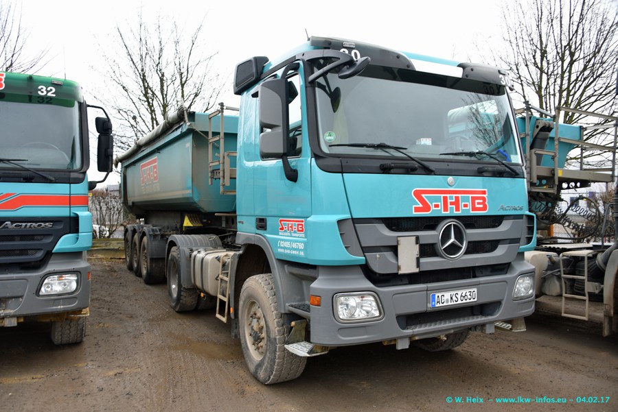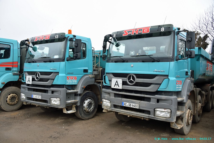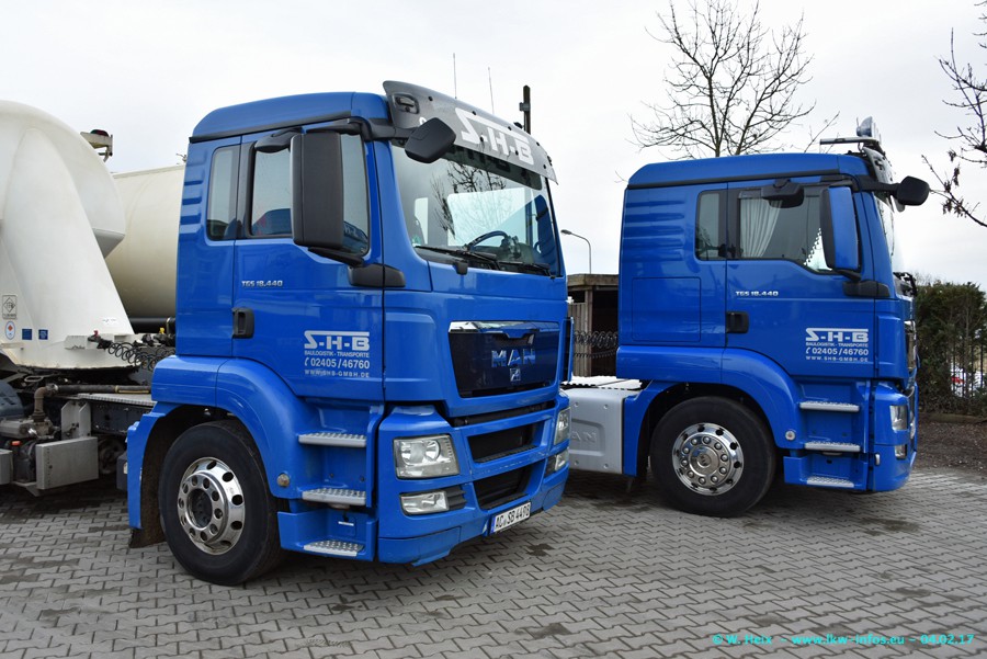 Nach 1,5 Jahren Pause habe ich die Firma S-H-B wieder besucht. Im vergangenen Jahr wurde der Fuhrpark mit zwei Mercedes-Benz Arocs-Zugmaschinen modernisiert. Und gestern wurden von Scania die ersten von insegsamt sechs Scania G 450 Streamline ausgeliefert. Diese sind auf den ersten Bildern zu sehen Der Rest des Fuhrparks ist bekannt. Bedingt durch das winterliche Wetter und den Baustelleneinsatz sind viele der Kipper nicht sauber, was bei Baufahrzeugen oft nicht so ist.