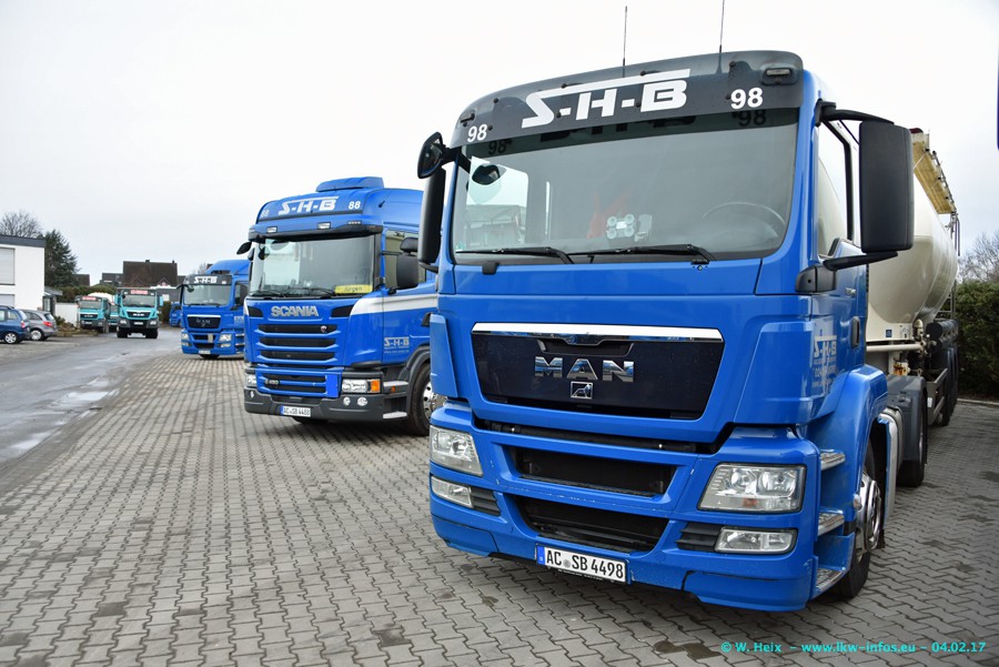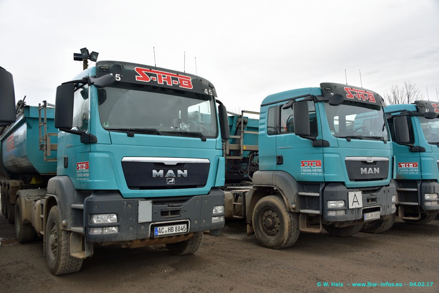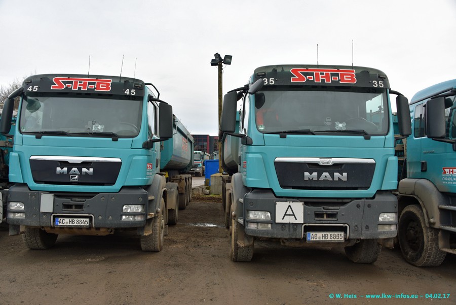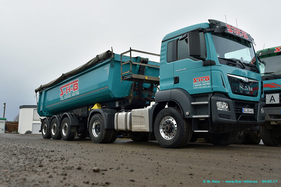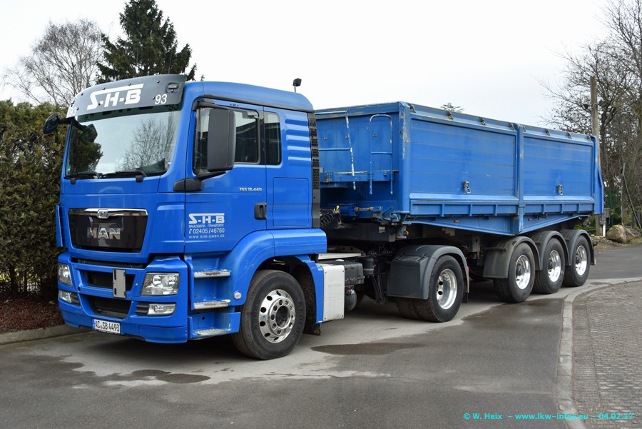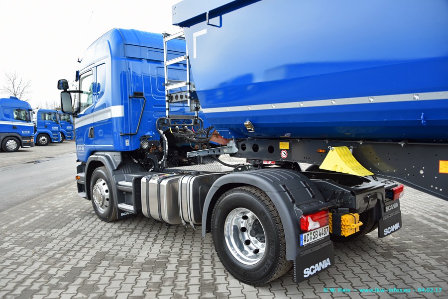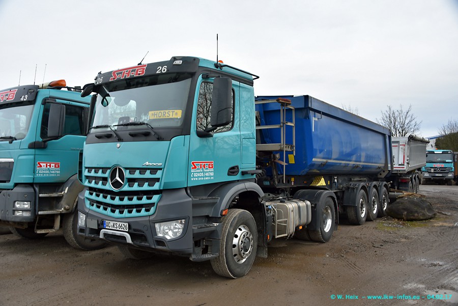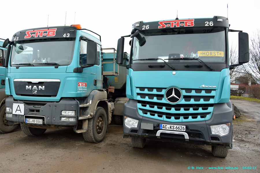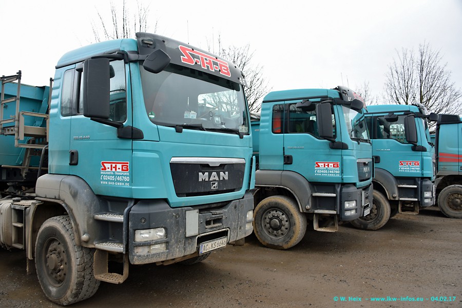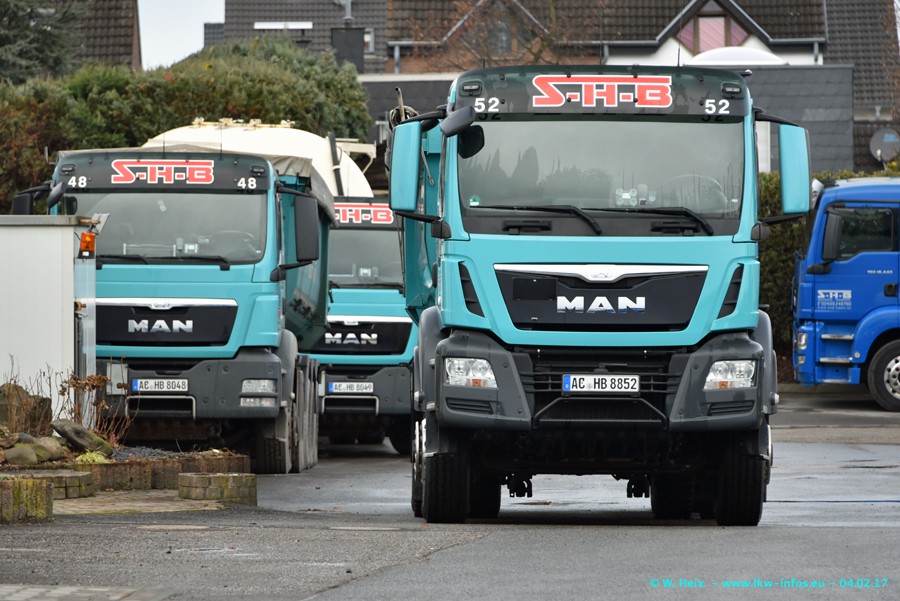 Nach 1,5 Jahren Pause habe ich die Firma S-H-B wieder besucht. Im vergangenen Jahr wurde der Fuhrpark mit zwei Mercedes-Benz Arocs-Zugmaschinen modernisiert. Und gestern wurden von Scania die ersten von insegsamt sechs Scania G 450 Streamline ausgeliefert. Diese sind auf den ersten Bildern zu sehen Der Rest des Fuhrparks ist bekannt. Bedingt durch das winterliche Wetter und den Baustelleneinsatz sind viele der Kipper nicht sauber, was bei Baufahrzeugen oft nicht so ist.