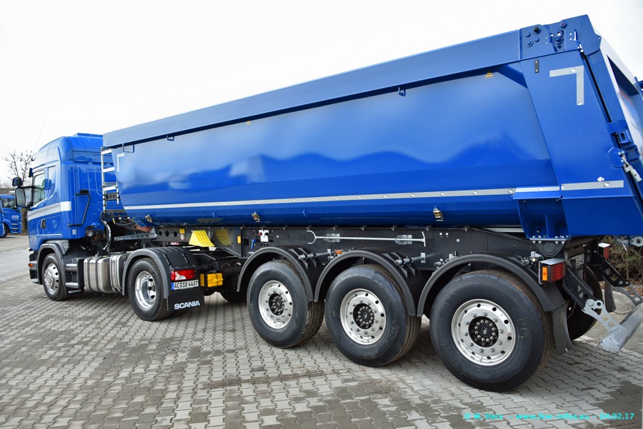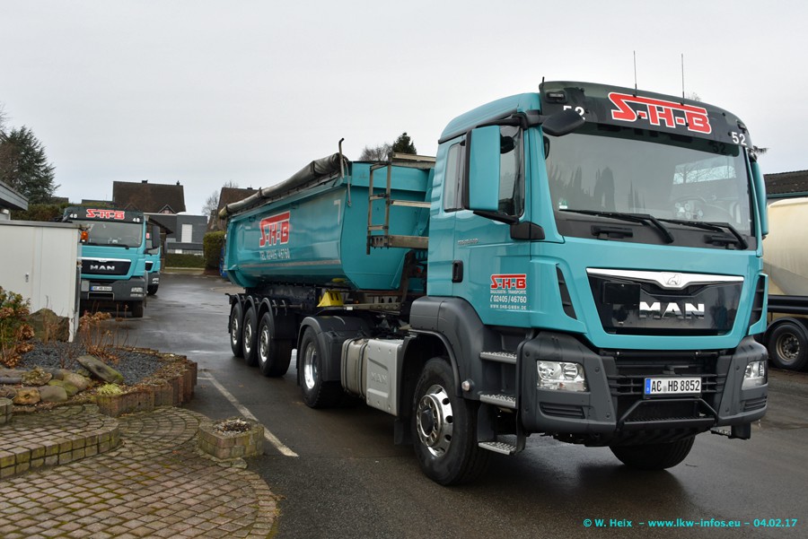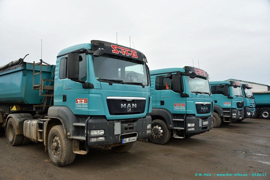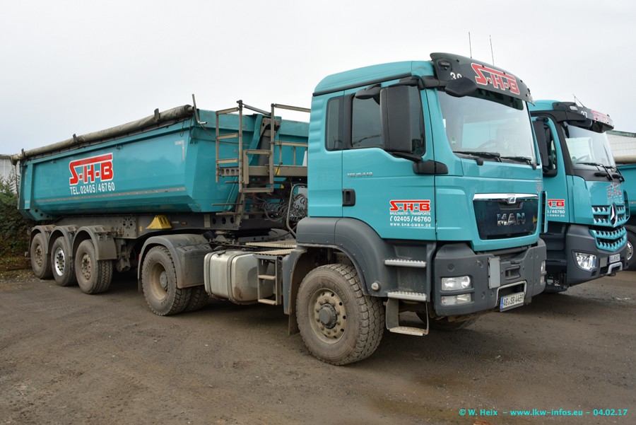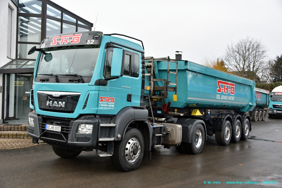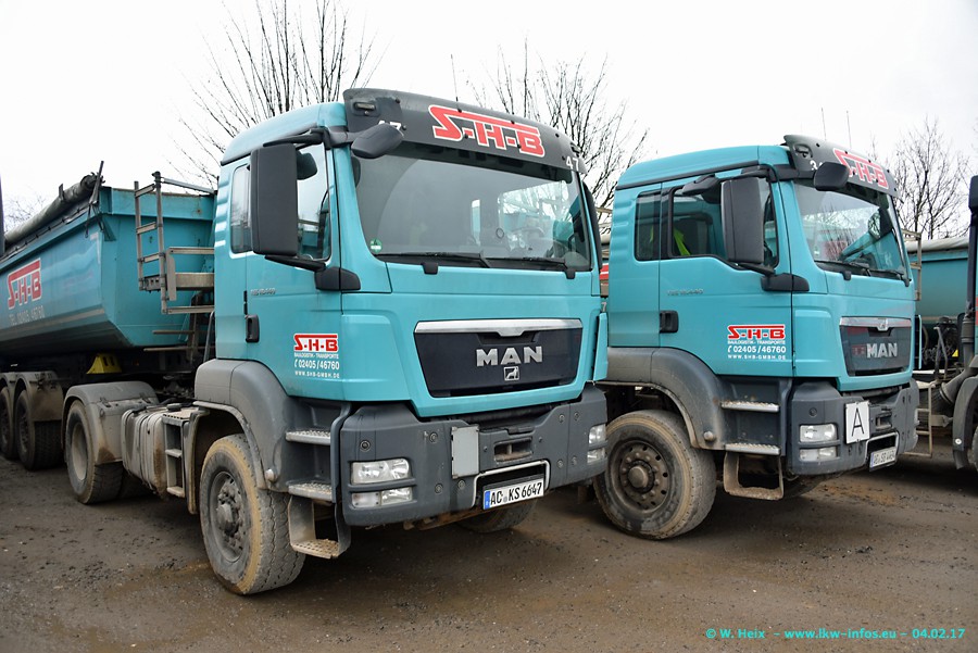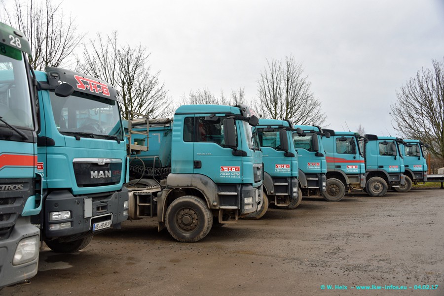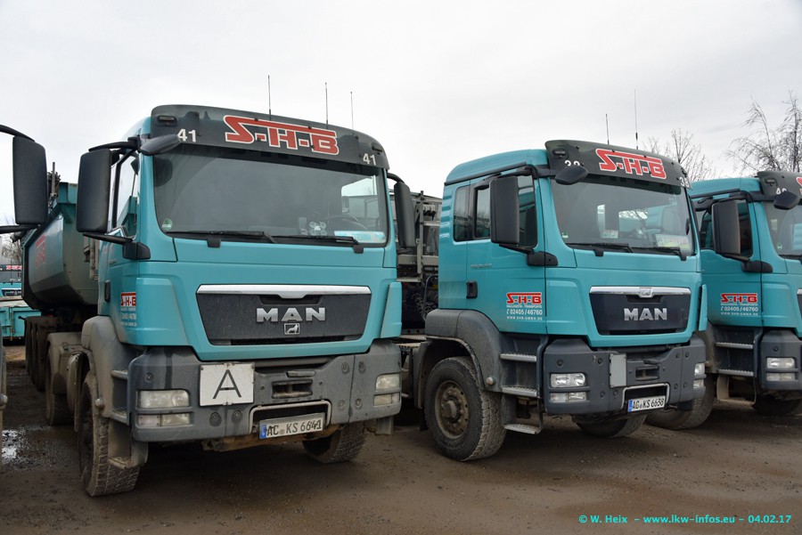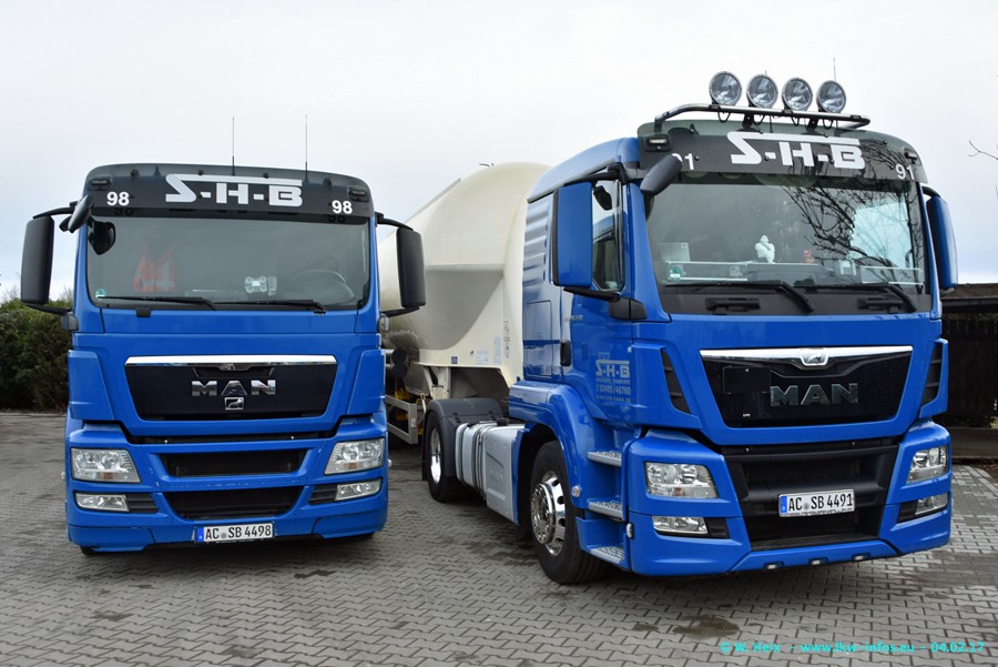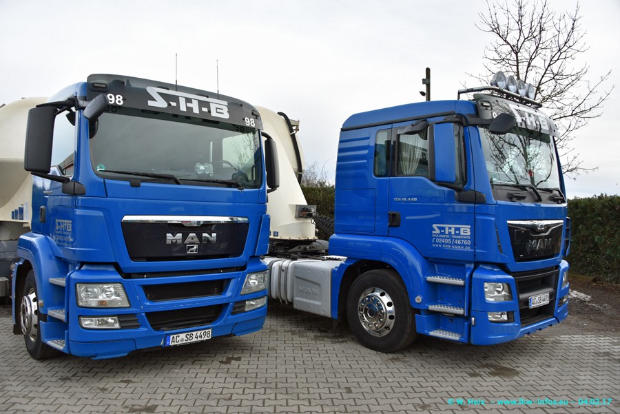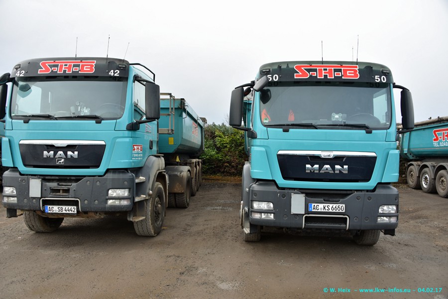 Nach 1,5 Jahren Pause habe ich die Firma S-H-B wieder besucht. Im vergangenen Jahr wurde der Fuhrpark mit zwei Mercedes-Benz Arocs-Zugmaschinen modernisiert. Und gestern wurden von Scania die ersten von insegsamt sechs Scania G 450 Streamline ausgeliefert. Diese sind auf den ersten Bildern zu sehen Der Rest des Fuhrparks ist bekannt. Bedingt durch das winterliche Wetter und den Baustelleneinsatz sind viele der Kipper nicht sauber, was bei Baufahrzeugen oft nicht so ist.