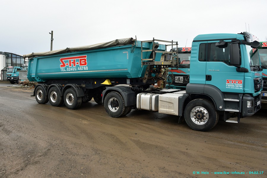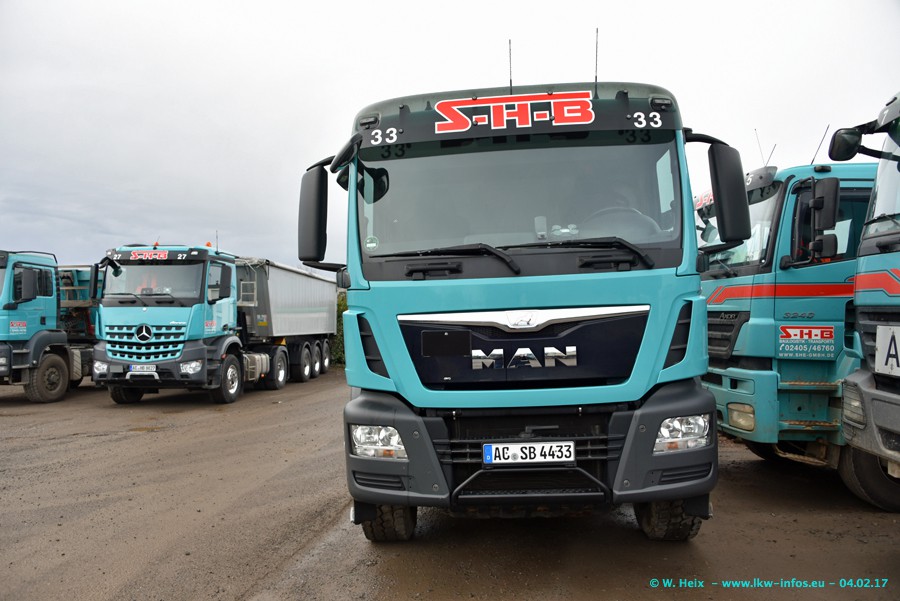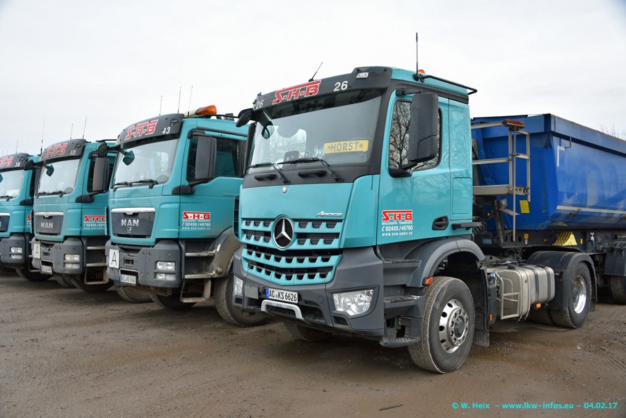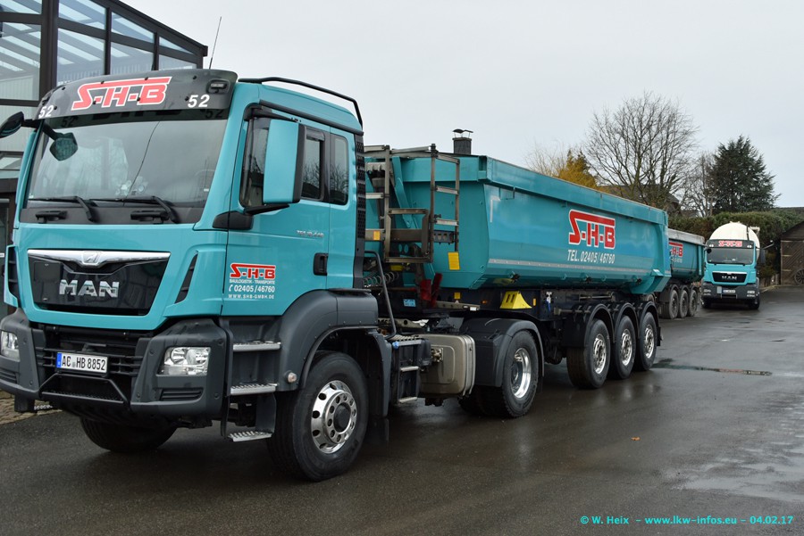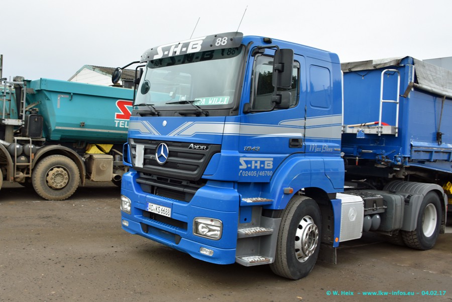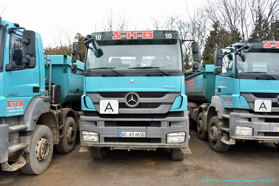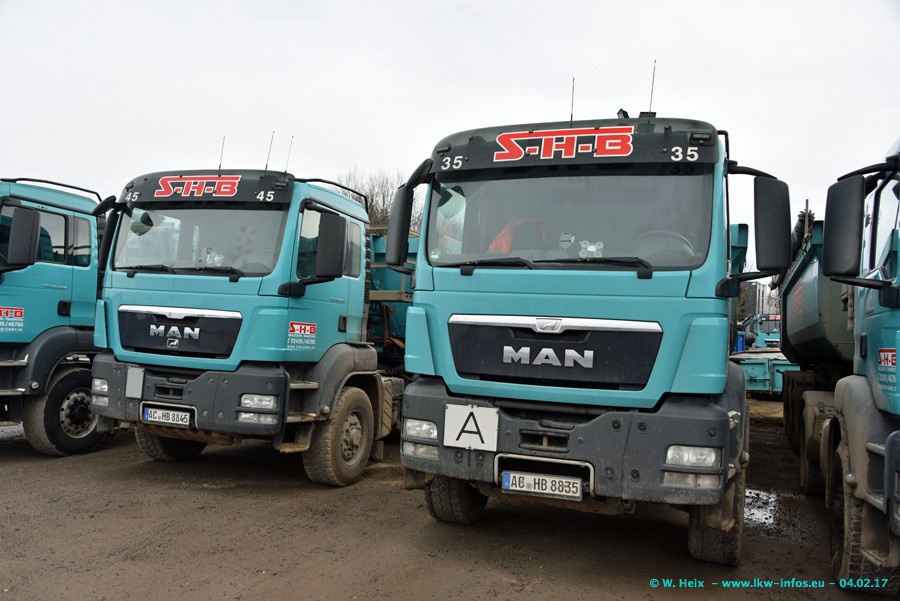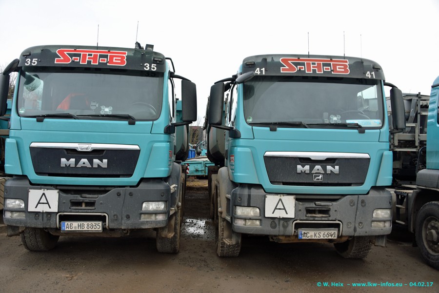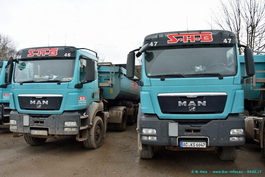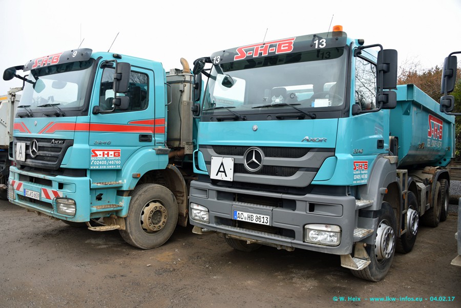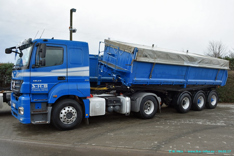 Nach 1,5 Jahren Pause habe ich die Firma S-H-B wieder besucht. Im vergangenen Jahr wurde der Fuhrpark mit zwei Mercedes-Benz Arocs-Zugmaschinen modernisiert. Und gestern wurden von Scania die ersten von insegsamt sechs Scania G 450 Streamline ausgeliefert. Diese sind auf den ersten Bildern zu sehen Der Rest des Fuhrparks ist bekannt. Bedingt durch das winterliche Wetter und den Baustelleneinsatz sind viele der Kipper nicht sauber, was bei Baufahrzeugen oft nicht so ist.