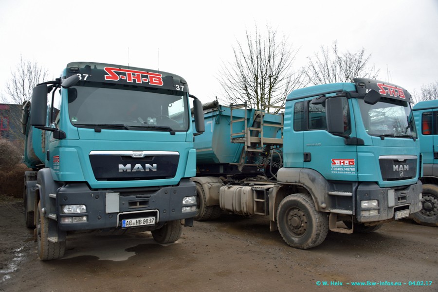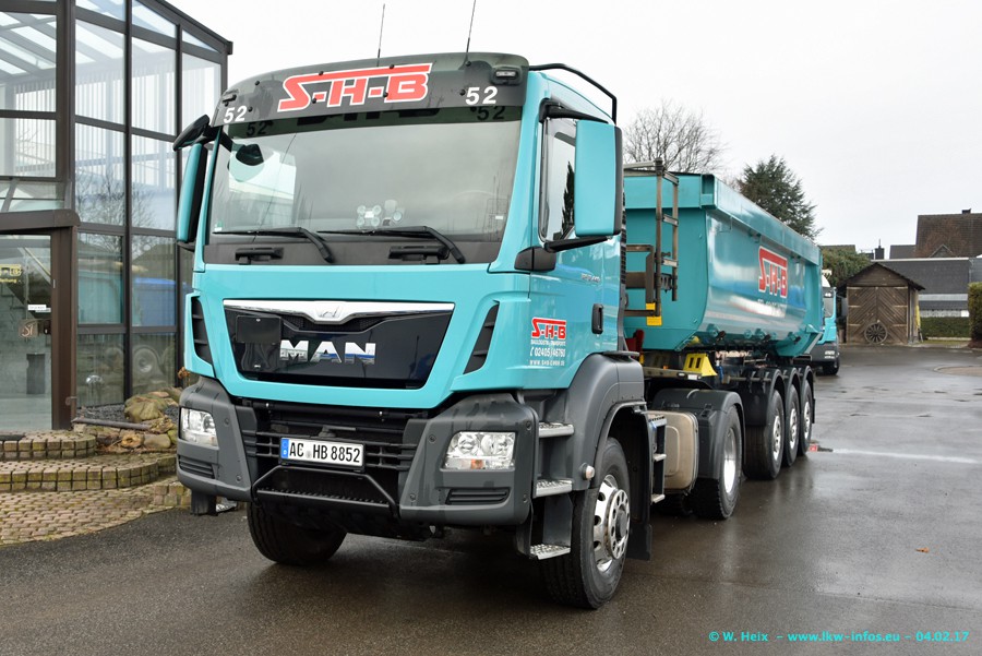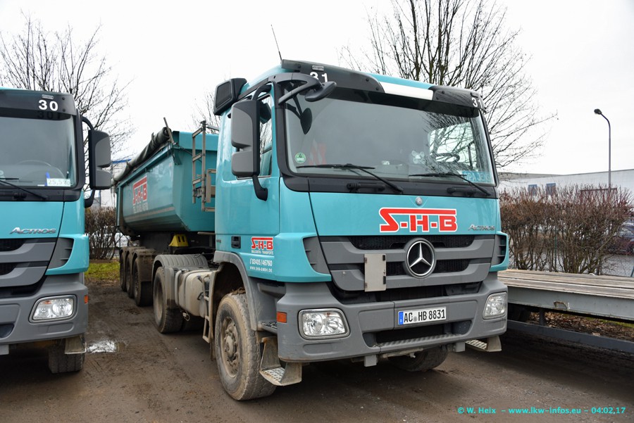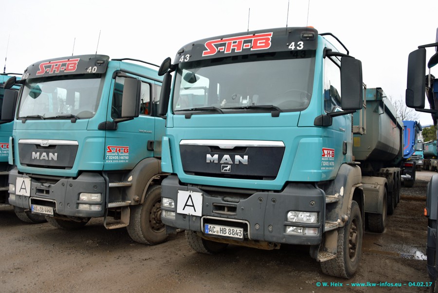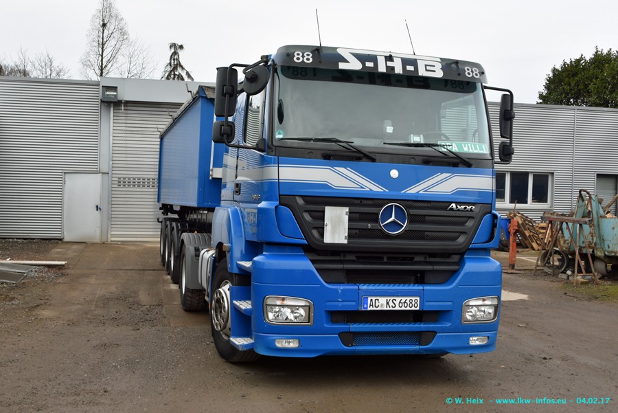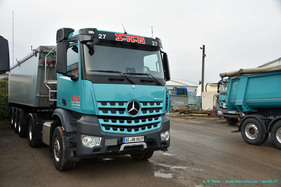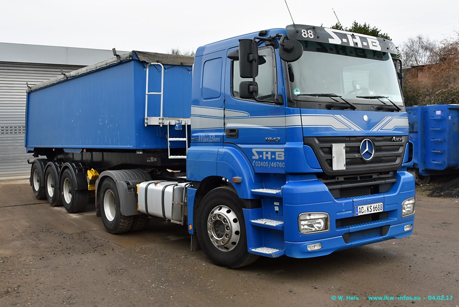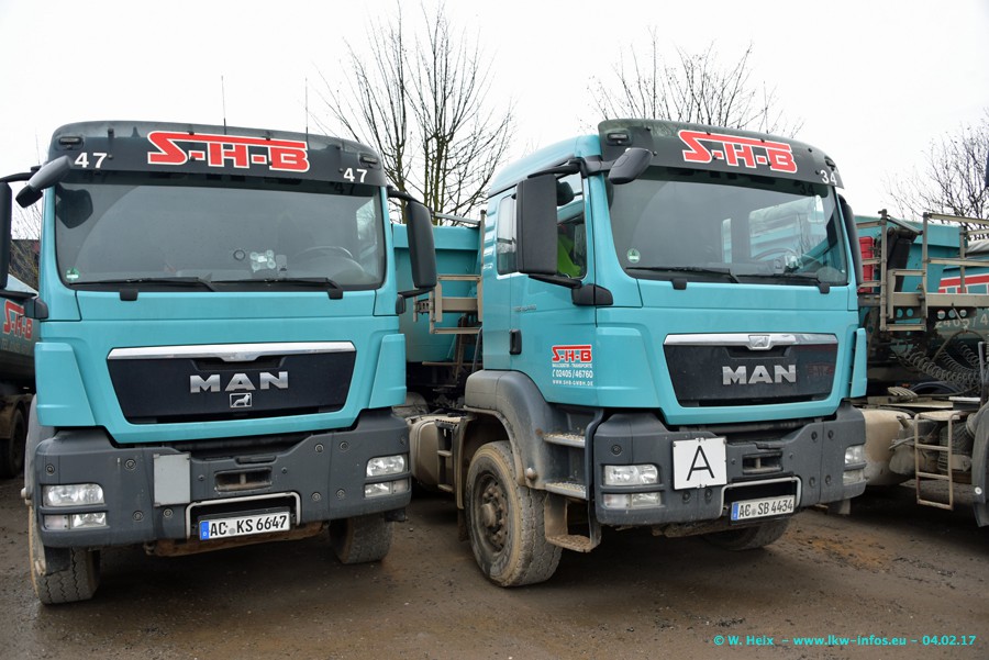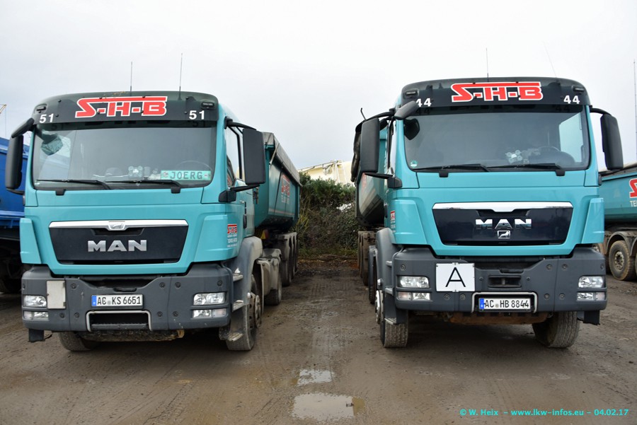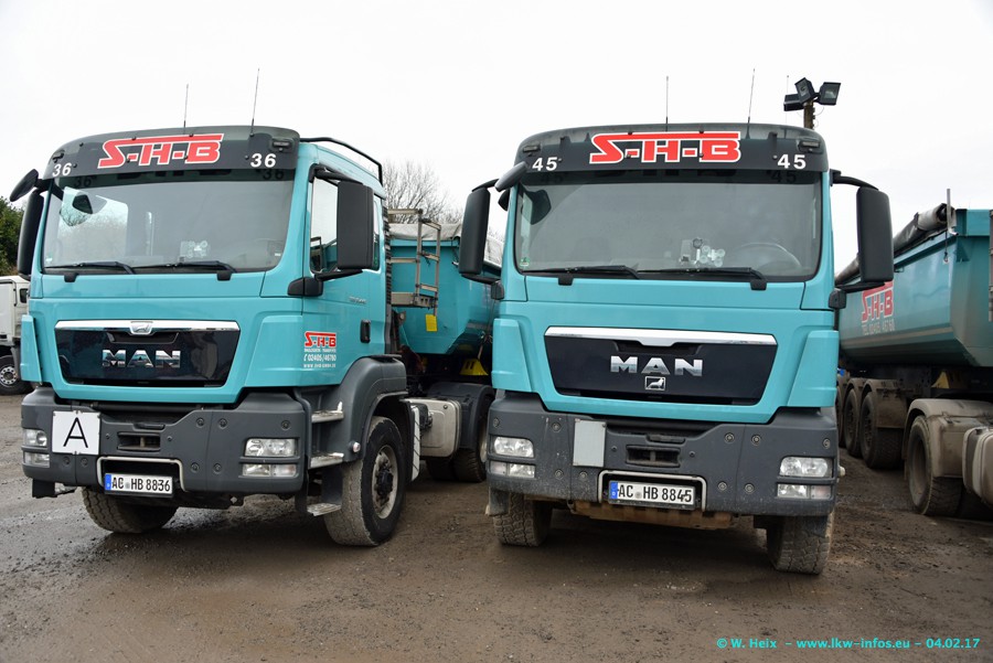 Nach 1,5 Jahren Pause habe ich die Firma S-H-B wieder besucht. Im vergangenen Jahr wurde der Fuhrpark mit zwei Mercedes-Benz Arocs-Zugmaschinen modernisiert. Und gestern wurden von Scania die ersten von insegsamt sechs Scania G 450 Streamline ausgeliefert. Diese sind auf den ersten Bildern zu sehen Der Rest des Fuhrparks ist bekannt. Bedingt durch das winterliche Wetter und den Baustelleneinsatz sind viele der Kipper nicht sauber, was bei Baufahrzeugen oft nicht so ist.