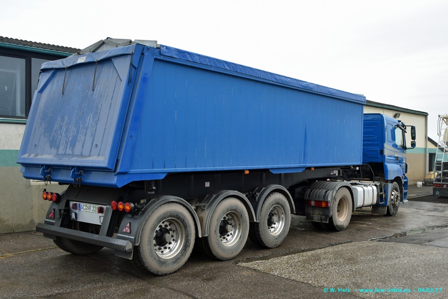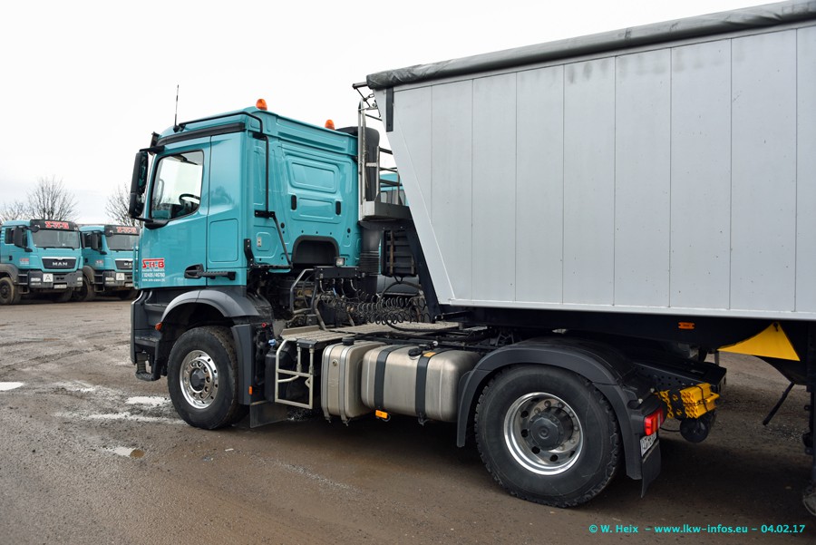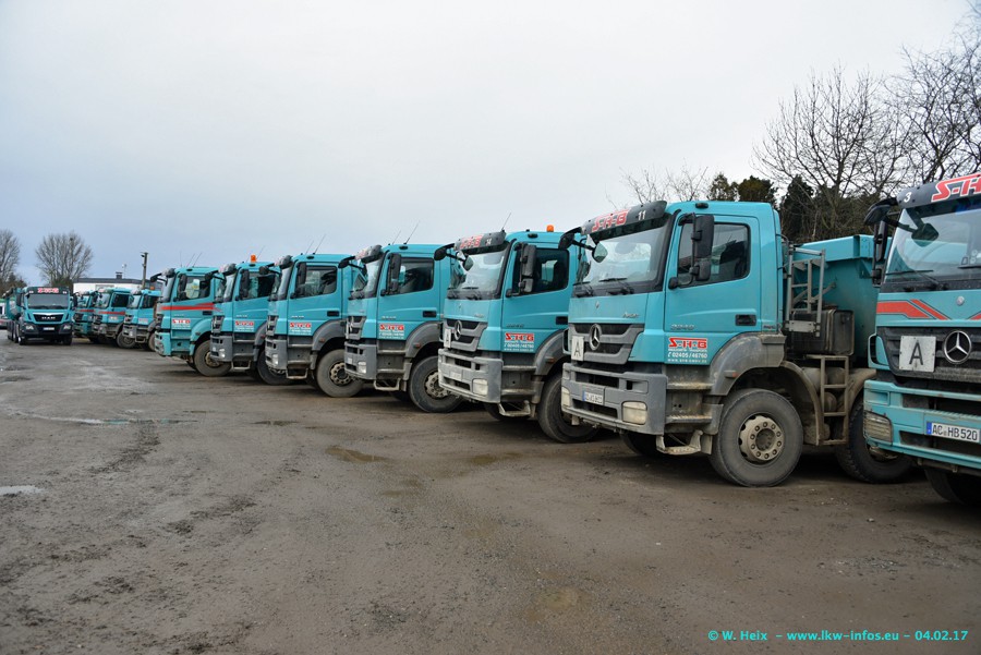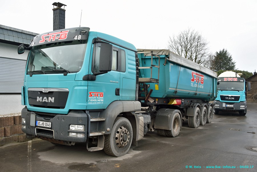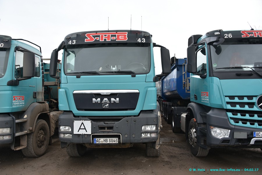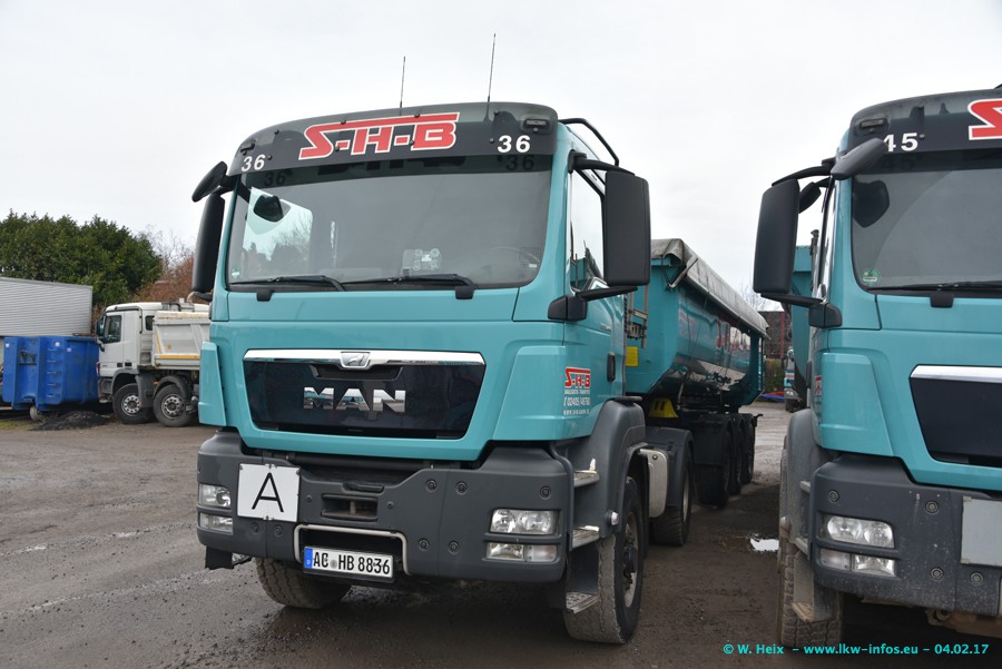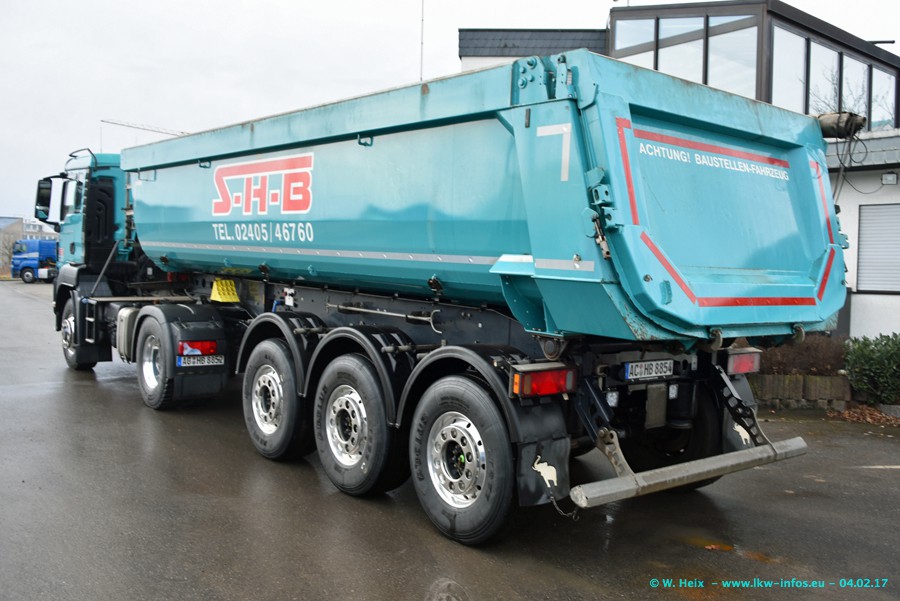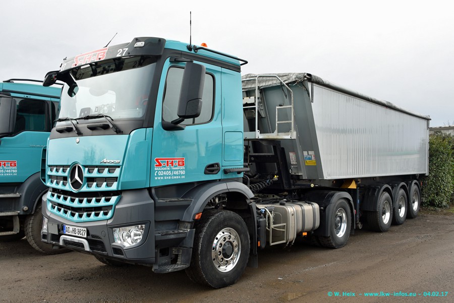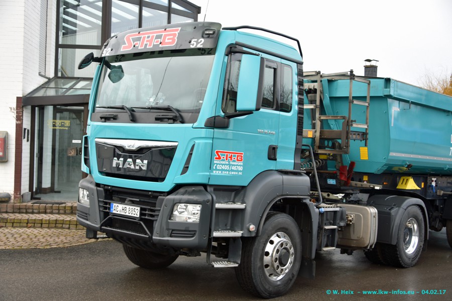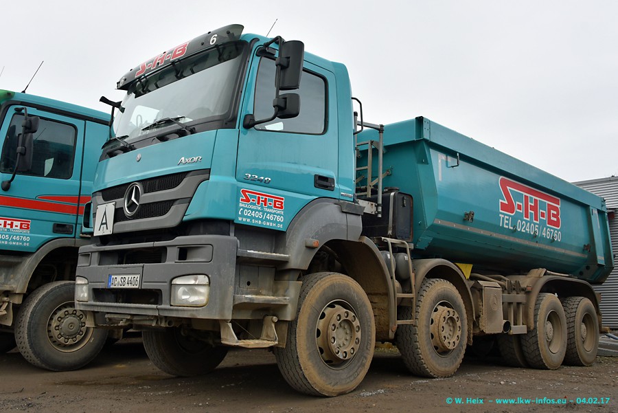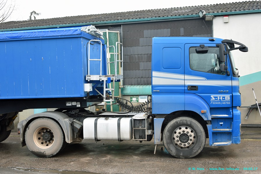 Nach 1,5 Jahren Pause habe ich die Firma S-H-B wieder besucht. Im vergangenen Jahr wurde der Fuhrpark mit zwei Mercedes-Benz Arocs-Zugmaschinen modernisiert. Und gestern wurden von Scania die ersten von insegsamt sechs Scania G 450 Streamline ausgeliefert. Diese sind auf den ersten Bildern zu sehen Der Rest des Fuhrparks ist bekannt. Bedingt durch das winterliche Wetter und den Baustelleneinsatz sind viele der Kipper nicht sauber, was bei Baufahrzeugen oft nicht so ist.