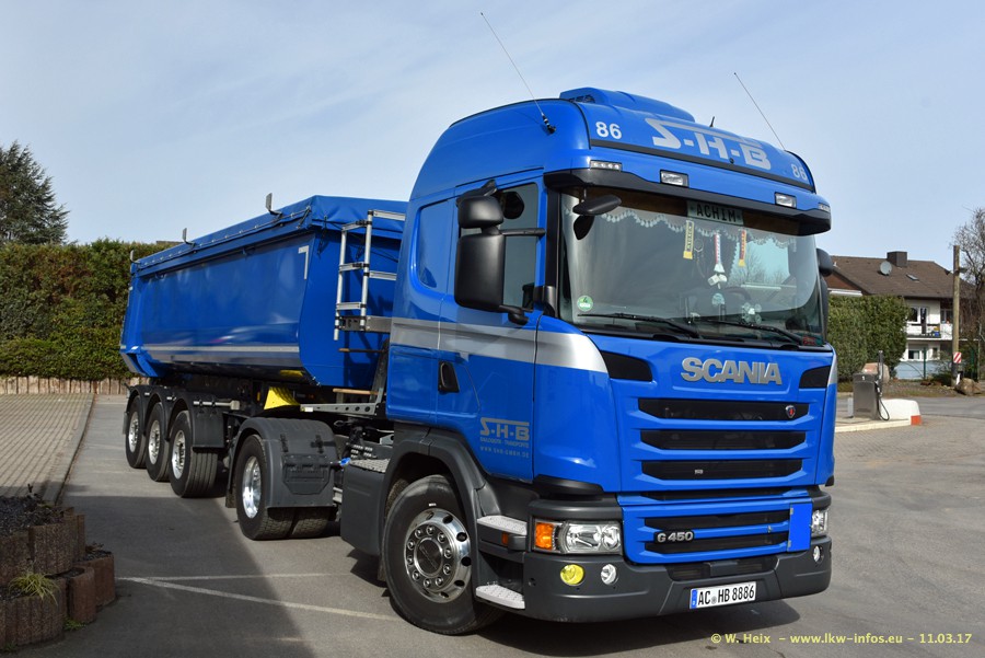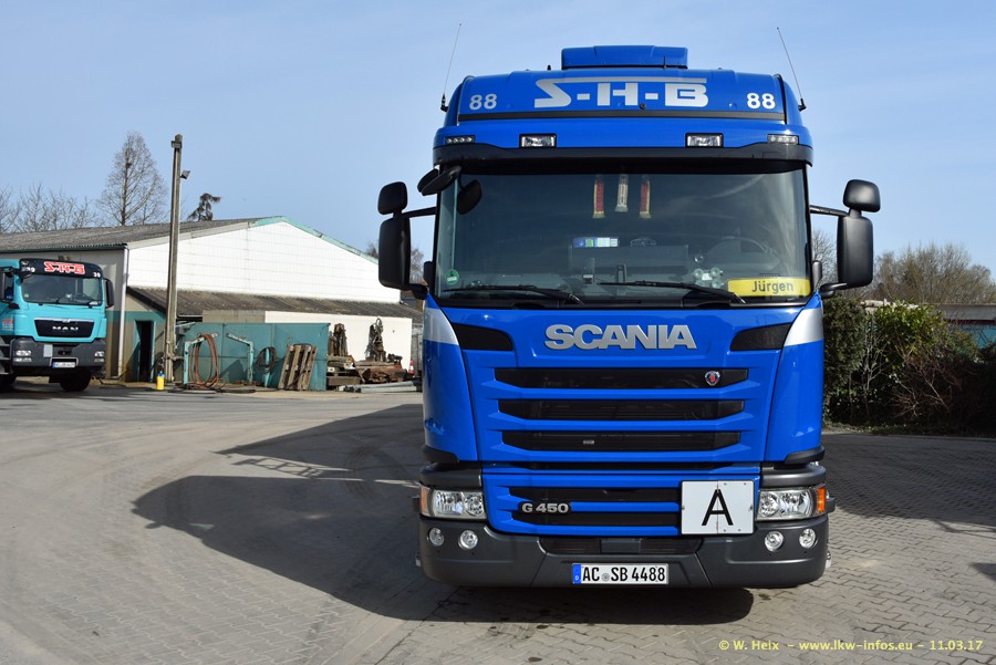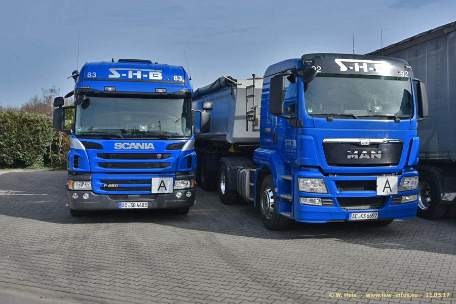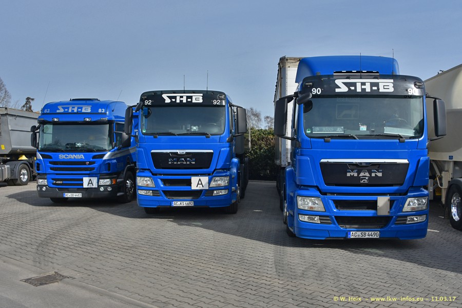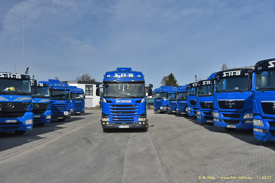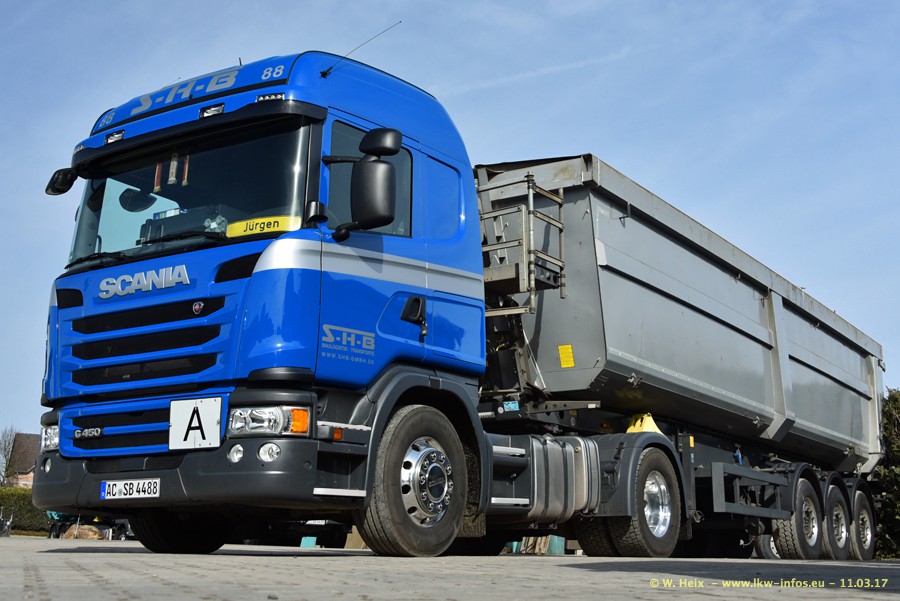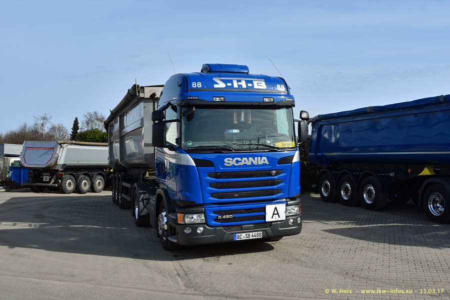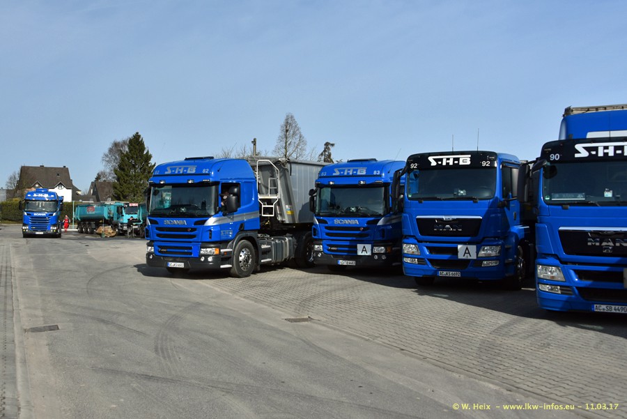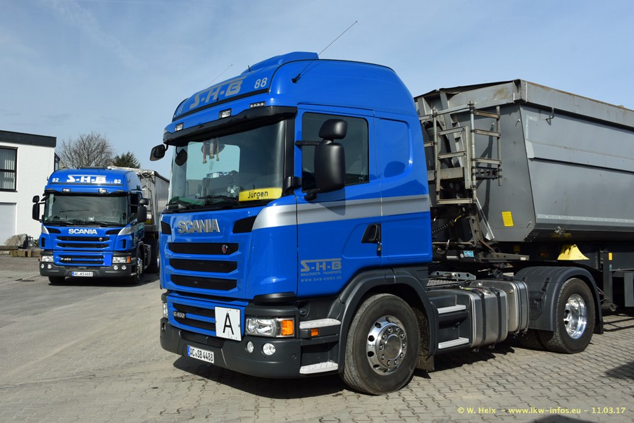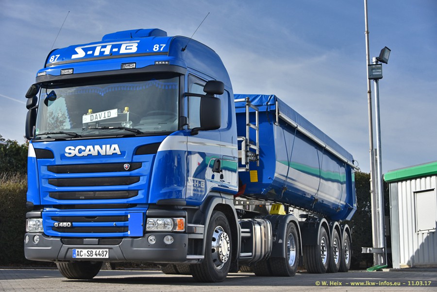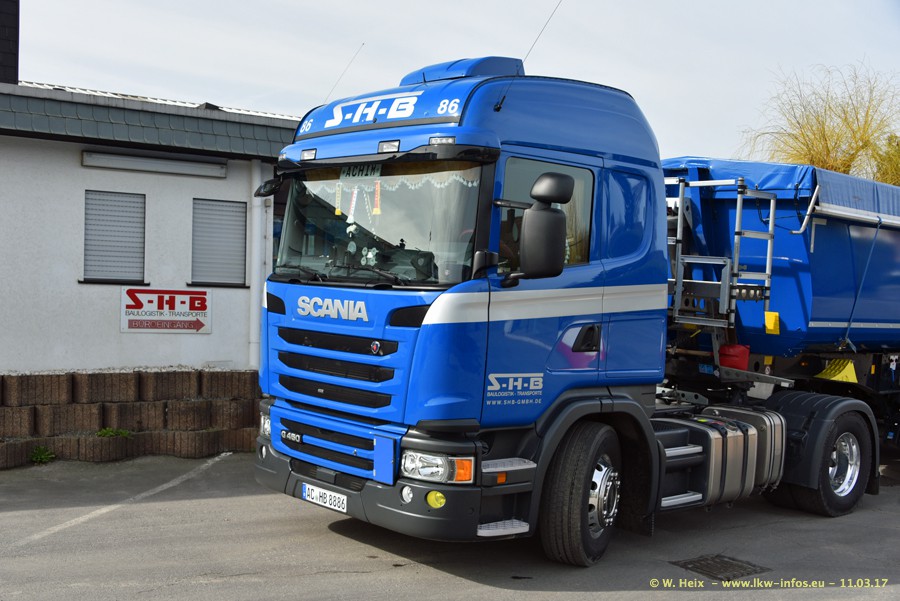 In den letzten Wochen hat SHB insgesamt sechs neue Sattelzugmaschinen von Scania bekommen. Die ersten beiden kamen Anfang März (siehe Bilder Teil 2) und am Freitag (10.03) wurde Nummer 6 bei der Scania-Niederlassung in Würselen in Empfang genommen. Somit hat S-H-B jetzt vier neue Scania G 450 Streamline und zwei neue Scania P 450. Die weiteren Bilder zeigen nochmal den großen Rest vom Fuhrpark, diesmal bei vorfrühlingshaft schönem sonnigen Wetter.