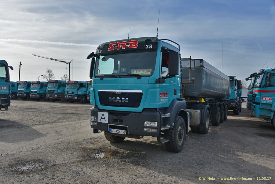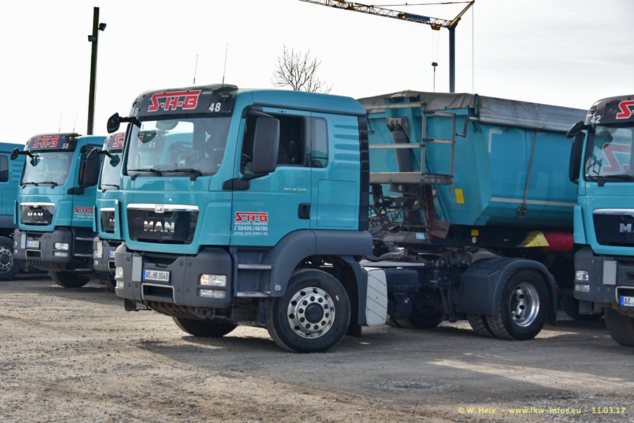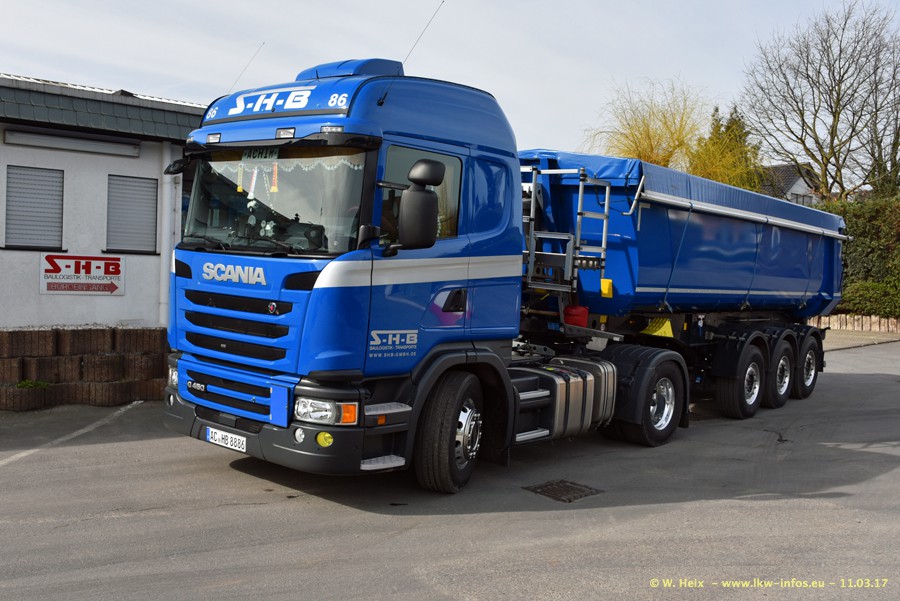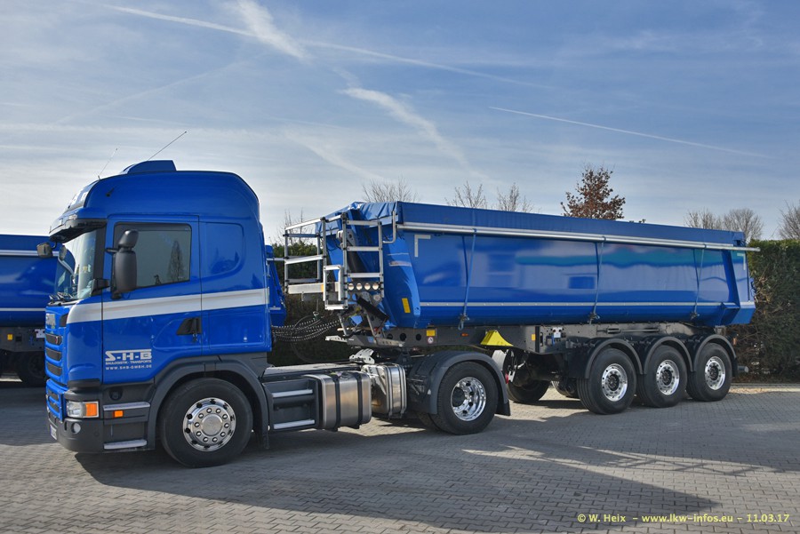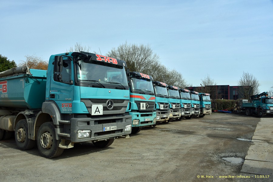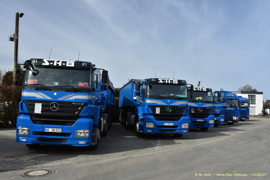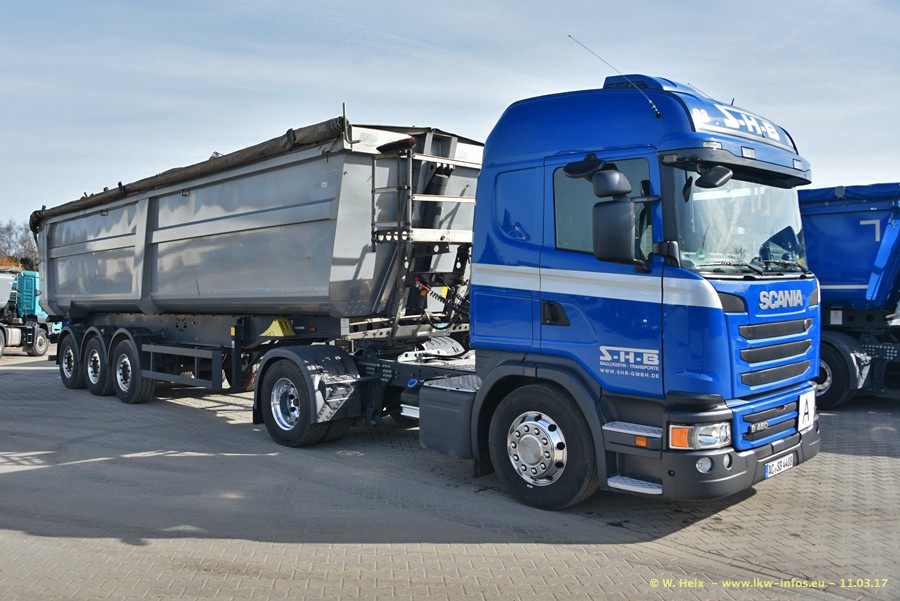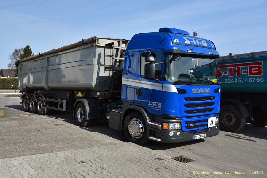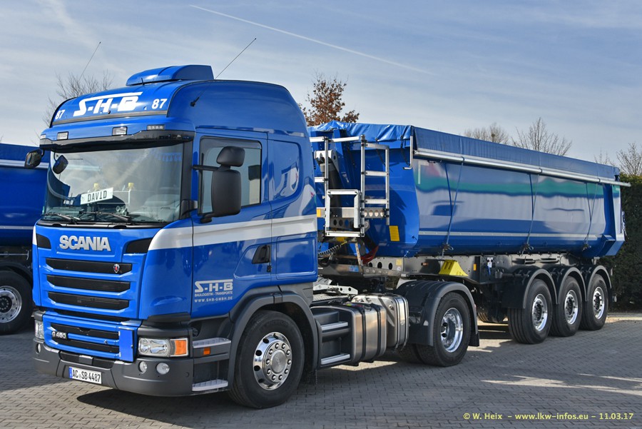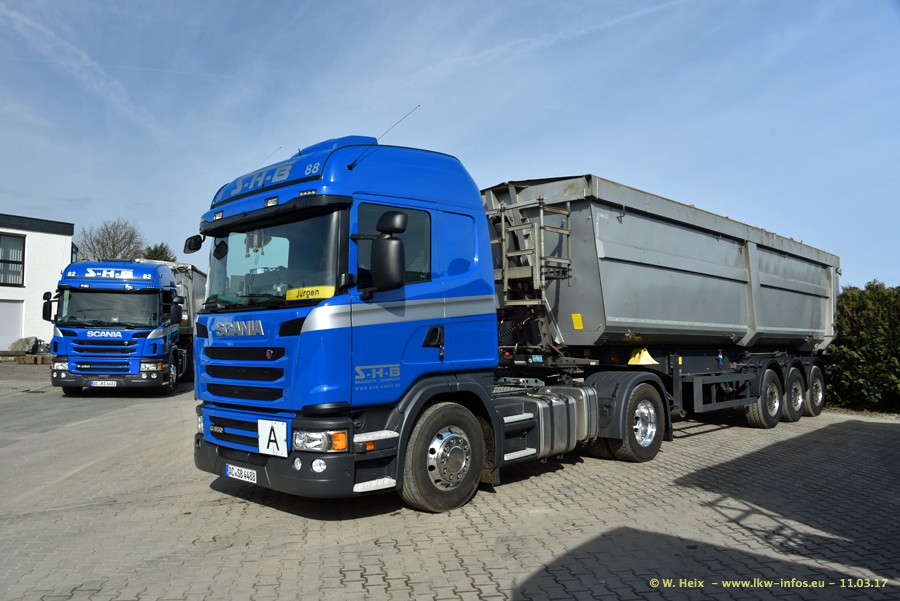 In den letzten Wochen hat SHB insgesamt sechs neue Sattelzugmaschinen von Scania bekommen. Die ersten beiden kamen Anfang März (siehe Bilder Teil 2) und am Freitag (10.03) wurde Nummer 6 bei der Scania-Niederlassung in Würselen in Empfang genommen. Somit hat S-H-B jetzt vier neue Scania G 450 Streamline und zwei neue Scania P 450. Die weiteren Bilder zeigen nochmal den großen Rest vom Fuhrpark, diesmal bei vorfrühlingshaft schönem sonnigen Wetter.