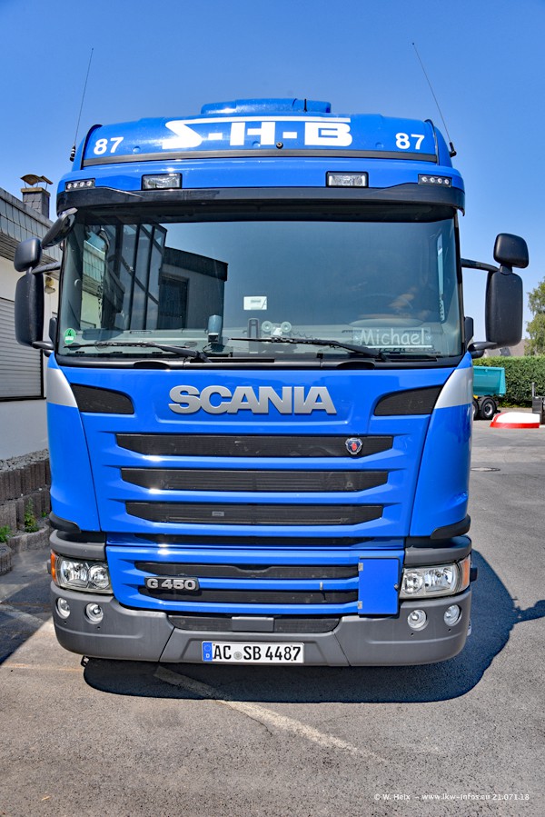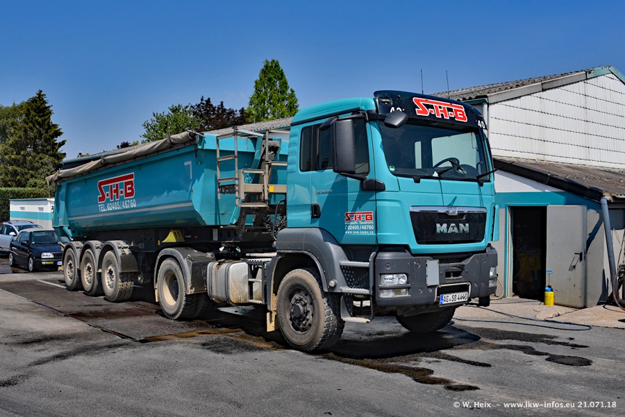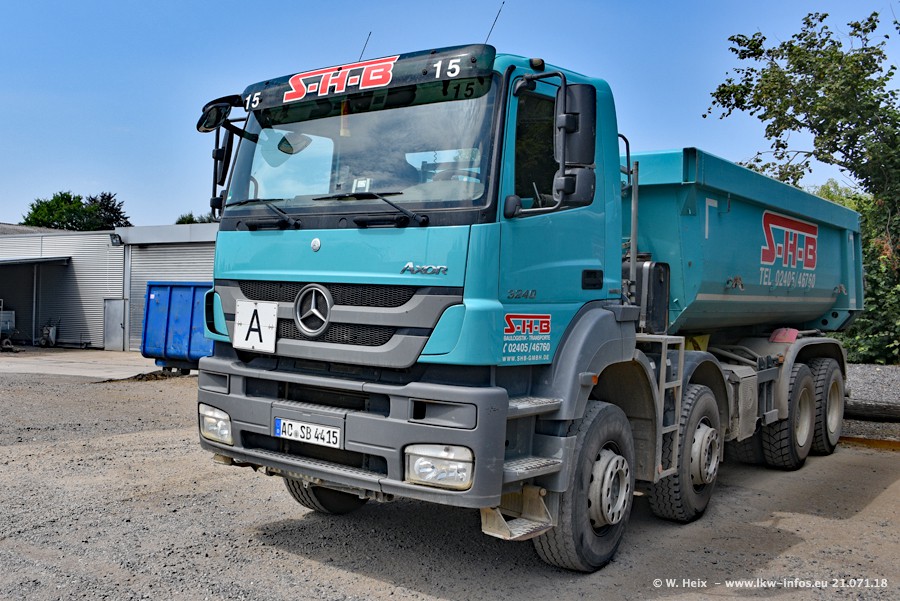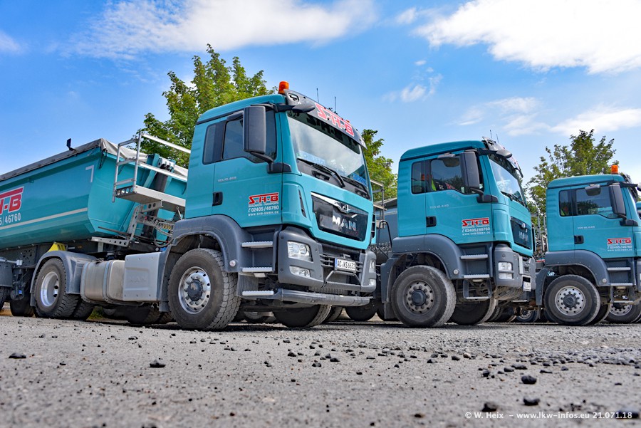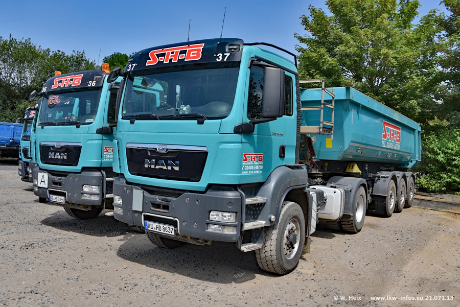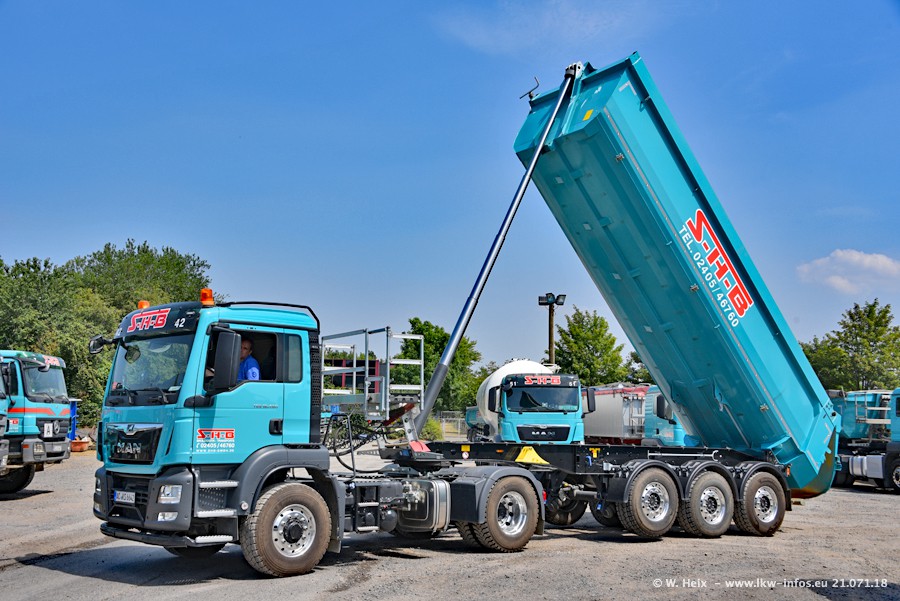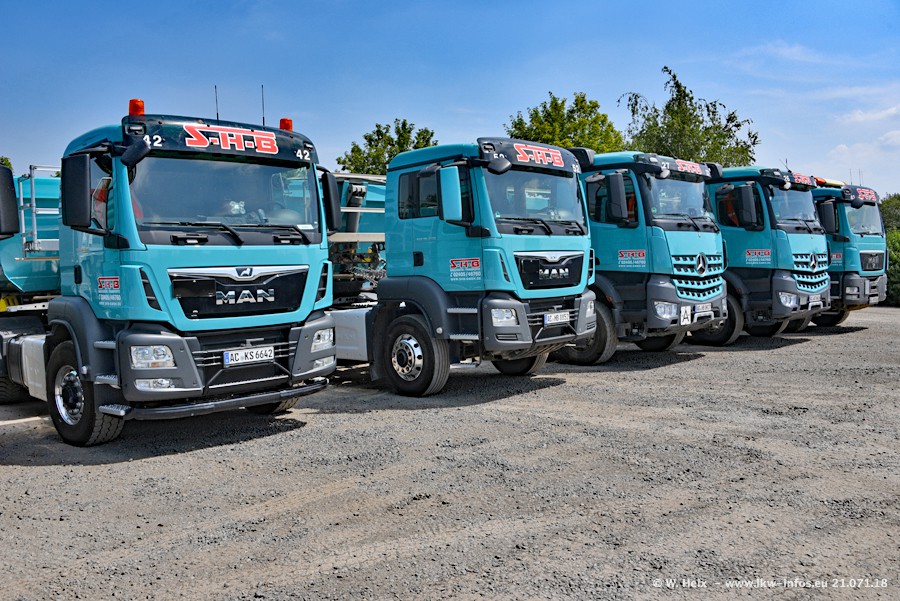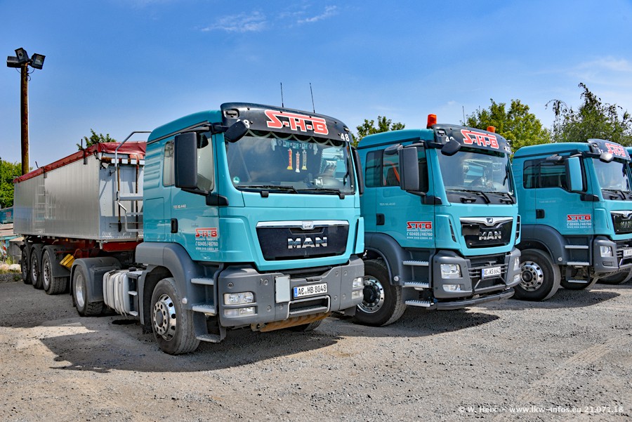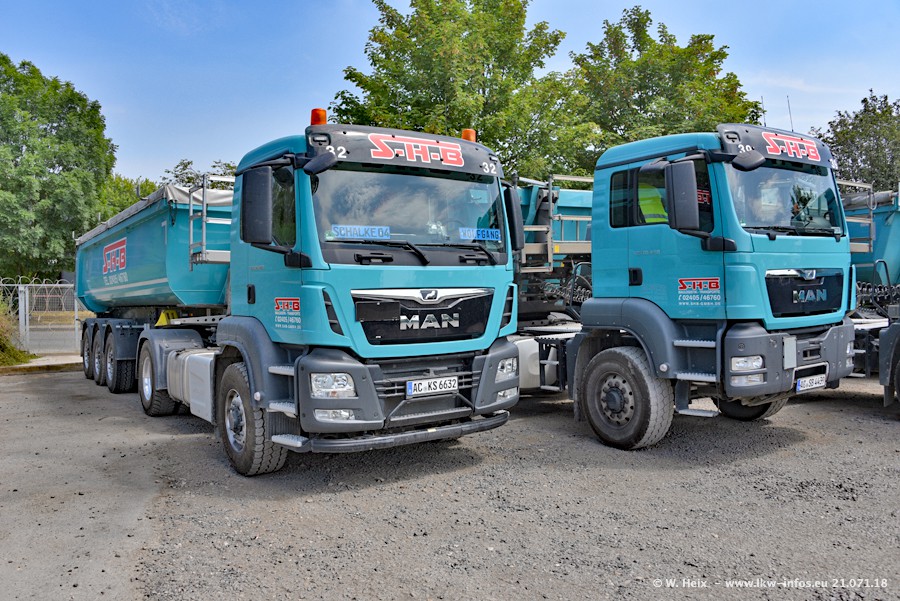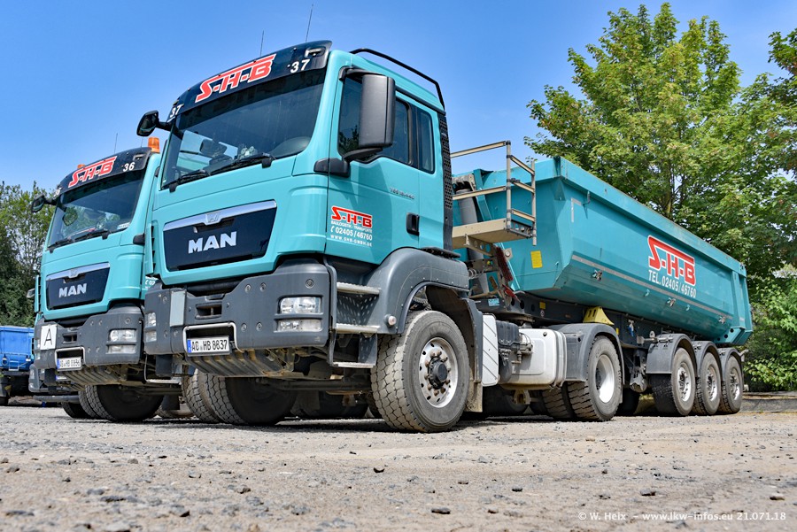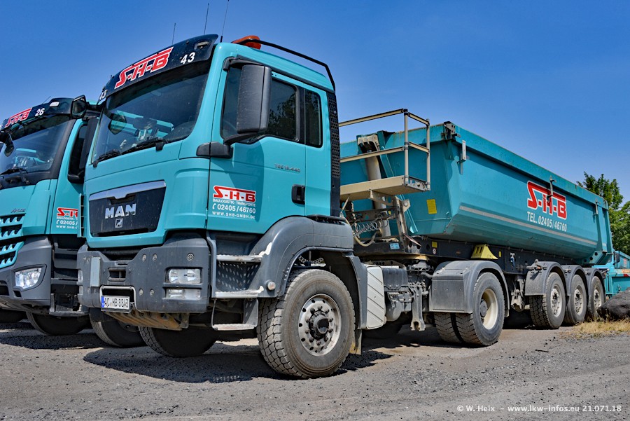 Seit meinem letzten Besuch bei SHB im März 2017 sind so einige neue LKW gekommen, die den Furhpark modernisieren bzw. alte Fahrzeuge ersetzt haben. Das sind bei den dunkelblauen LKW alle Mercedes-Benz Arocs/Antos/Actros. Passend dazu gibt es auch mehrere neue Kippauflieger. Bei den hellblauen LKW gibt es einige neue MAN TGX Euro 6 der aktuellen Generation und ab Montag (23.07.) wird ein Mercedes-Benz Arocs 8x4 auf der Straße sein. Der Fuhrpark war fast komplett zuhause.