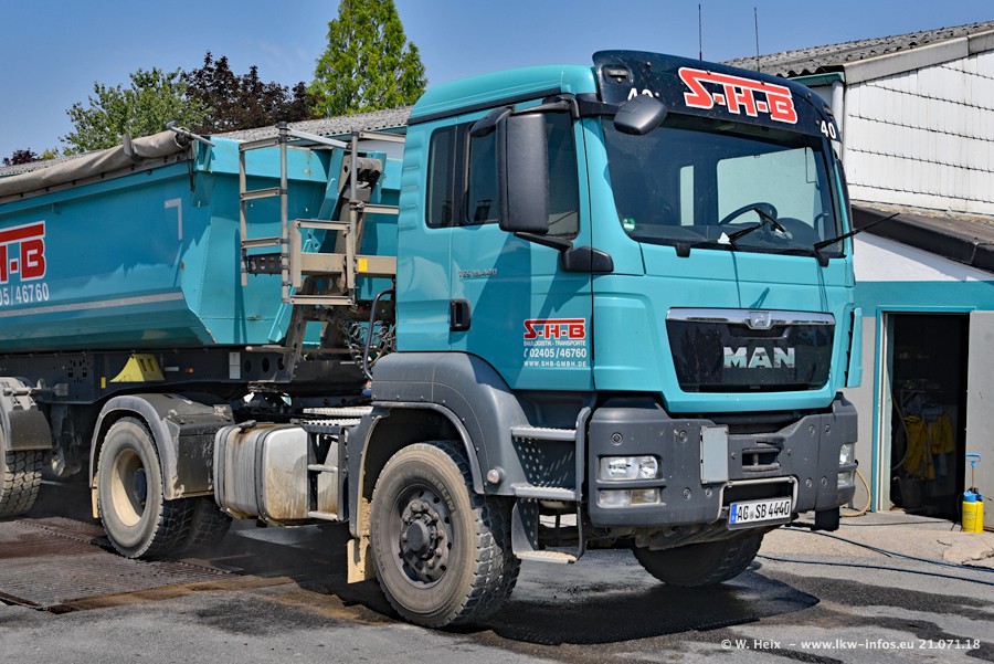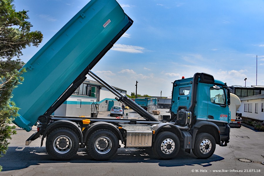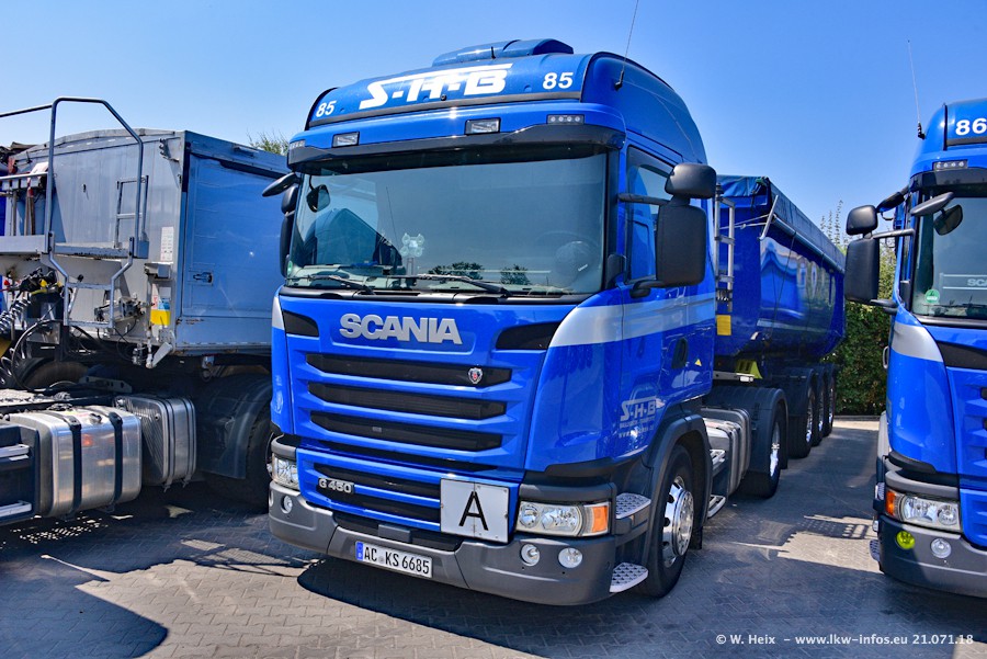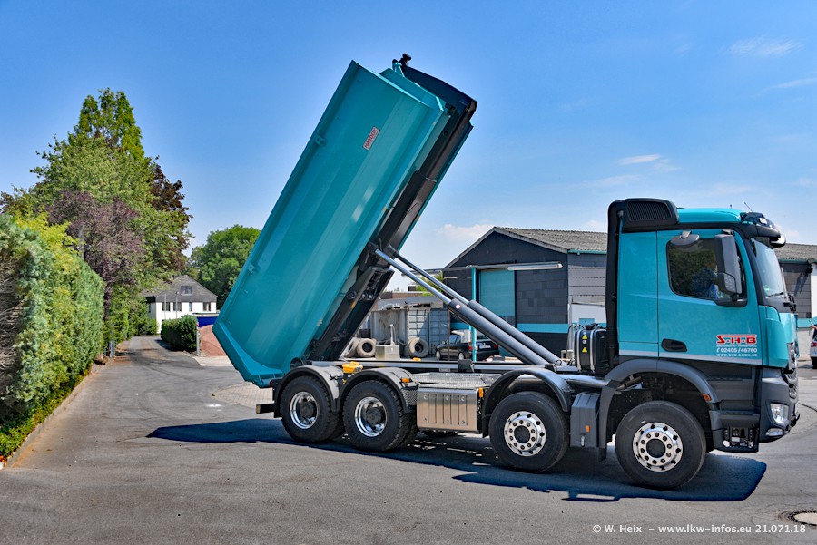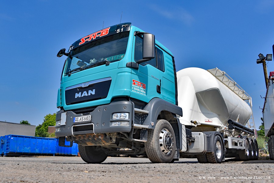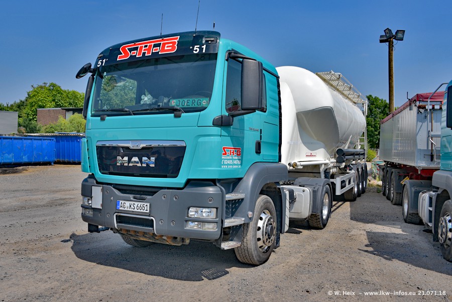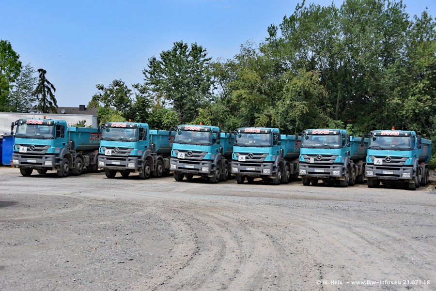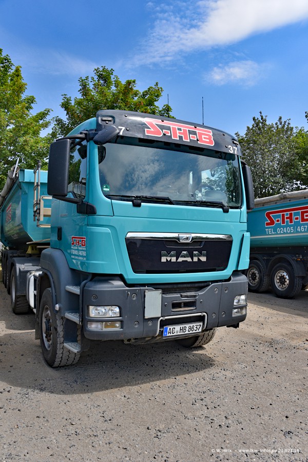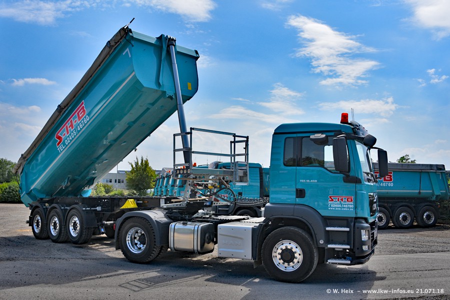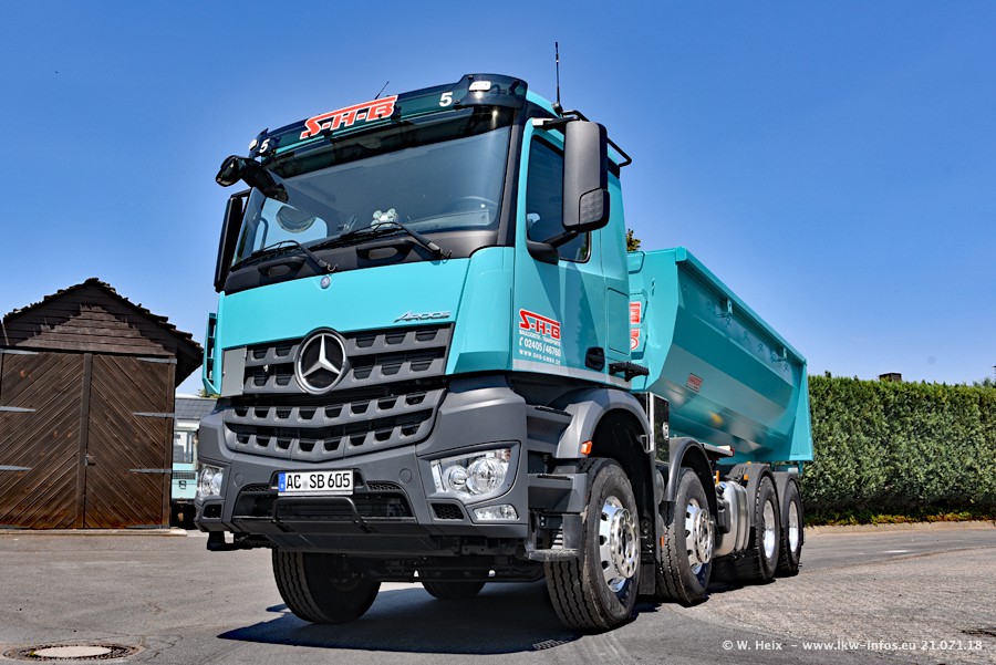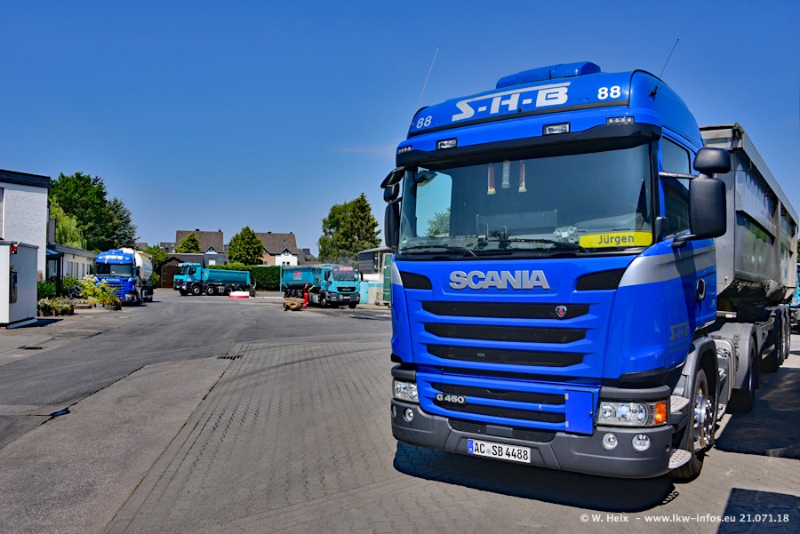 Seit meinem letzten Besuch bei SHB im März 2017 sind so einige neue LKW gekommen, die den Furhpark modernisieren bzw. alte Fahrzeuge ersetzt haben. Das sind bei den dunkelblauen LKW alle Mercedes-Benz Arocs/Antos/Actros. Passend dazu gibt es auch mehrere neue Kippauflieger. Bei den hellblauen LKW gibt es einige neue MAN TGX Euro 6 der aktuellen Generation und ab Montag (23.07.) wird ein Mercedes-Benz Arocs 8x4 auf der Straße sein. Der Fuhrpark war fast komplett zuhause.