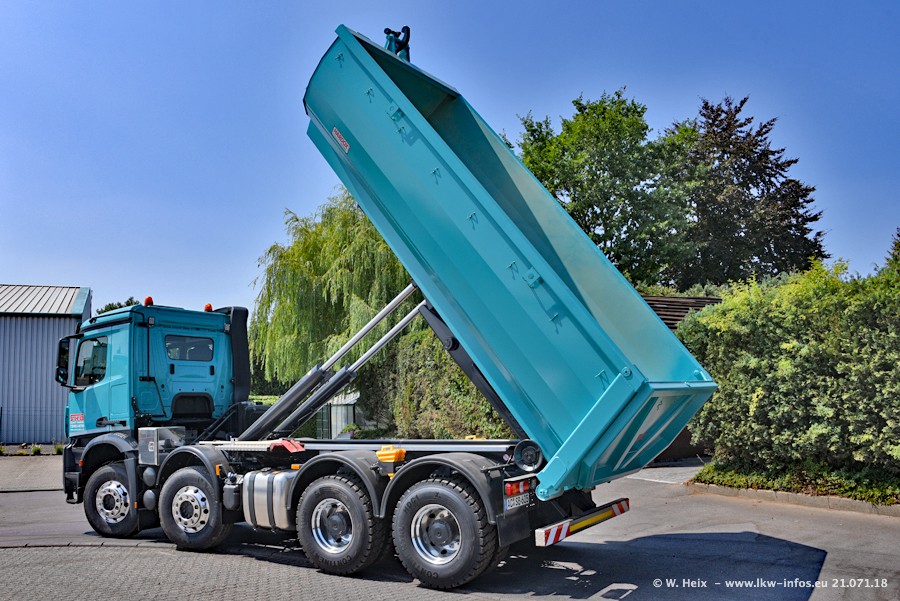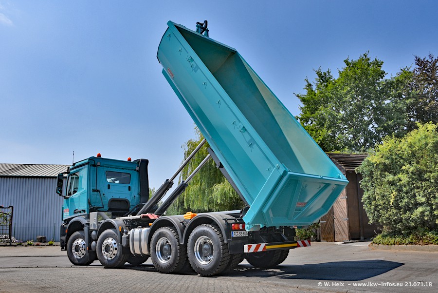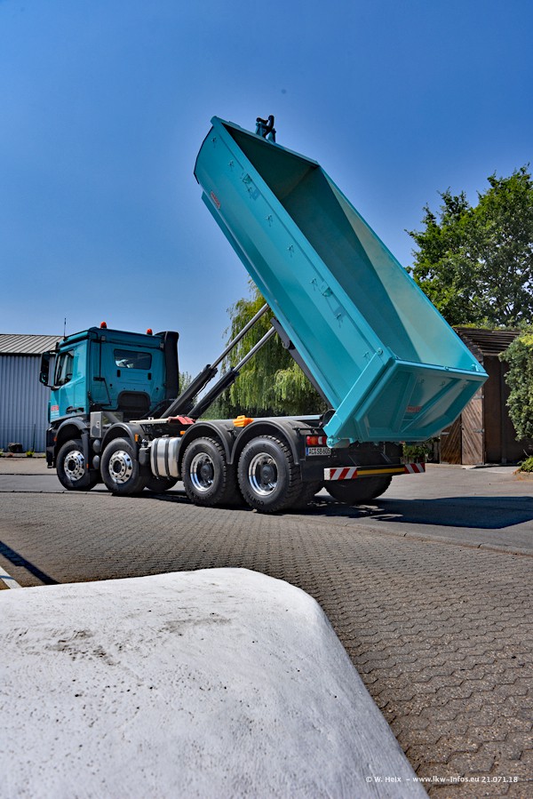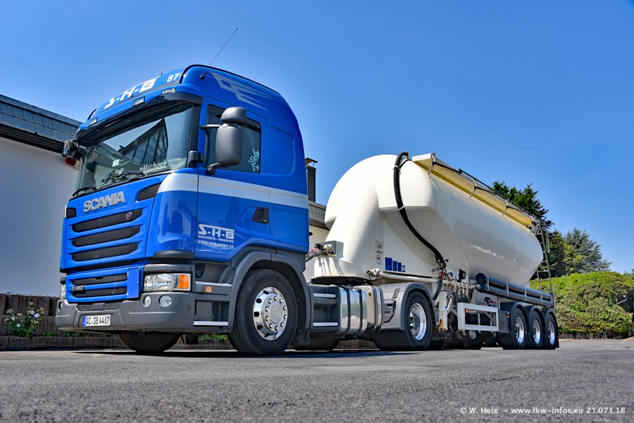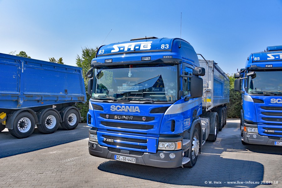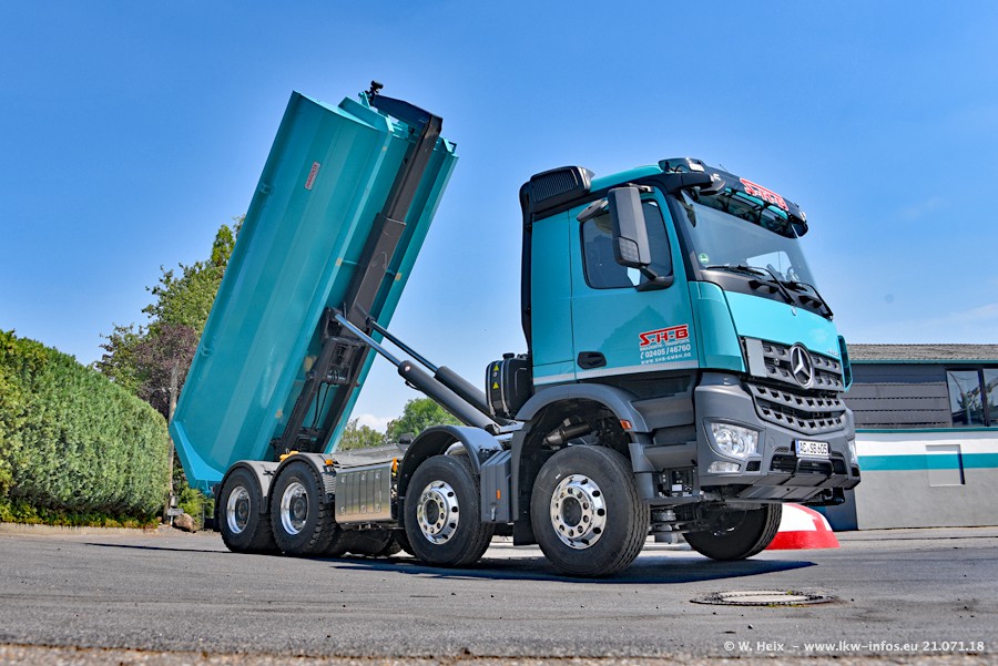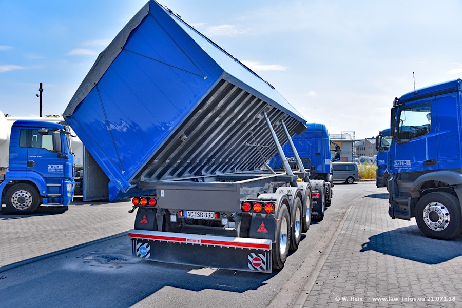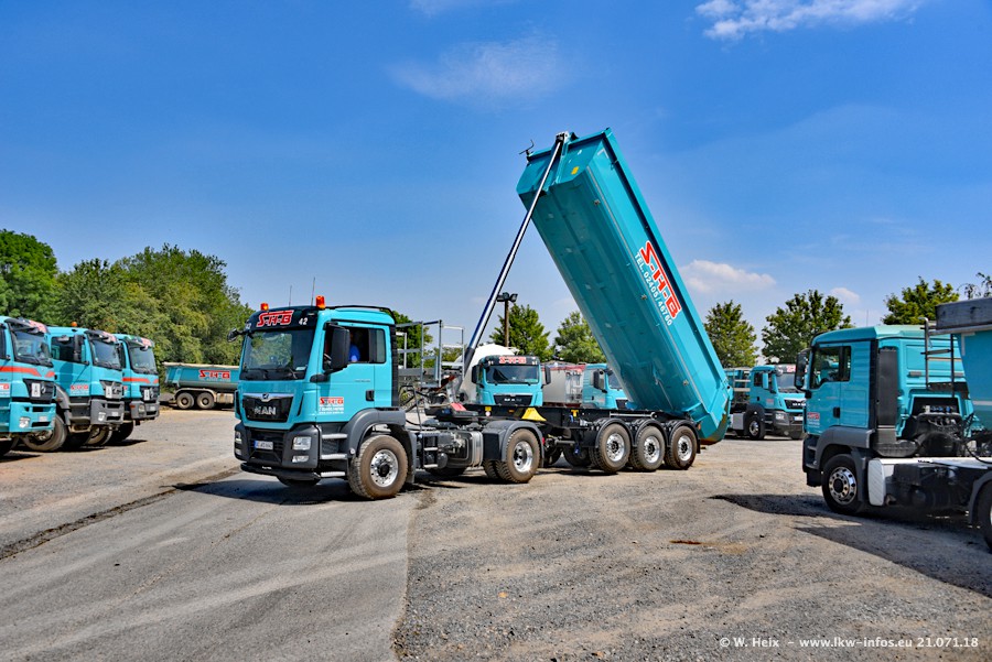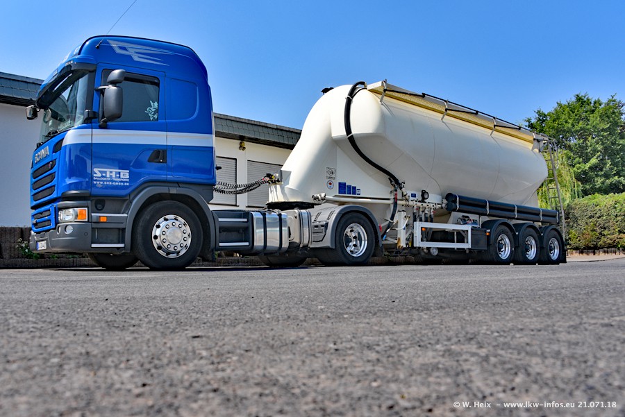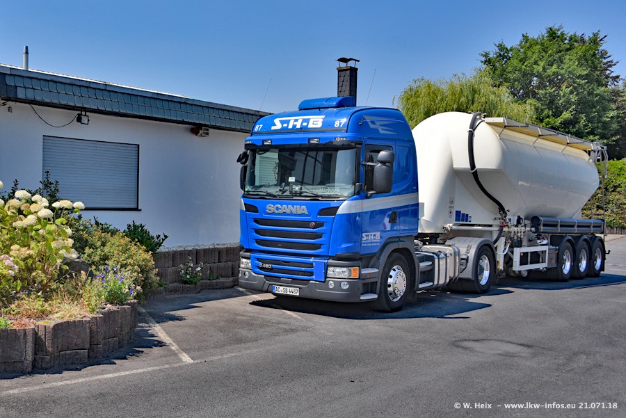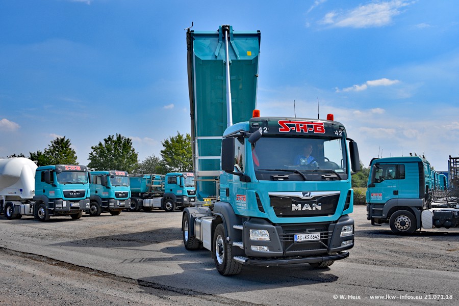 Seit meinem letzten Besuch bei SHB im März 2017 sind so einige neue LKW gekommen, die den Furhpark modernisieren bzw. alte Fahrzeuge ersetzt haben. Das sind bei den dunkelblauen LKW alle Mercedes-Benz Arocs/Antos/Actros. Passend dazu gibt es auch mehrere neue Kippauflieger. Bei den hellblauen LKW gibt es einige neue MAN TGX Euro 6 der aktuellen Generation und ab Montag (23.07.) wird ein Mercedes-Benz Arocs 8x4 auf der Straße sein. Der Fuhrpark war fast komplett zuhause.