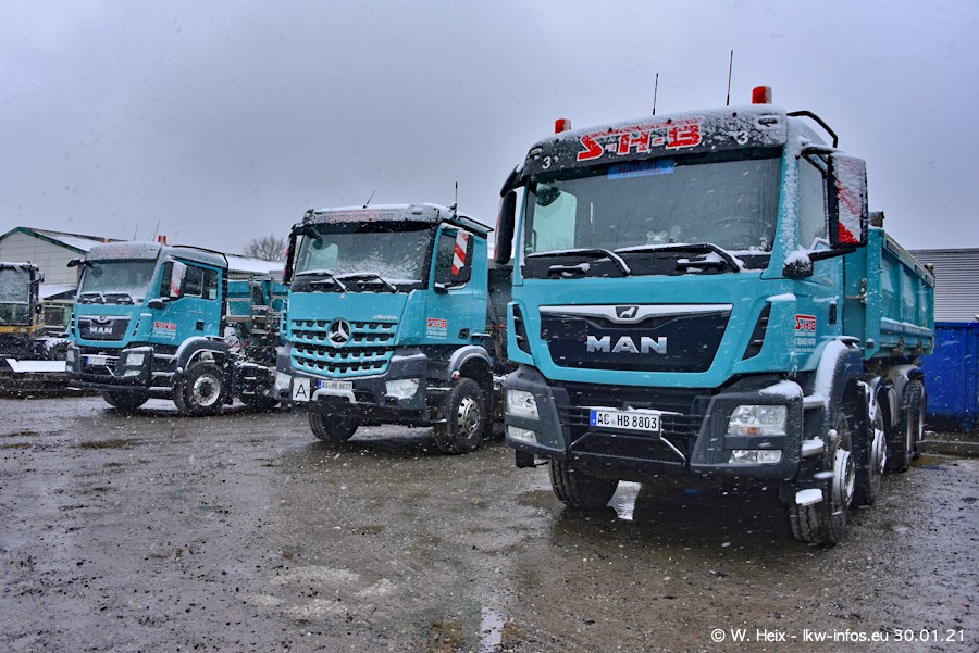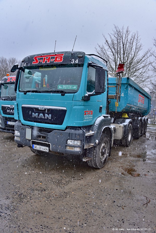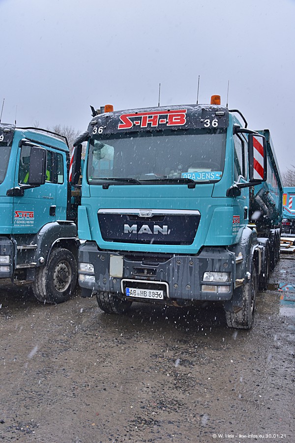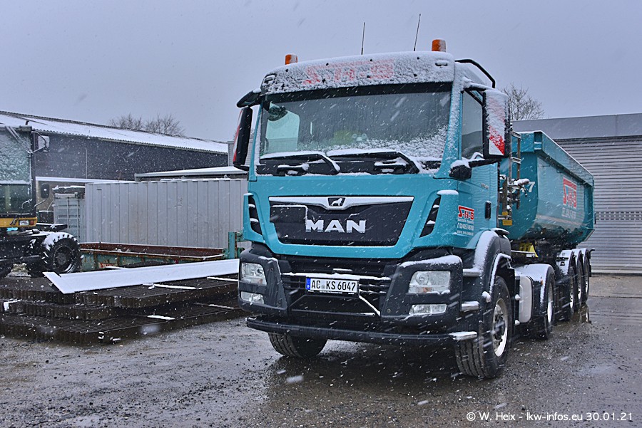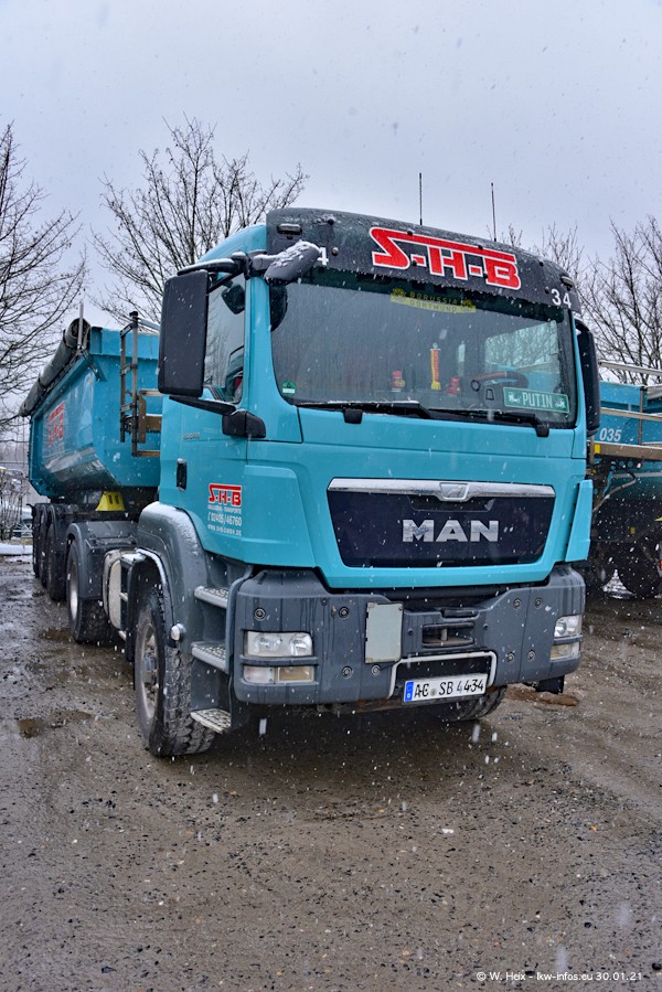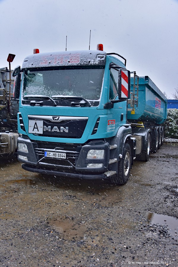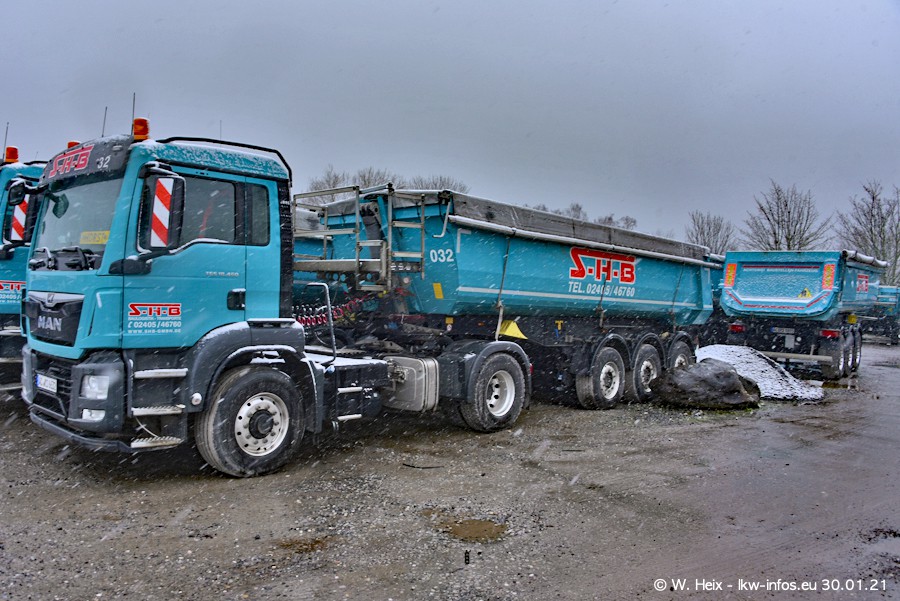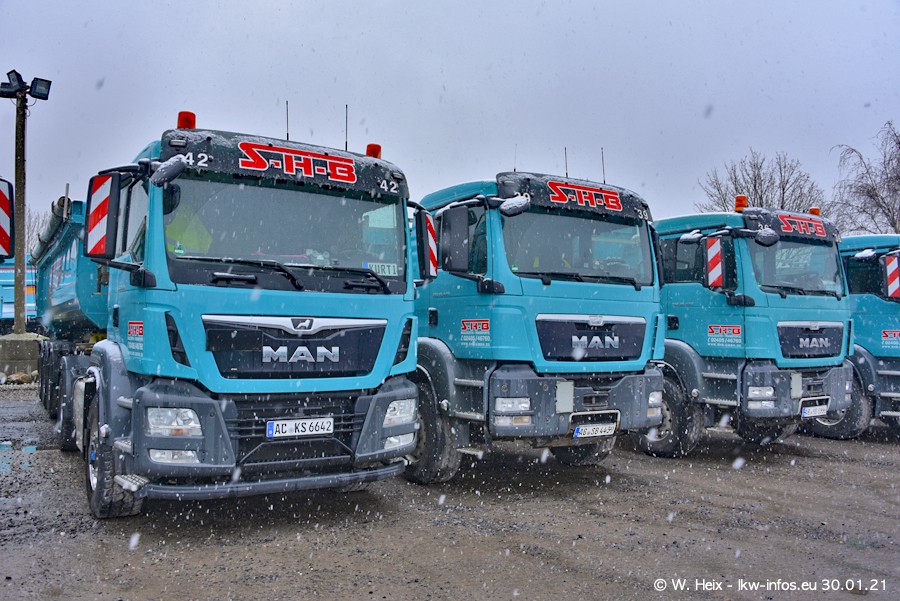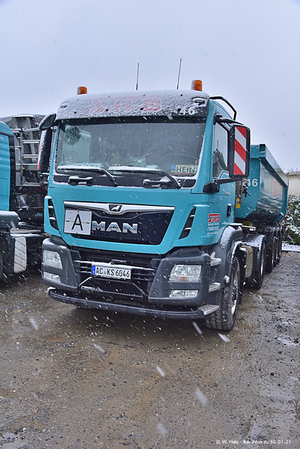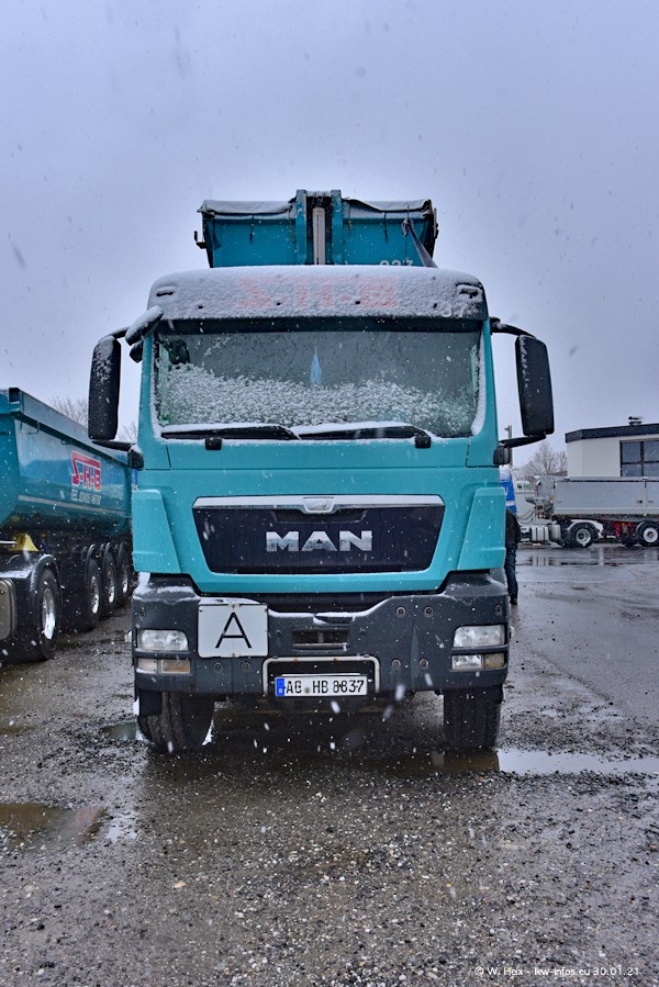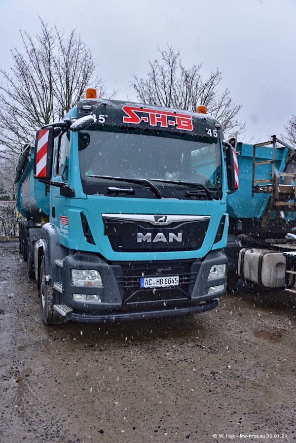 Auf dieser Fototour bin ich vom Winterwetter mit Schneefall überrascht worden. Aber trotzdem sind viele schöne Bilder entstanden, auch wenn es nass und dunkel war. Die ersten beiden von insgesamt sieben MAN TGS (alte Baureihe) standen auf dem Hof. In den nächsten Tagen kommen dann die "restlichen". Dazu gibt es auch sieben neue Kippauflieger. Alle neuen Fahrzeuge ersten alte. Wenn alle neuen LKW da sind, werde ich die Firma SHB bei besserem Wetter nochmal besuchen.