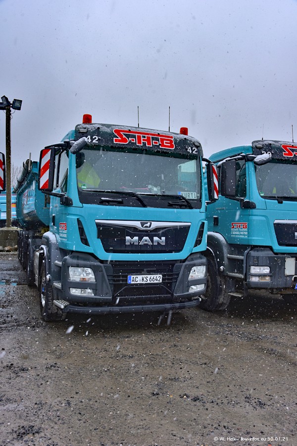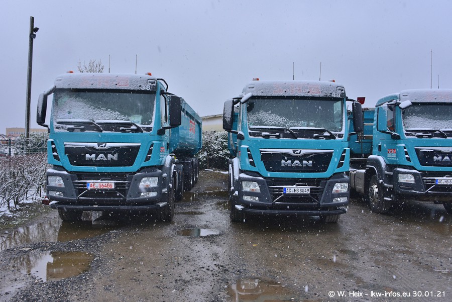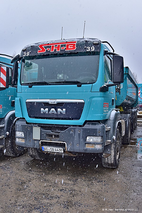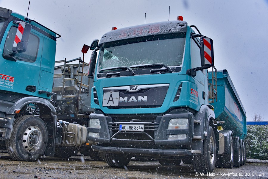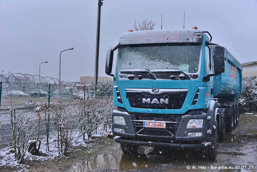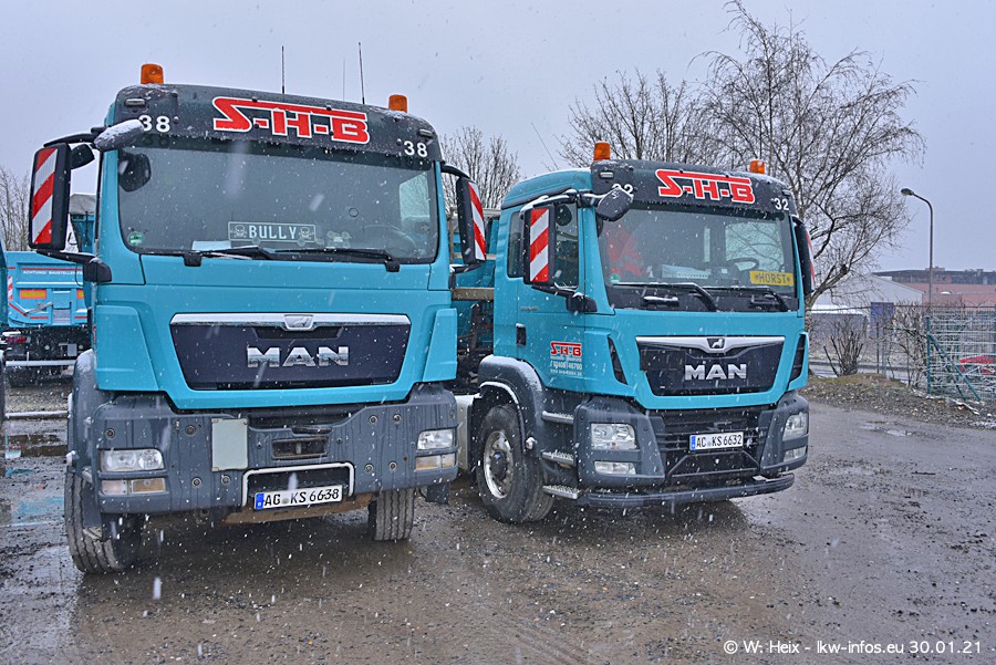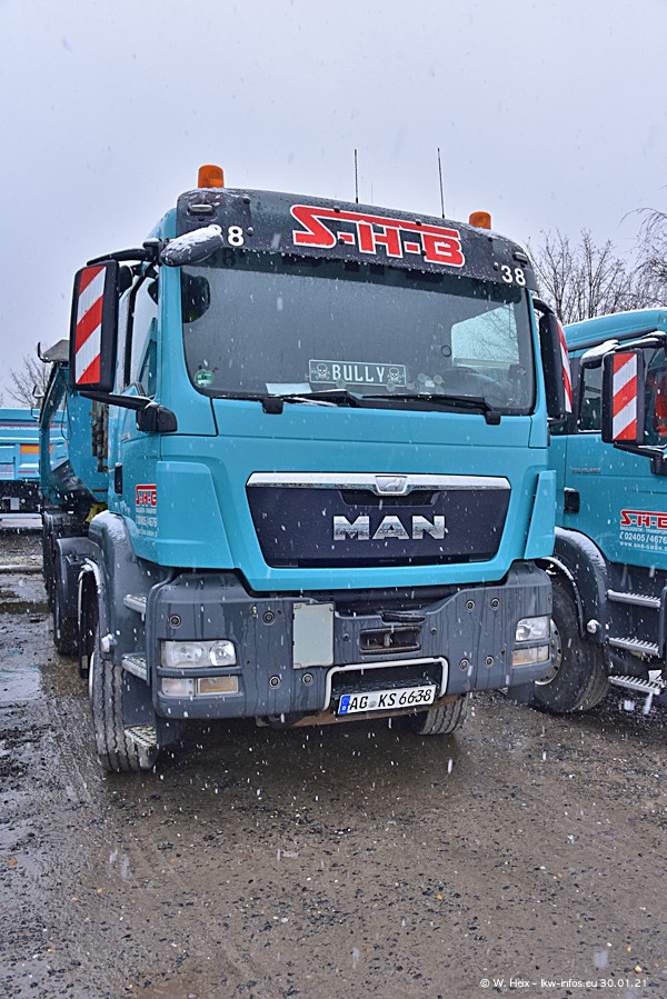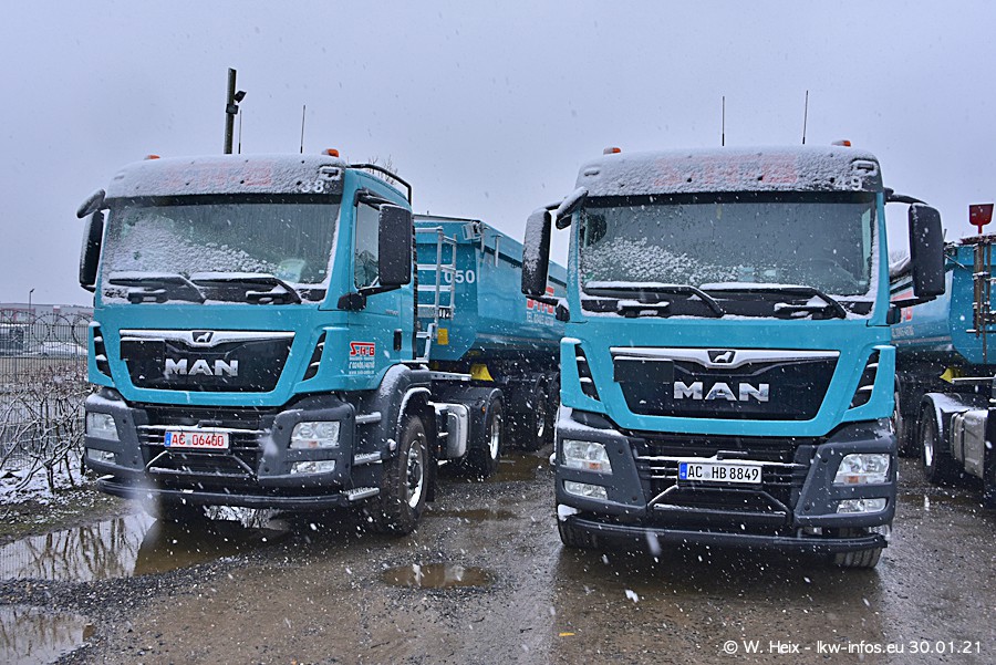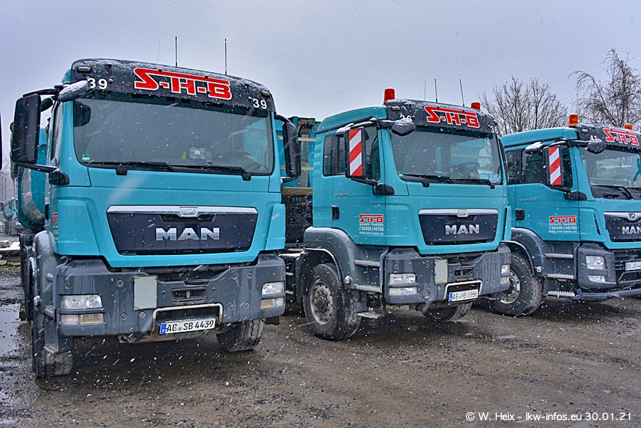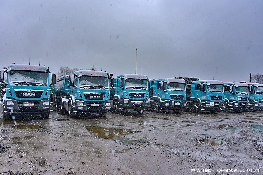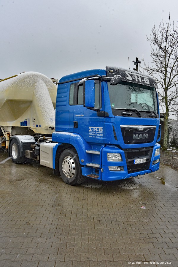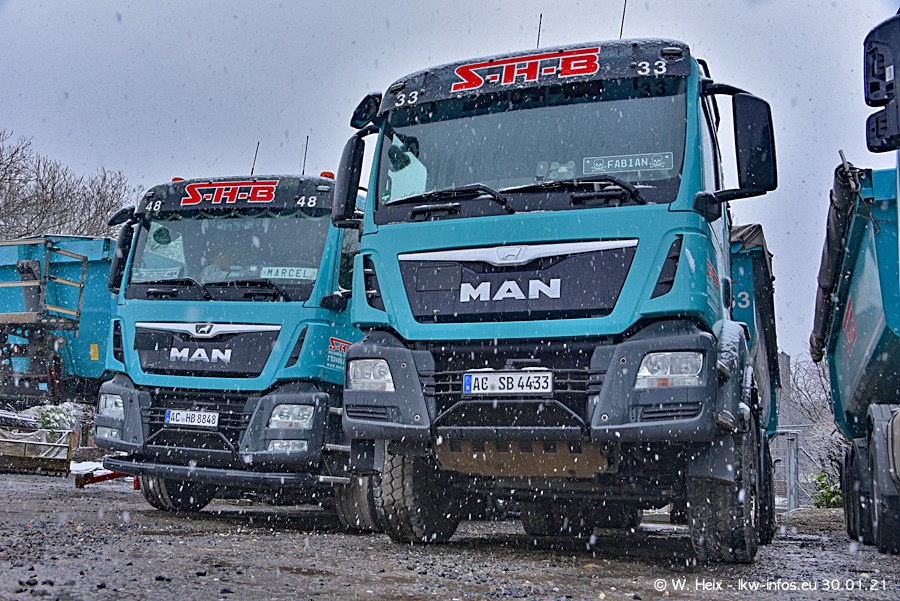 Auf dieser Fototour bin ich vom Winterwetter mit Schneefall überrascht worden. Aber trotzdem sind viele schöne Bilder entstanden, auch wenn es nass und dunkel war. Die ersten beiden von insgesamt sieben MAN TGS (alte Baureihe) standen auf dem Hof. In den nächsten Tagen kommen dann die "restlichen". Dazu gibt es auch sieben neue Kippauflieger. Alle neuen Fahrzeuge ersten alte. Wenn alle neuen LKW da sind, werde ich die Firma SHB bei besserem Wetter nochmal besuchen.