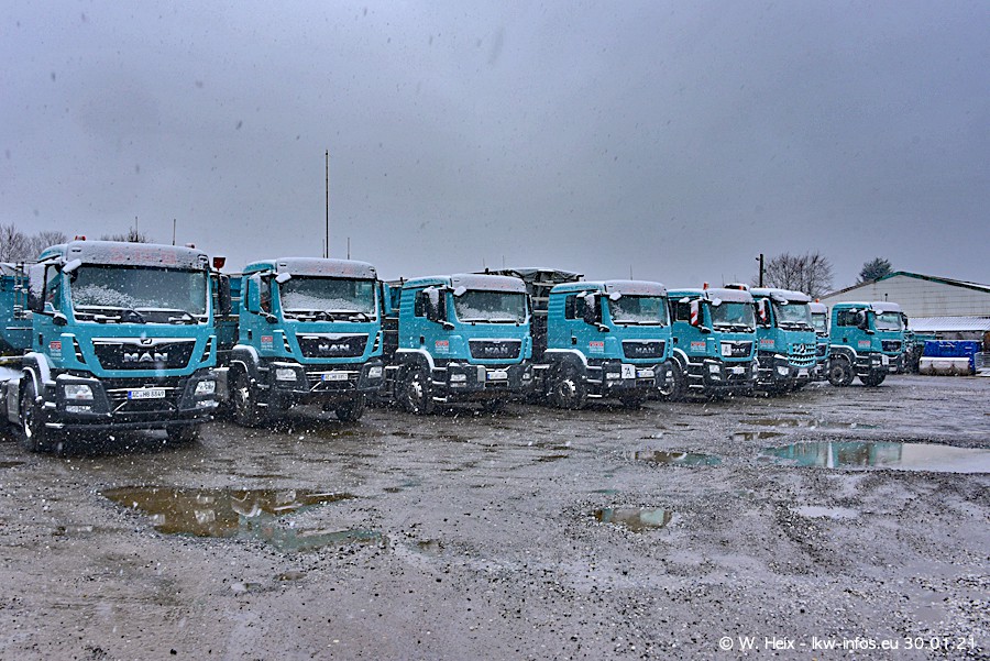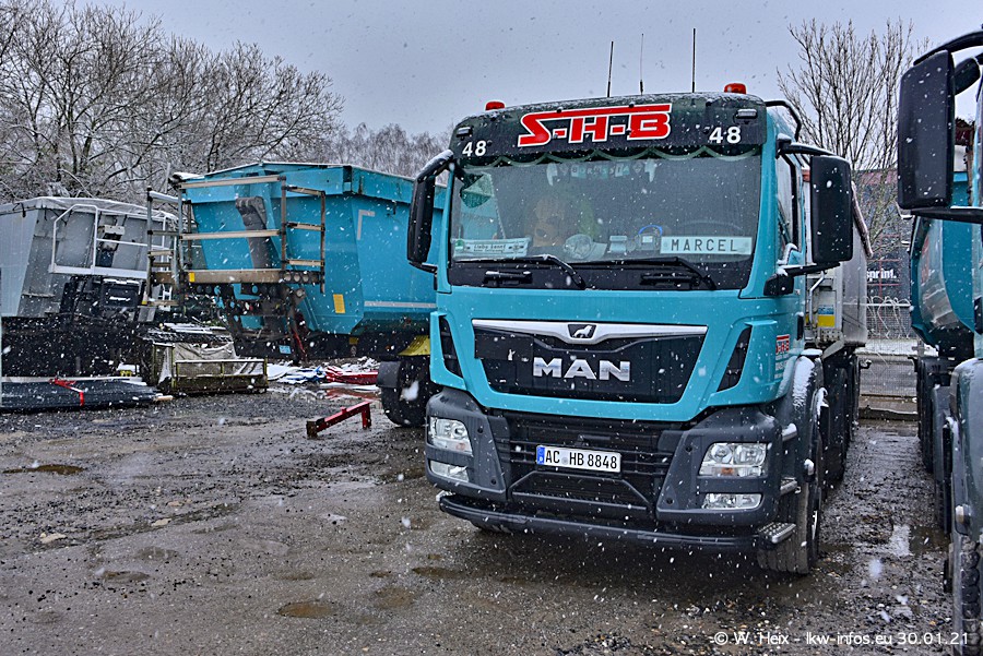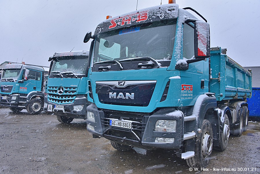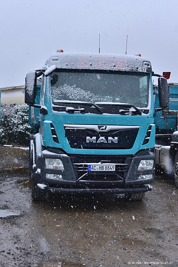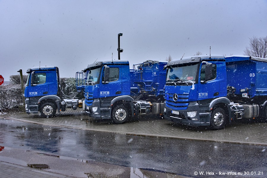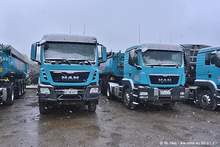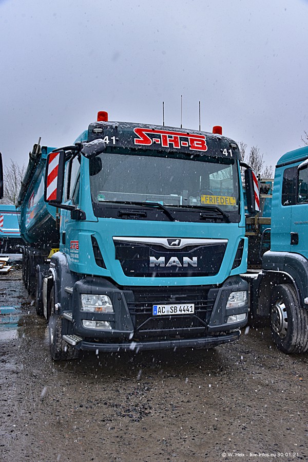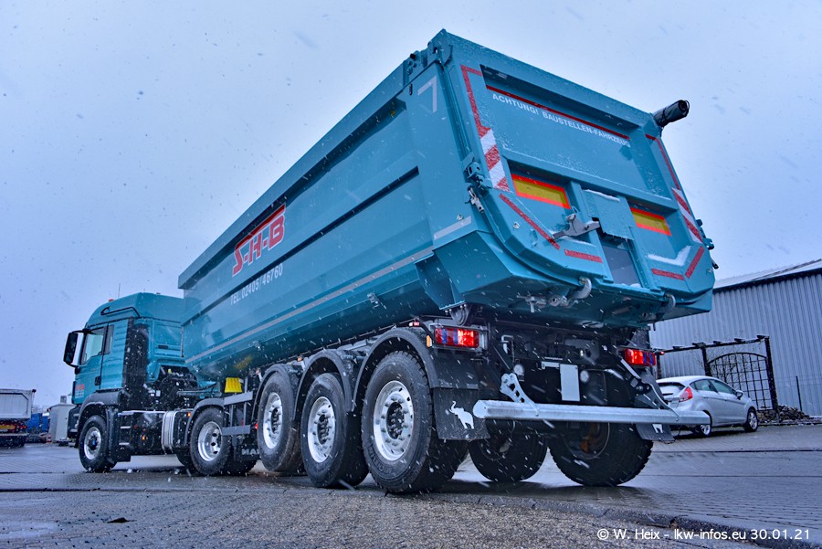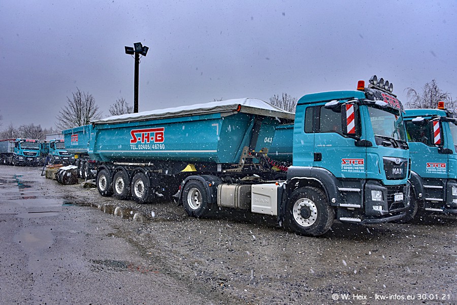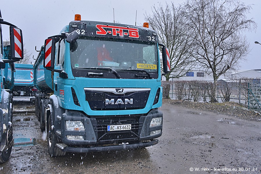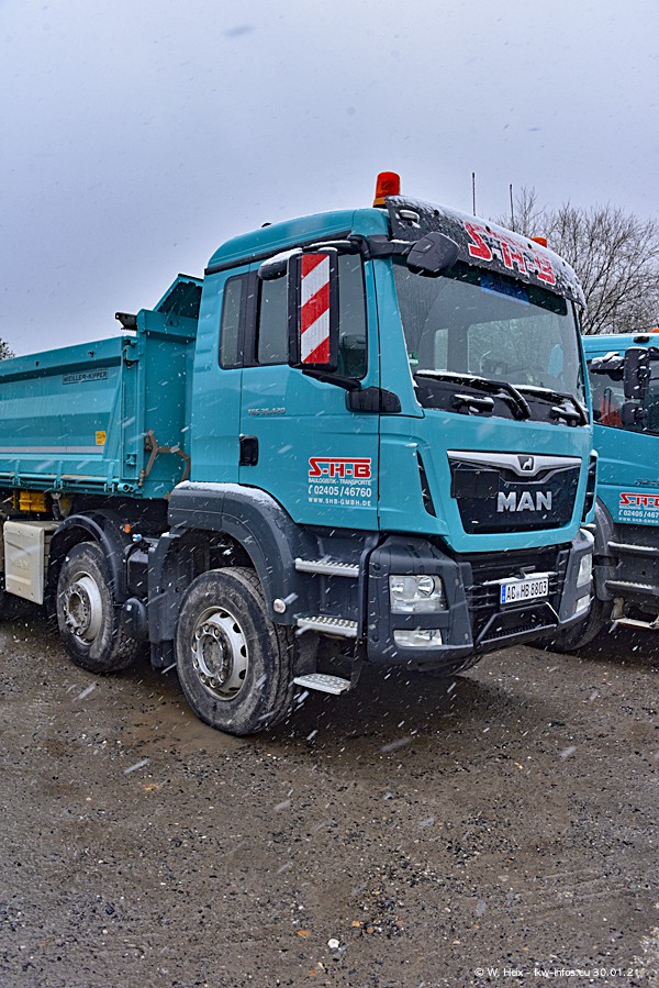 Auf dieser Fototour bin ich vom Winterwetter mit Schneefall überrascht worden. Aber trotzdem sind viele schöne Bilder entstanden, auch wenn es nass und dunkel war. Die ersten beiden von insgesamt sieben MAN TGS (alte Baureihe) standen auf dem Hof. In den nächsten Tagen kommen dann die "restlichen". Dazu gibt es auch sieben neue Kippauflieger. Alle neuen Fahrzeuge ersten alte. Wenn alle neuen LKW da sind, werde ich die Firma SHB bei besserem Wetter nochmal besuchen.