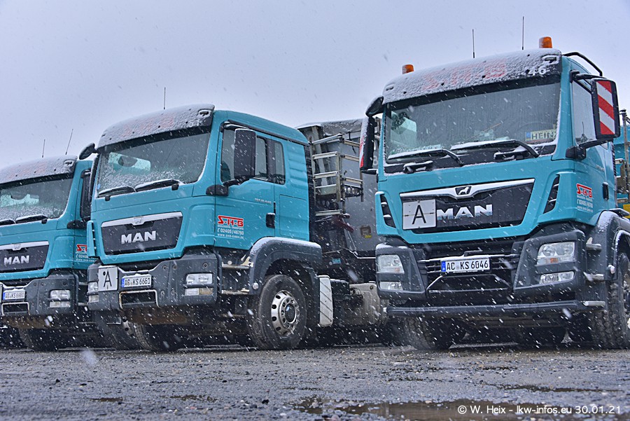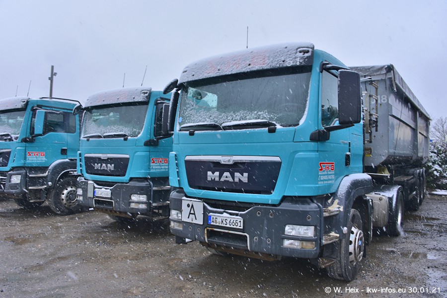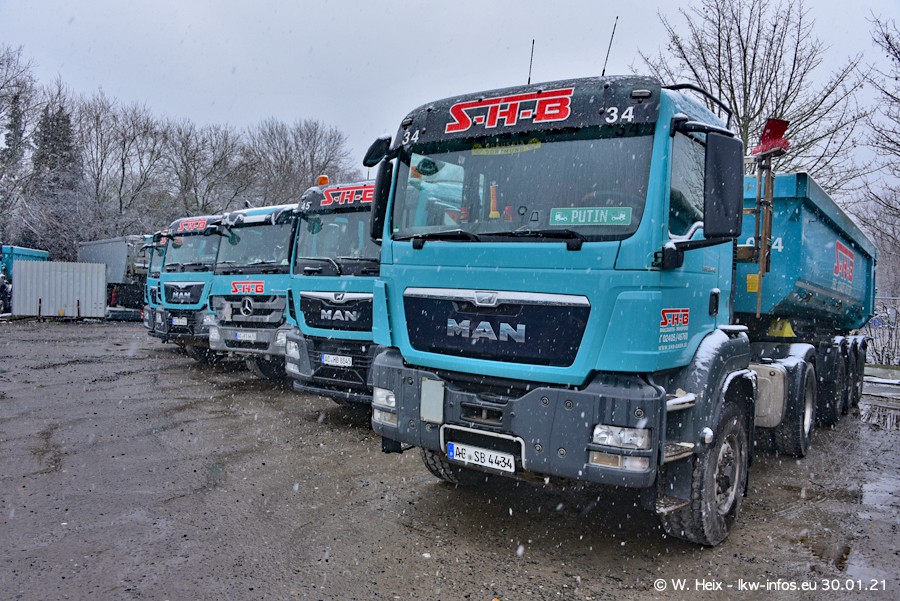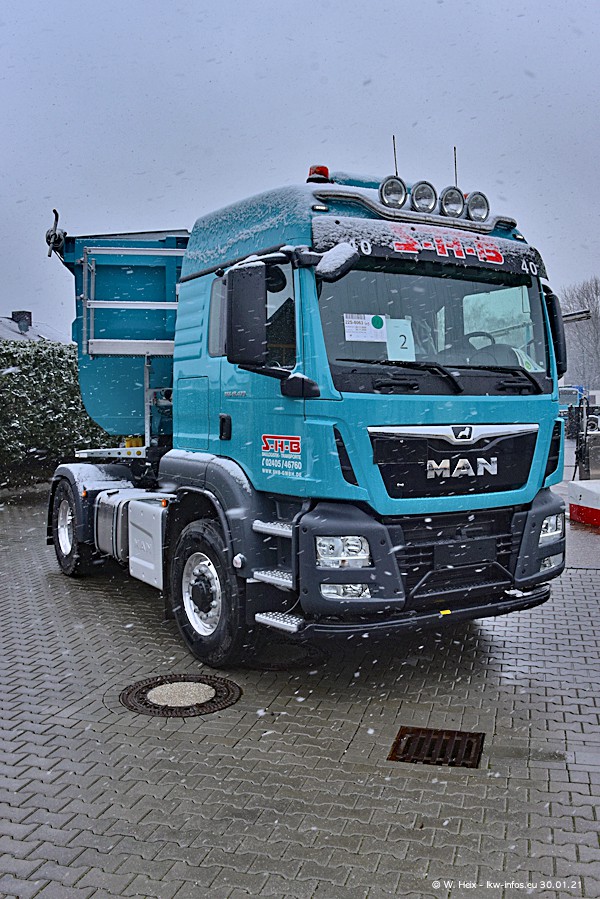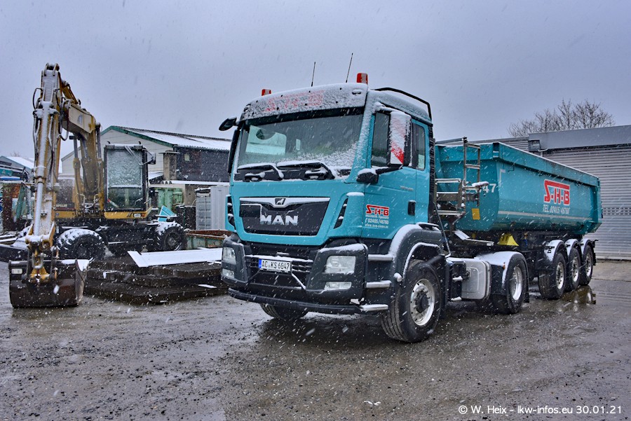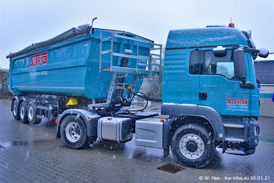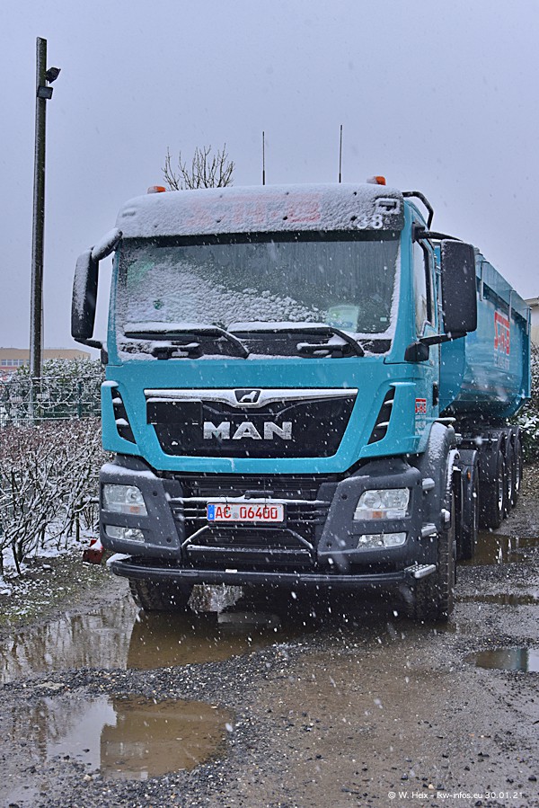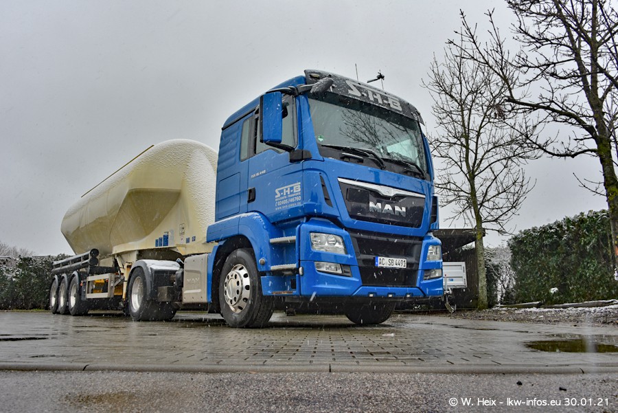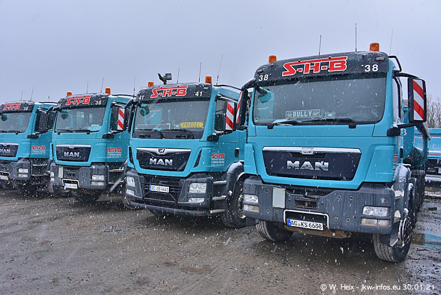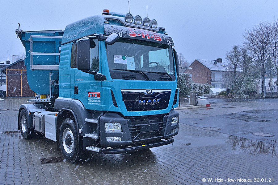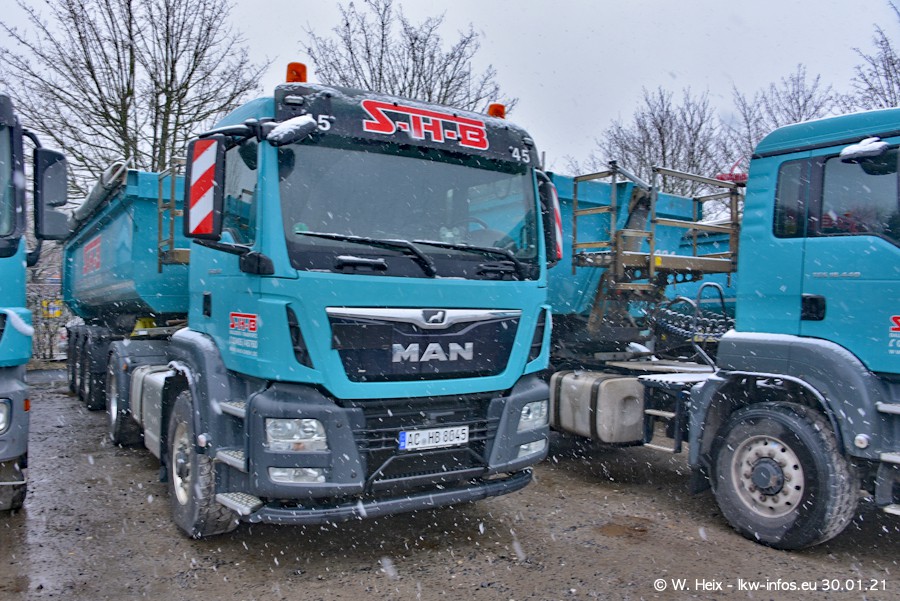 Auf dieser Fototour bin ich vom Winterwetter mit Schneefall überrascht worden. Aber trotzdem sind viele schöne Bilder entstanden, auch wenn es nass und dunkel war. Die ersten beiden von insgesamt sieben MAN TGS (alte Baureihe) standen auf dem Hof. In den nächsten Tagen kommen dann die "restlichen". Dazu gibt es auch sieben neue Kippauflieger. Alle neuen Fahrzeuge ersten alte. Wenn alle neuen LKW da sind, werde ich die Firma SHB bei besserem Wetter nochmal besuchen.