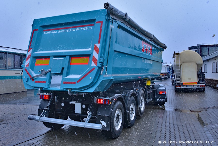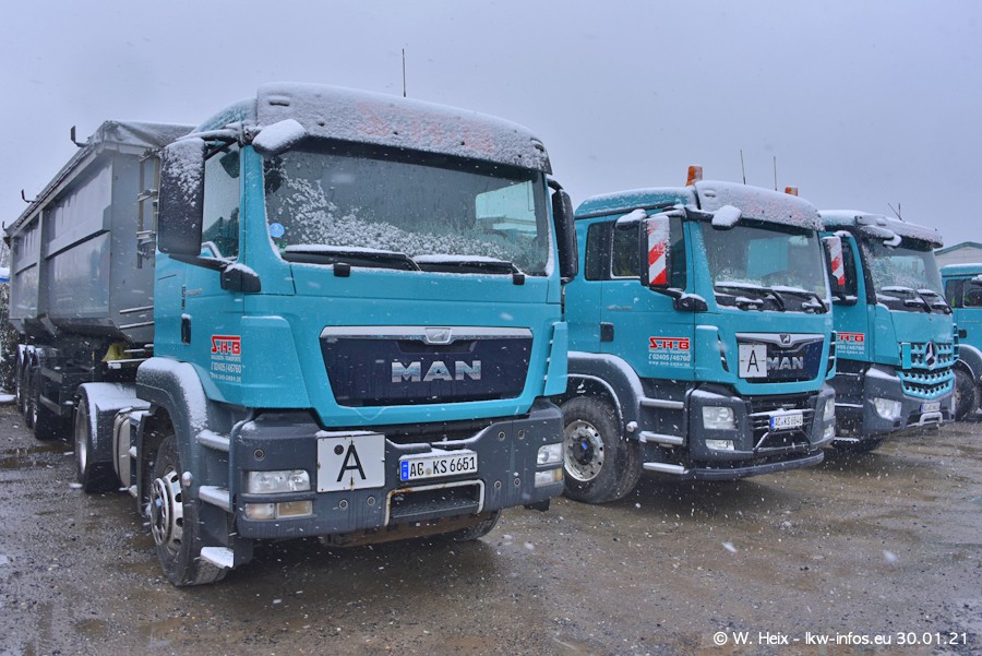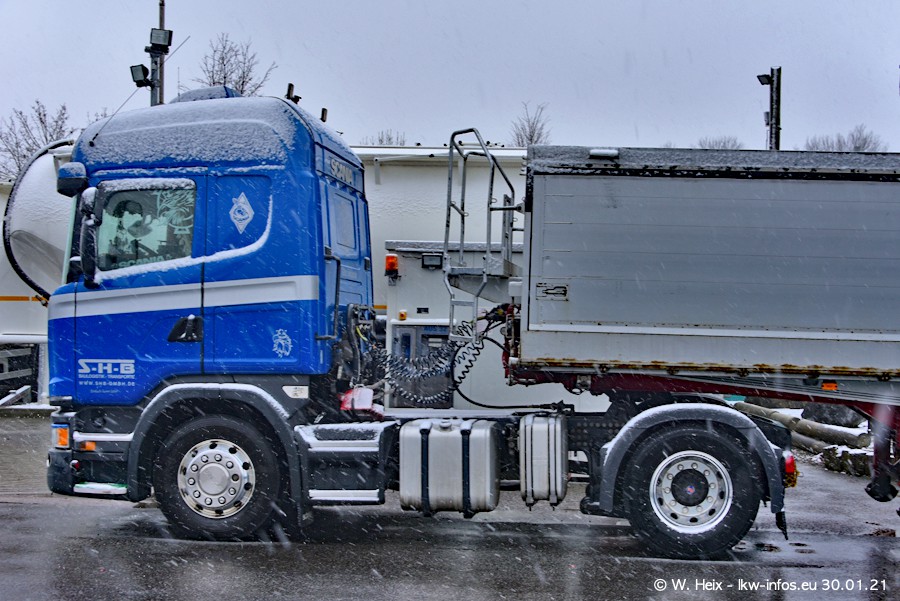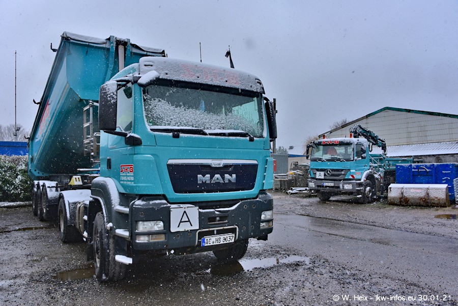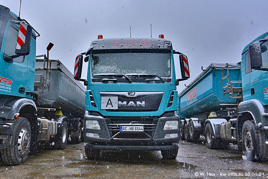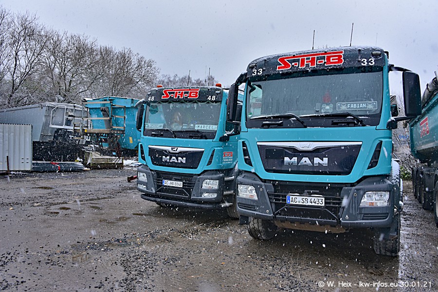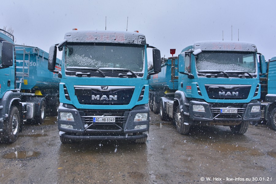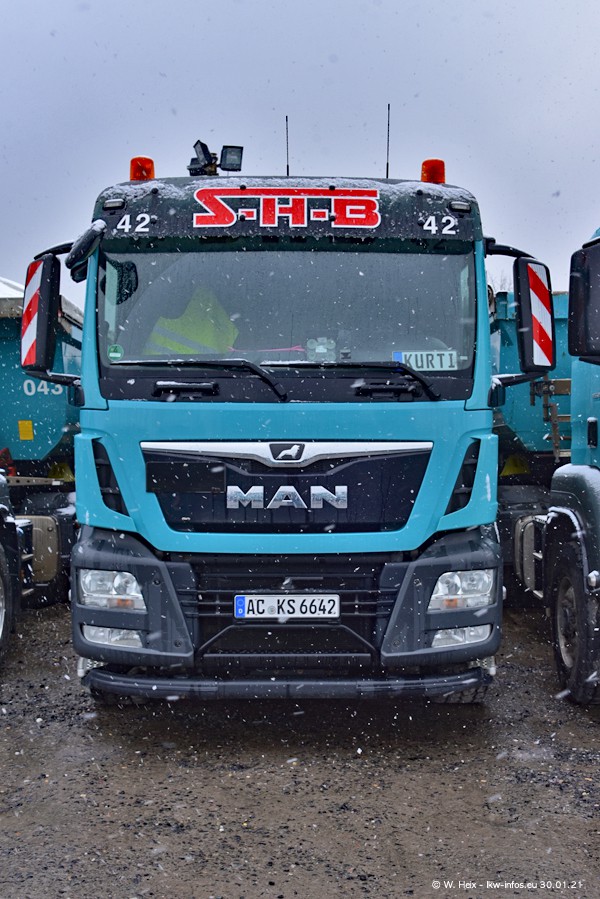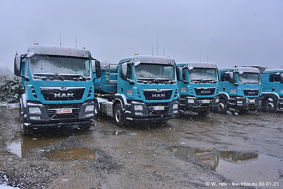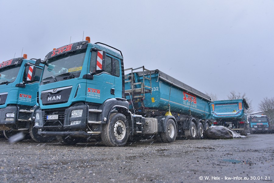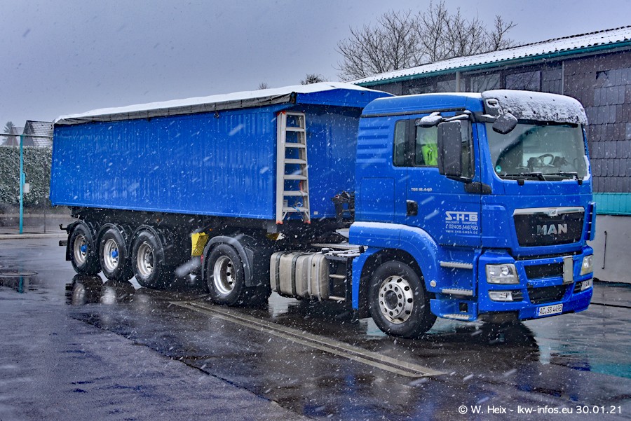 Auf dieser Fototour bin ich vom Winterwetter mit Schneefall überrascht worden. Aber trotzdem sind viele schöne Bilder entstanden, auch wenn es nass und dunkel war. Die ersten beiden von insgesamt sieben MAN TGS (alte Baureihe) standen auf dem Hof. In den nächsten Tagen kommen dann die "restlichen". Dazu gibt es auch sieben neue Kippauflieger. Alle neuen Fahrzeuge ersten alte. Wenn alle neuen LKW da sind, werde ich die Firma SHB bei besserem Wetter nochmal besuchen.