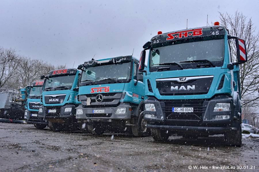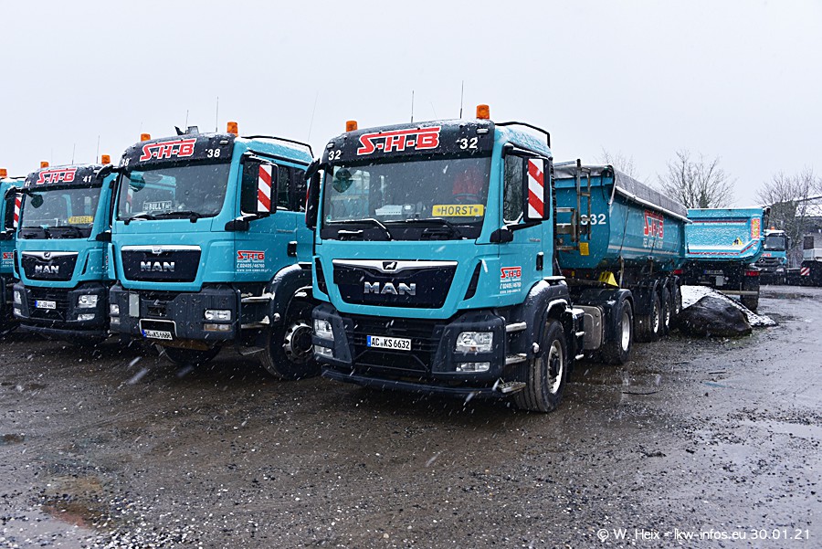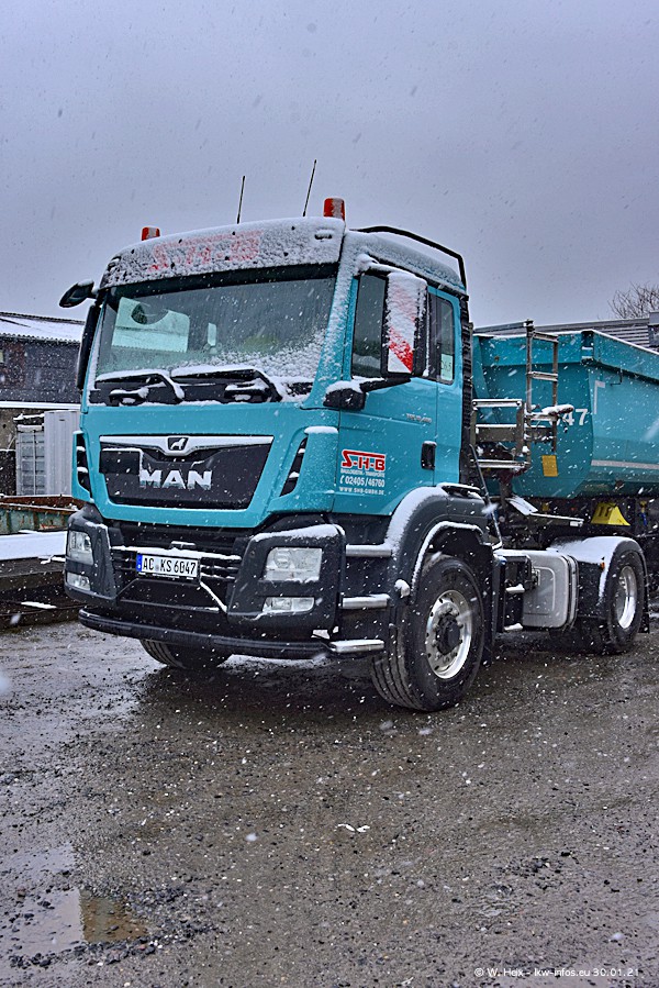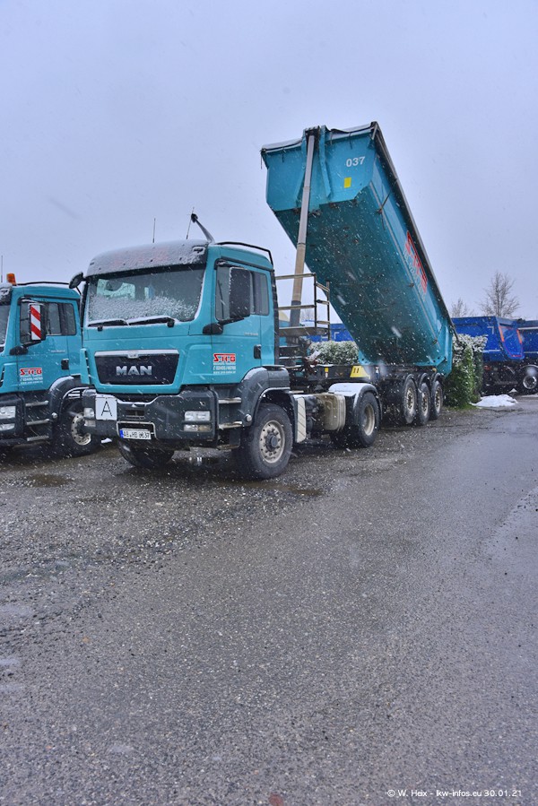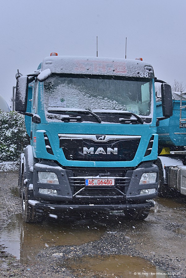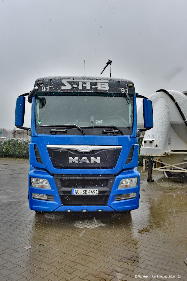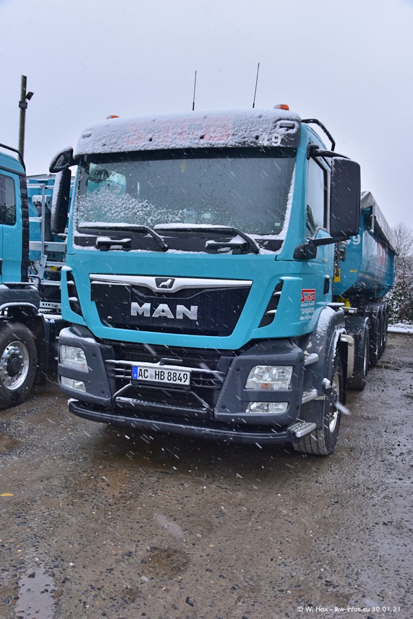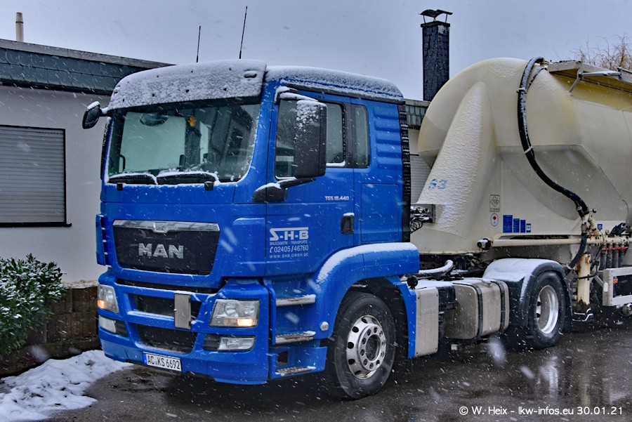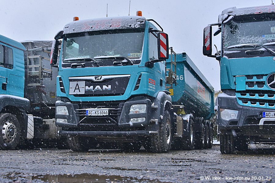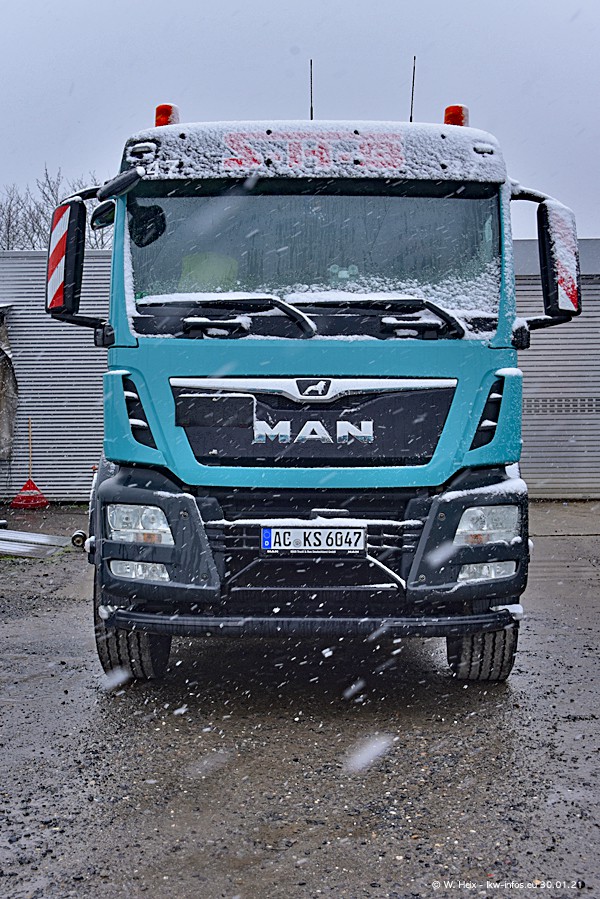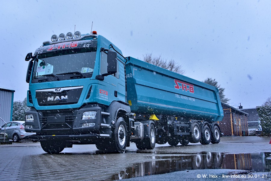 Auf dieser Fototour bin ich vom Winterwetter mit Schneefall überrascht worden. Aber trotzdem sind viele schöne Bilder entstanden, auch wenn es nass und dunkel war. Die ersten beiden von insgesamt sieben MAN TGS (alte Baureihe) standen auf dem Hof. In den nächsten Tagen kommen dann die "restlichen". Dazu gibt es auch sieben neue Kippauflieger. Alle neuen Fahrzeuge ersten alte. Wenn alle neuen LKW da sind, werde ich die Firma SHB bei besserem Wetter nochmal besuchen.