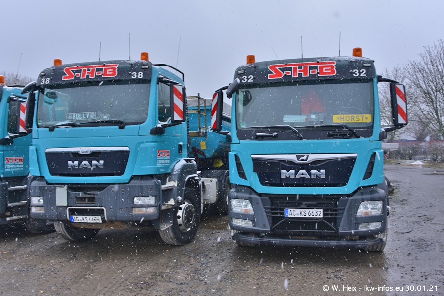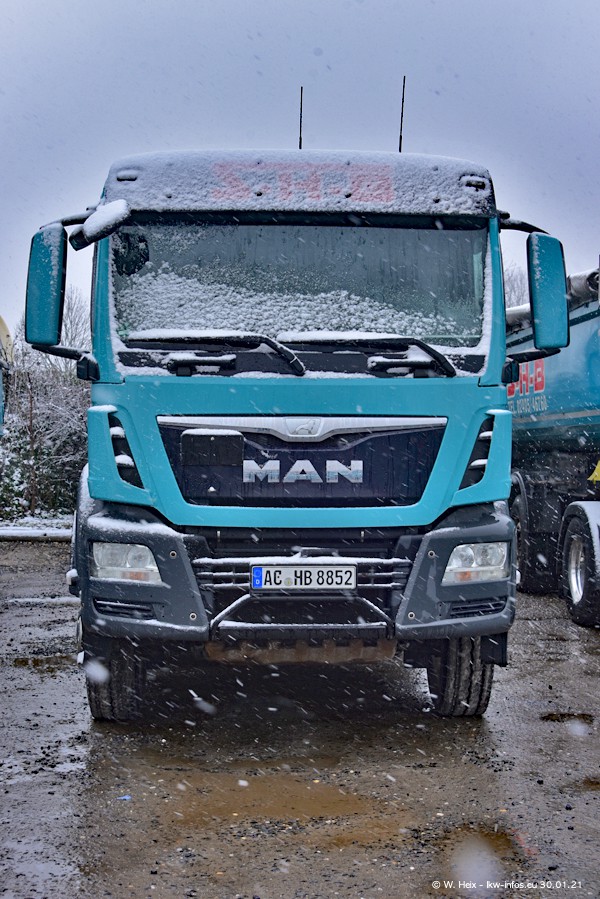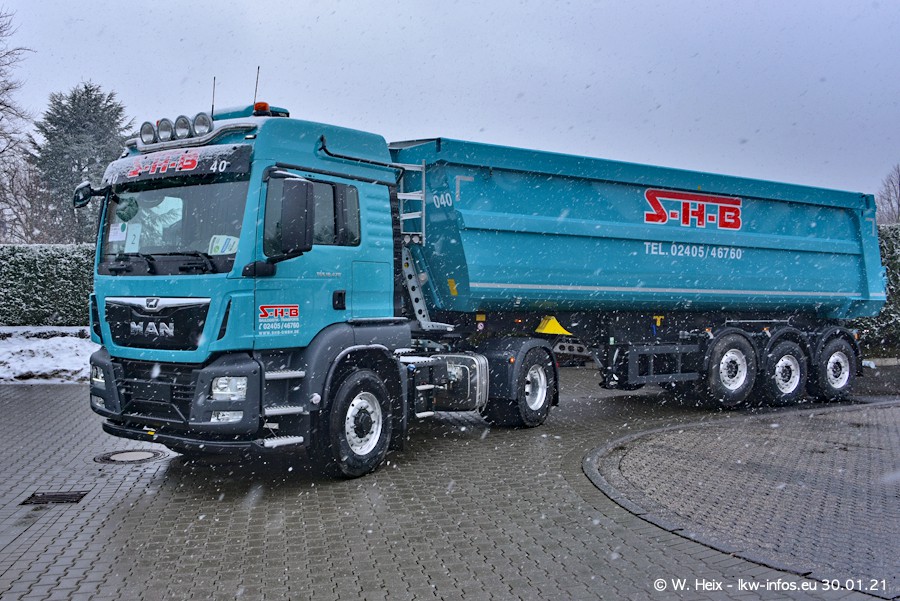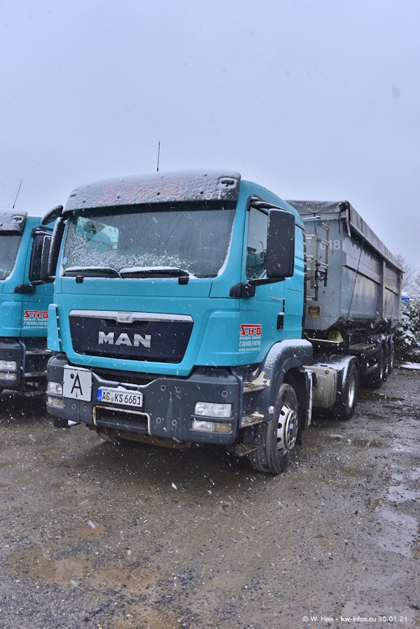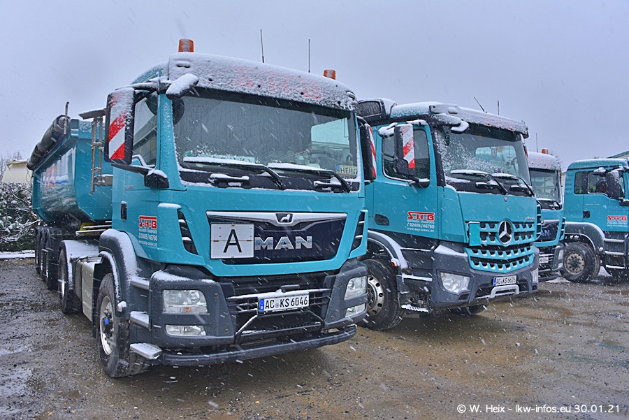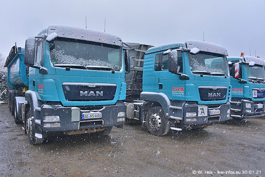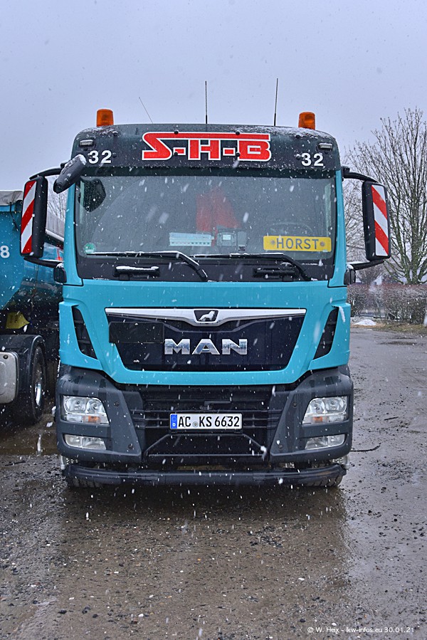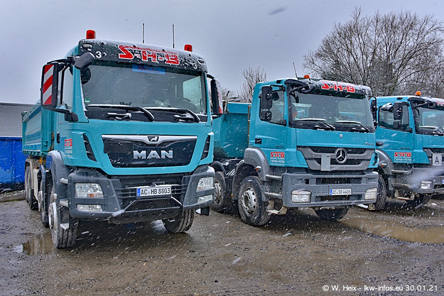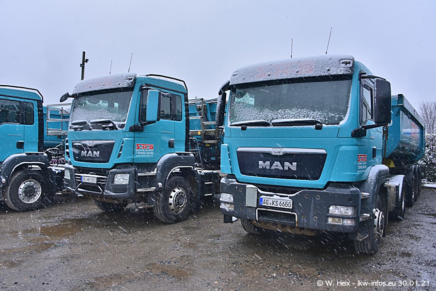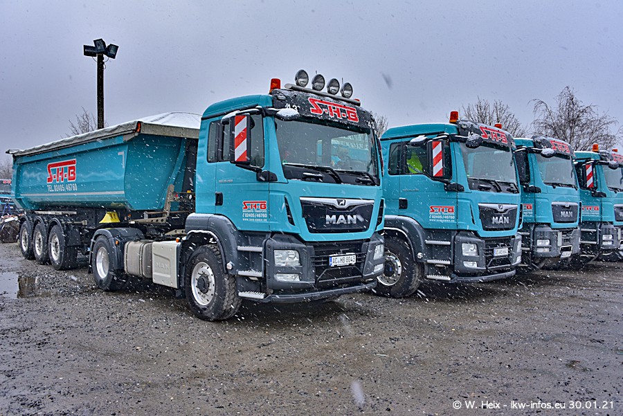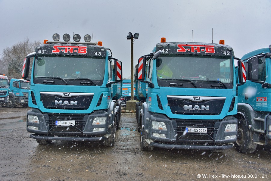 Auf dieser Fototour bin ich vom Winterwetter mit Schneefall überrascht worden. Aber trotzdem sind viele schöne Bilder entstanden, auch wenn es nass und dunkel war. Die ersten beiden von insgesamt sieben MAN TGS (alte Baureihe) standen auf dem Hof. In den nächsten Tagen kommen dann die "restlichen". Dazu gibt es auch sieben neue Kippauflieger. Alle neuen Fahrzeuge ersten alte. Wenn alle neuen LKW da sind, werde ich die Firma SHB bei besserem Wetter nochmal besuchen.