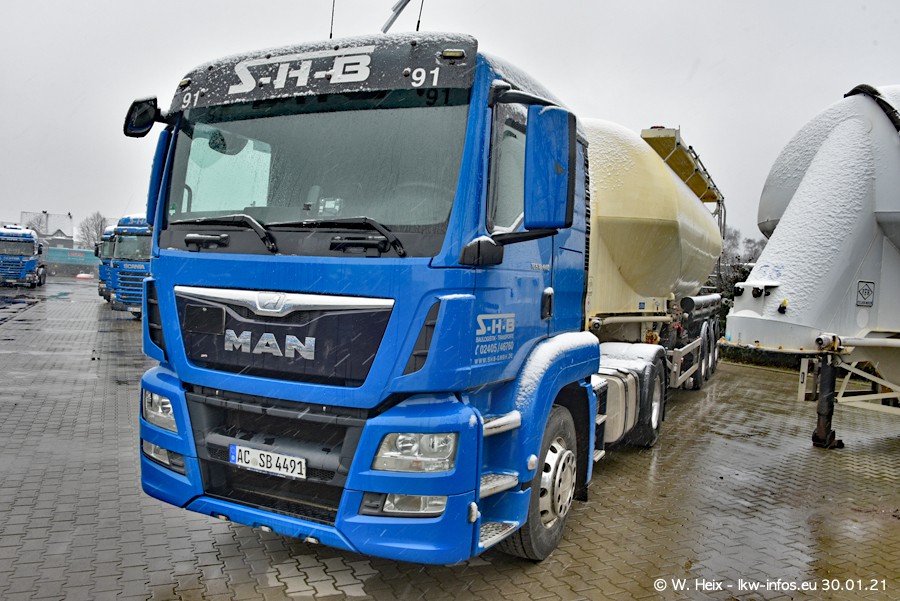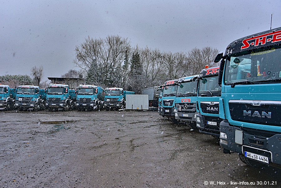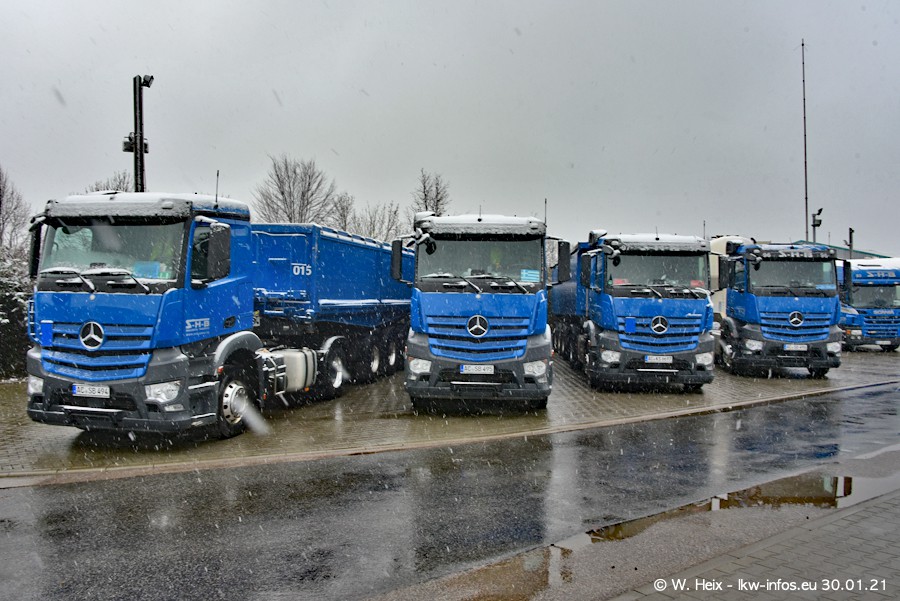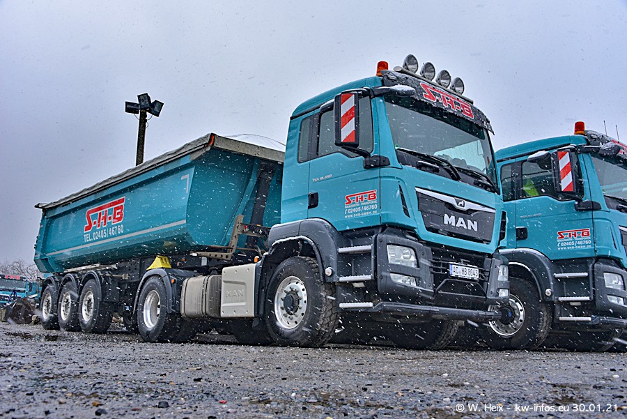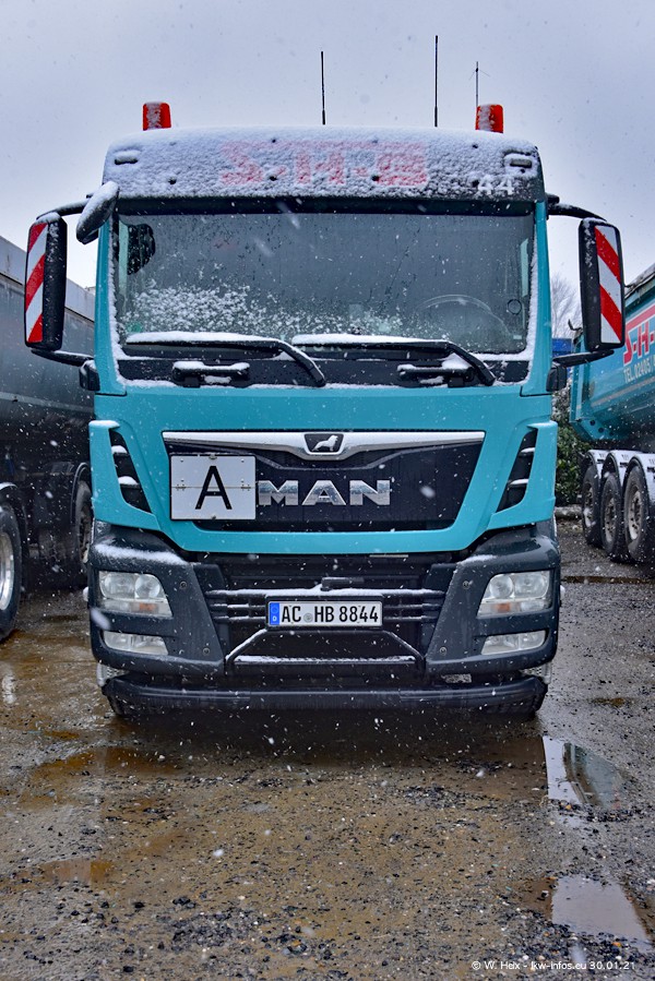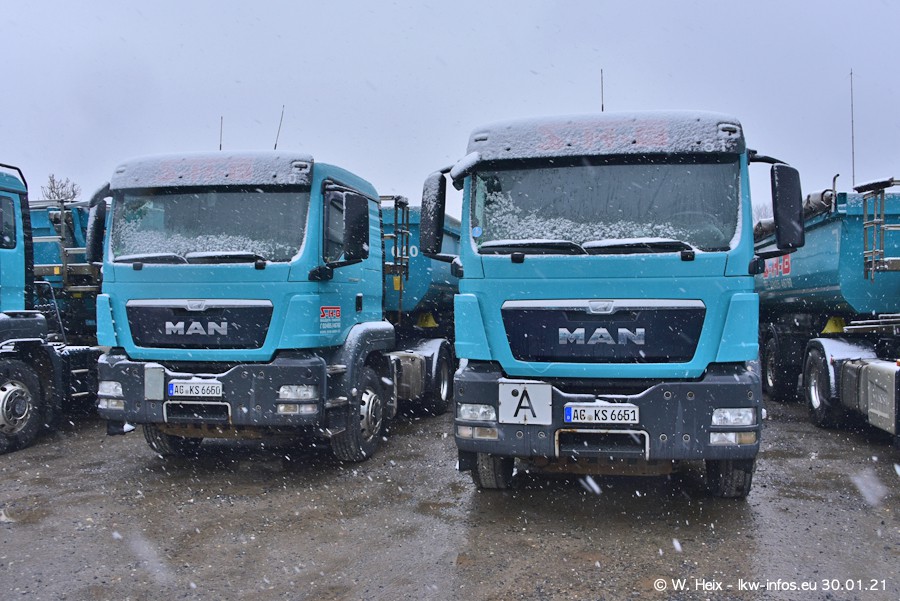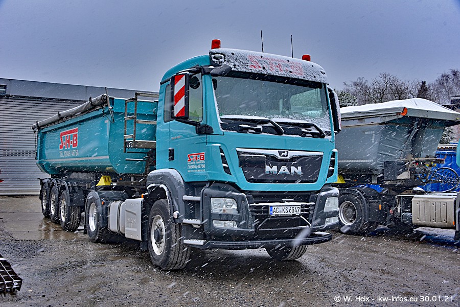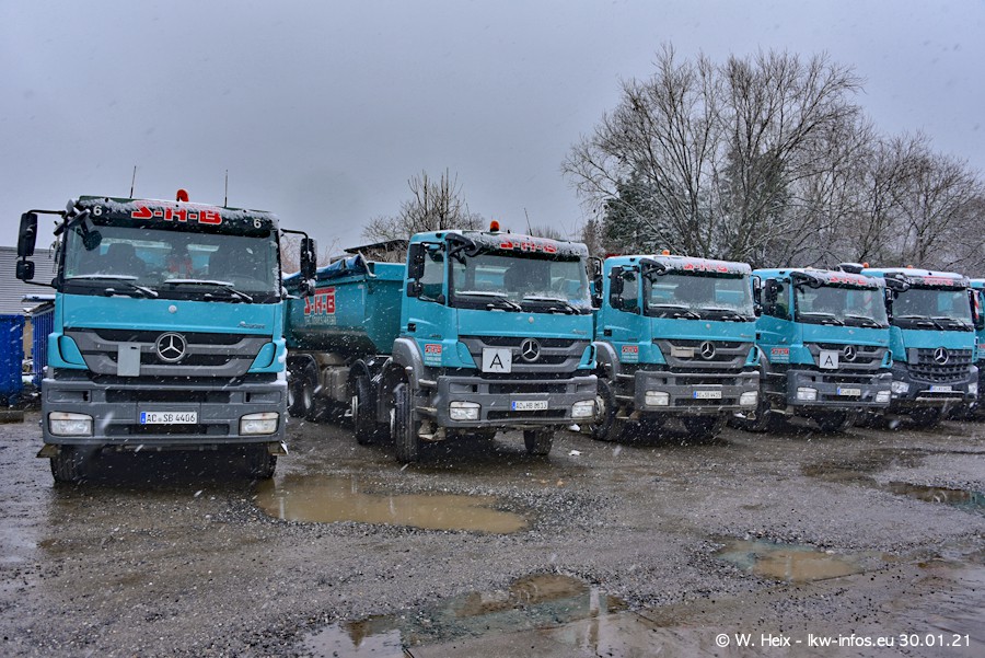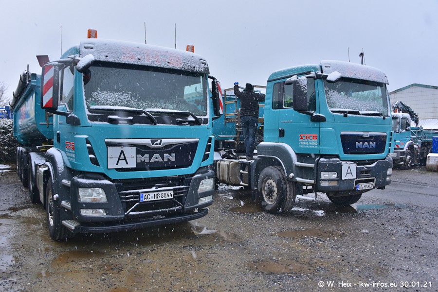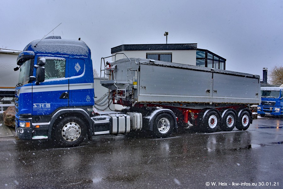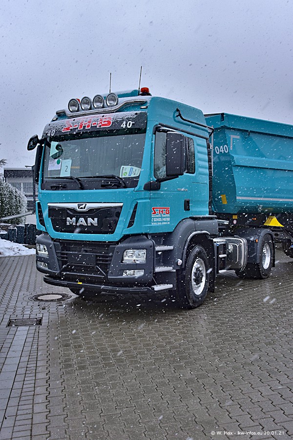 Auf dieser Fototour bin ich vom Winterwetter mit Schneefall überrascht worden. Aber trotzdem sind viele schöne Bilder entstanden, auch wenn es nass und dunkel war. Die ersten beiden von insgesamt sieben MAN TGS (alte Baureihe) standen auf dem Hof. In den nächsten Tagen kommen dann die "restlichen". Dazu gibt es auch sieben neue Kippauflieger. Alle neuen Fahrzeuge ersten alte. Wenn alle neuen LKW da sind, werde ich die Firma SHB bei besserem Wetter nochmal besuchen.