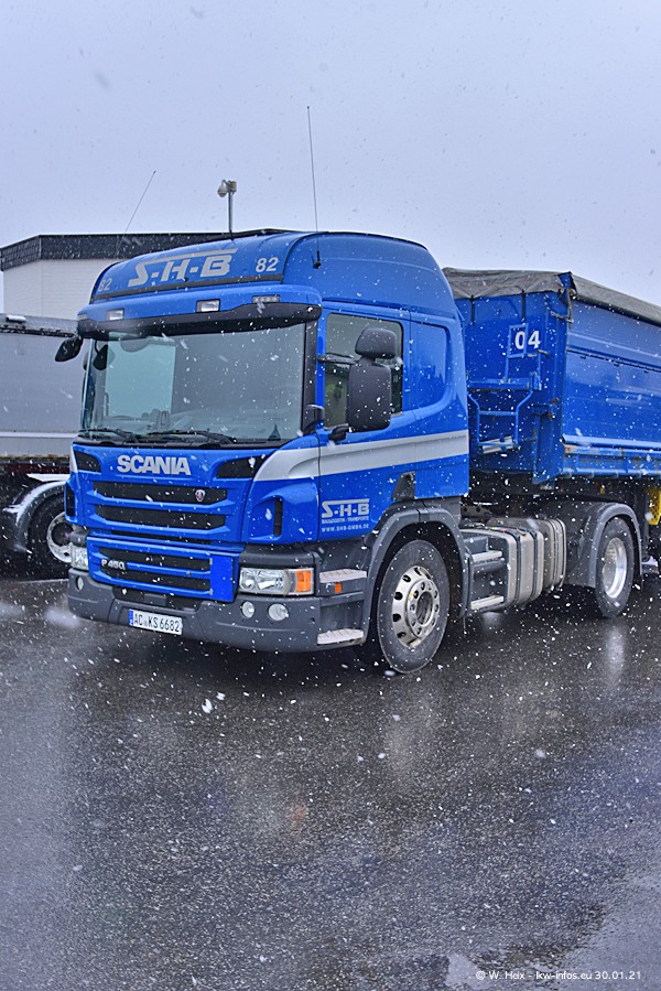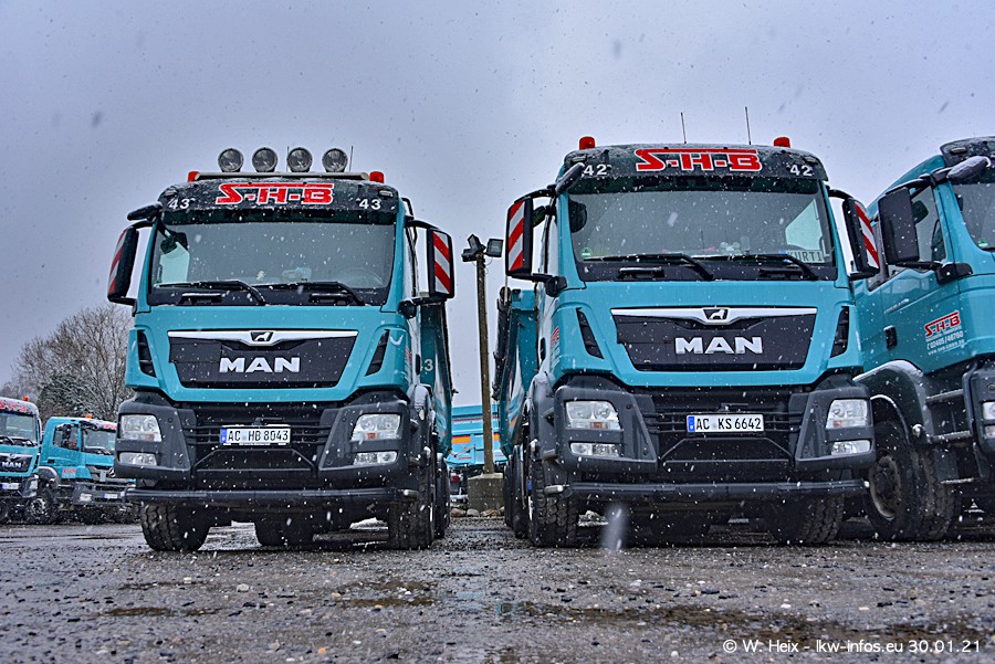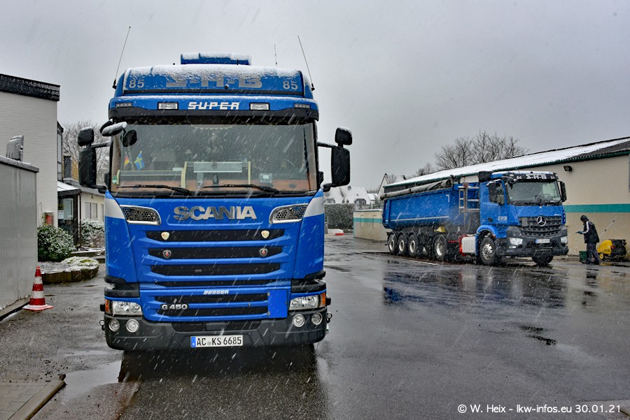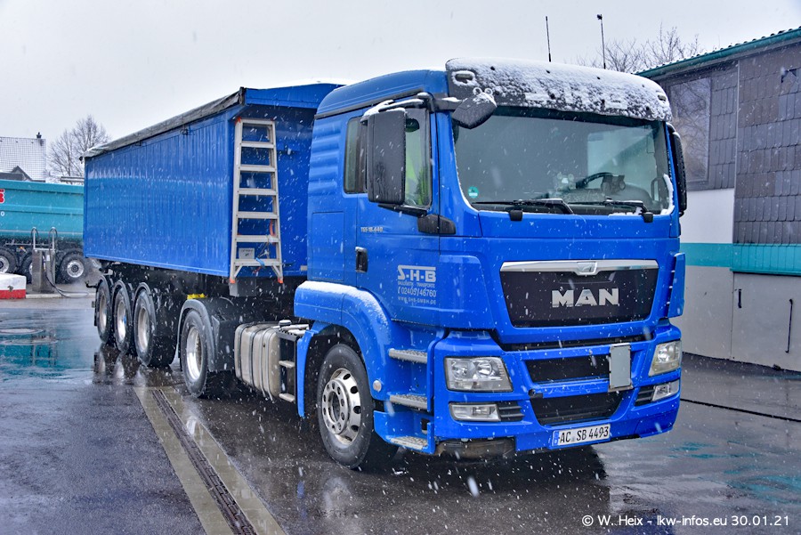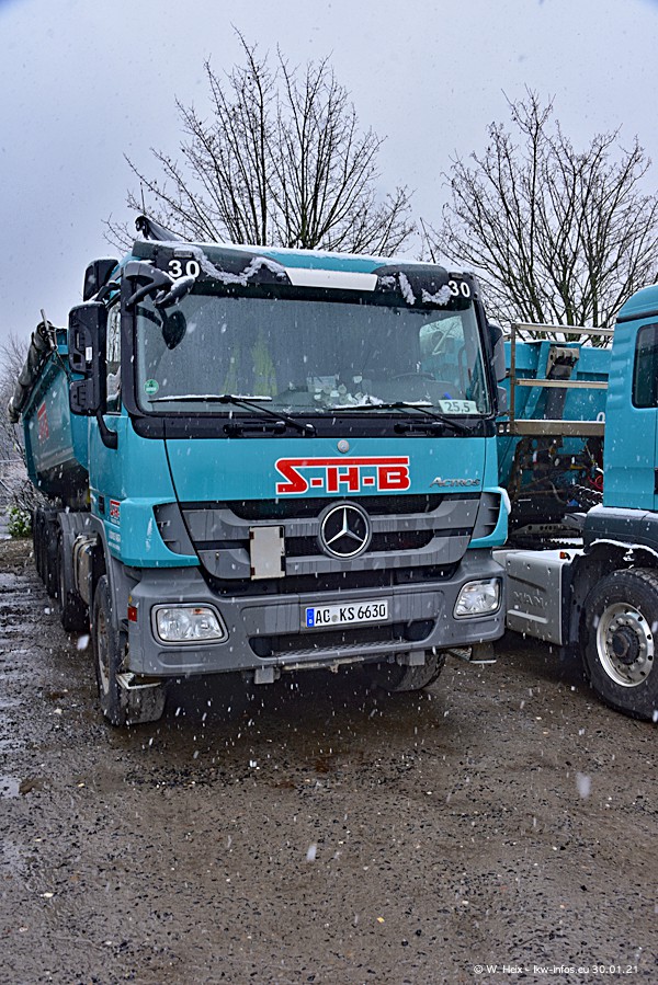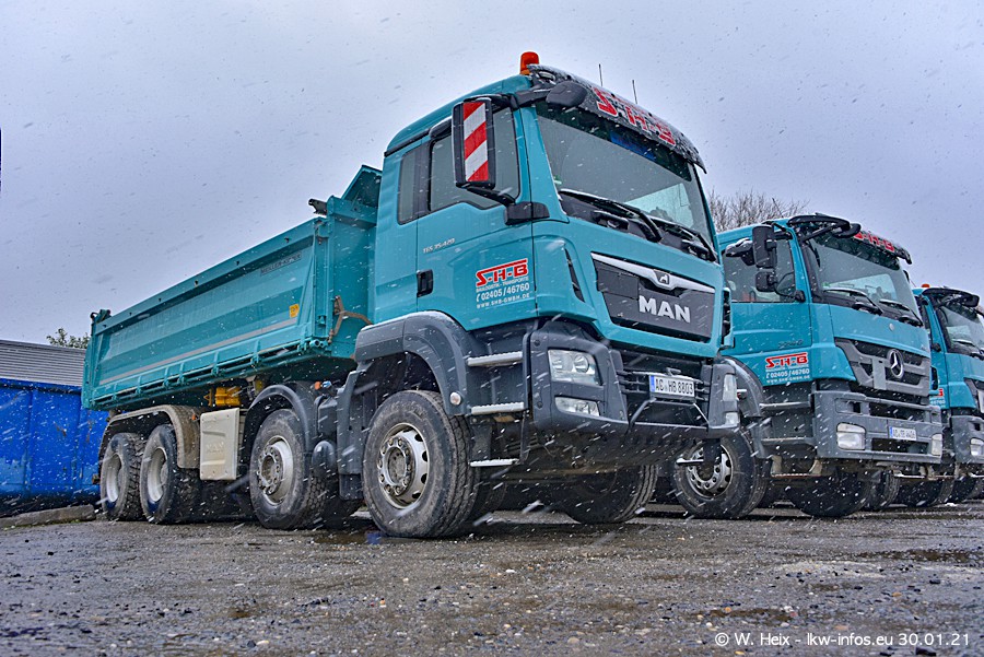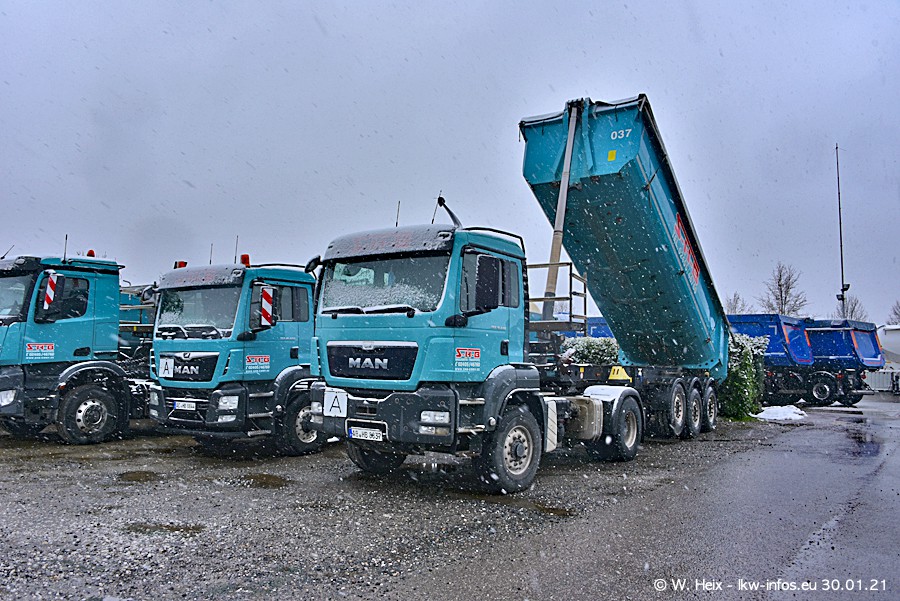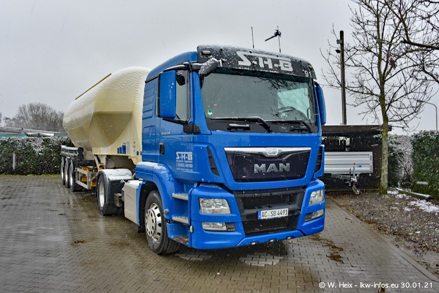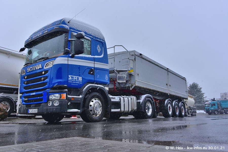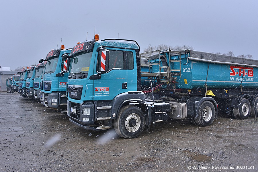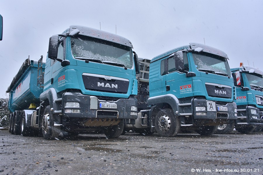 Auf dieser Fototour bin ich vom Winterwetter mit Schneefall überrascht worden. Aber trotzdem sind viele schöne Bilder entstanden, auch wenn es nass und dunkel war. Die ersten beiden von insgesamt sieben MAN TGS (alte Baureihe) standen auf dem Hof. In den nächsten Tagen kommen dann die "restlichen". Dazu gibt es auch sieben neue Kippauflieger. Alle neuen Fahrzeuge ersten alte. Wenn alle neuen LKW da sind, werde ich die Firma SHB bei besserem Wetter nochmal besuchen.