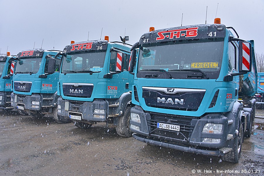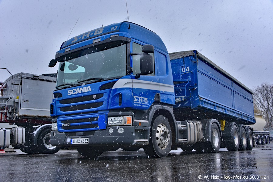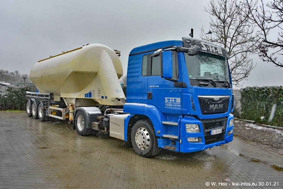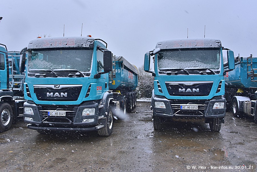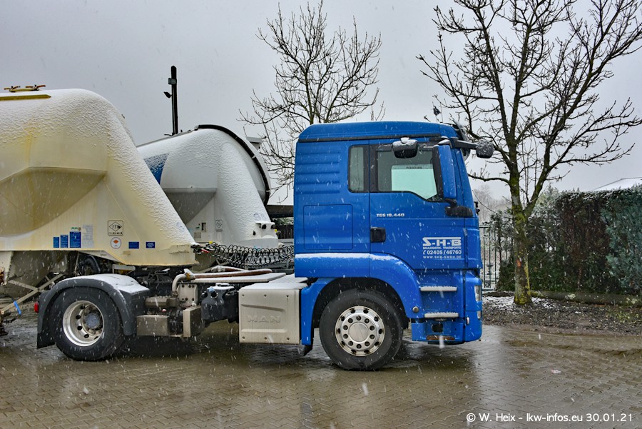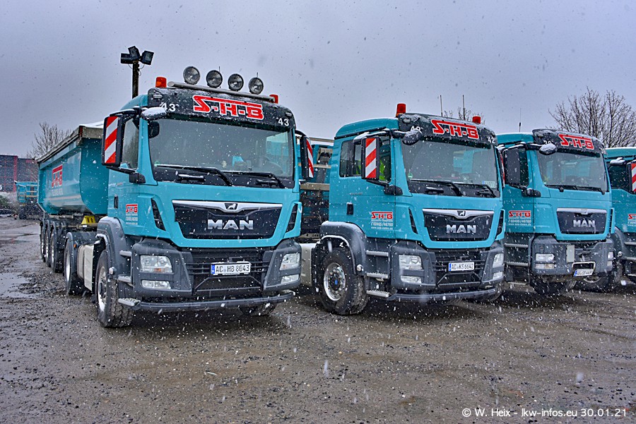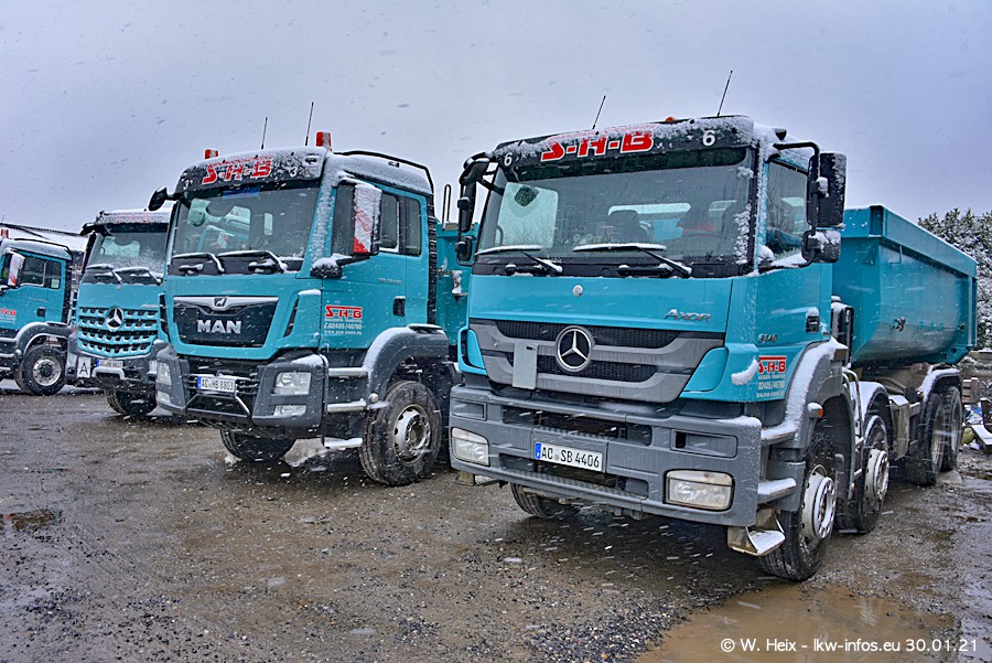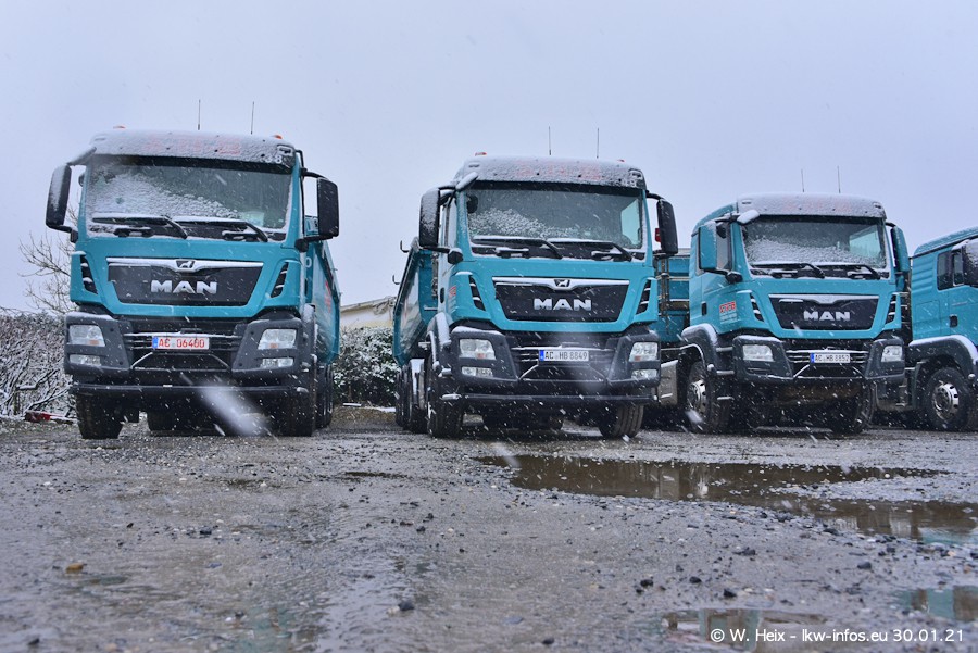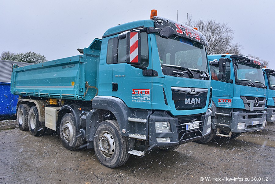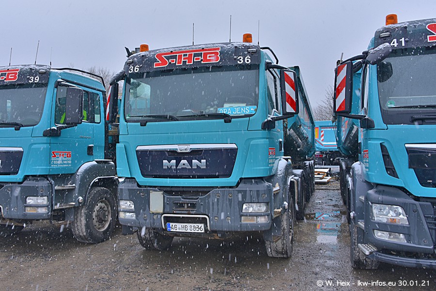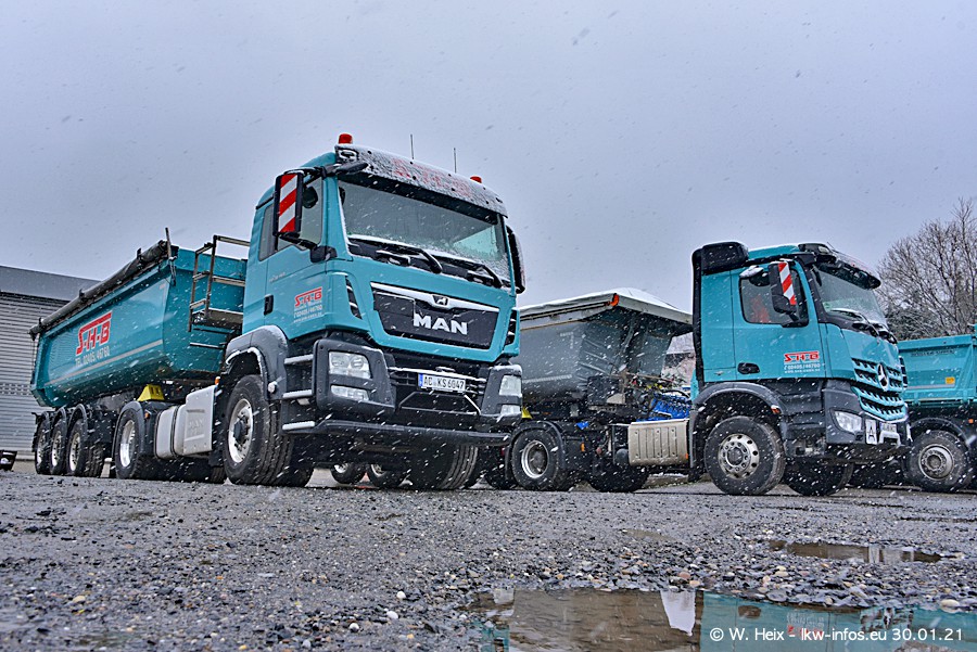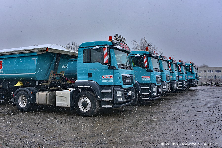 Auf dieser Fototour bin ich vom Winterwetter mit Schneefall überrascht worden. Aber trotzdem sind viele schöne Bilder entstanden, auch wenn es nass und dunkel war. Die ersten beiden von insgesamt sieben MAN TGS (alte Baureihe) standen auf dem Hof. In den nächsten Tagen kommen dann die "restlichen". Dazu gibt es auch sieben neue Kippauflieger. Alle neuen Fahrzeuge ersten alte. Wenn alle neuen LKW da sind, werde ich die Firma SHB bei besserem Wetter nochmal besuchen.