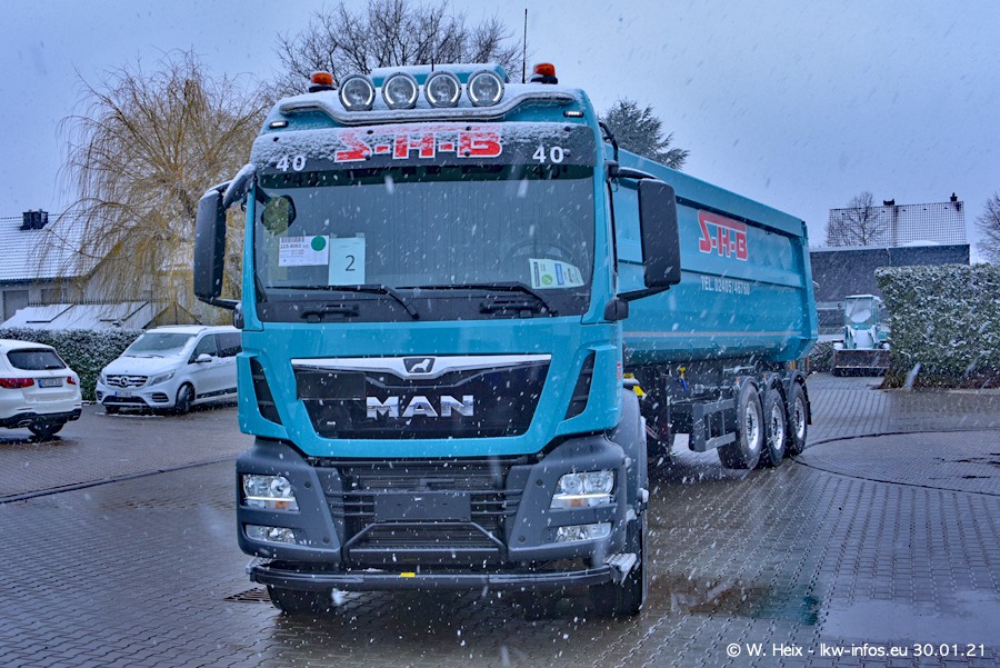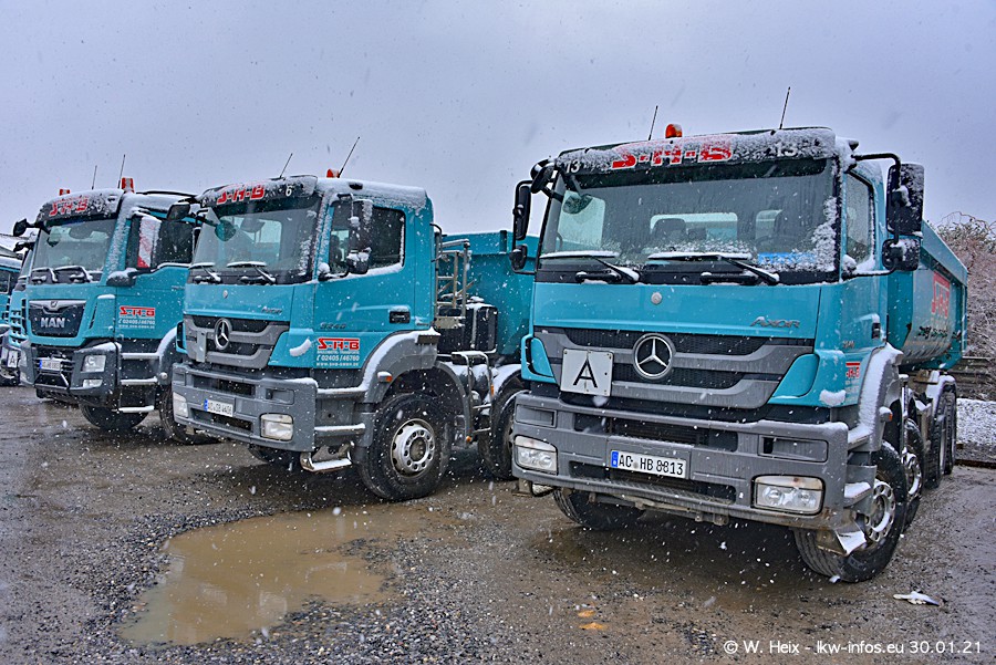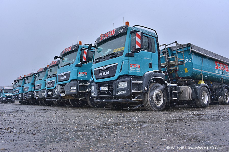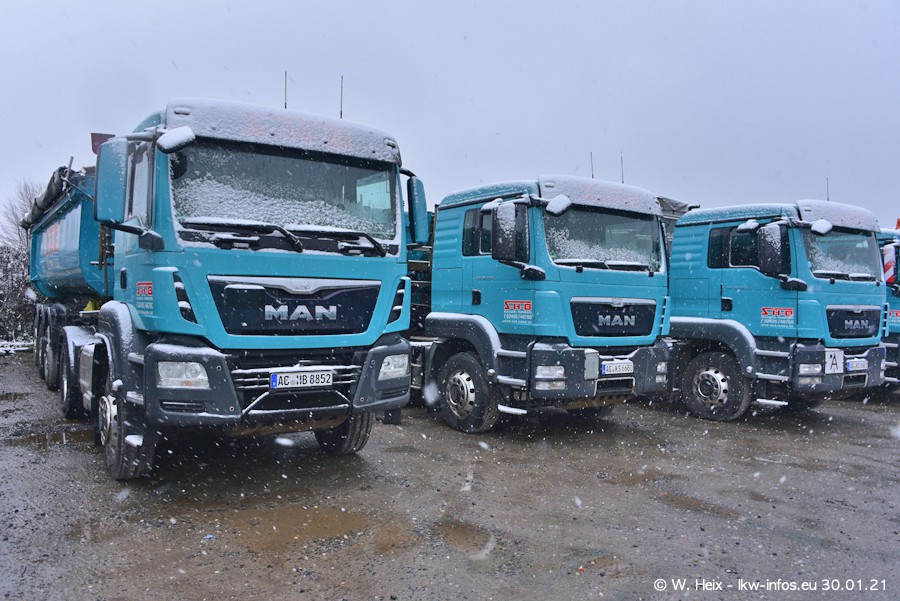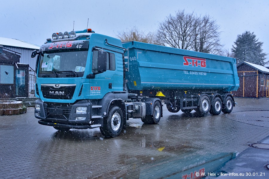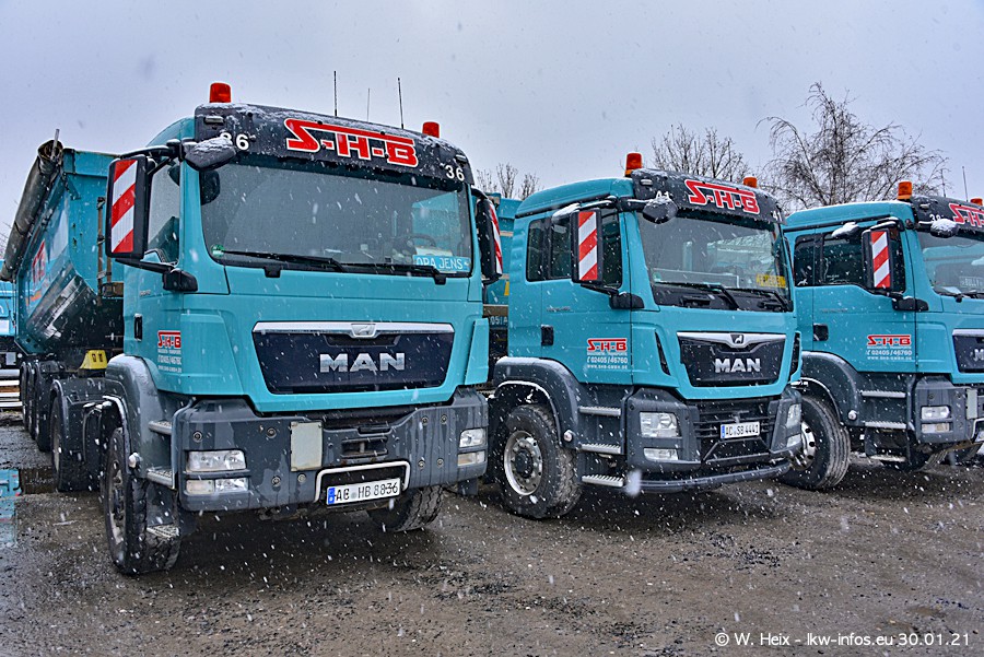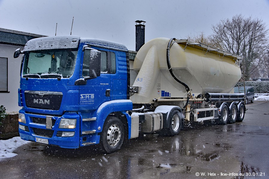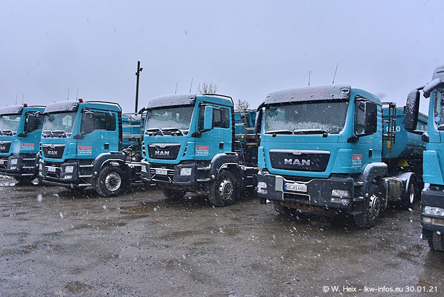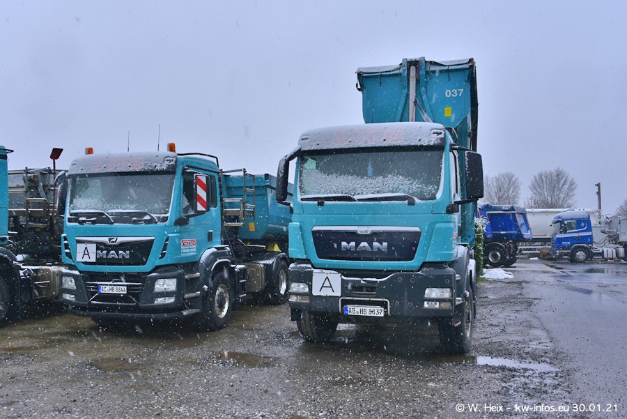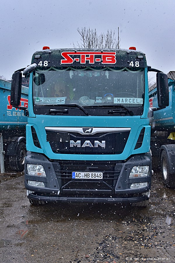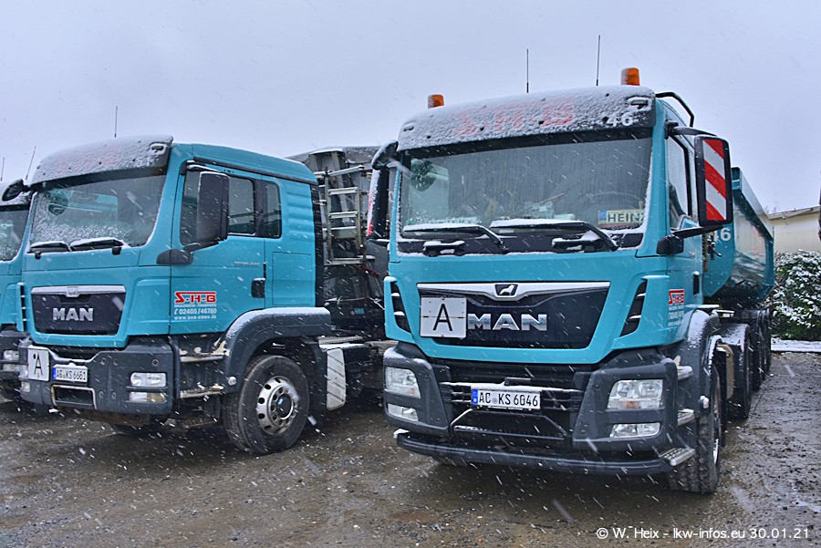 Auf dieser Fototour bin ich vom Winterwetter mit Schneefall überrascht worden. Aber trotzdem sind viele schöne Bilder entstanden, auch wenn es nass und dunkel war. Die ersten beiden von insgesamt sieben MAN TGS (alte Baureihe) standen auf dem Hof. In den nächsten Tagen kommen dann die "restlichen". Dazu gibt es auch sieben neue Kippauflieger. Alle neuen Fahrzeuge ersten alte. Wenn alle neuen LKW da sind, werde ich die Firma SHB bei besserem Wetter nochmal besuchen.