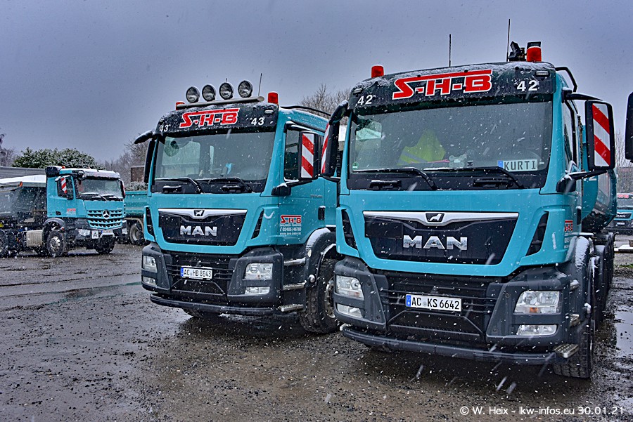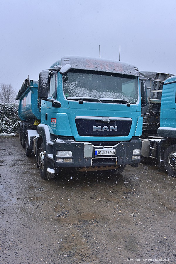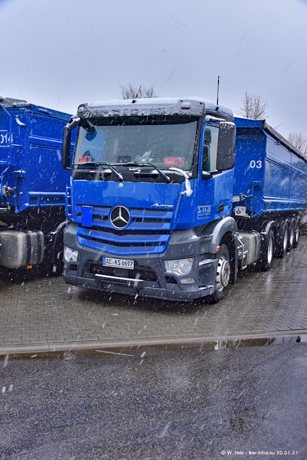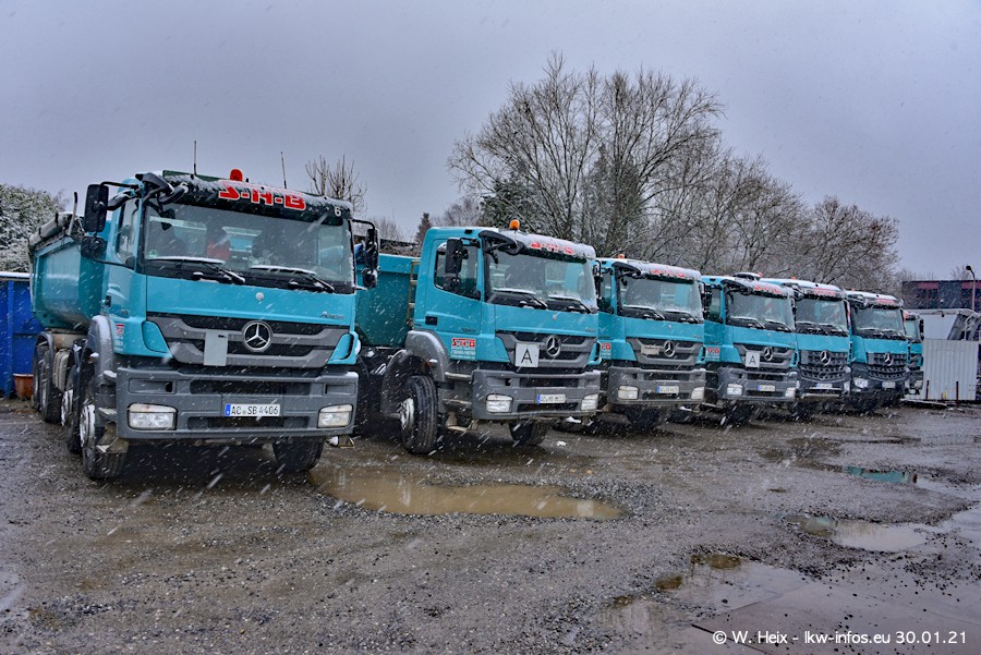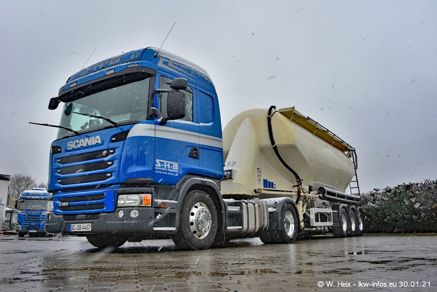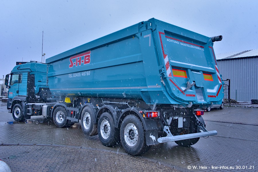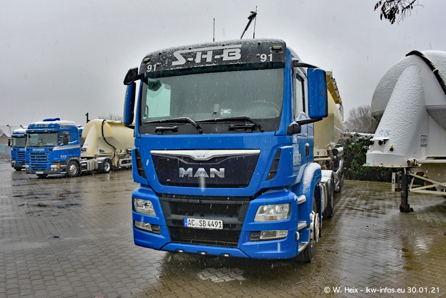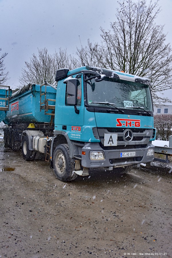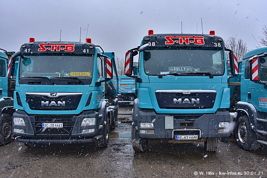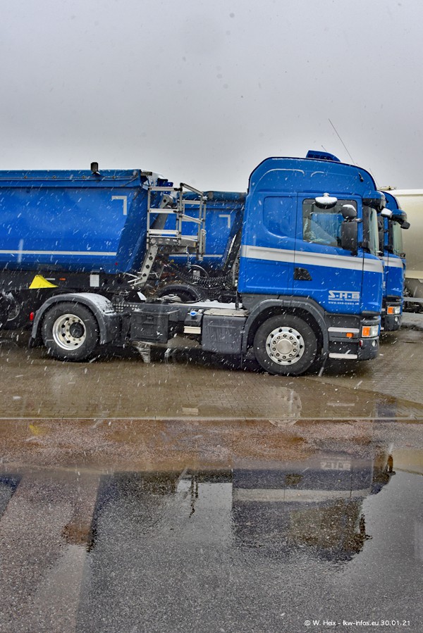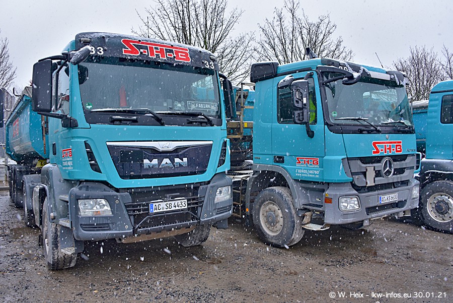 Auf dieser Fototour bin ich vom Winterwetter mit Schneefall überrascht worden. Aber trotzdem sind viele schöne Bilder entstanden, auch wenn es nass und dunkel war. Die ersten beiden von insgesamt sieben MAN TGS (alte Baureihe) standen auf dem Hof. In den nächsten Tagen kommen dann die "restlichen". Dazu gibt es auch sieben neue Kippauflieger. Alle neuen Fahrzeuge ersten alte. Wenn alle neuen LKW da sind, werde ich die Firma SHB bei besserem Wetter nochmal besuchen.