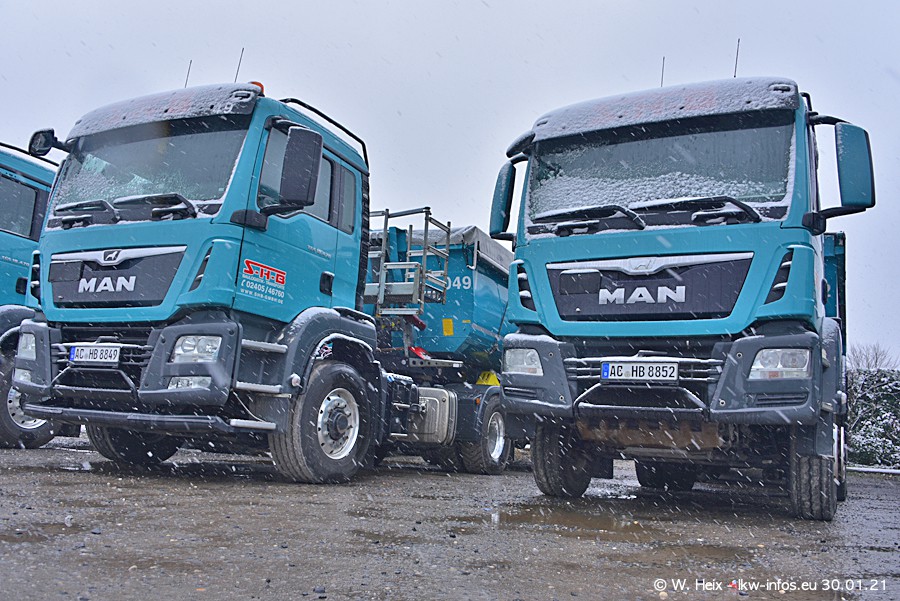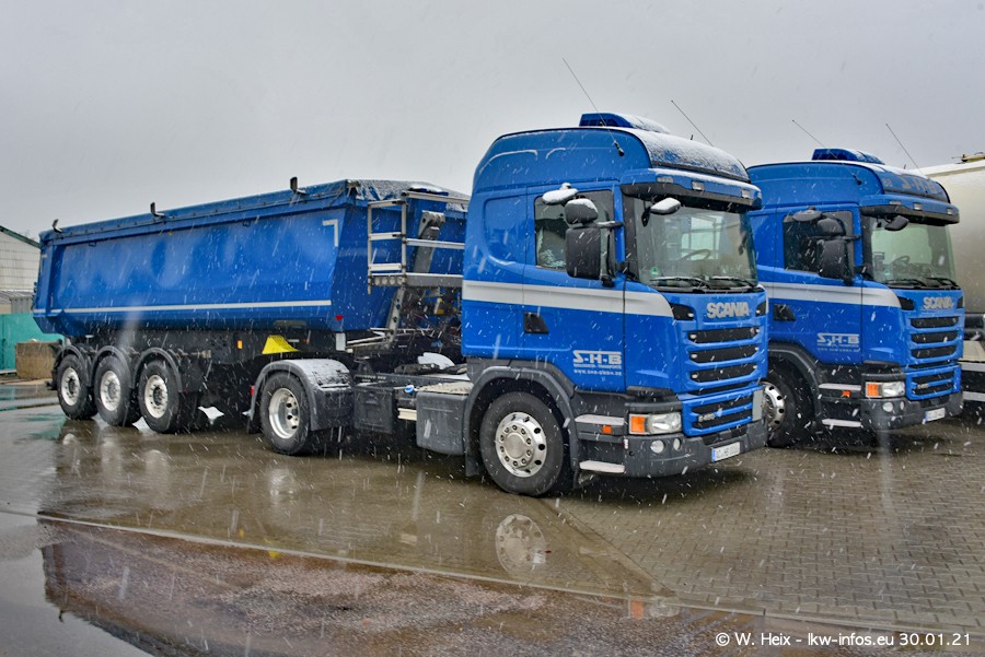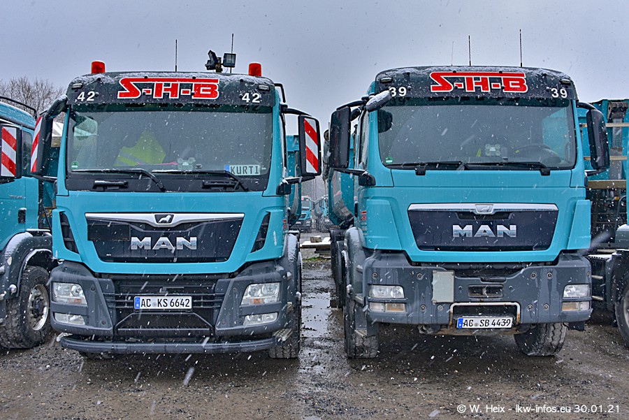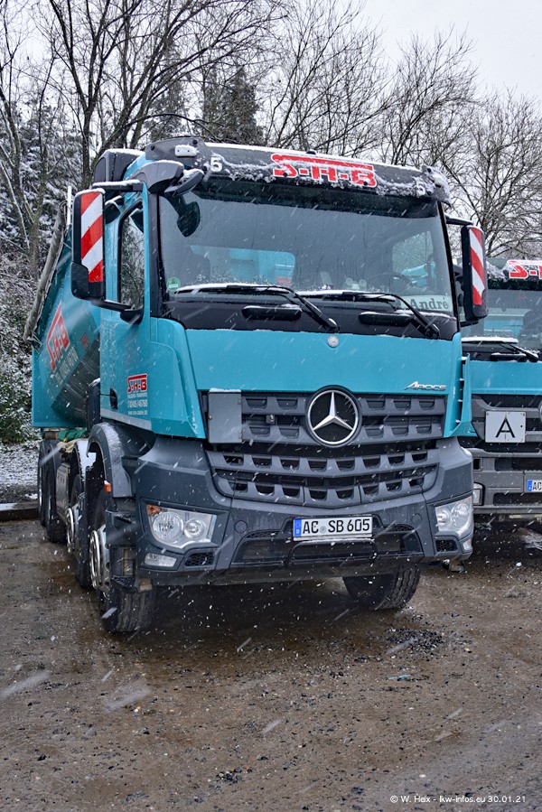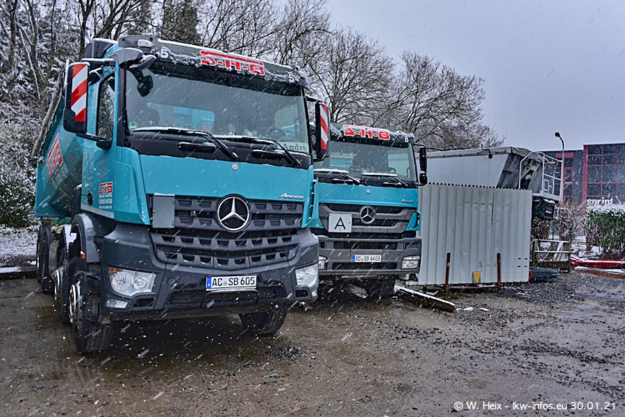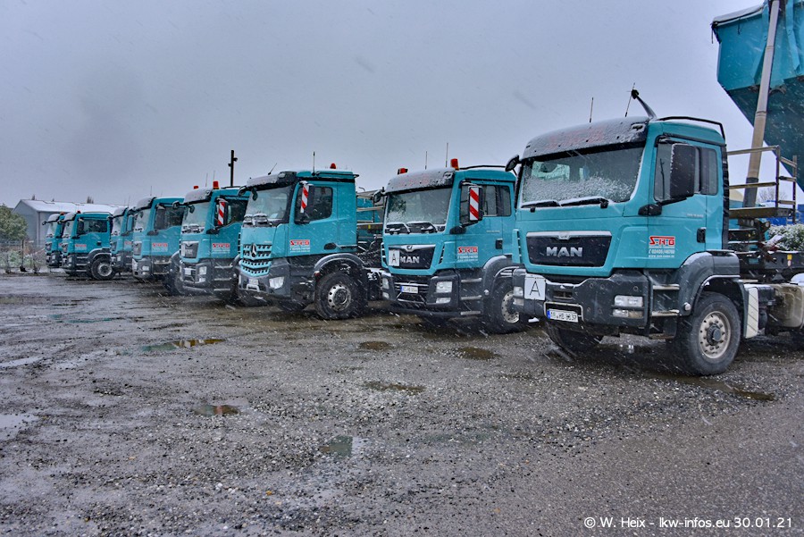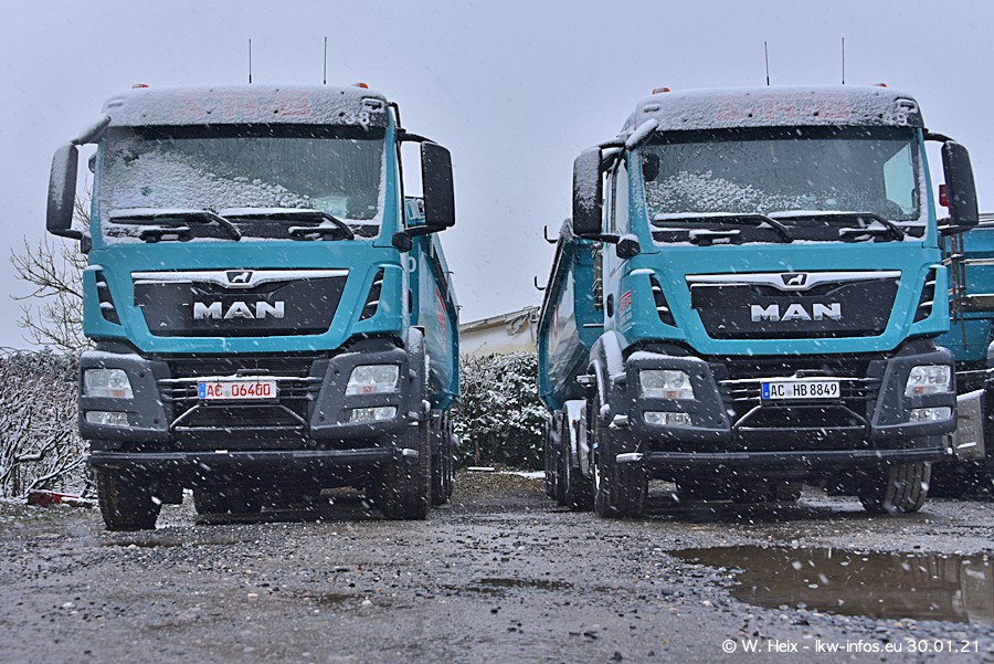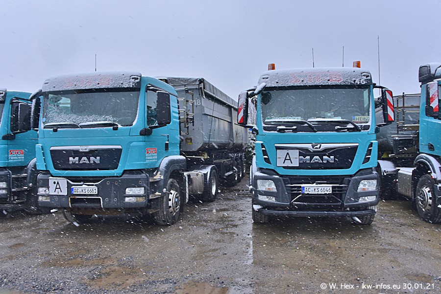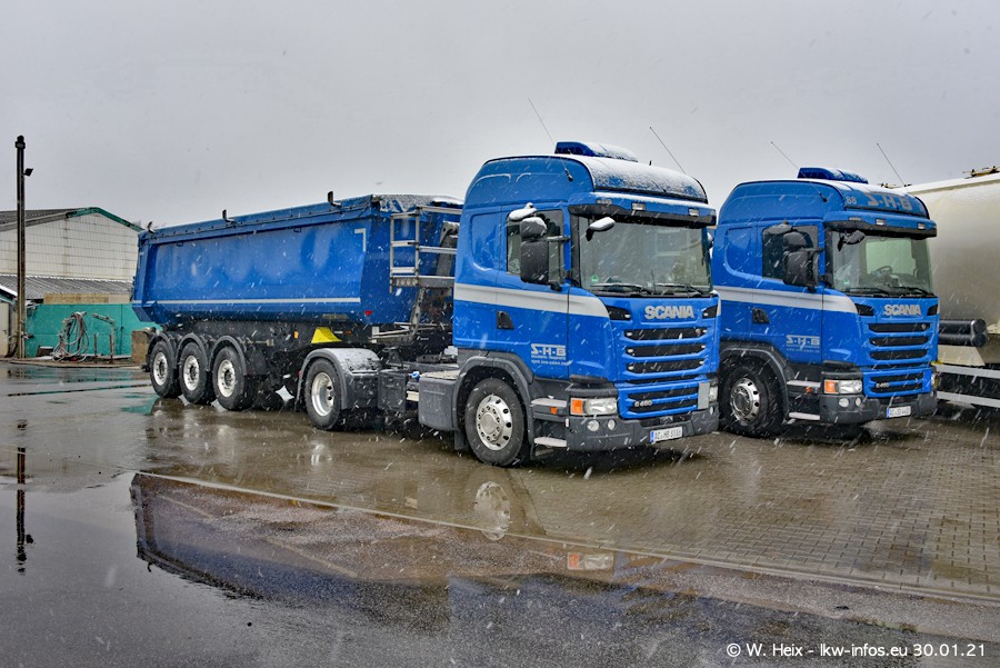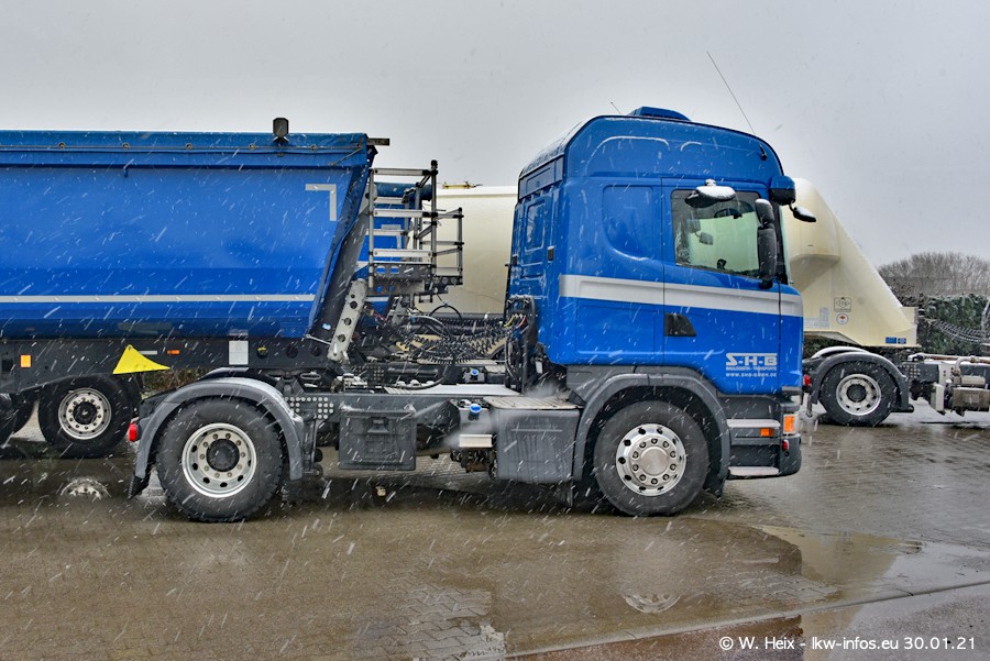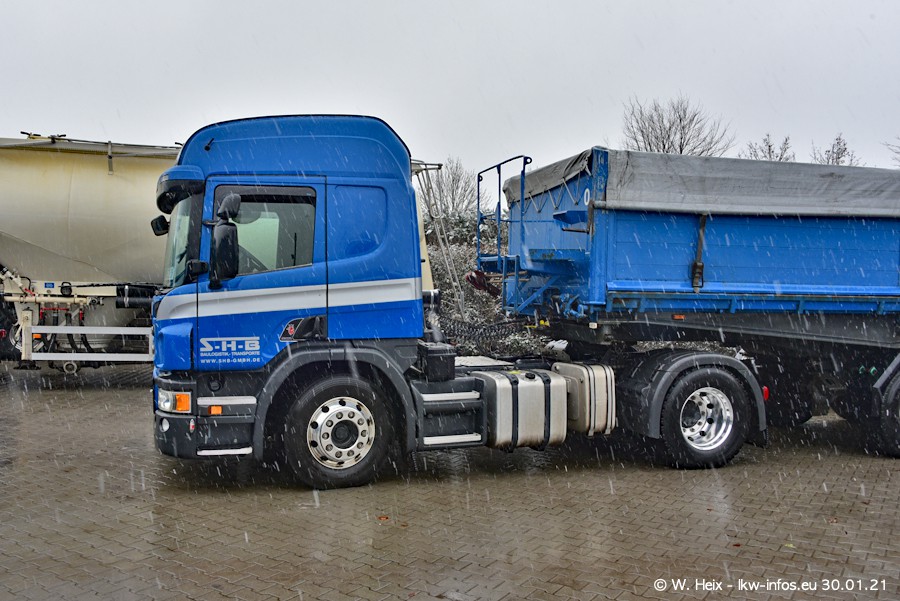 Auf dieser Fototour bin ich vom Winterwetter mit Schneefall überrascht worden. Aber trotzdem sind viele schöne Bilder entstanden, auch wenn es nass und dunkel war. Die ersten beiden von insgesamt sieben MAN TGS (alte Baureihe) standen auf dem Hof. In den nächsten Tagen kommen dann die "restlichen". Dazu gibt es auch sieben neue Kippauflieger. Alle neuen Fahrzeuge ersten alte. Wenn alle neuen LKW da sind, werde ich die Firma SHB bei besserem Wetter nochmal besuchen.