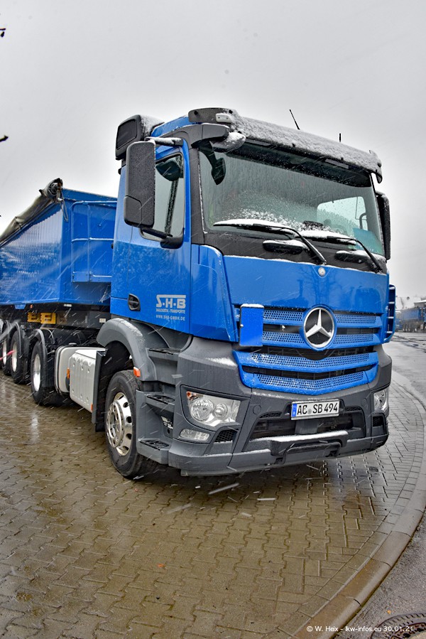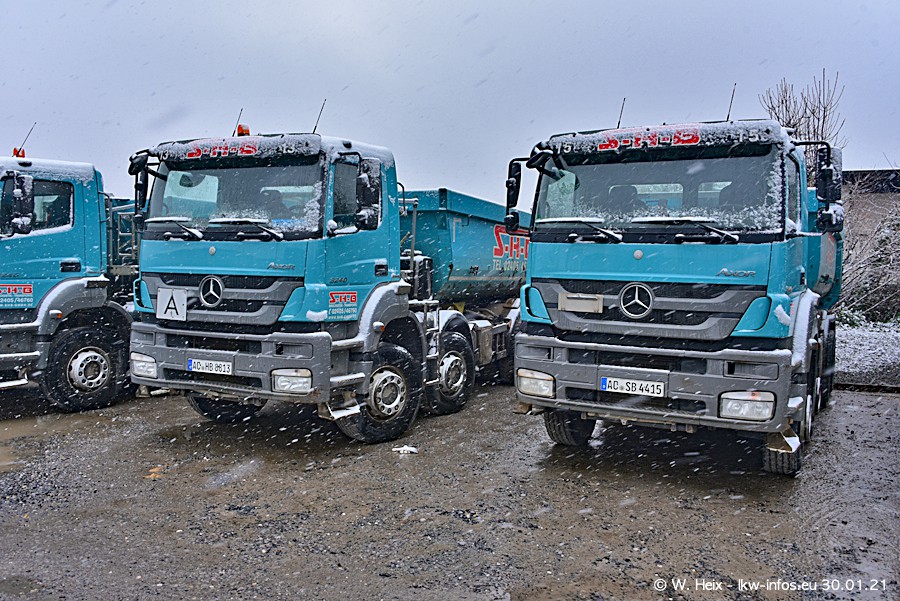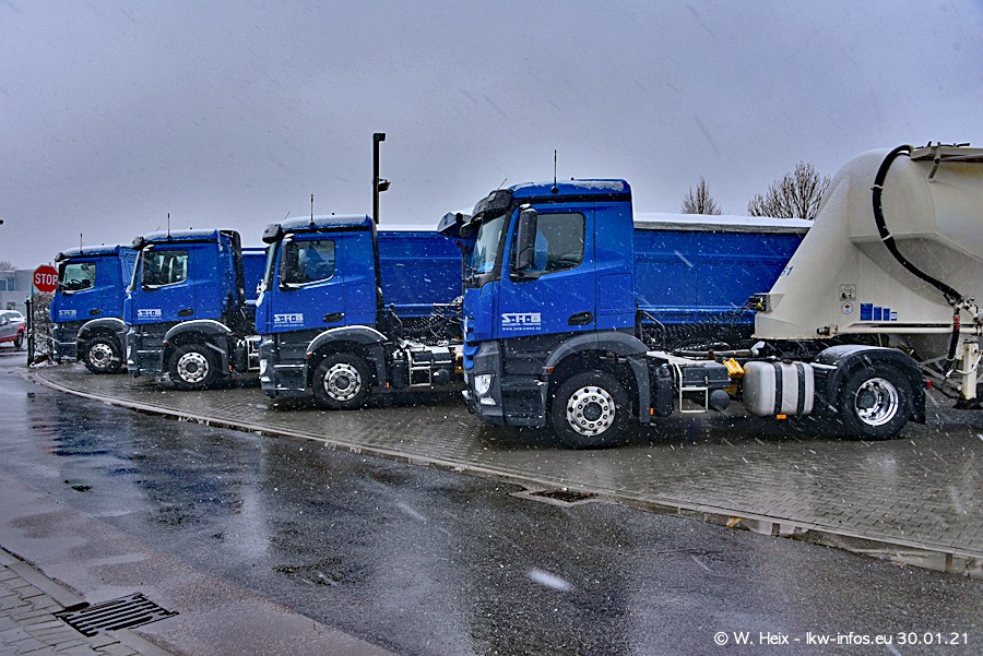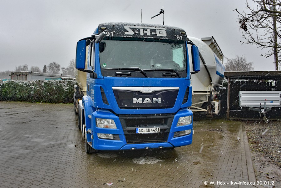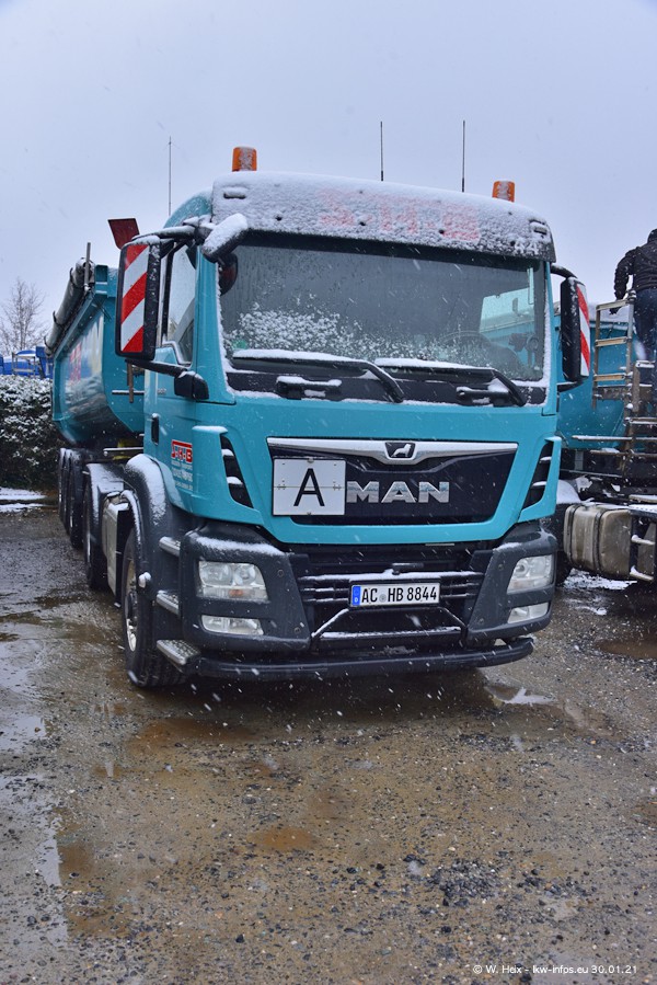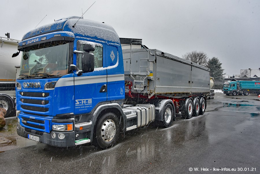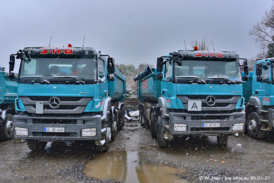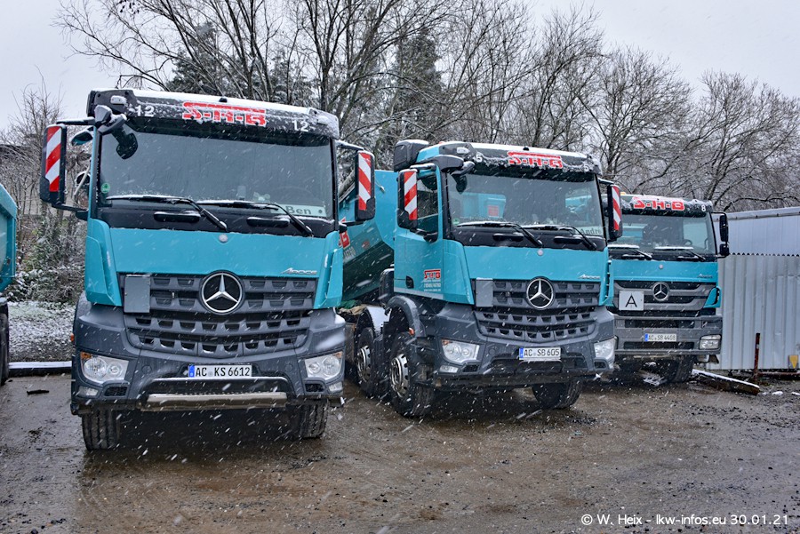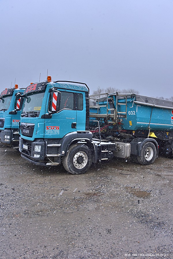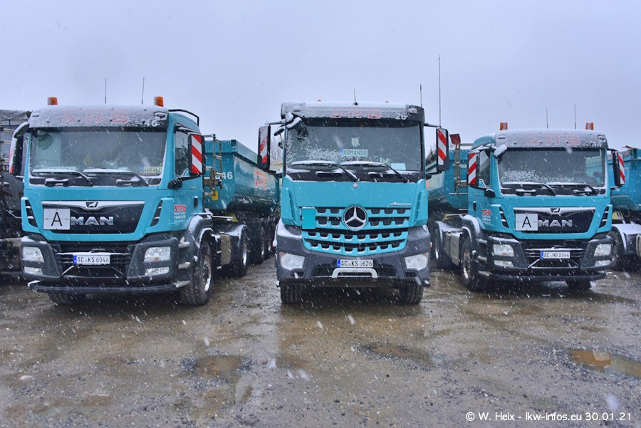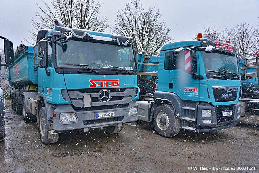 Auf dieser Fototour bin ich vom Winterwetter mit Schneefall überrascht worden. Aber trotzdem sind viele schöne Bilder entstanden, auch wenn es nass und dunkel war. Die ersten beiden von insgesamt sieben MAN TGS (alte Baureihe) standen auf dem Hof. In den nächsten Tagen kommen dann die "restlichen". Dazu gibt es auch sieben neue Kippauflieger. Alle neuen Fahrzeuge ersten alte. Wenn alle neuen LKW da sind, werde ich die Firma SHB bei besserem Wetter nochmal besuchen.