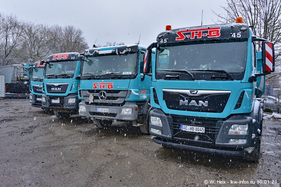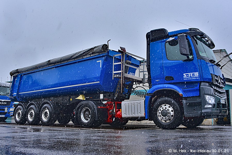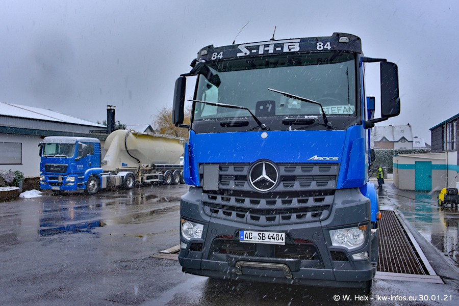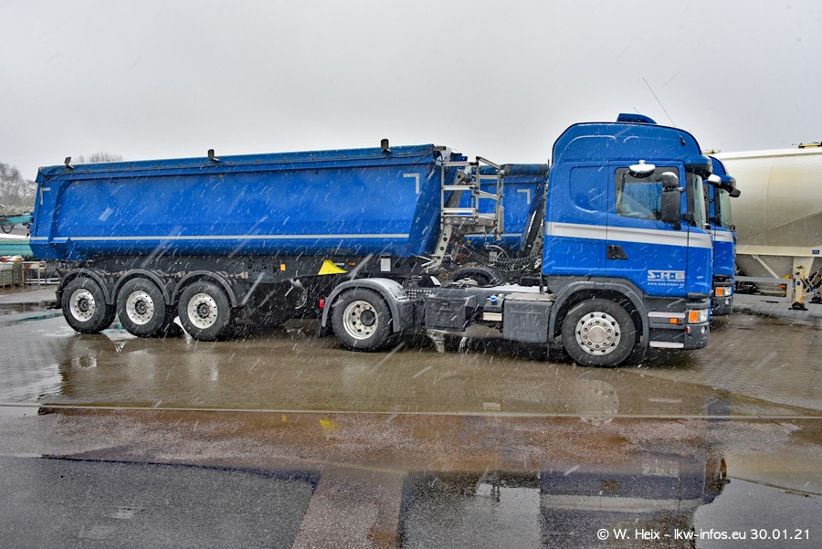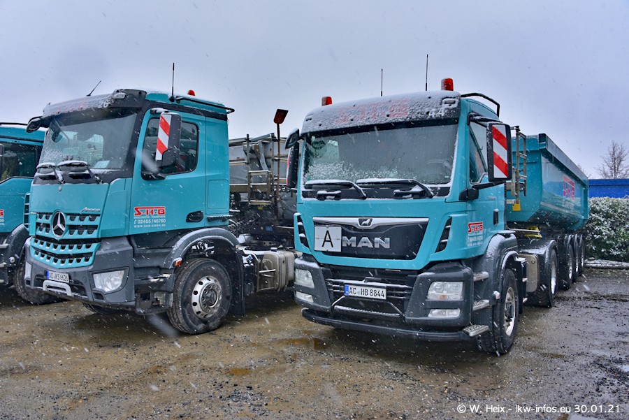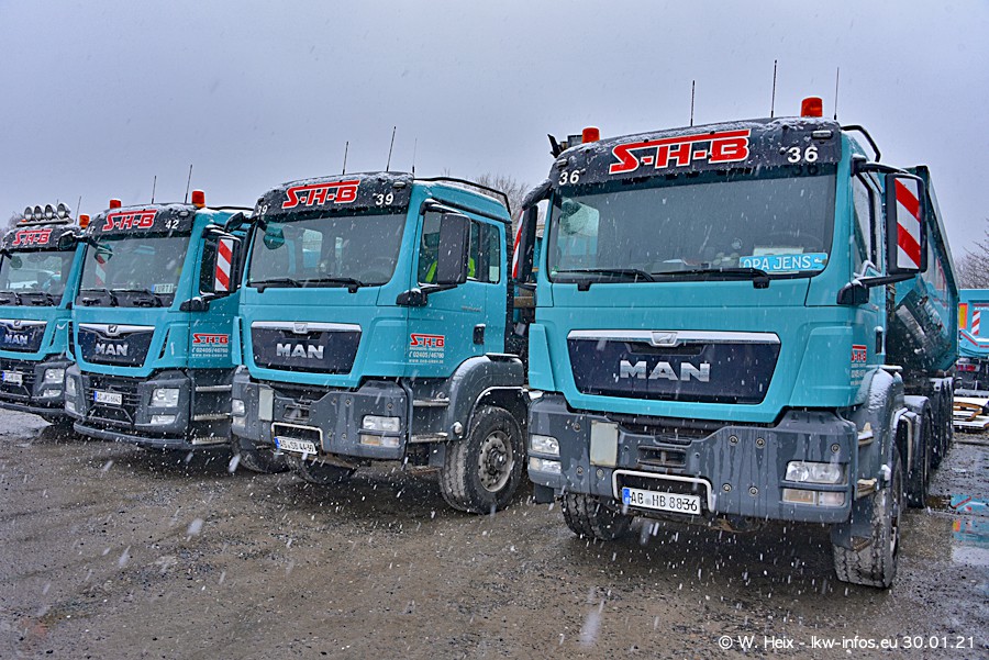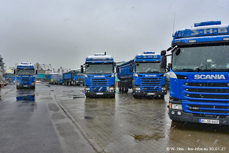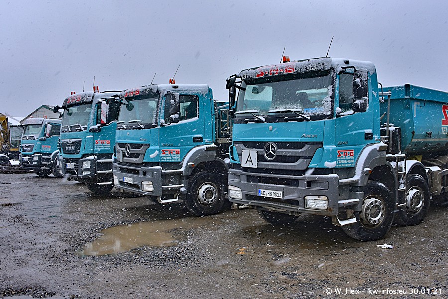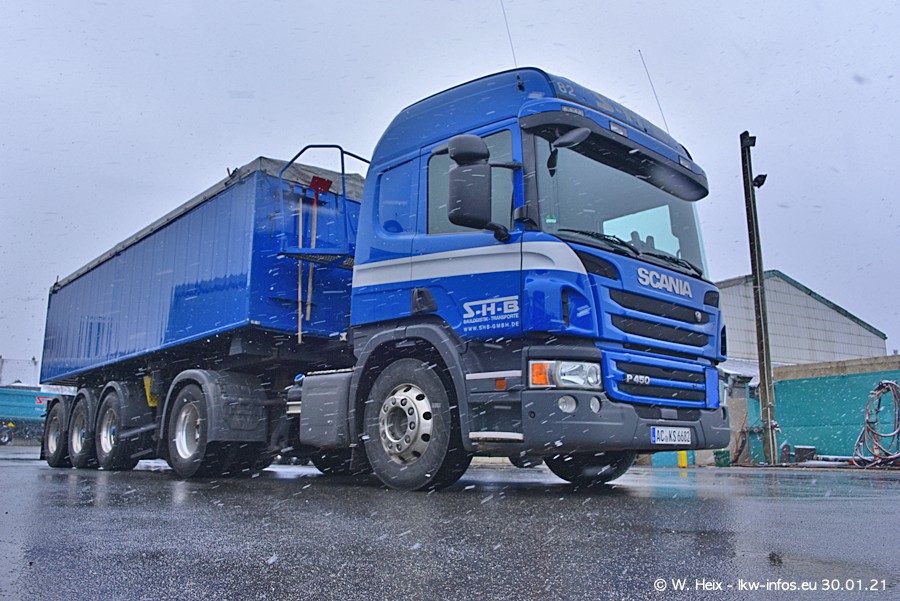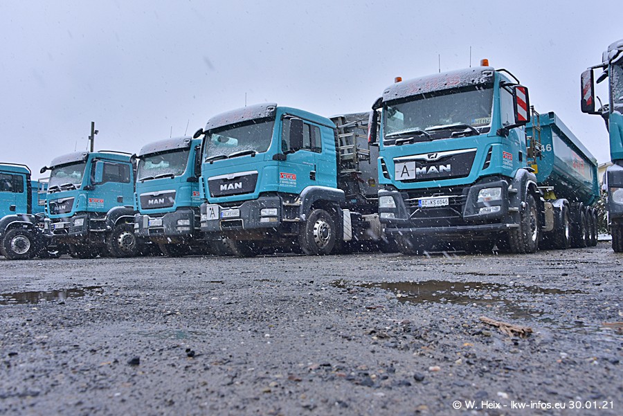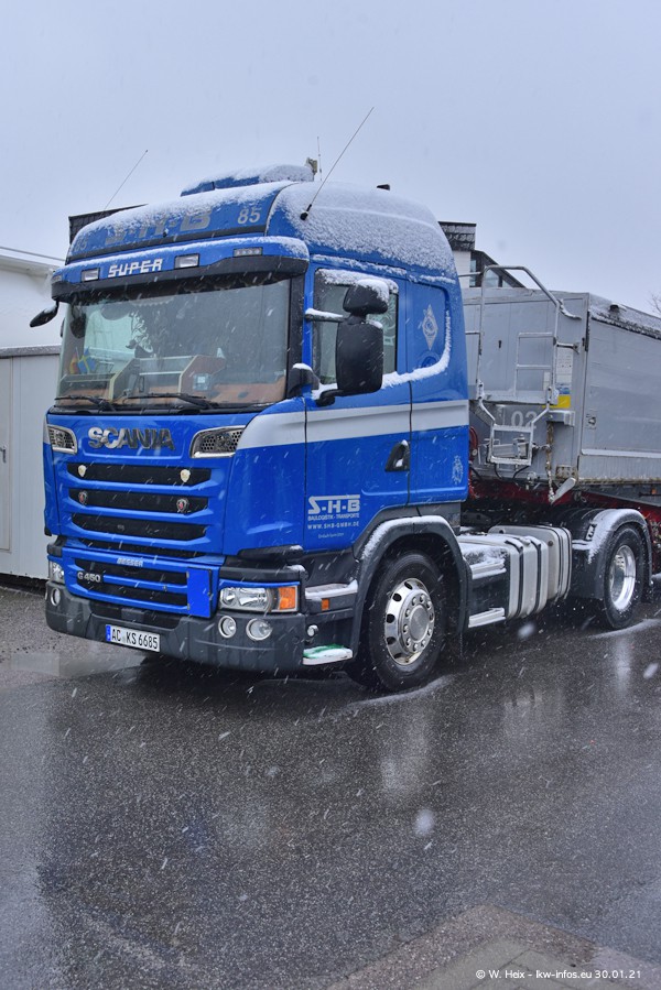 Auf dieser Fototour bin ich vom Winterwetter mit Schneefall überrascht worden. Aber trotzdem sind viele schöne Bilder entstanden, auch wenn es nass und dunkel war. Die ersten beiden von insgesamt sieben MAN TGS (alte Baureihe) standen auf dem Hof. In den nächsten Tagen kommen dann die "restlichen". Dazu gibt es auch sieben neue Kippauflieger. Alle neuen Fahrzeuge ersten alte. Wenn alle neuen LKW da sind, werde ich die Firma SHB bei besserem Wetter nochmal besuchen.