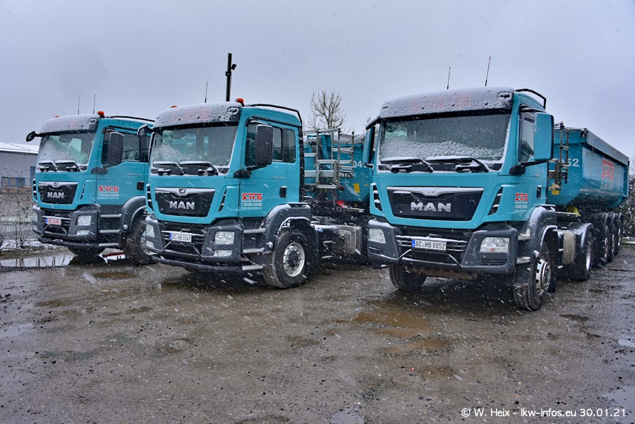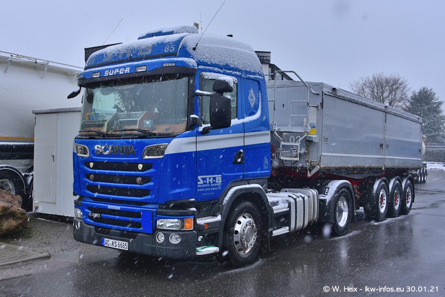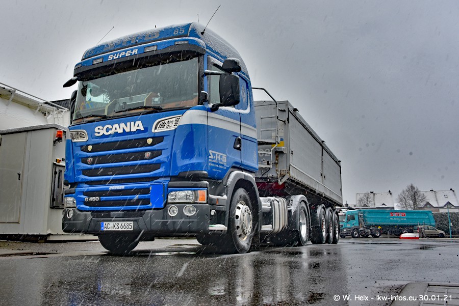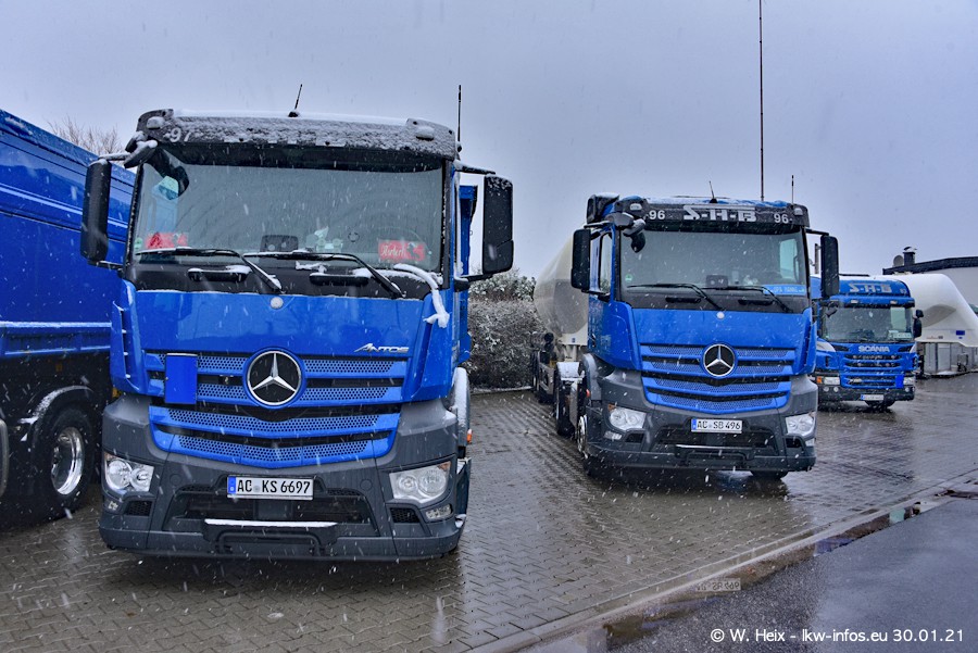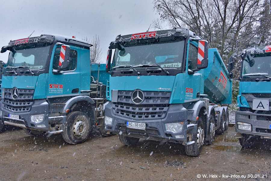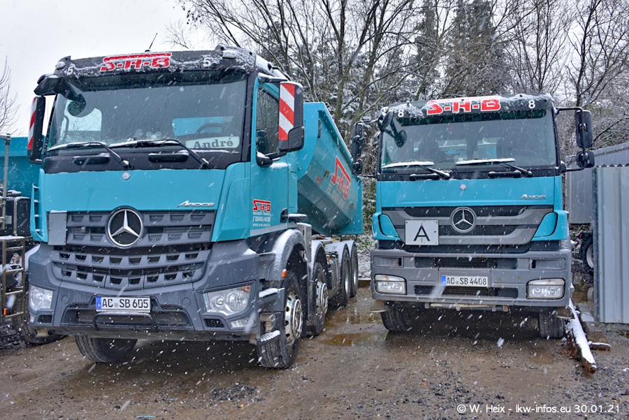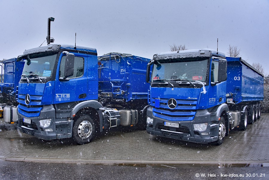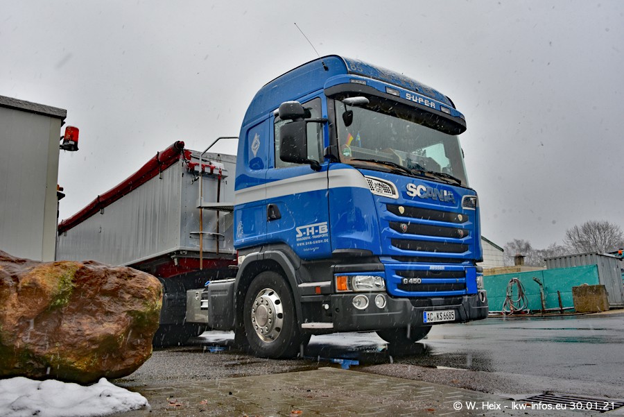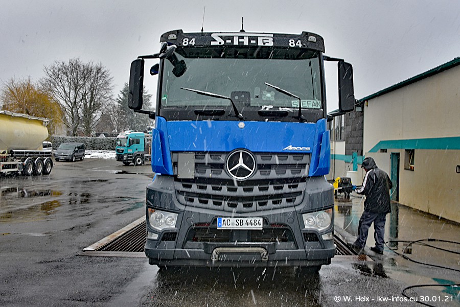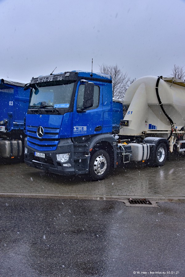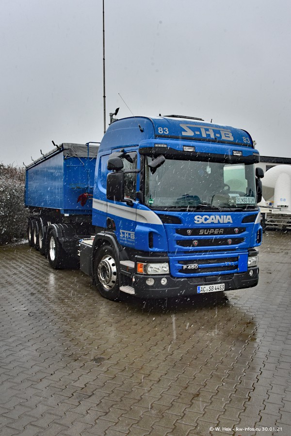 Auf dieser Fototour bin ich vom Winterwetter mit Schneefall überrascht worden. Aber trotzdem sind viele schöne Bilder entstanden, auch wenn es nass und dunkel war. Die ersten beiden von insgesamt sieben MAN TGS (alte Baureihe) standen auf dem Hof. In den nächsten Tagen kommen dann die "restlichen". Dazu gibt es auch sieben neue Kippauflieger. Alle neuen Fahrzeuge ersten alte. Wenn alle neuen LKW da sind, werde ich die Firma SHB bei besserem Wetter nochmal besuchen.