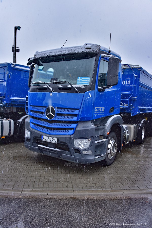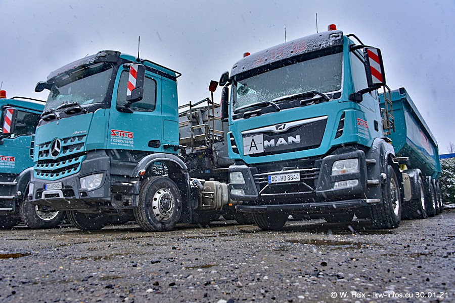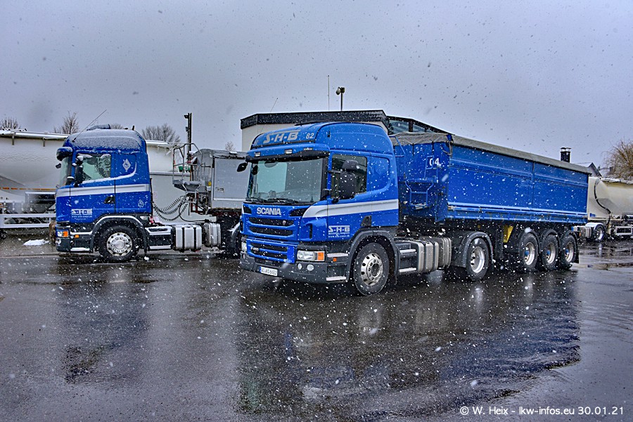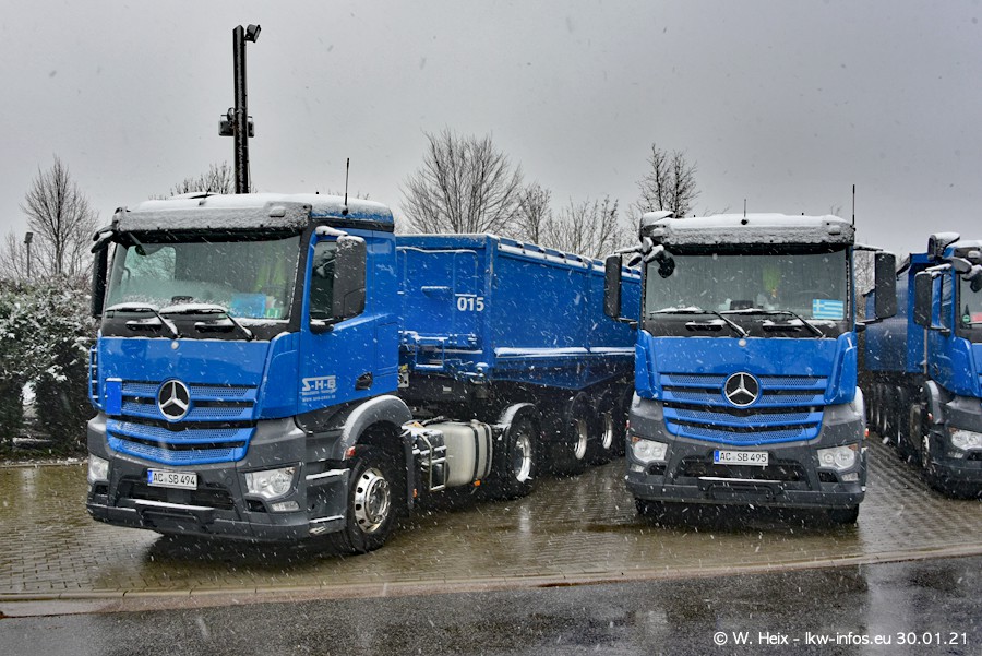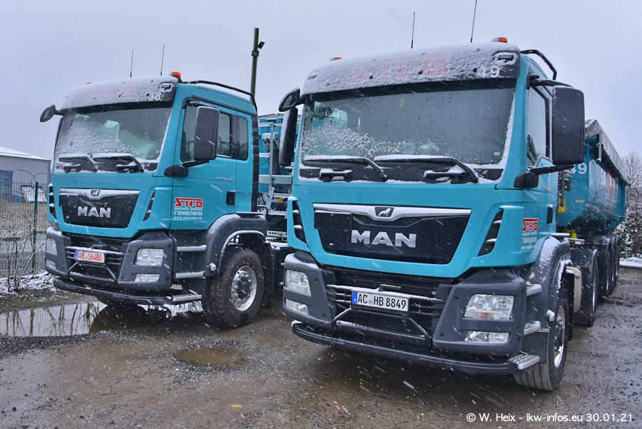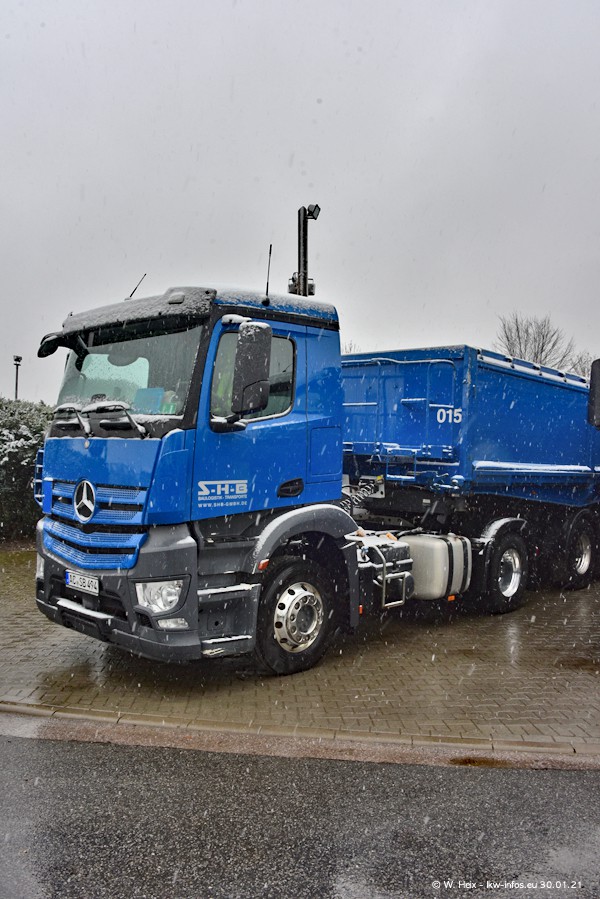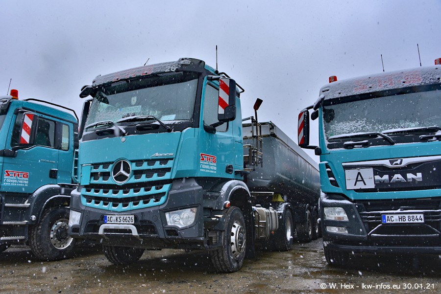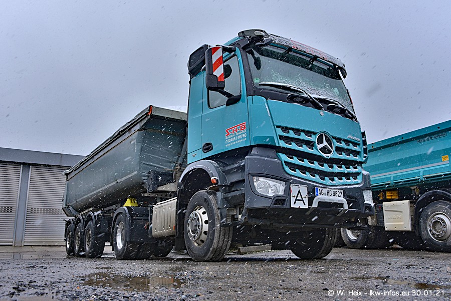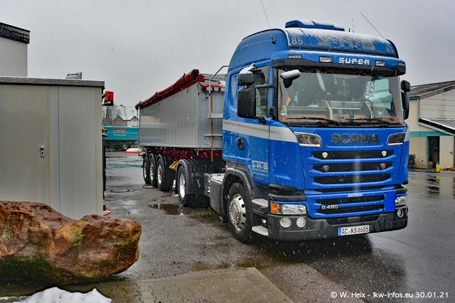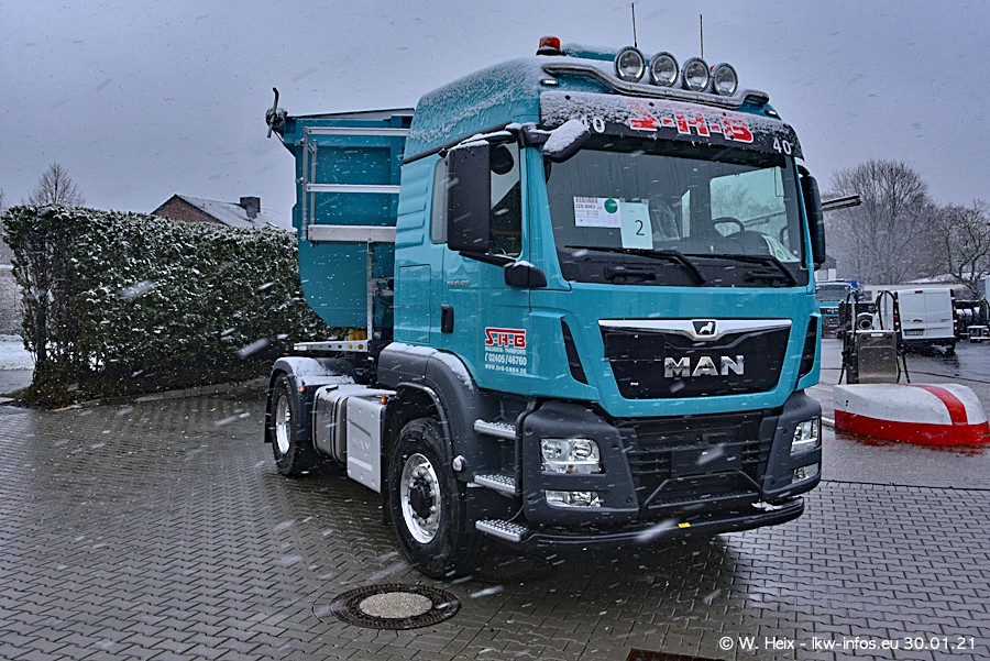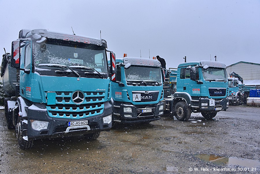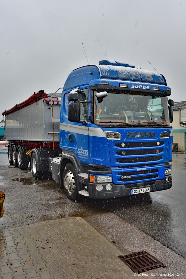 Auf dieser Fototour bin ich vom Winterwetter mit Schneefall überrascht worden. Aber trotzdem sind viele schöne Bilder entstanden, auch wenn es nass und dunkel war. Die ersten beiden von insgesamt sieben MAN TGS (alte Baureihe) standen auf dem Hof. In den nächsten Tagen kommen dann die "restlichen". Dazu gibt es auch sieben neue Kippauflieger. Alle neuen Fahrzeuge ersten alte. Wenn alle neuen LKW da sind, werde ich die Firma SHB bei besserem Wetter nochmal besuchen.