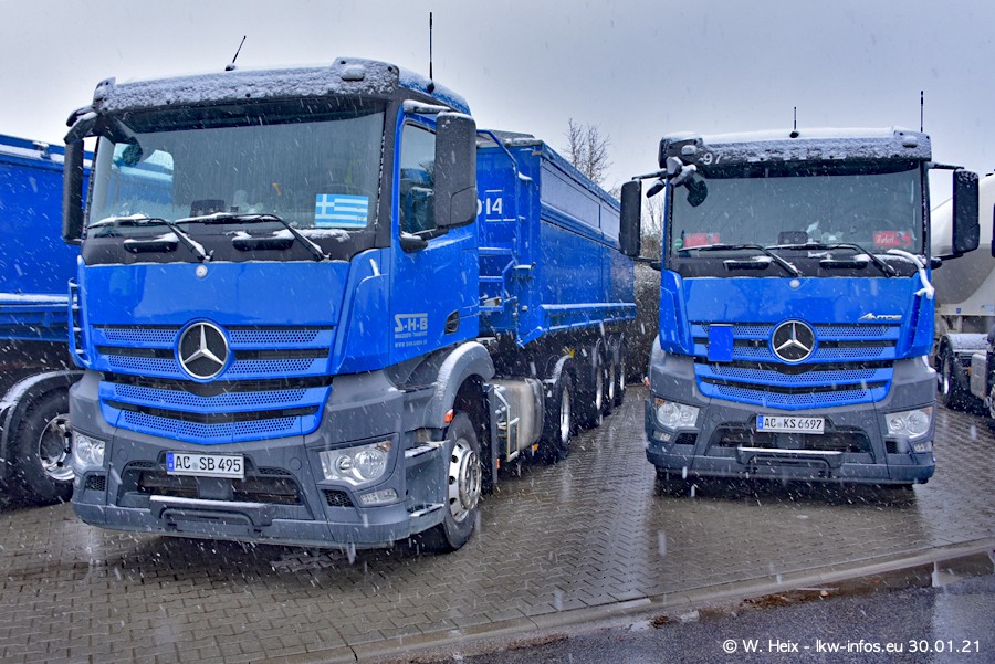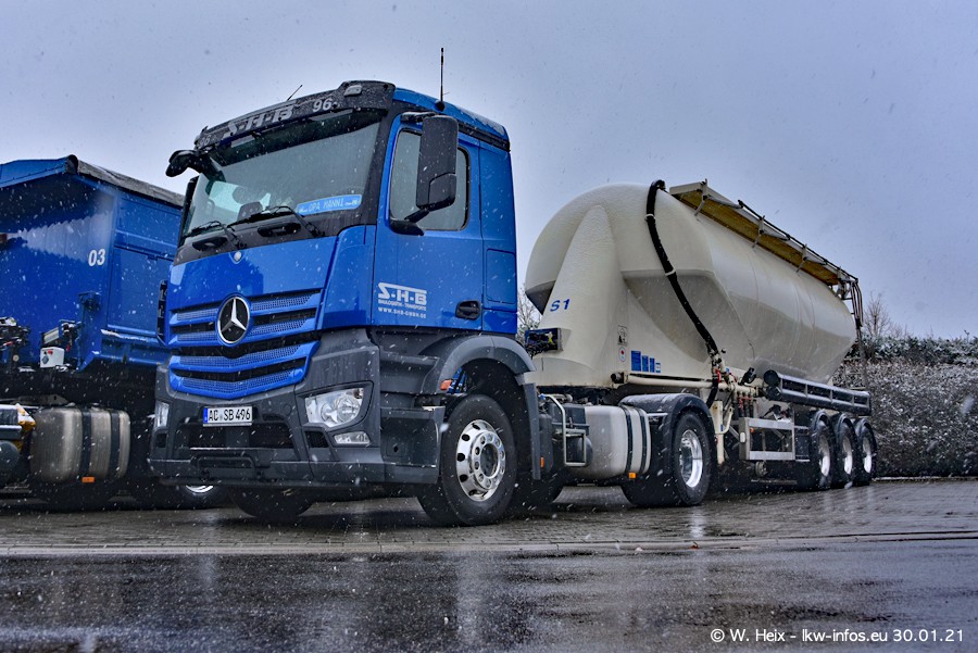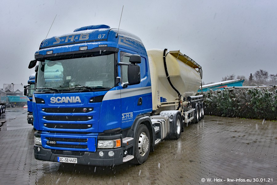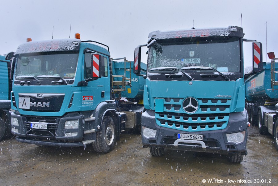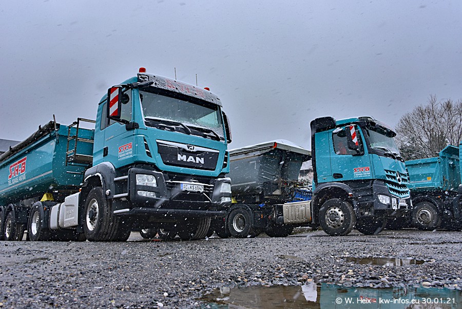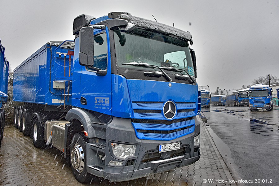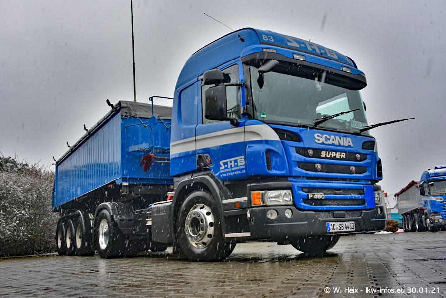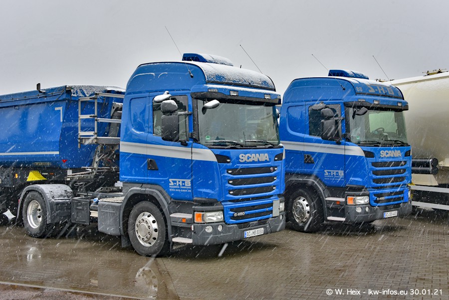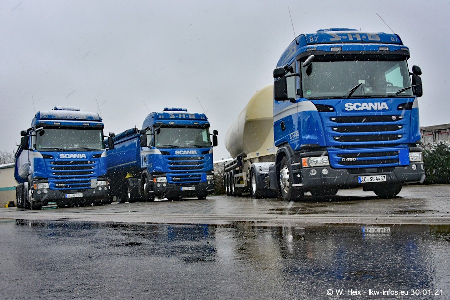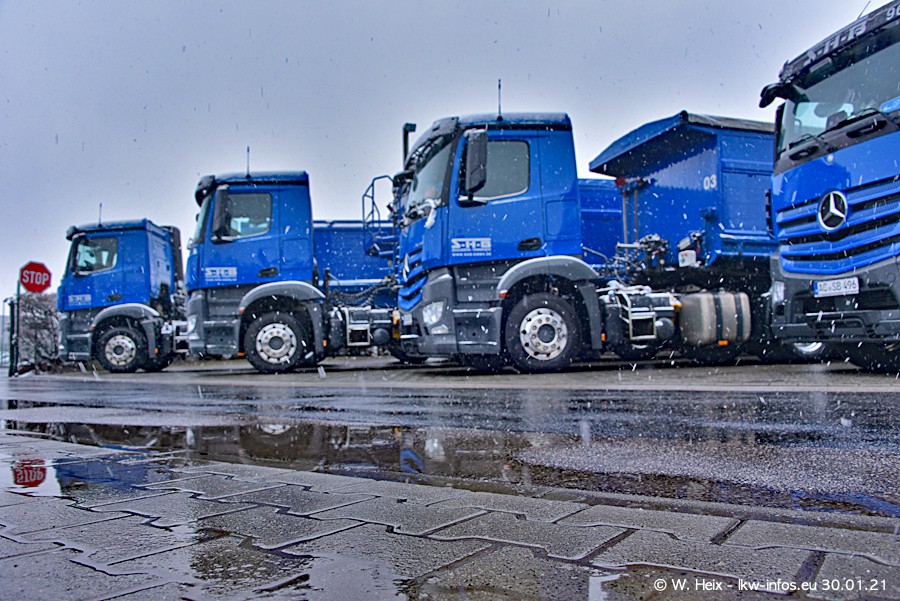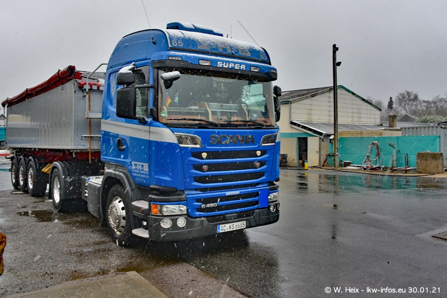 Auf dieser Fototour bin ich vom Winterwetter mit Schneefall überrascht worden. Aber trotzdem sind viele schöne Bilder entstanden, auch wenn es nass und dunkel war. Die ersten beiden von insgesamt sieben MAN TGS (alte Baureihe) standen auf dem Hof. In den nächsten Tagen kommen dann die "restlichen". Dazu gibt es auch sieben neue Kippauflieger. Alle neuen Fahrzeuge ersten alte. Wenn alle neuen LKW da sind, werde ich die Firma SHB bei besserem Wetter nochmal besuchen.