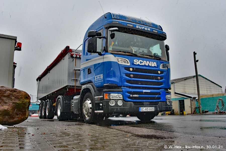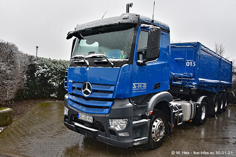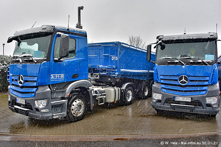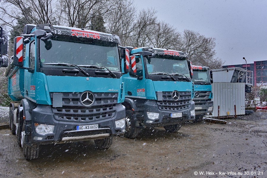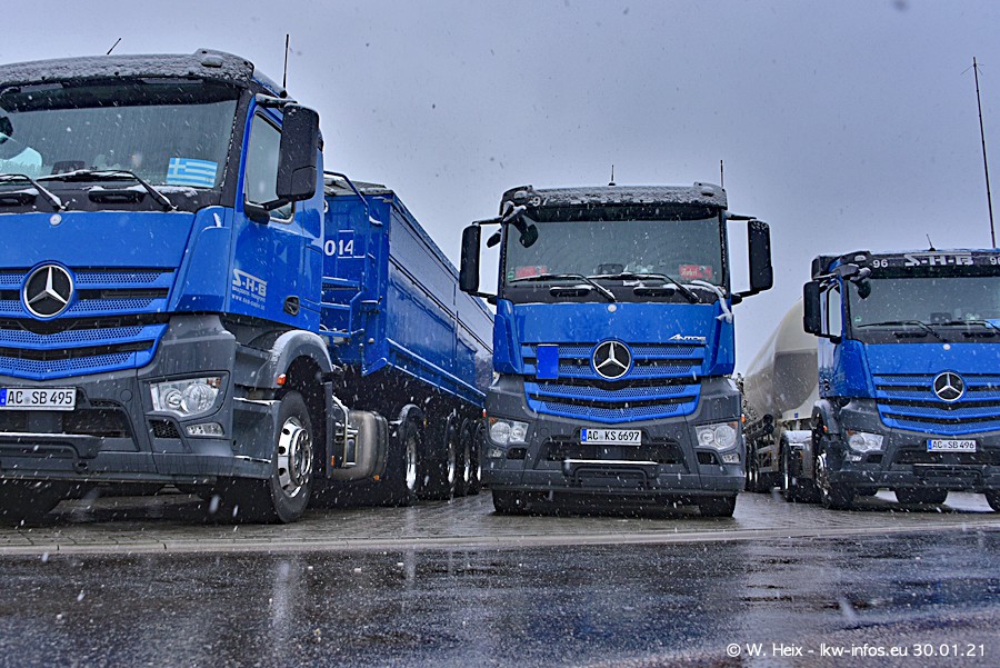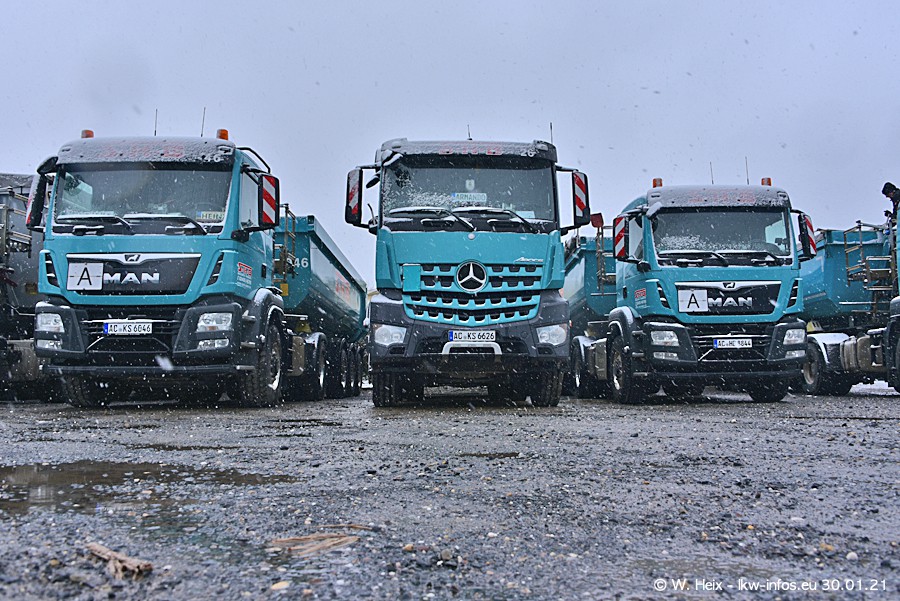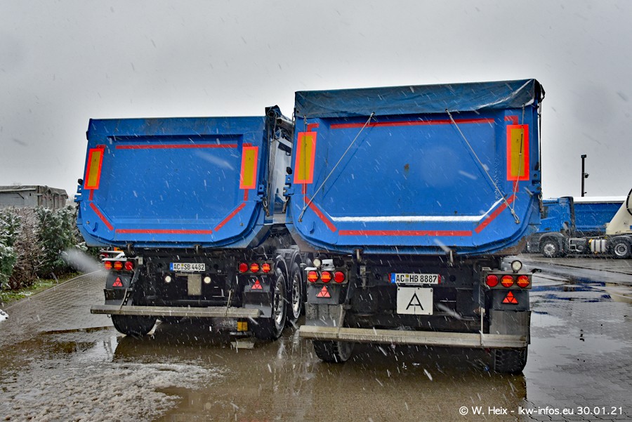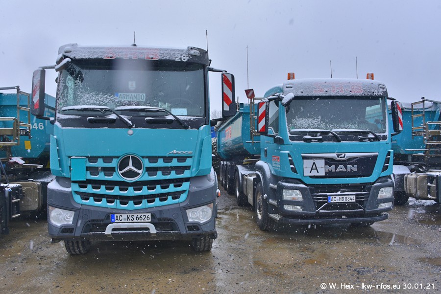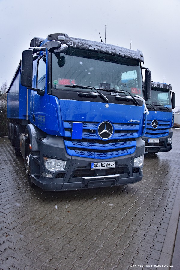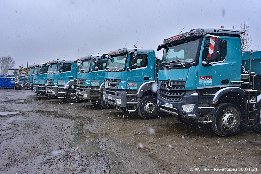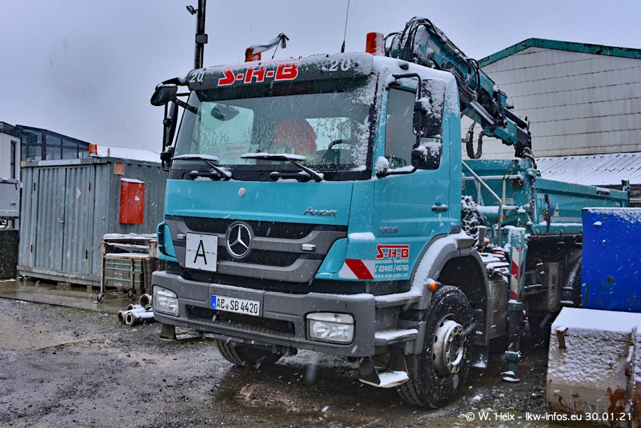 Auf dieser Fototour bin ich vom Winterwetter mit Schneefall überrascht worden. Aber trotzdem sind viele schöne Bilder entstanden, auch wenn es nass und dunkel war. Die ersten beiden von insgesamt sieben MAN TGS (alte Baureihe) standen auf dem Hof. In den nächsten Tagen kommen dann die "restlichen". Dazu gibt es auch sieben neue Kippauflieger. Alle neuen Fahrzeuge ersten alte. Wenn alle neuen LKW da sind, werde ich die Firma SHB bei besserem Wetter nochmal besuchen.