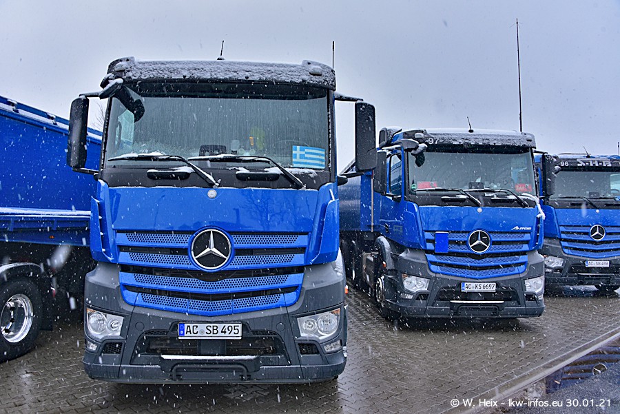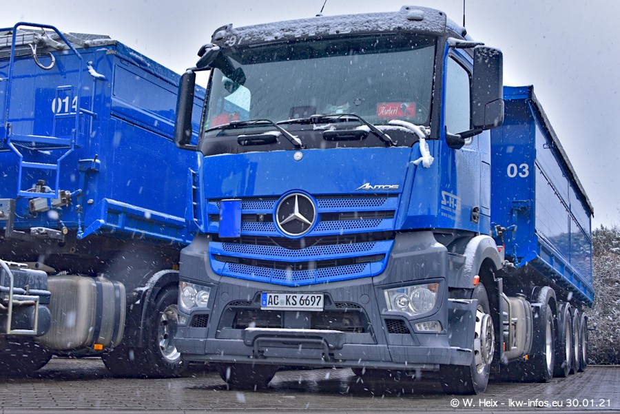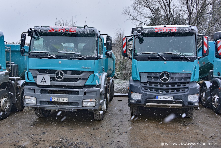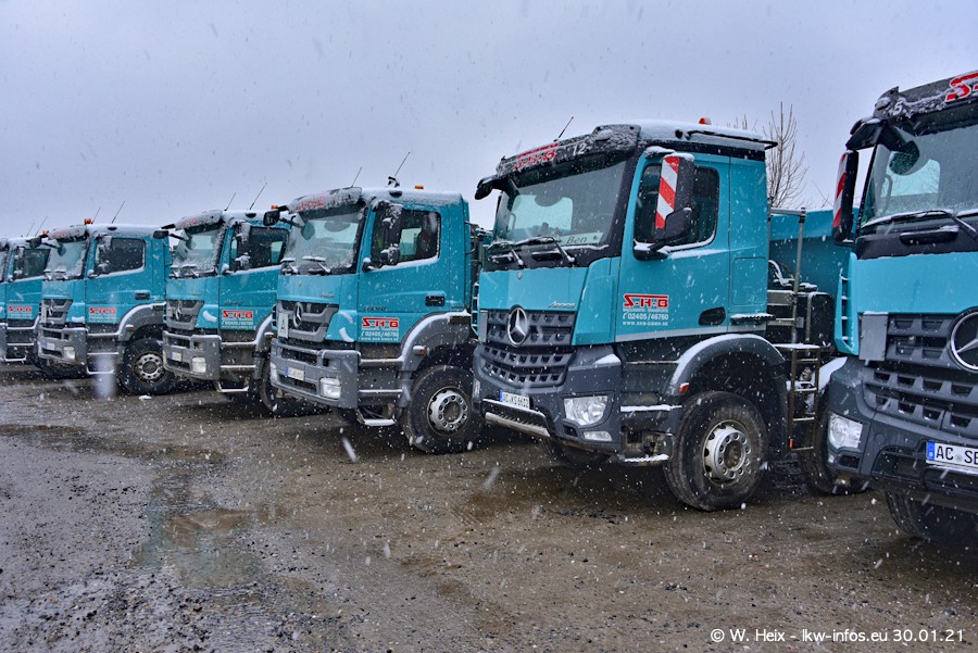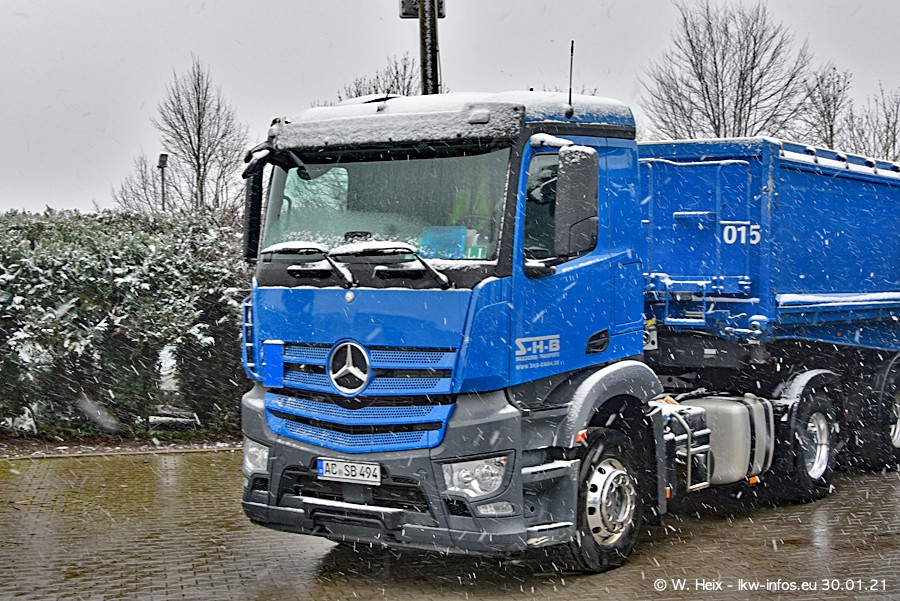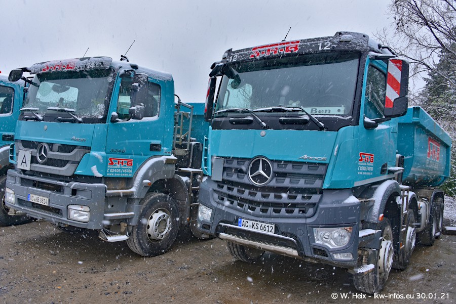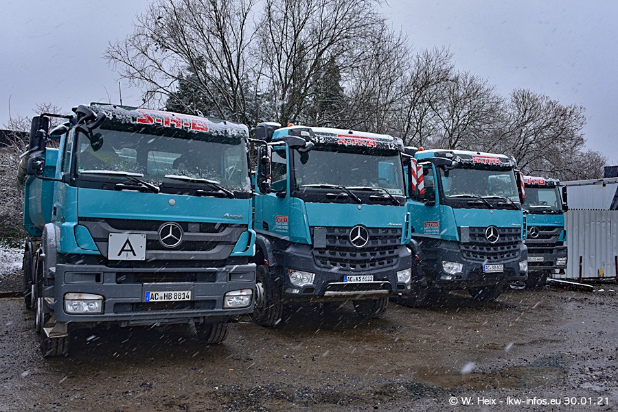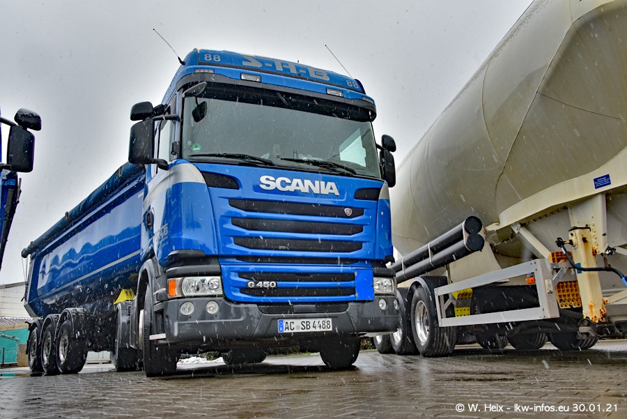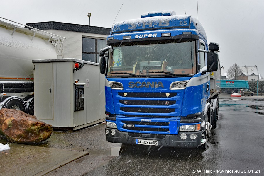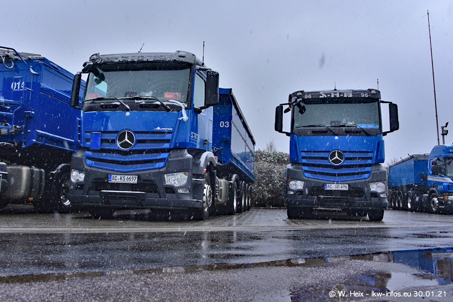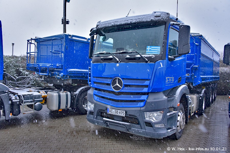 Auf dieser Fototour bin ich vom Winterwetter mit Schneefall überrascht worden. Aber trotzdem sind viele schöne Bilder entstanden, auch wenn es nass und dunkel war. Die ersten beiden von insgesamt sieben MAN TGS (alte Baureihe) standen auf dem Hof. In den nächsten Tagen kommen dann die "restlichen". Dazu gibt es auch sieben neue Kippauflieger. Alle neuen Fahrzeuge ersten alte. Wenn alle neuen LKW da sind, werde ich die Firma SHB bei besserem Wetter nochmal besuchen.