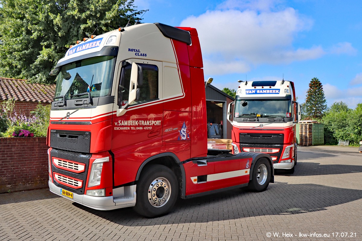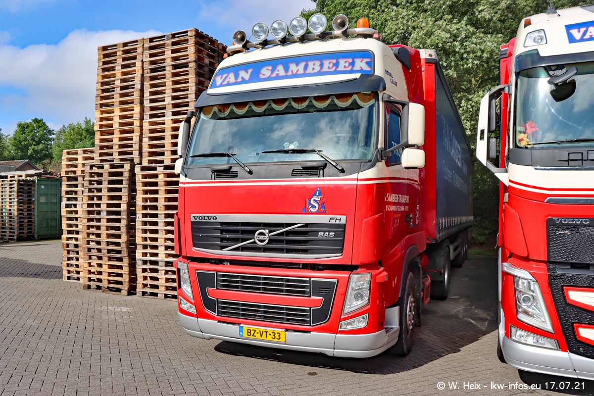 Dieser Besuch war mein erster bei van Sambeek. Aktuell besteht der Fuhrpark aus 20 LKW, alle von VOLVO. Das sind ein FH 3, 18 FH 4 und ein FH 5. Der zweite VOLVO FH 5 kommt in den nächsten Wochen.