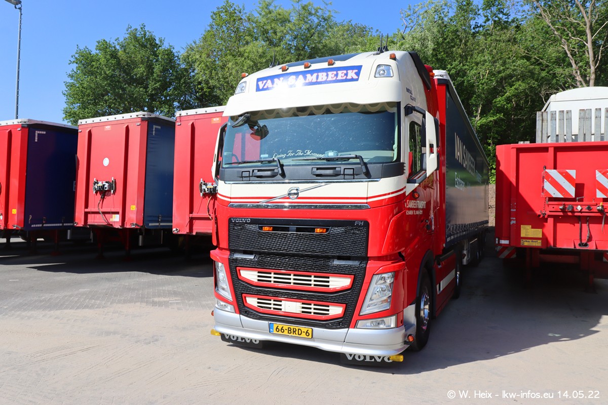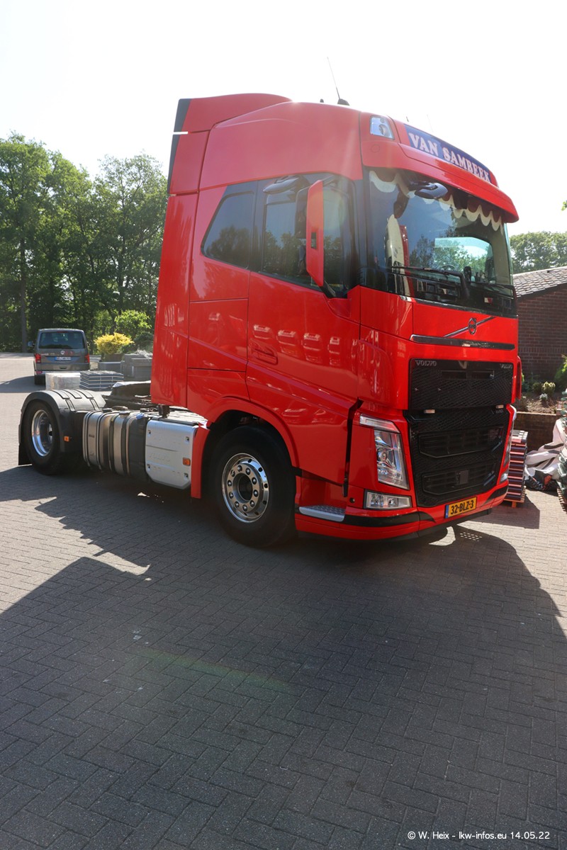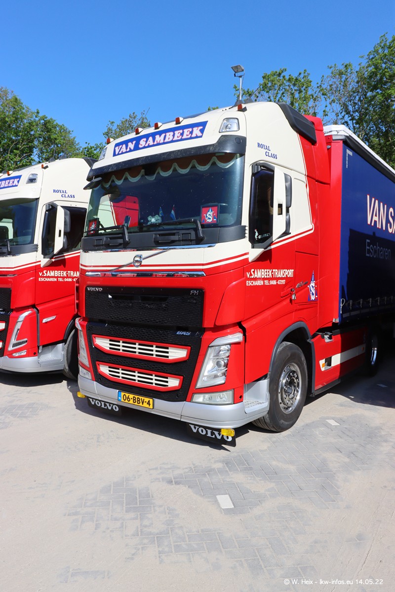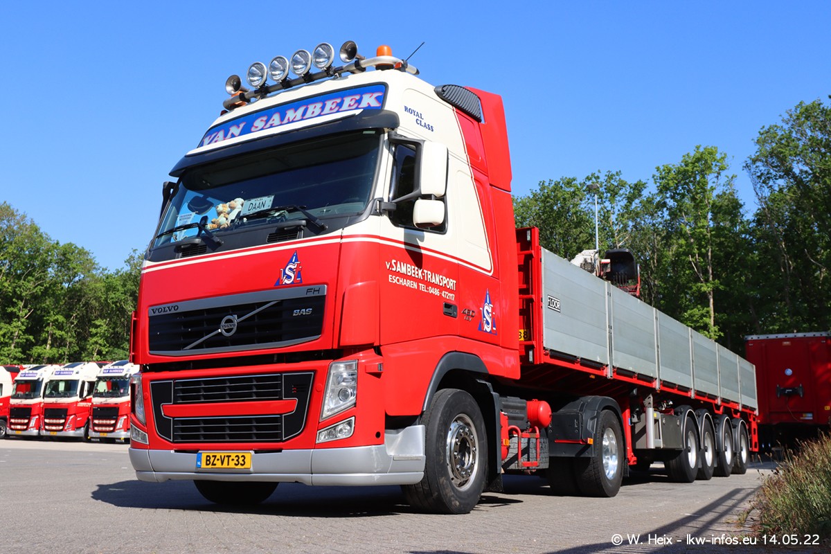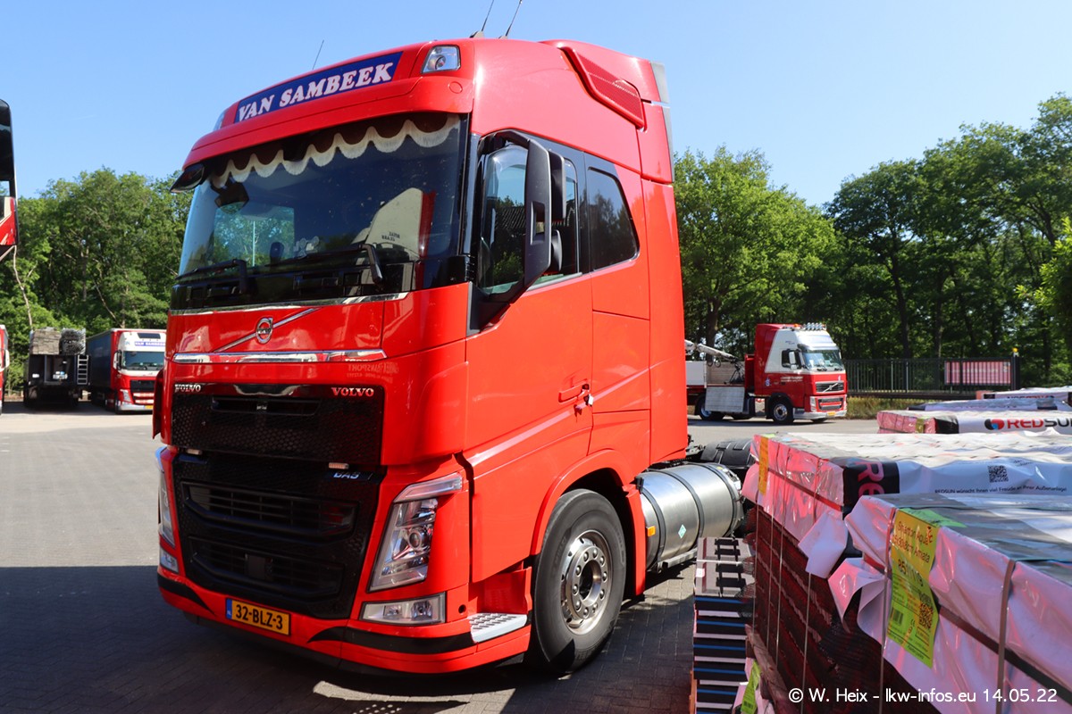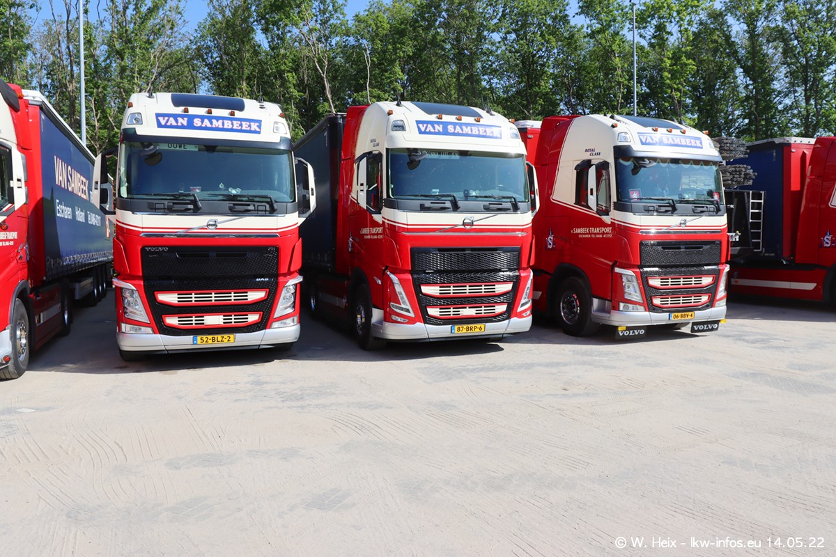 Seit 2 Wochen hat van Sambeek den dritten VOLVO FH 5 (Kennzeichen BSX....) im Fuhrpark. Zwei weitere kommen im Mai/Juni. Und in den letzten Monaten wurde der Hof/Parkplatz deutlich vergrößert, wodurch jetzt deutlich mehr Platz für die LKW vorhanden ist.