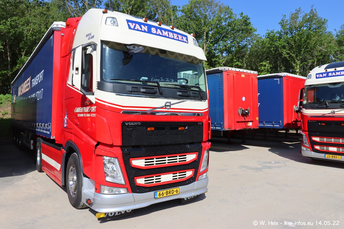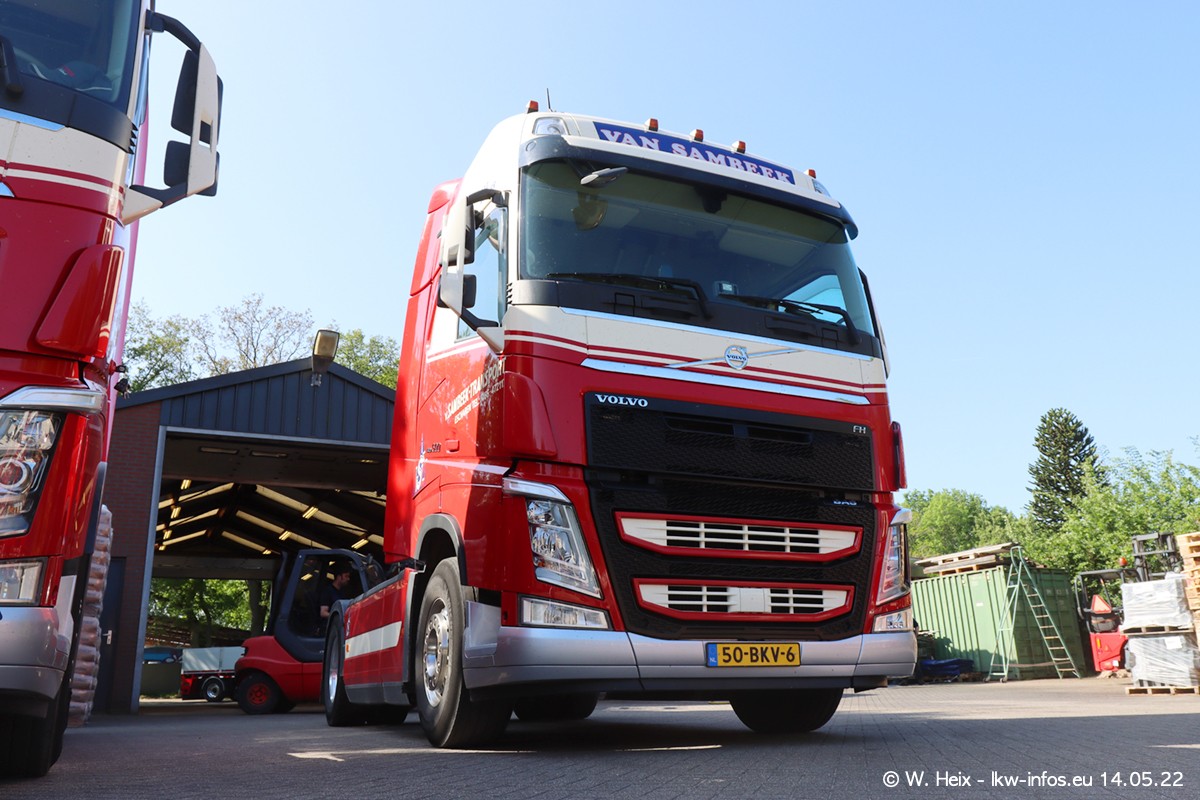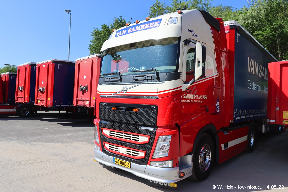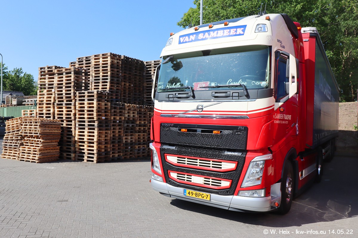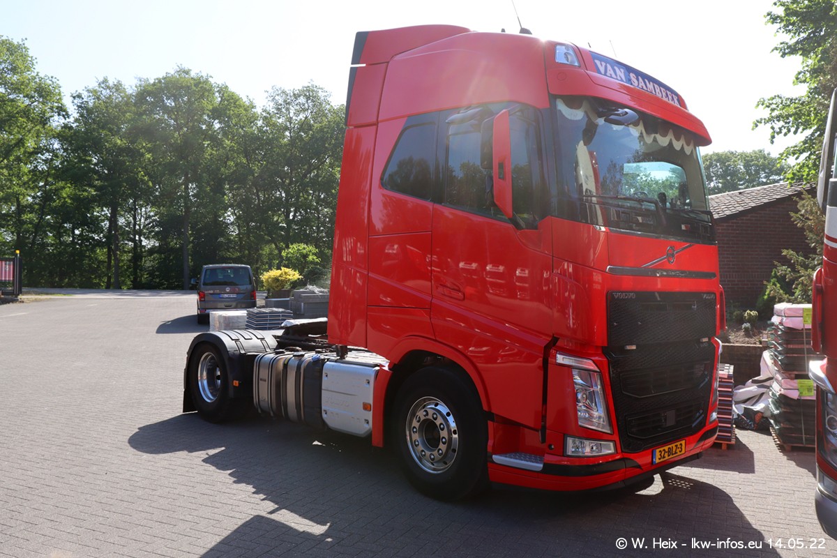 Seit 2 Wochen hat van Sambeek den dritten VOLVO FH 5 (Kennzeichen BSX....) im Fuhrpark. Zwei weitere kommen im Mai/Juni. Und in den letzten Monaten wurde der Hof/Parkplatz deutlich vergrößert, wodurch jetzt deutlich mehr Platz für die LKW vorhanden ist.