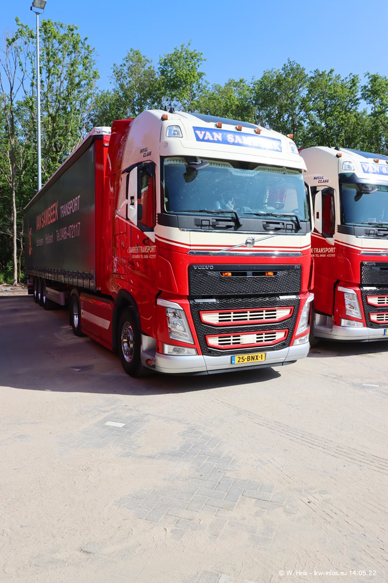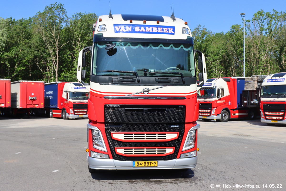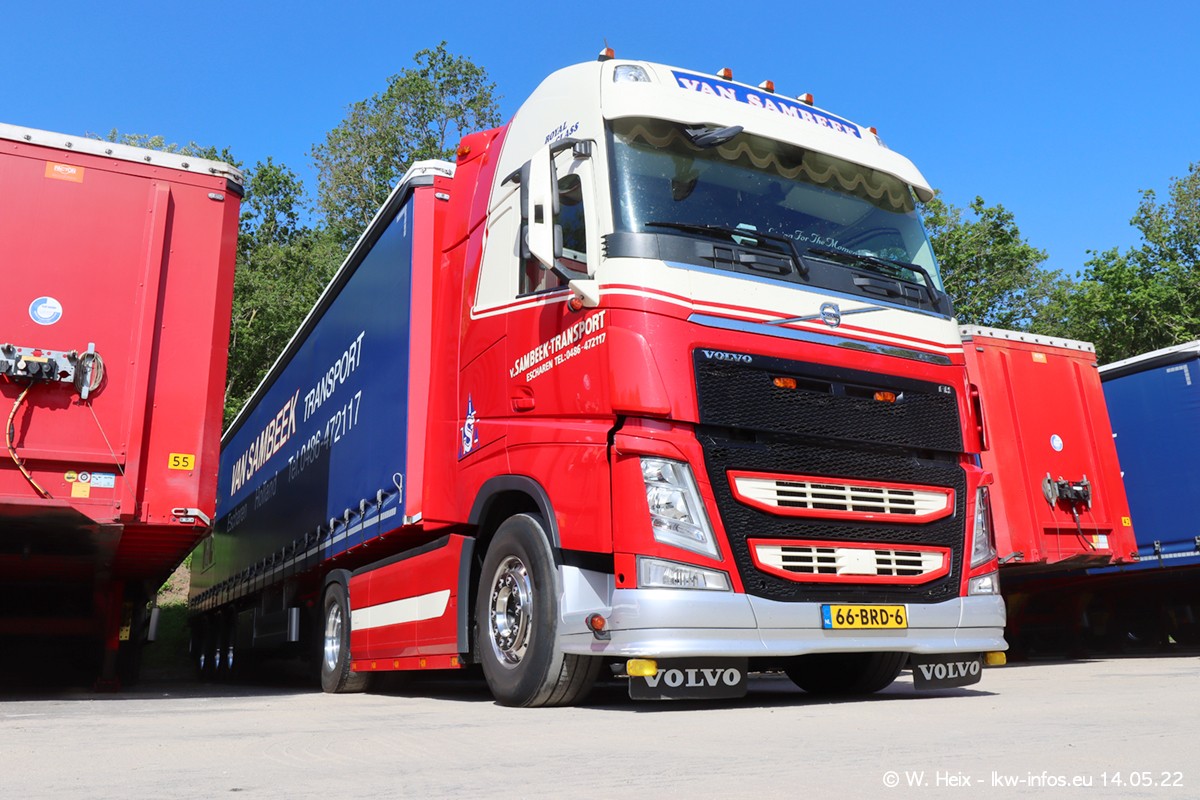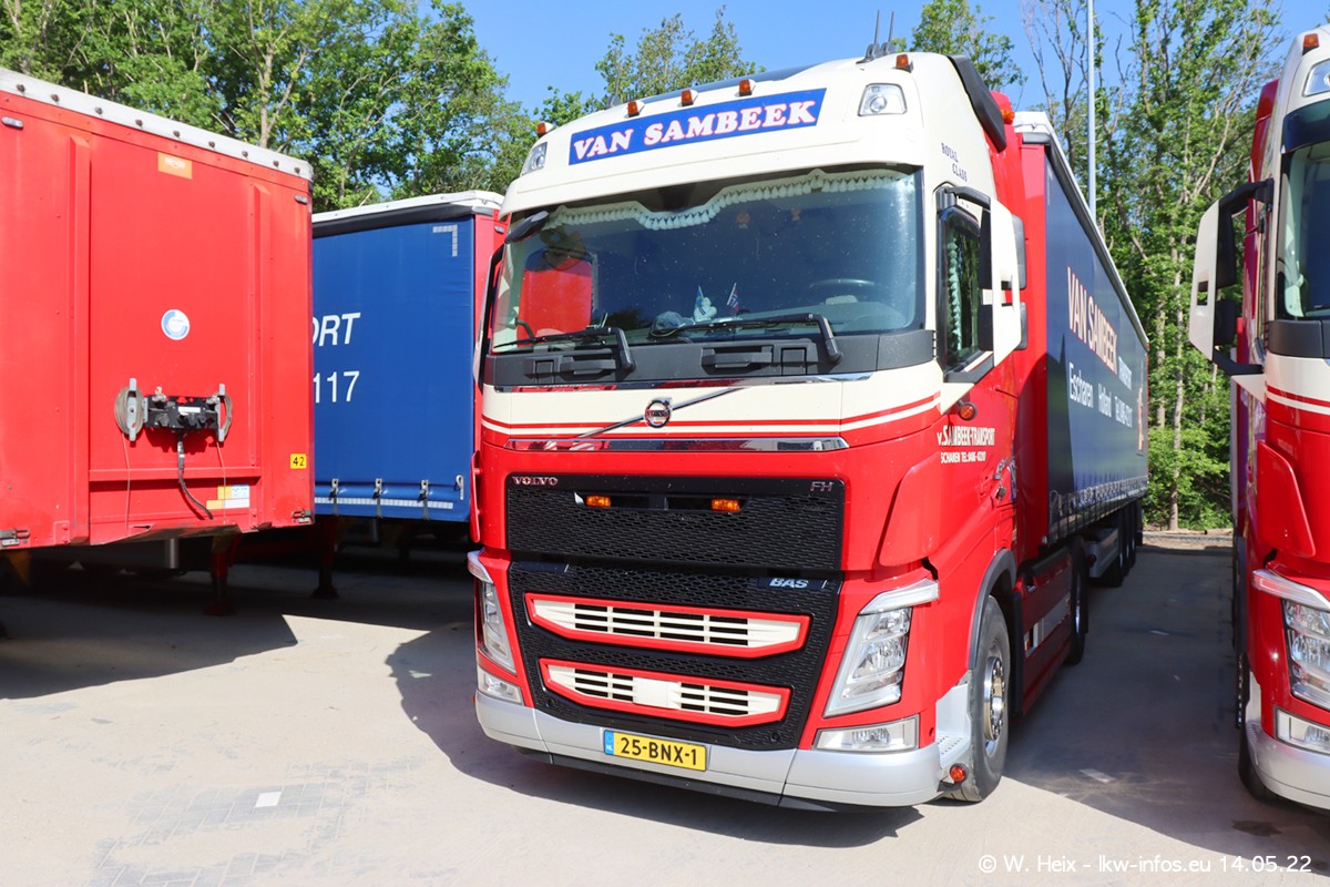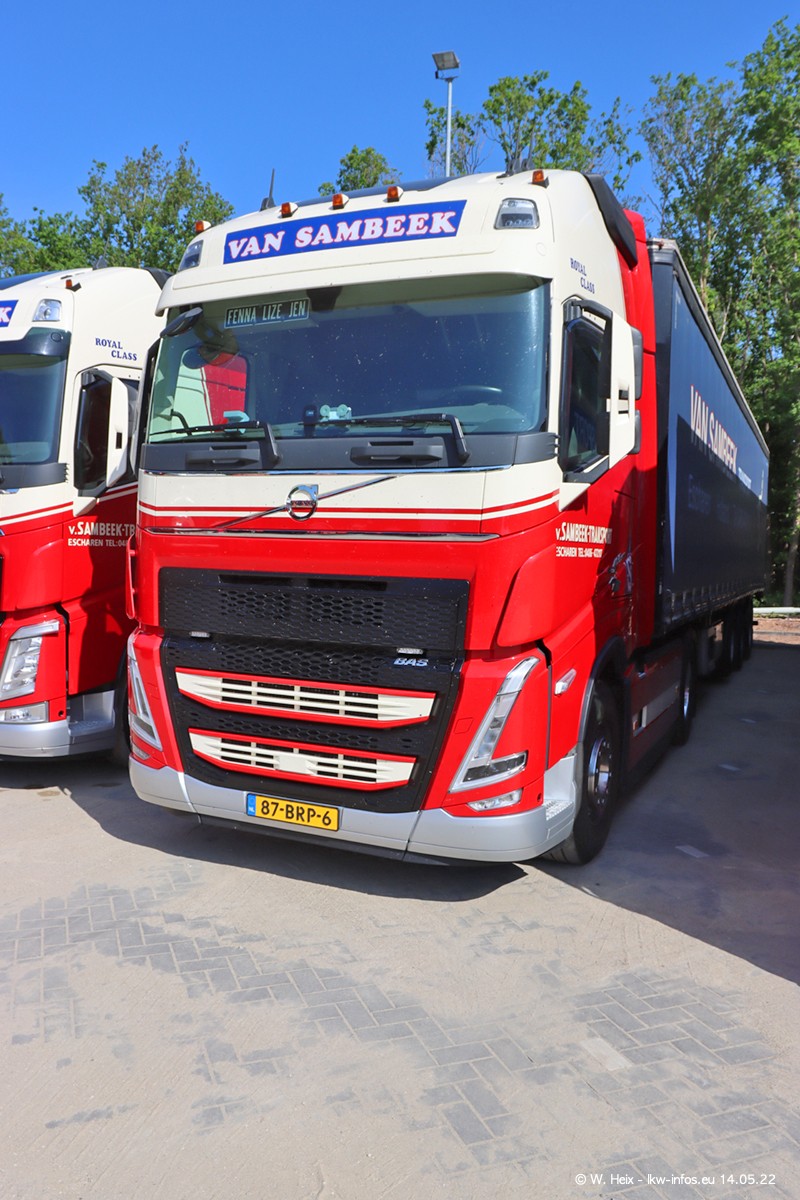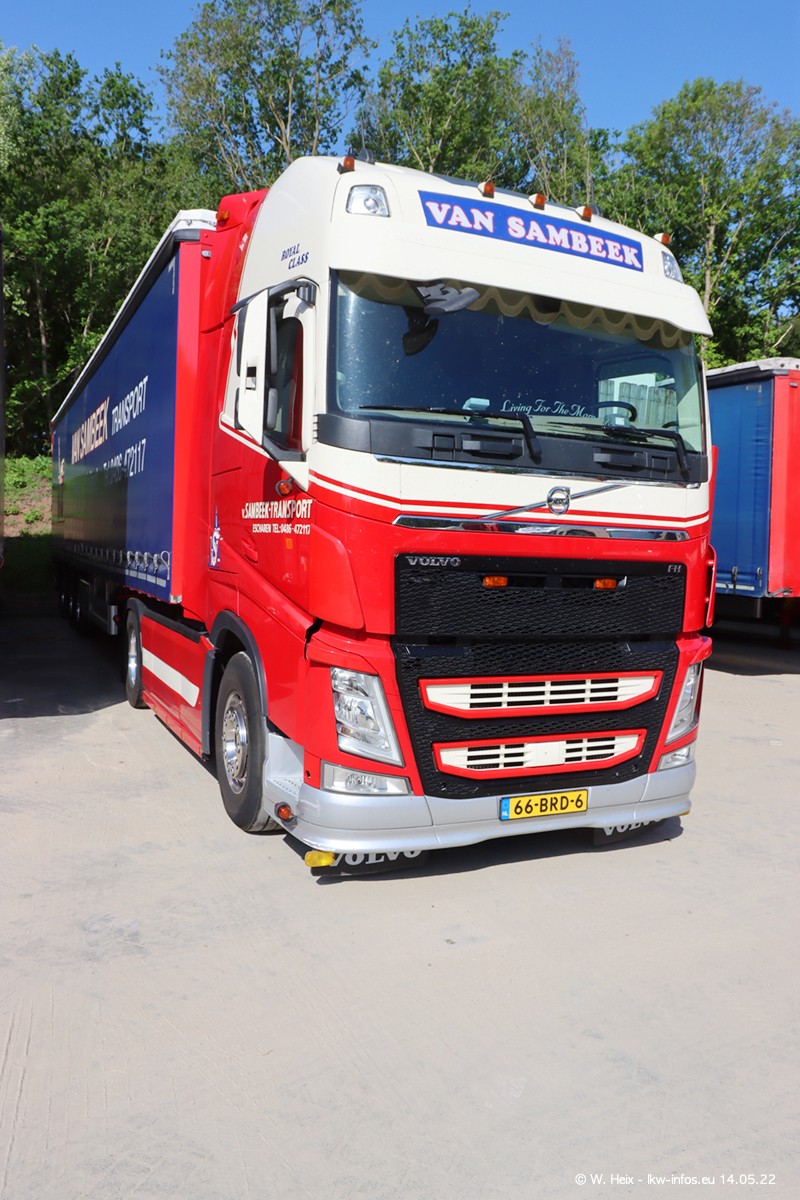 Seit 2 Wochen hat van Sambeek den dritten VOLVO FH 5 (Kennzeichen BSX....) im Fuhrpark. Zwei weitere kommen im Mai/Juni. Und in den letzten Monaten wurde der Hof/Parkplatz deutlich vergrößert, wodurch jetzt deutlich mehr Platz für die LKW vorhanden ist.