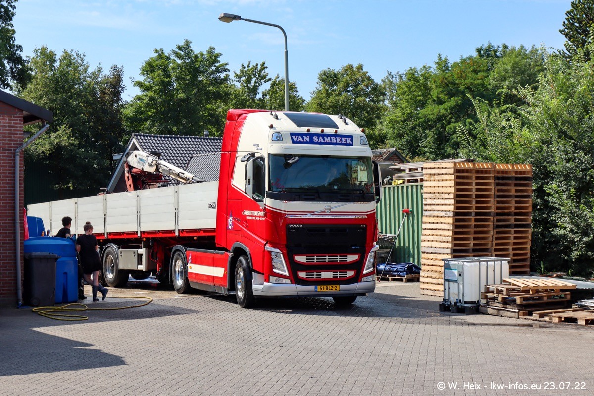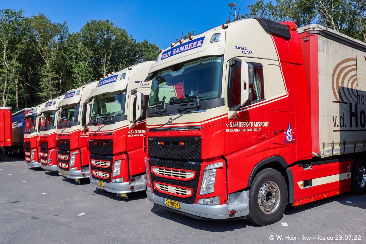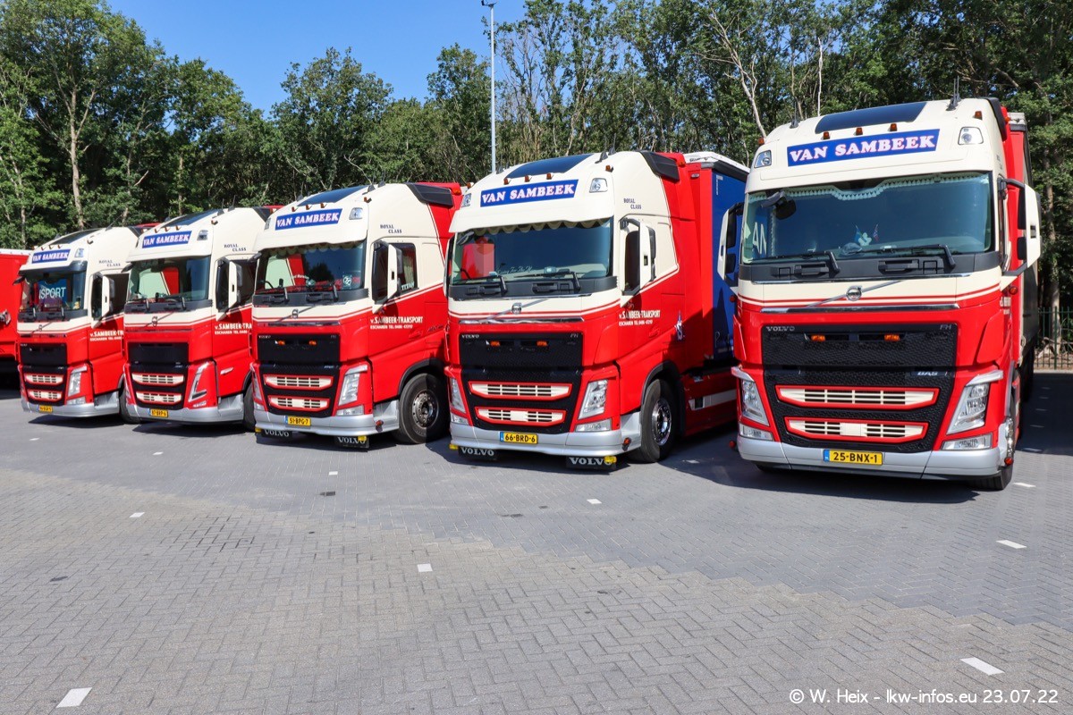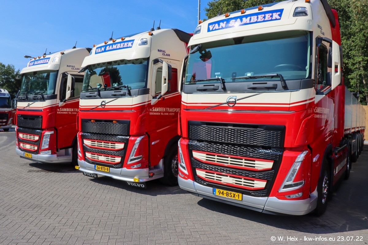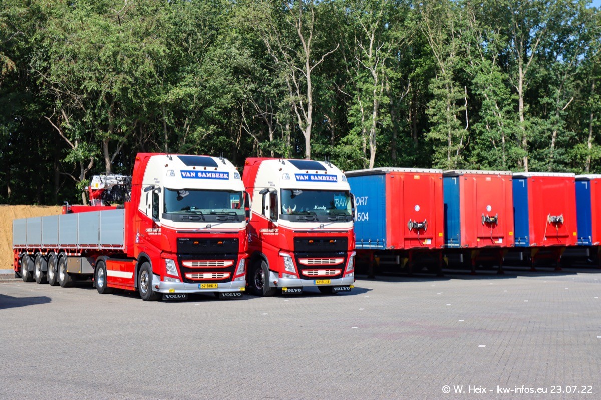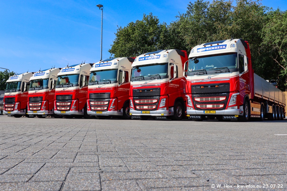 In den letzen Wochen hat van Sambeek Transport drei weitere VOLVO FH 5 bekommen und es sind auch neue Auflieger dazu gekommen. Diesmal haben wir wieder ein kleines Fotoshooting gemacht mit den drei neuen VOLVO FH 5, einem VOLVO FH 4 mit Planenauflieger, der im Kundendesign gestaltet ist. Und noch mit weiteren LKW .... Es gibt auch einen neuen Steintransport-Auflieger. Auch dieser ist in Kundenfarben lackiert und direkt auf den ersten Bildern zu sehen. Danke an Bas Bruisten, der sich wieder viel Zeit genommen hat, um dieses kleinen Fotoshooting zu machen.