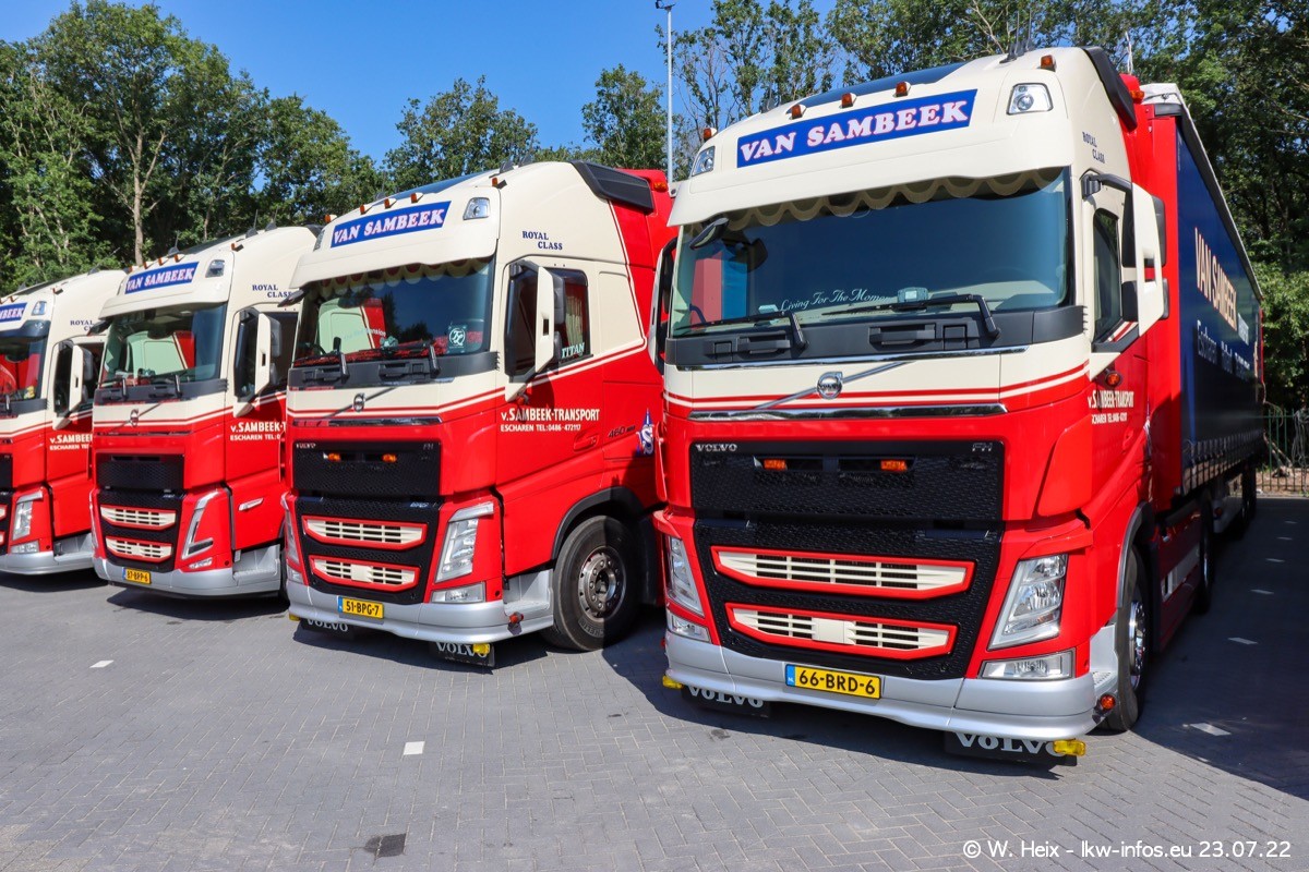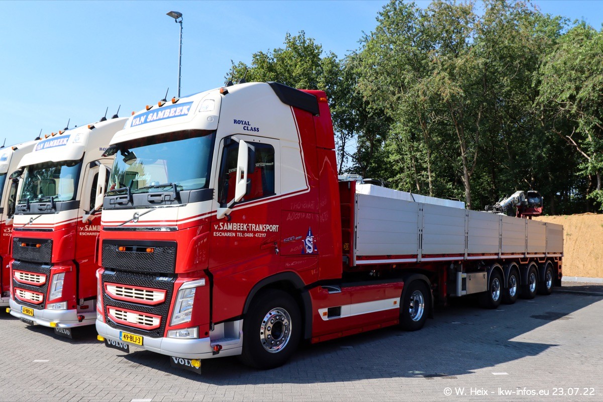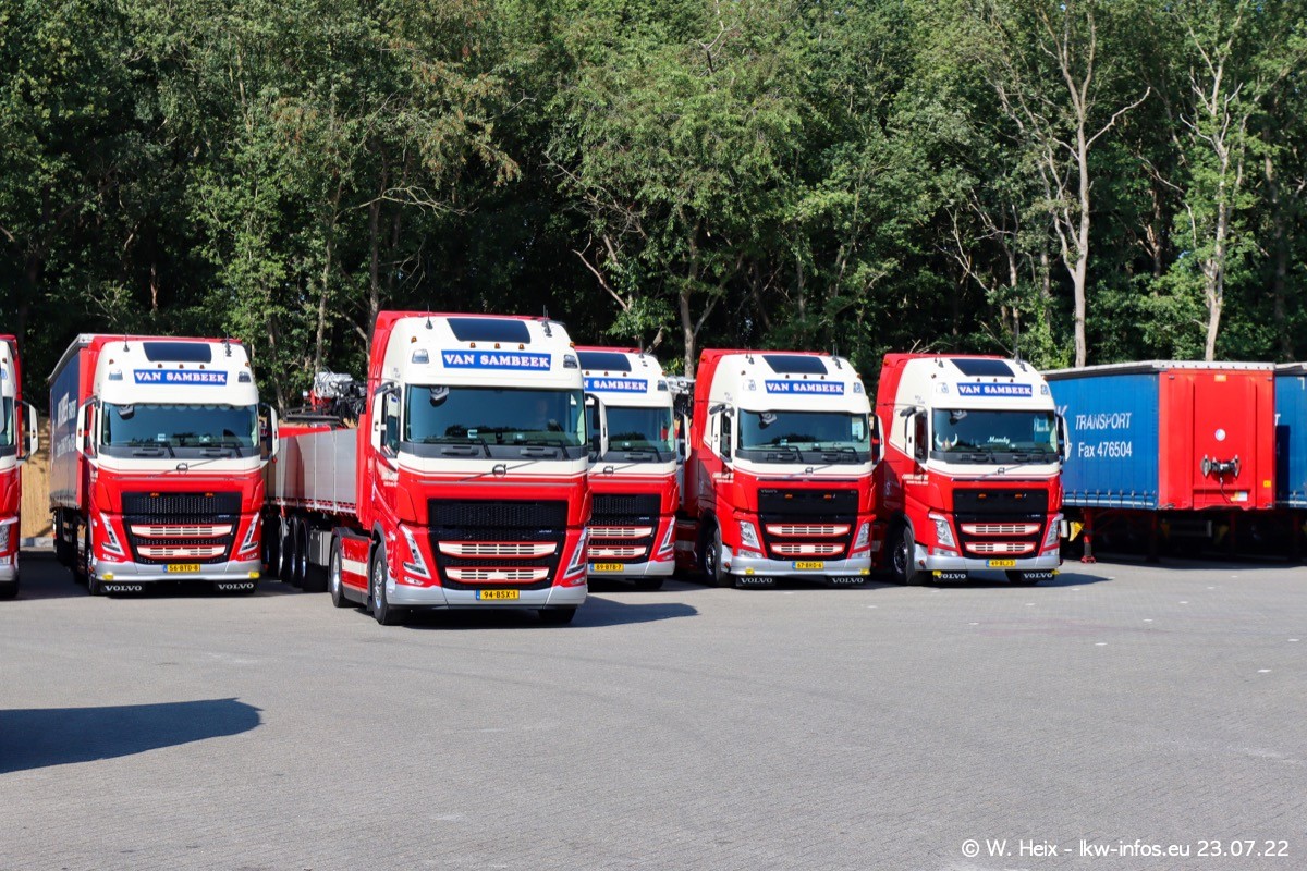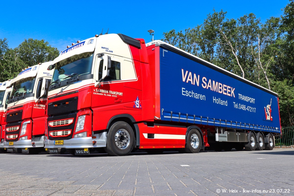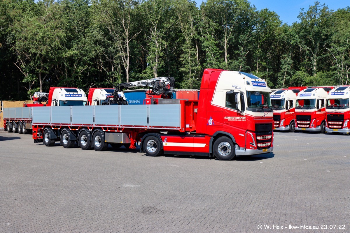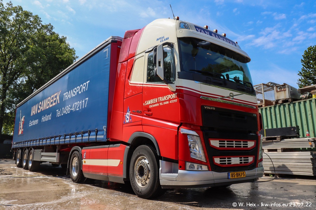 In den letzen Wochen hat van Sambeek Transport drei weitere VOLVO FH 5 bekommen und es sind auch neue Auflieger dazu gekommen. Diesmal haben wir wieder ein kleines Fotoshooting gemacht mit den drei neuen VOLVO FH 5, einem VOLVO FH 4 mit Planenauflieger, der im Kundendesign gestaltet ist. Und noch mit weiteren LKW .... Es gibt auch einen neuen Steintransport-Auflieger. Auch dieser ist in Kundenfarben lackiert und direkt auf den ersten Bildern zu sehen. Danke an Bas Bruisten, der sich wieder viel Zeit genommen hat, um dieses kleinen Fotoshooting zu machen.