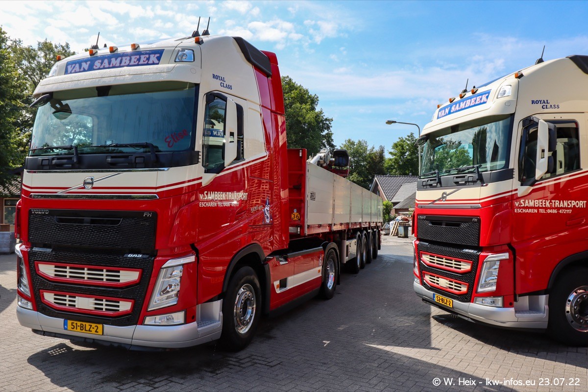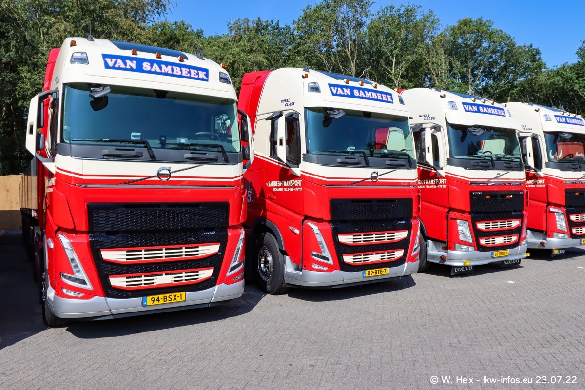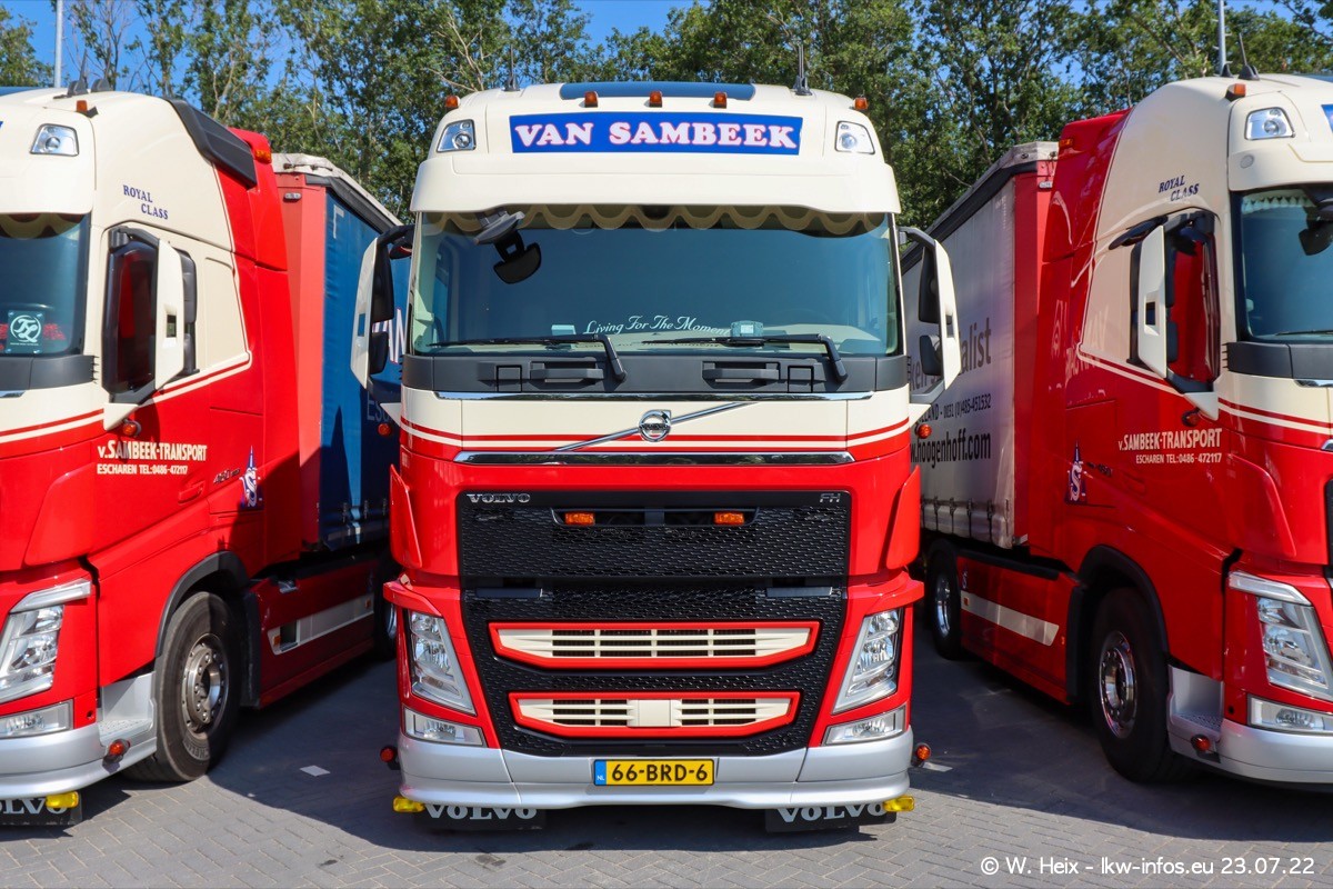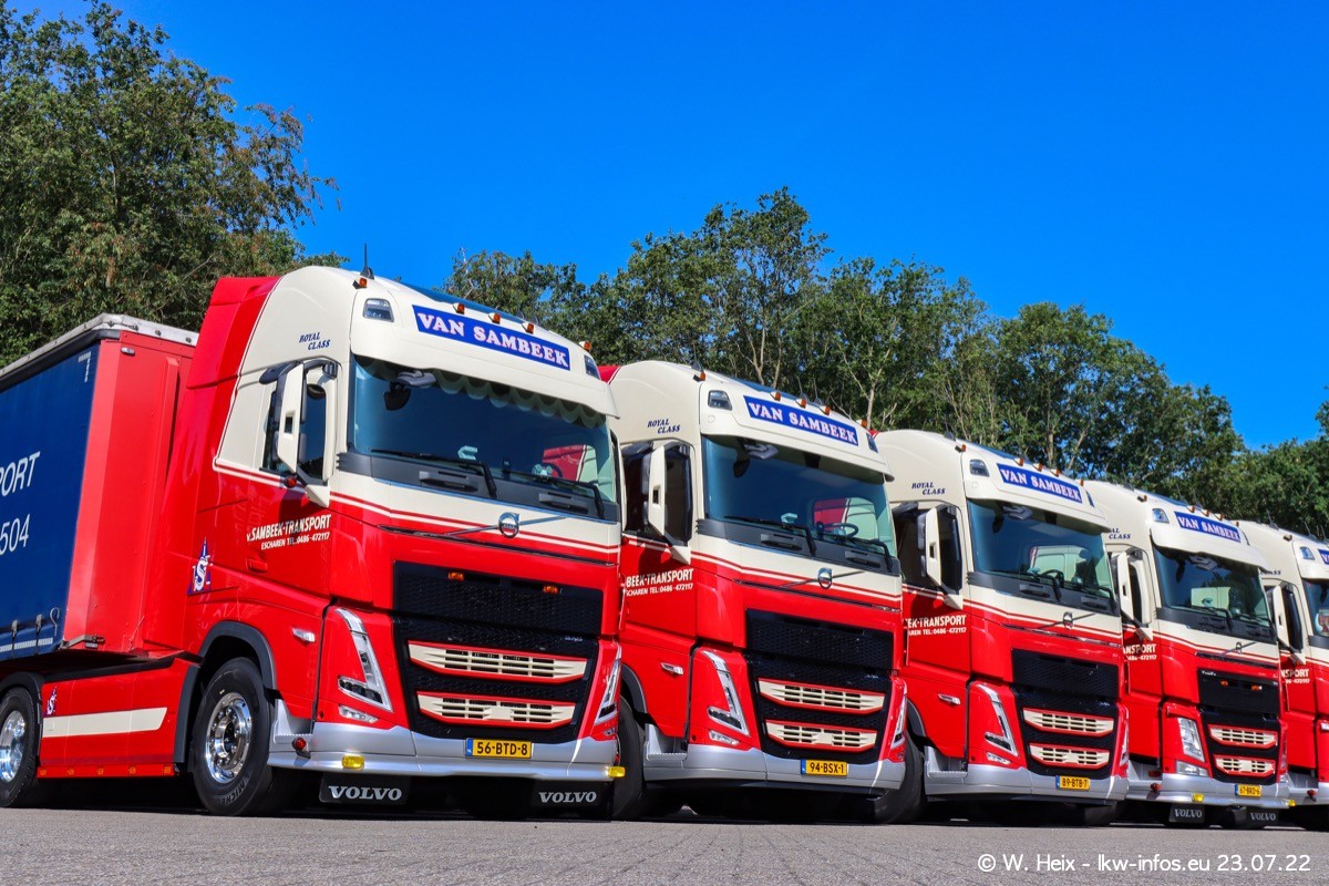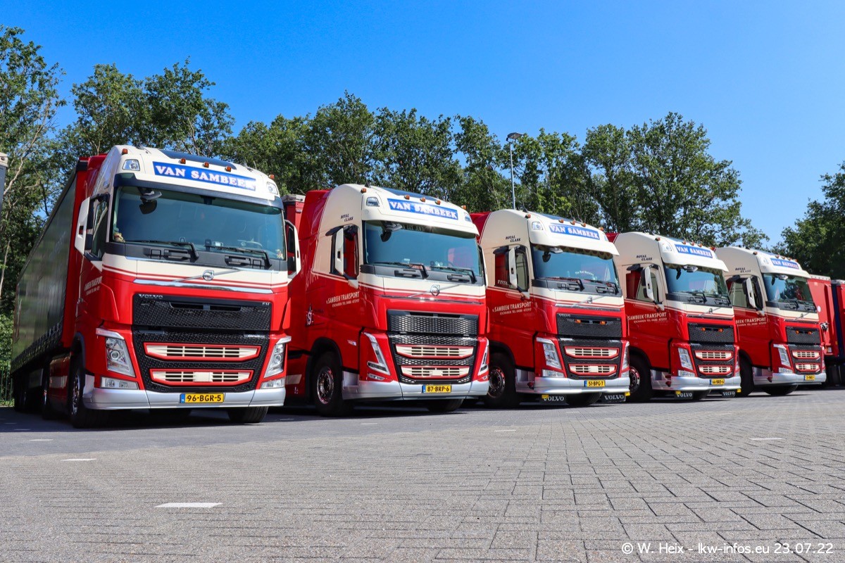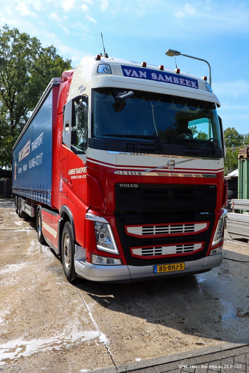 In den letzen Wochen hat van Sambeek Transport drei weitere VOLVO FH 5 bekommen und es sind auch neue Auflieger dazu gekommen. Diesmal haben wir wieder ein kleines Fotoshooting gemacht mit den drei neuen VOLVO FH 5, einem VOLVO FH 4 mit Planenauflieger, der im Kundendesign gestaltet ist. Und noch mit weiteren LKW .... Es gibt auch einen neuen Steintransport-Auflieger. Auch dieser ist in Kundenfarben lackiert und direkt auf den ersten Bildern zu sehen. Danke an Bas Bruisten, der sich wieder viel Zeit genommen hat, um dieses kleinen Fotoshooting zu machen.
