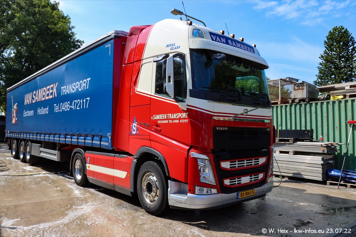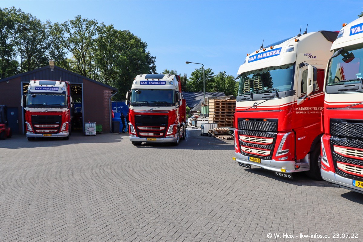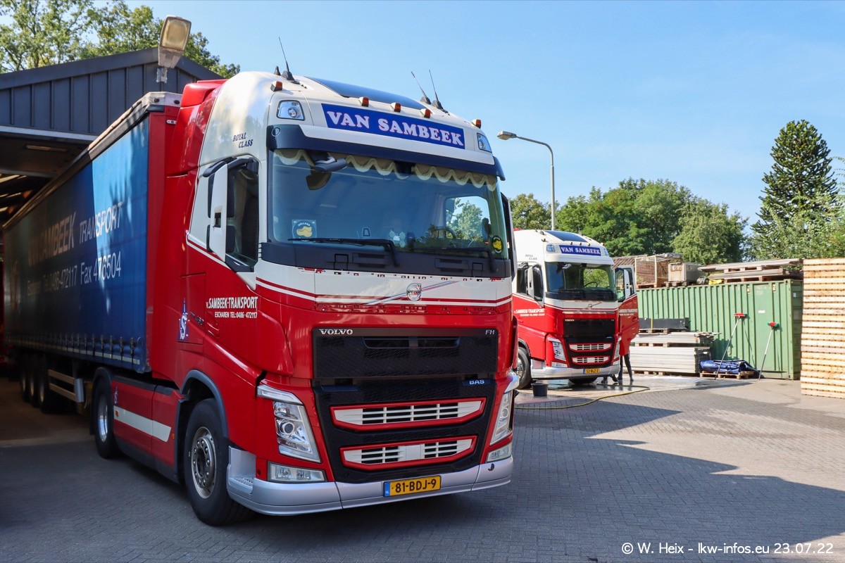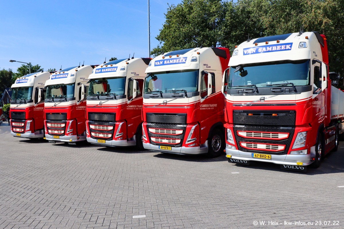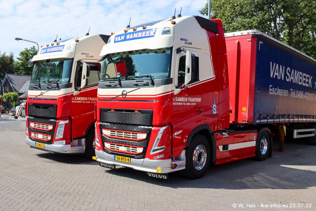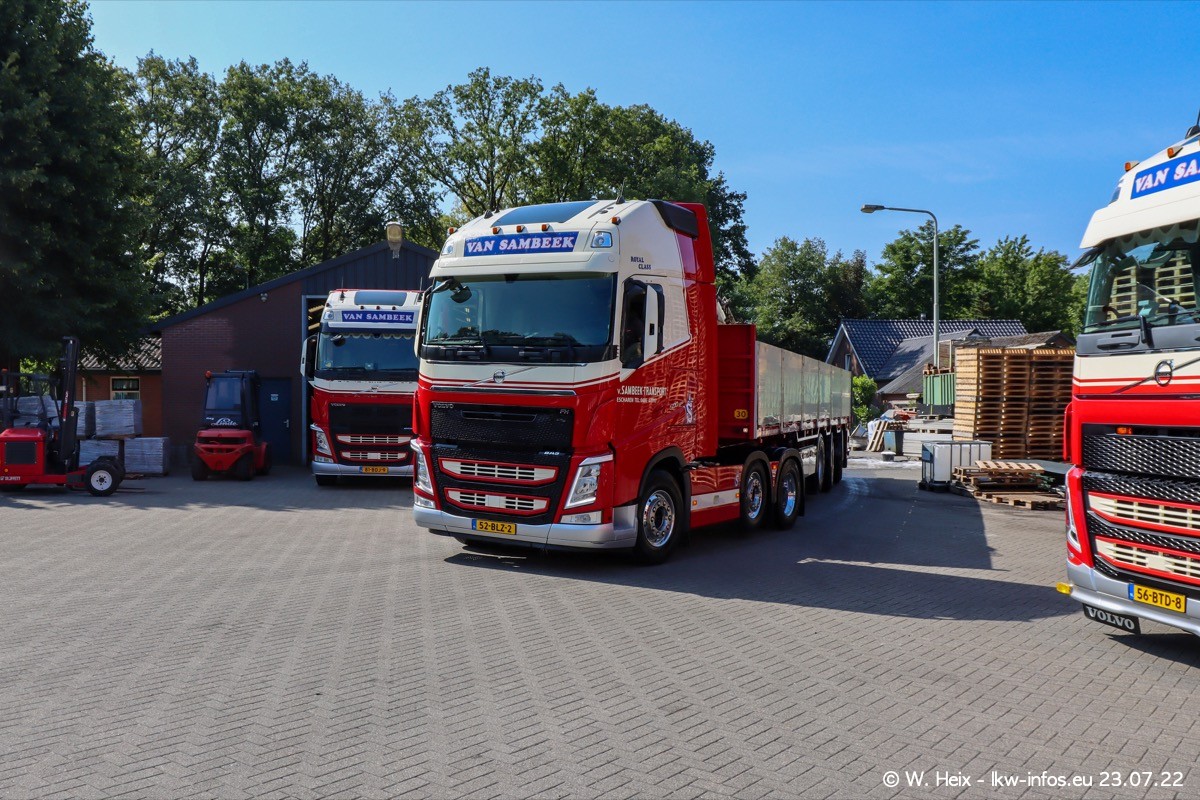 In den letzen Wochen hat van Sambeek Transport drei weitere VOLVO FH 5 bekommen und es sind auch neue Auflieger dazu gekommen. Diesmal haben wir wieder ein kleines Fotoshooting gemacht mit den drei neuen VOLVO FH 5, einem VOLVO FH 4 mit Planenauflieger, der im Kundendesign gestaltet ist. Und noch mit weiteren LKW .... Es gibt auch einen neuen Steintransport-Auflieger. Auch dieser ist in Kundenfarben lackiert und direkt auf den ersten Bildern zu sehen. Danke an Bas Bruisten, der sich wieder viel Zeit genommen hat, um dieses kleinen Fotoshooting zu machen.